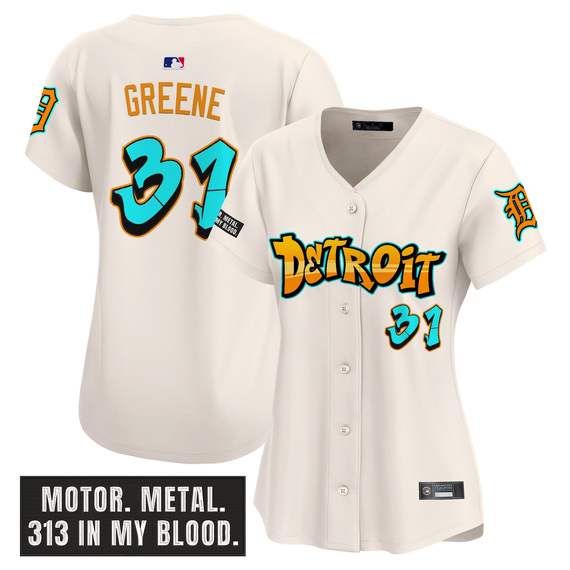 Womens Detroit Tigers Graffiti Motor City Edition Vapor Premier Limited Jersey All Stitched