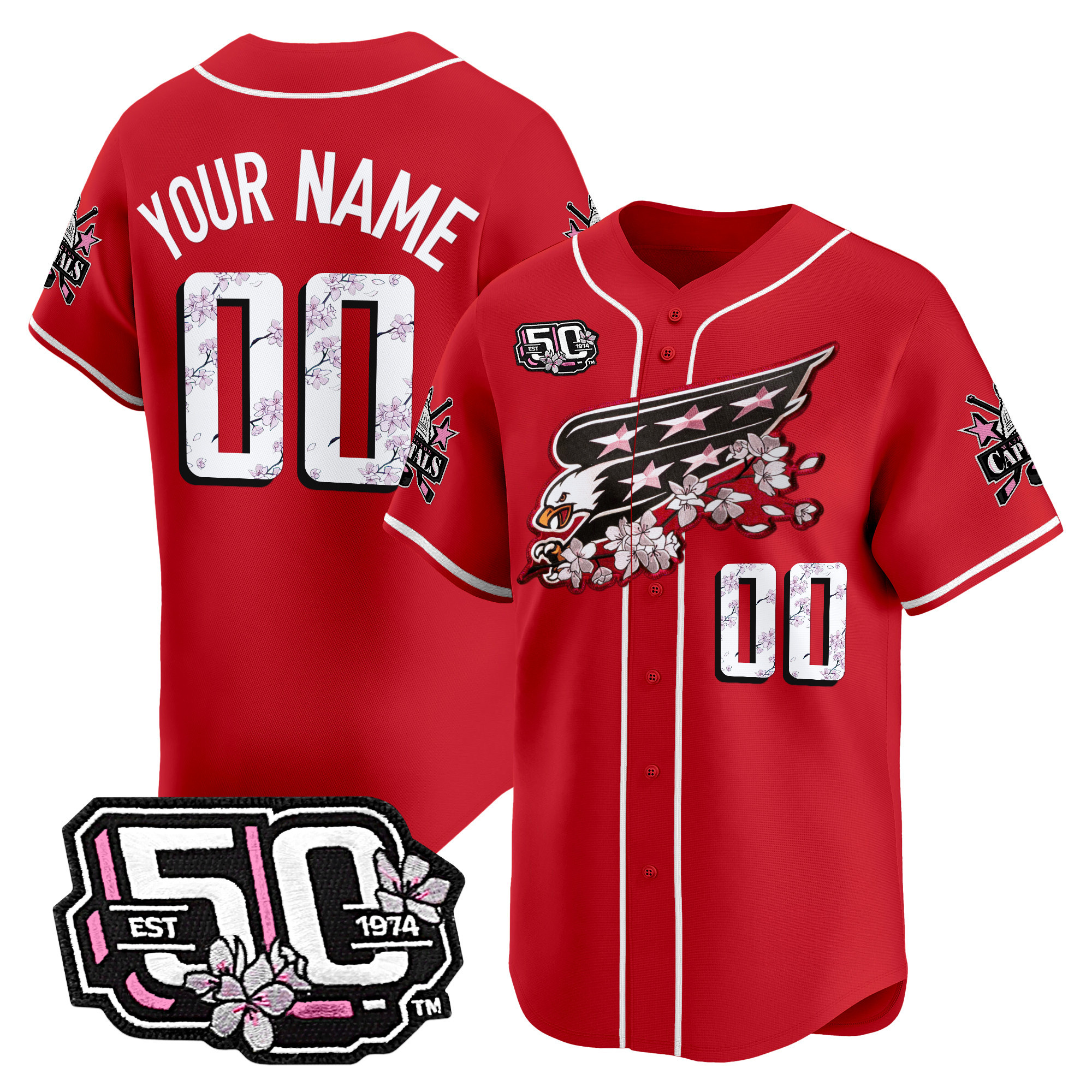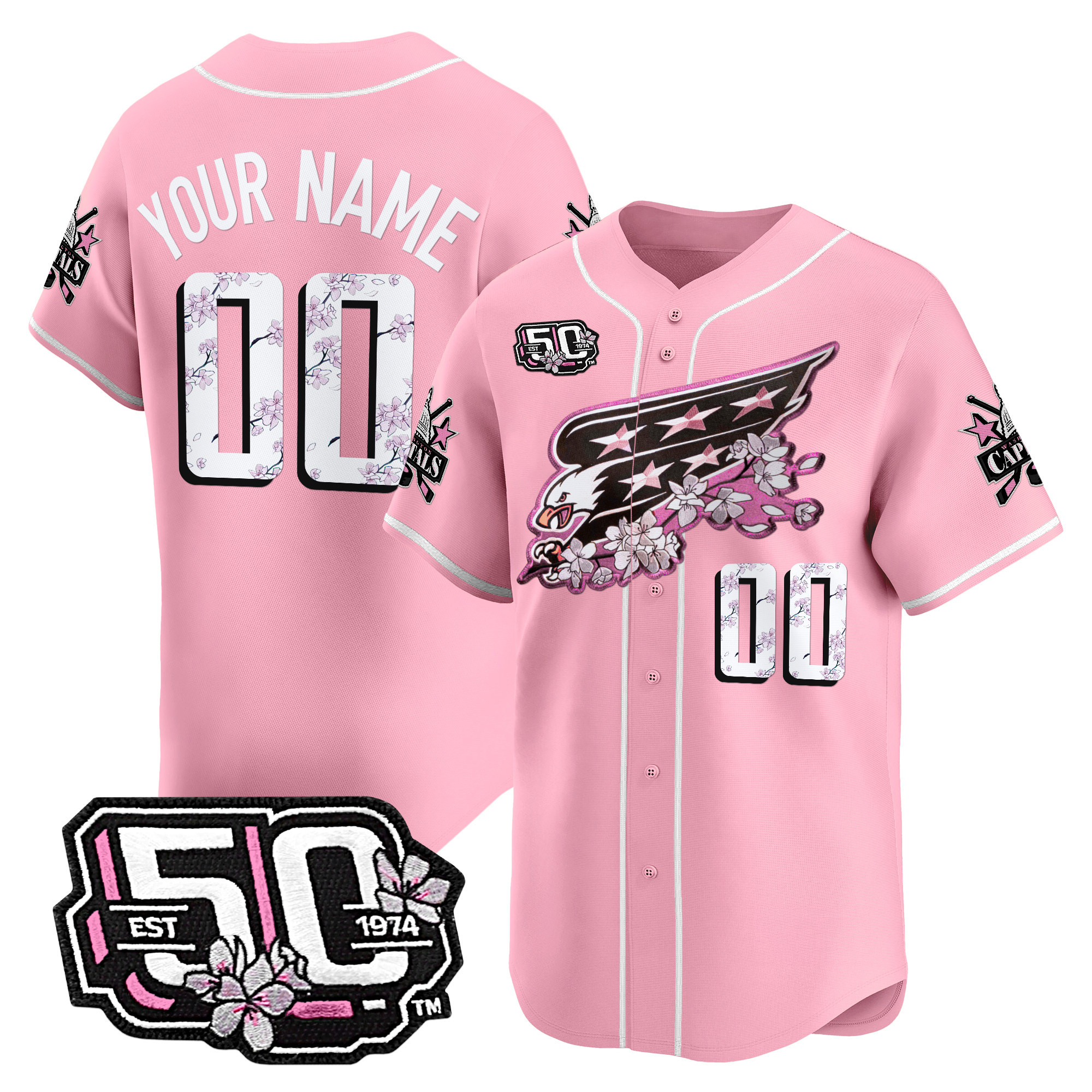 2025 Washington Capitals 50th Anniversary Cherry Blossom Style Vapor Premier Limited Custom Jersey All Stitched