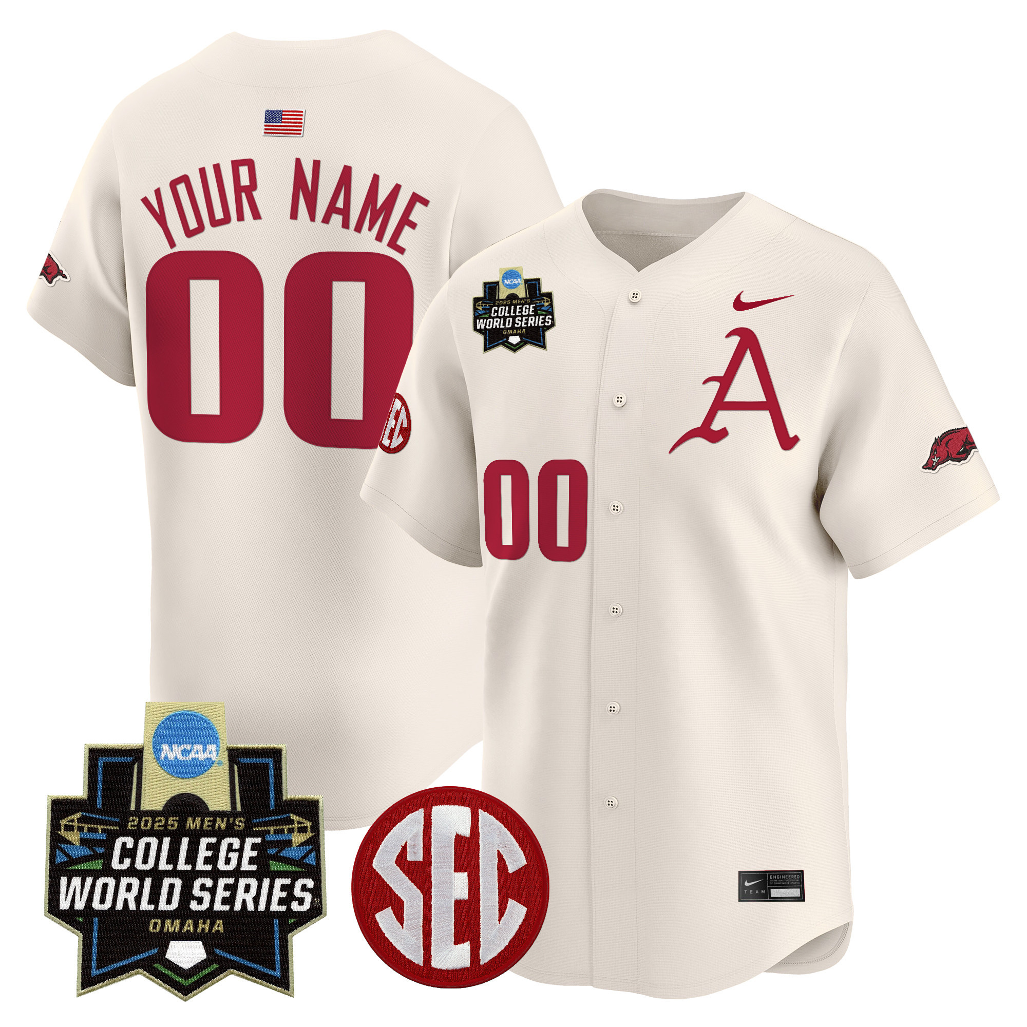Arkansas Razorbacks 2025 World Series Vapor Premier Limited Custom Jersey All Stitched