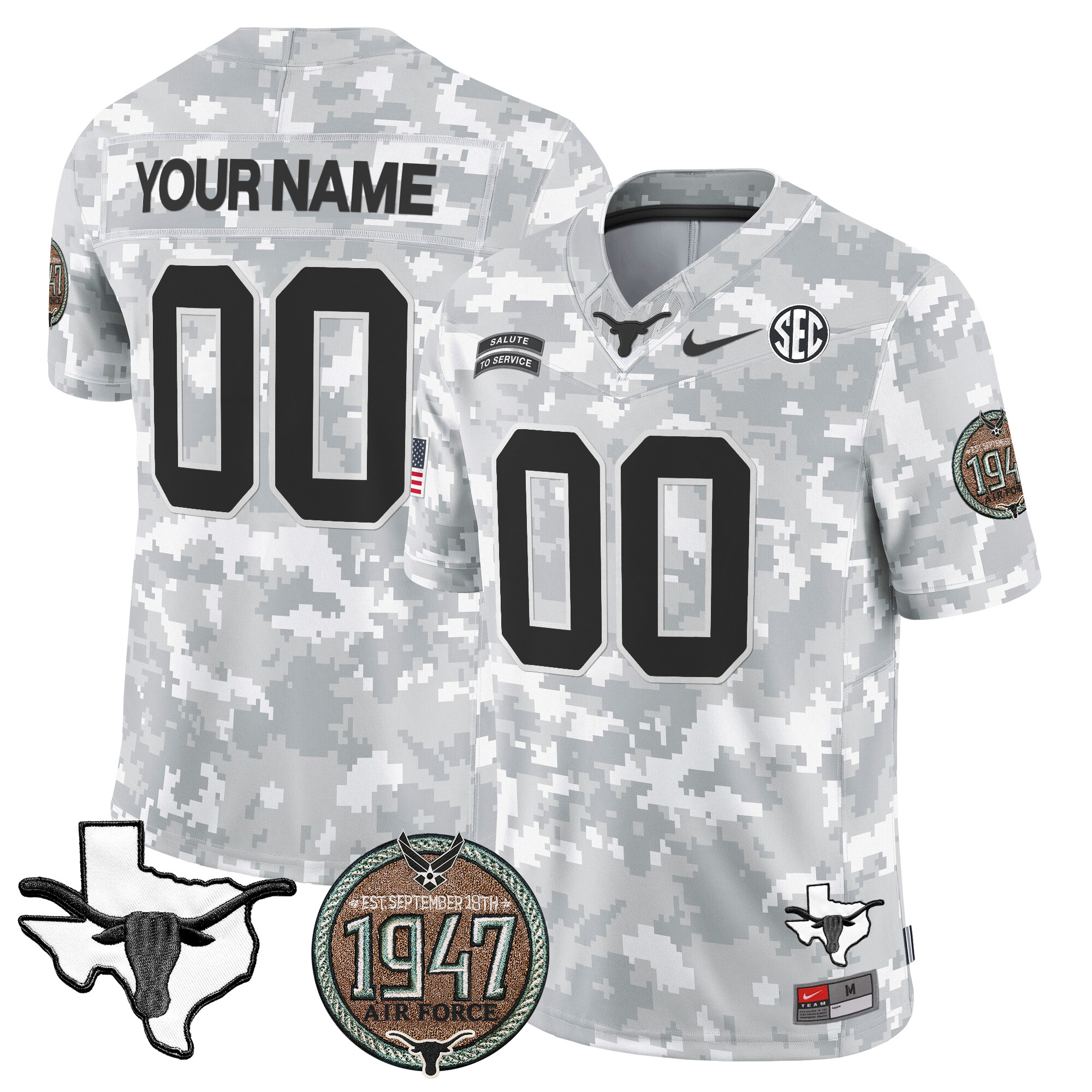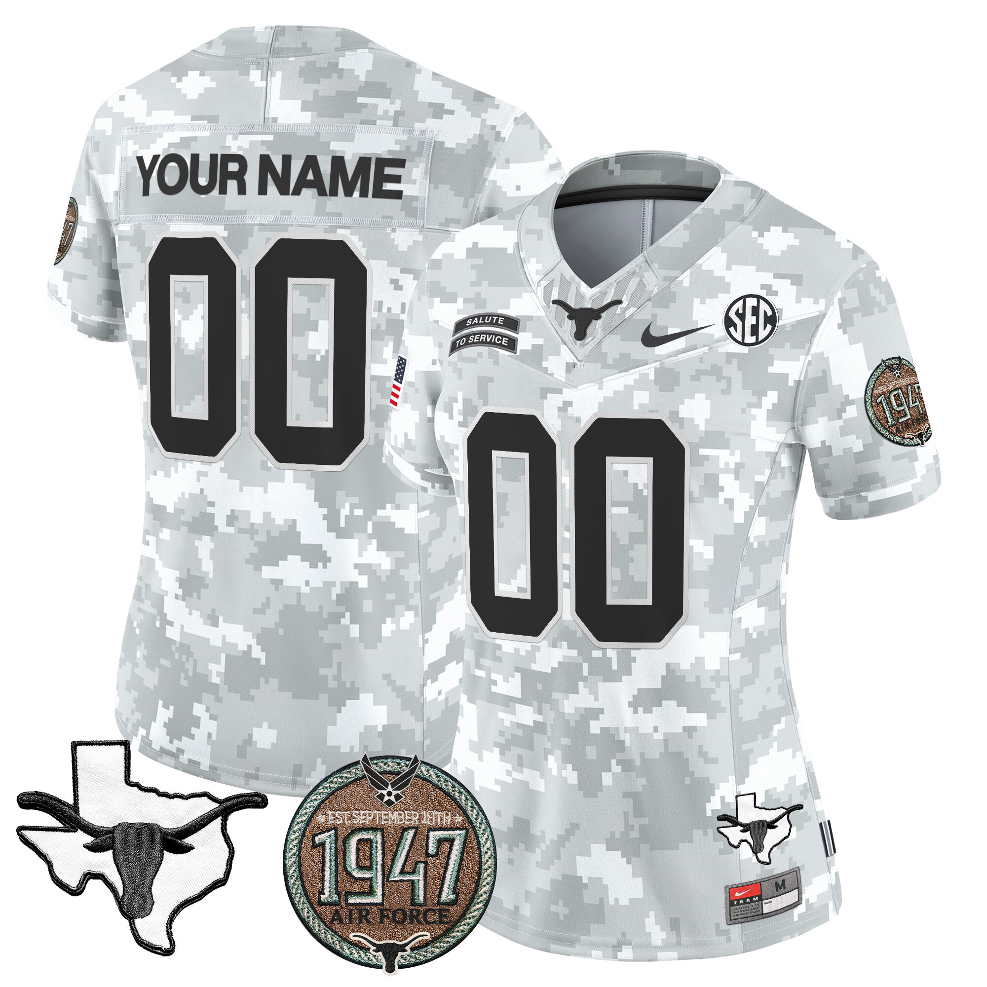 Longhorns 2024 Salute to Service Establishment Year Patch Vapor Limited Custom Jersey All Stitched