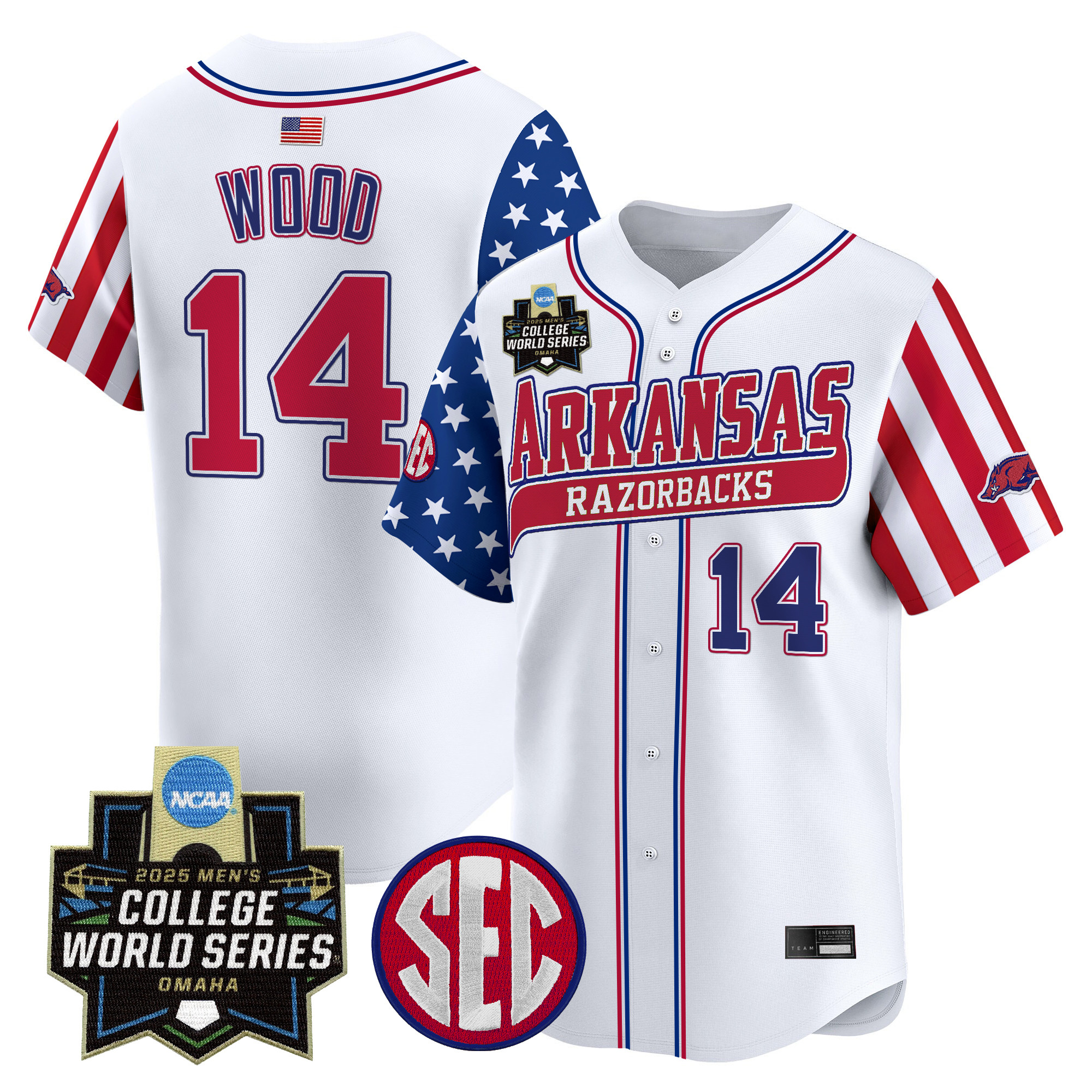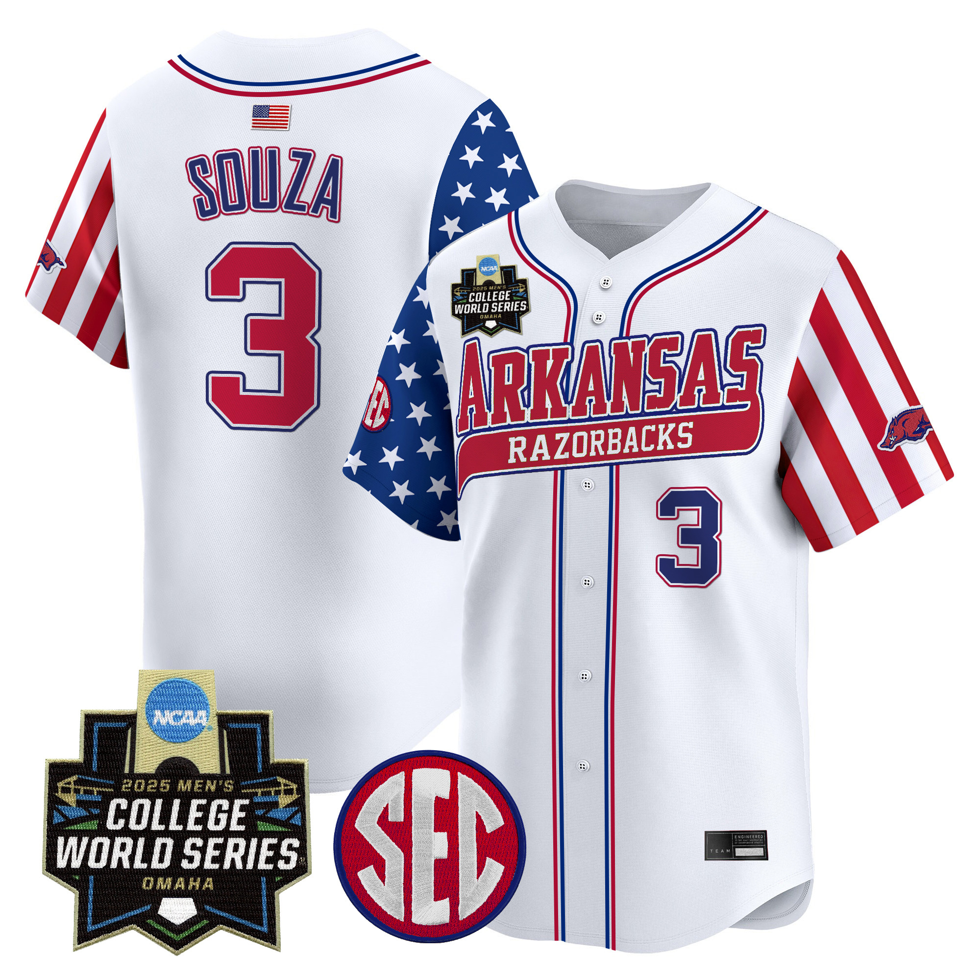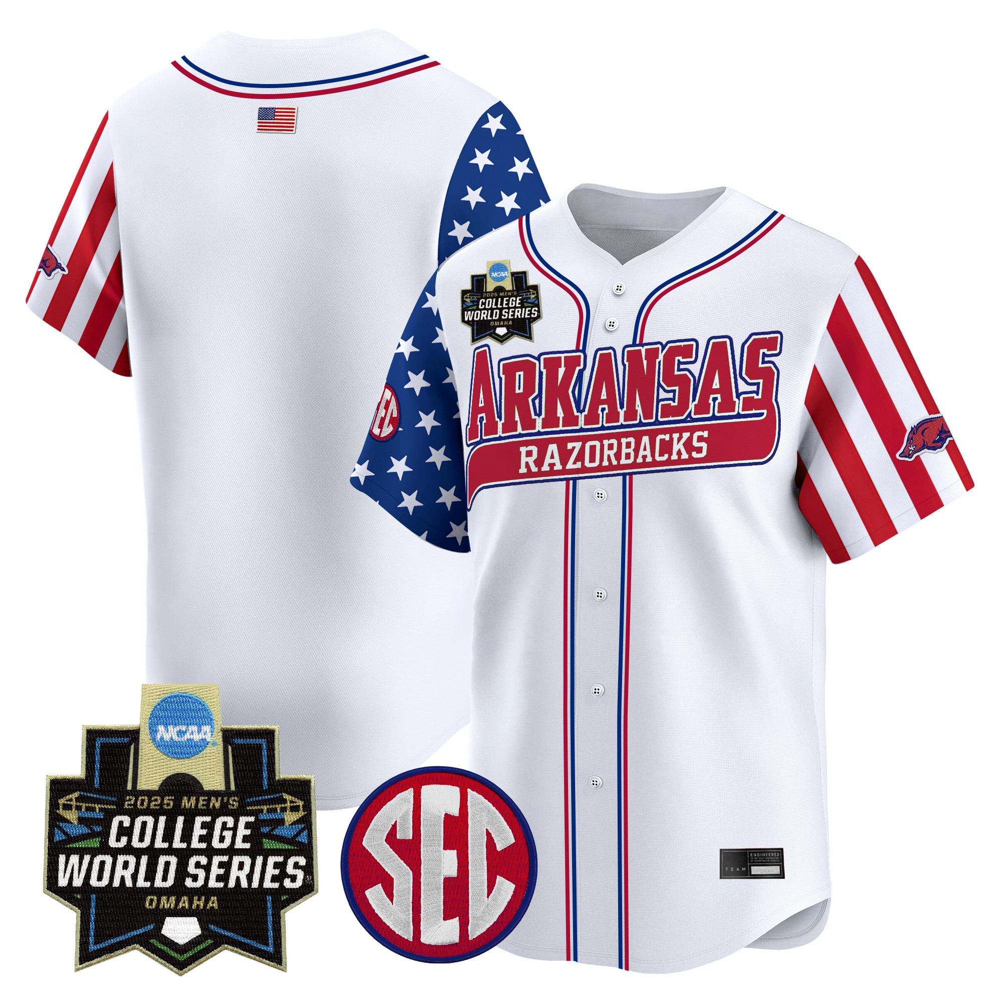 Mens Arkansas Razorbacks 2025 Independence Day Vapor Premier Limited Jersey World Series Patch All Stitched