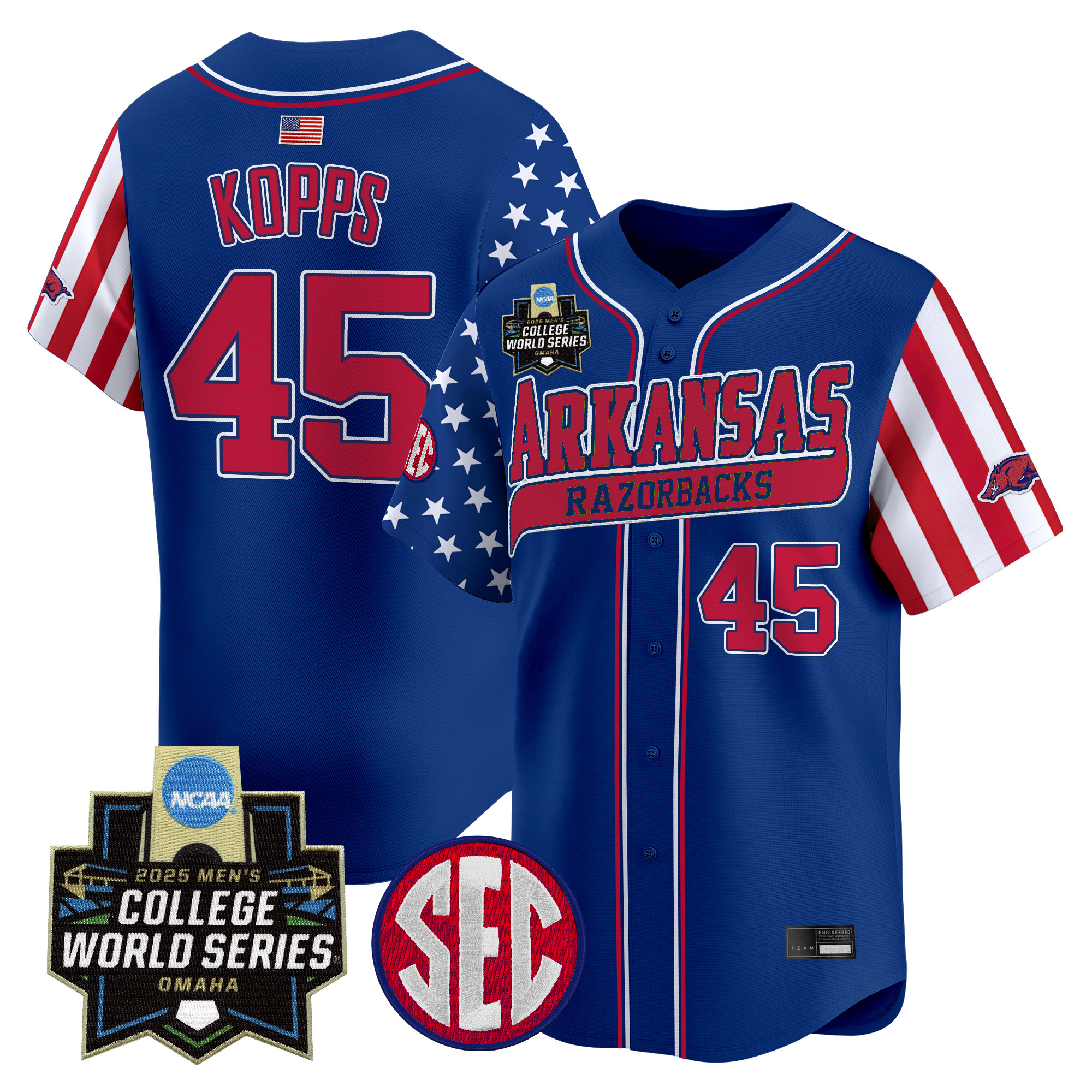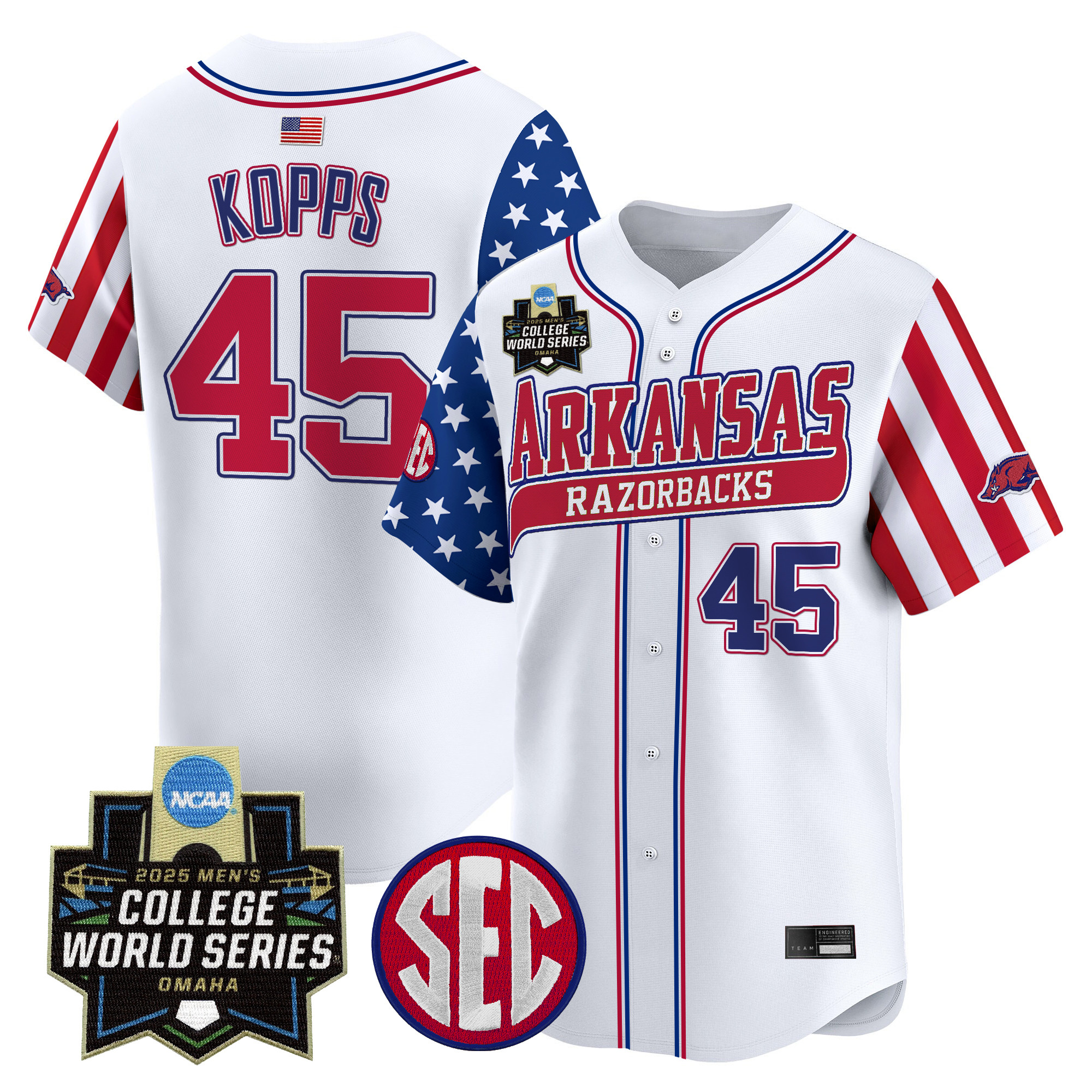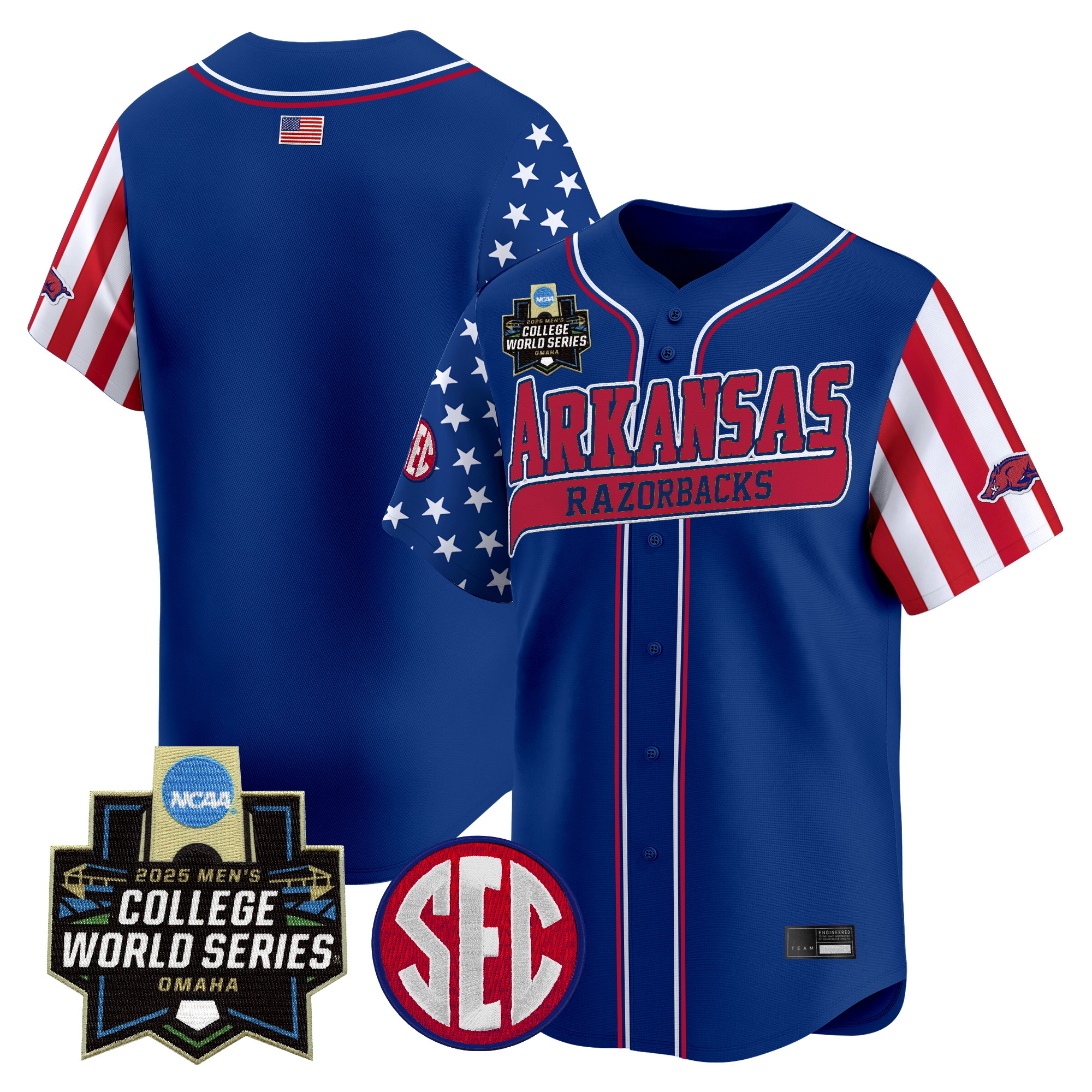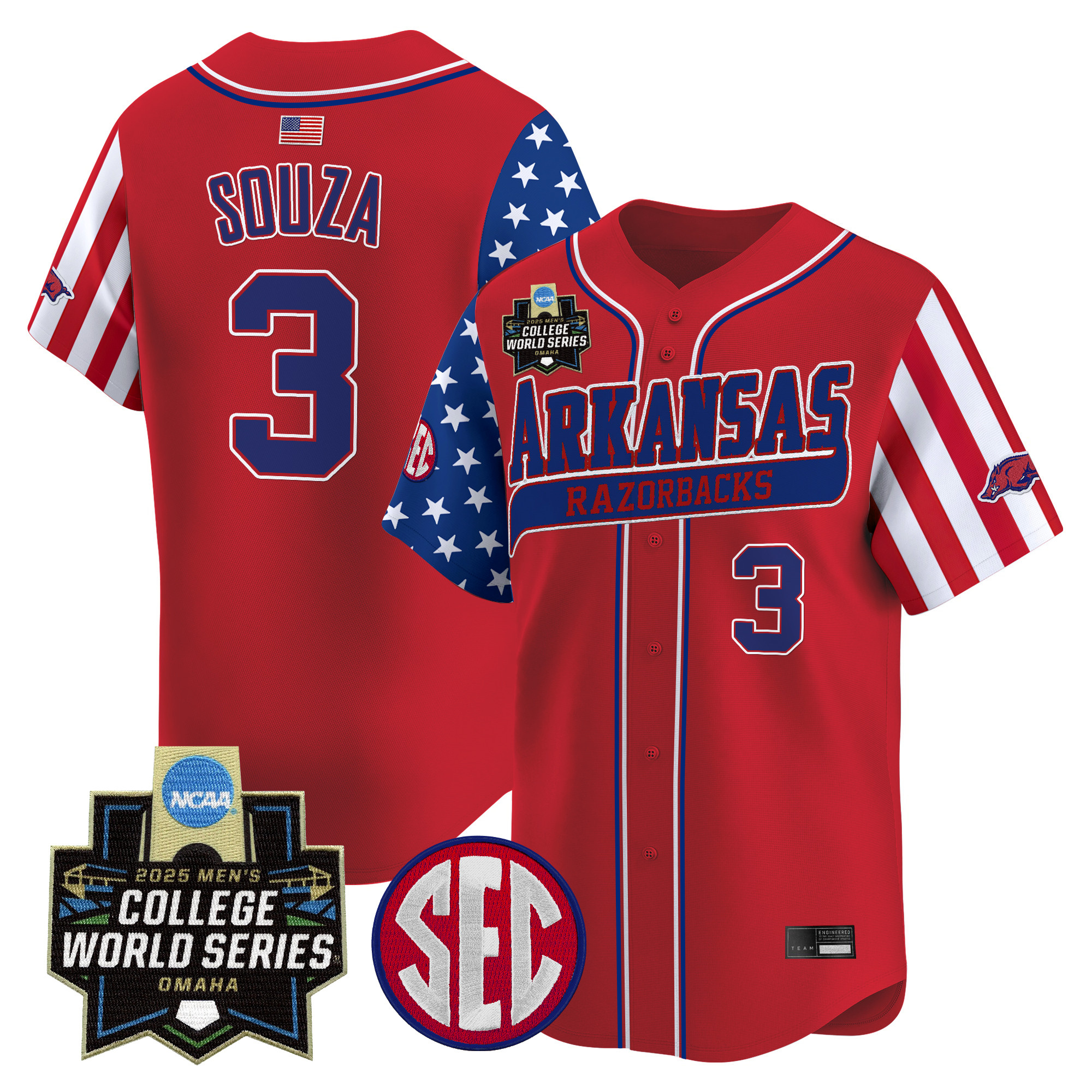 Mens Arkansas Razorbacks 2025 Independence Day Vapor Premier Limited Jersey World Series Patch All Stitched