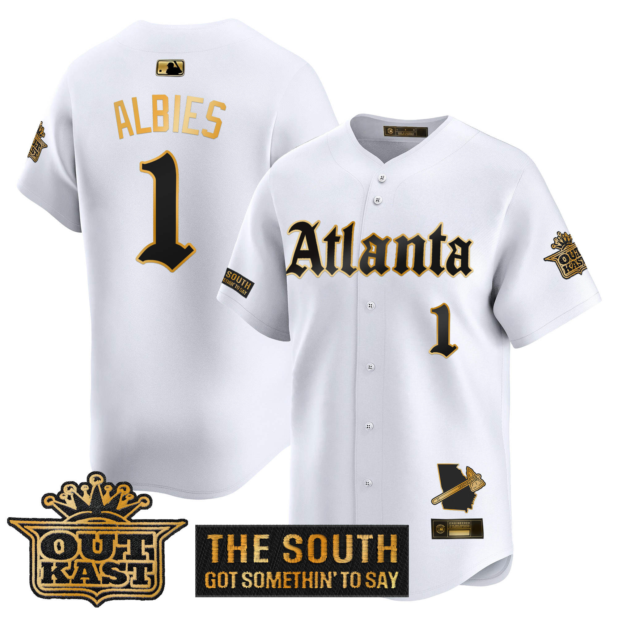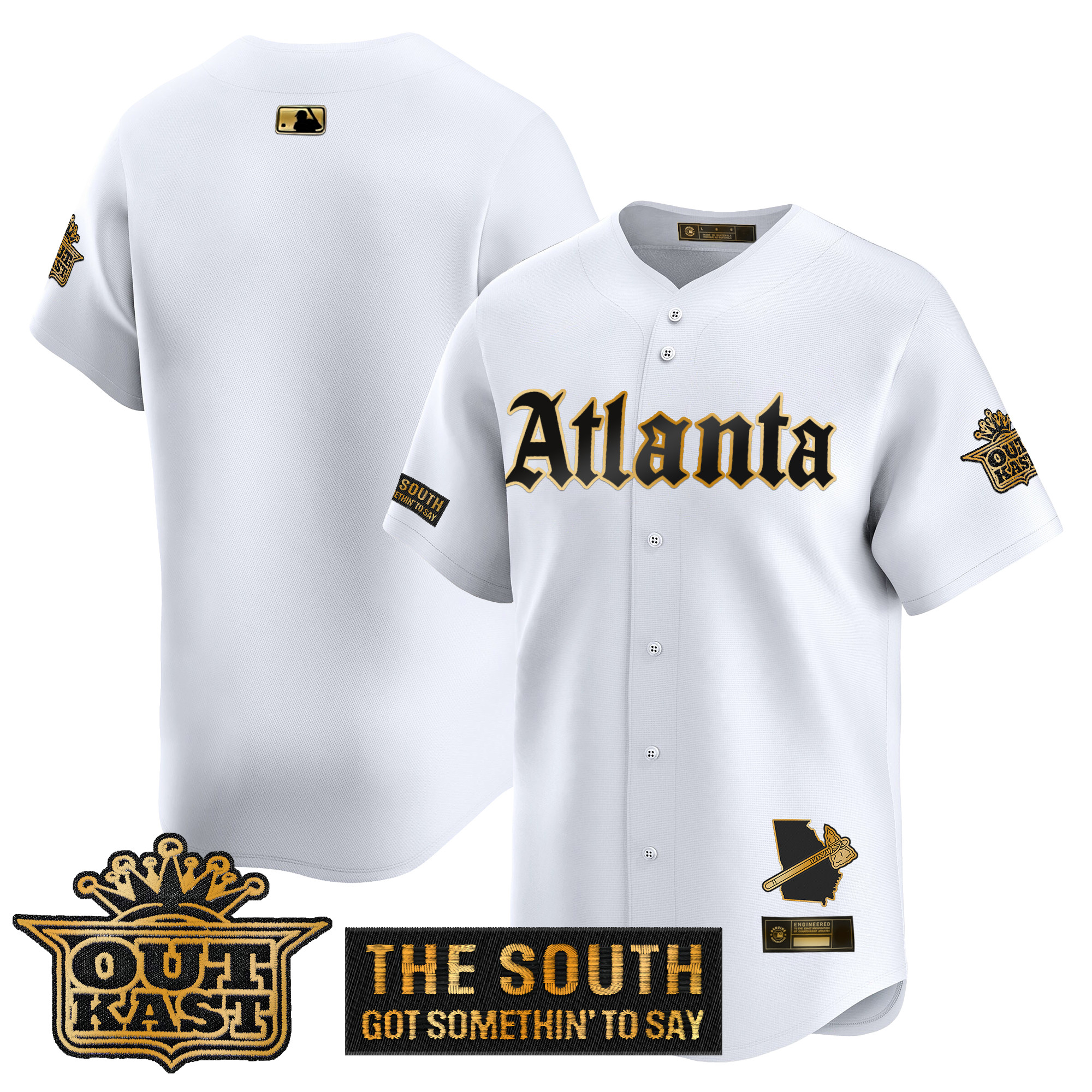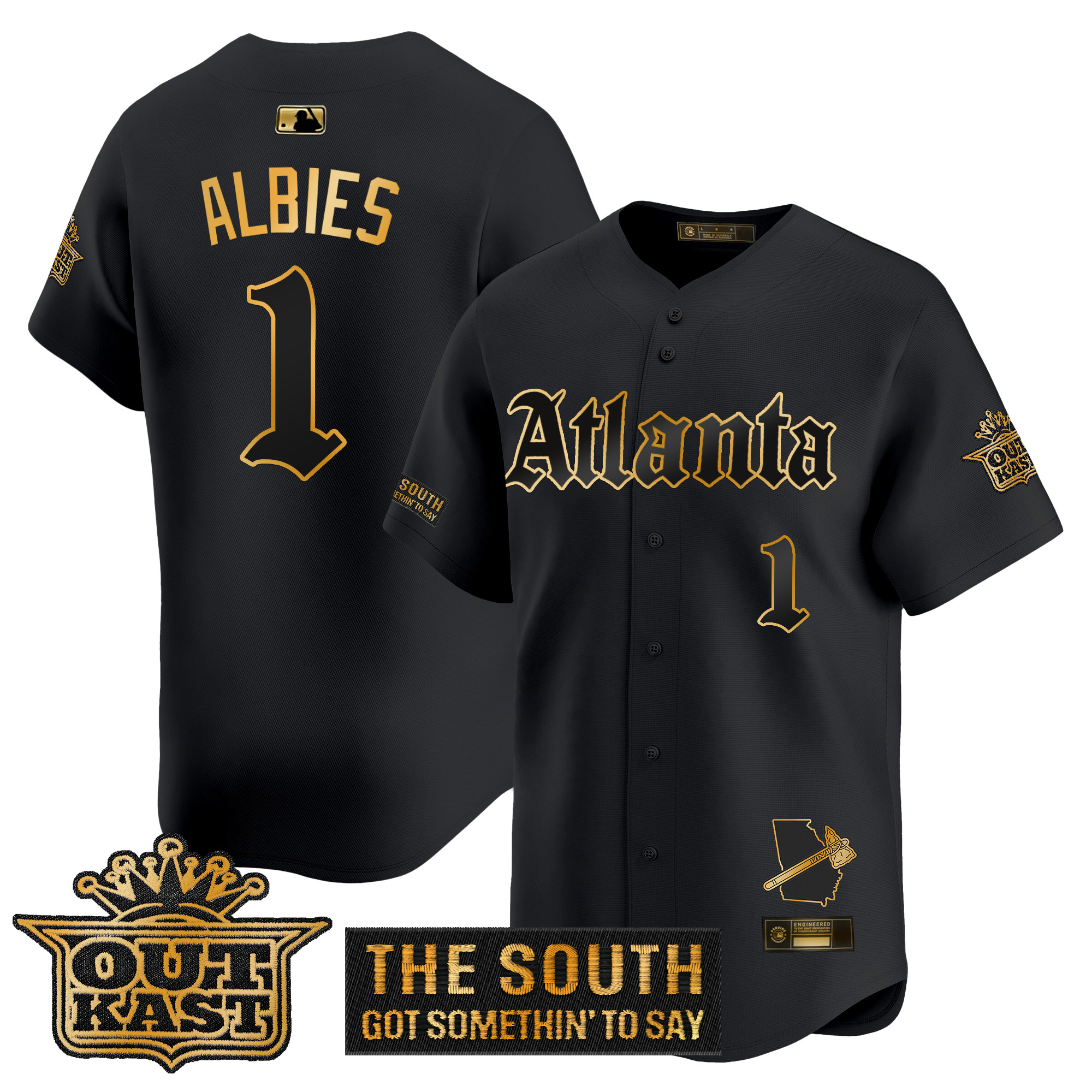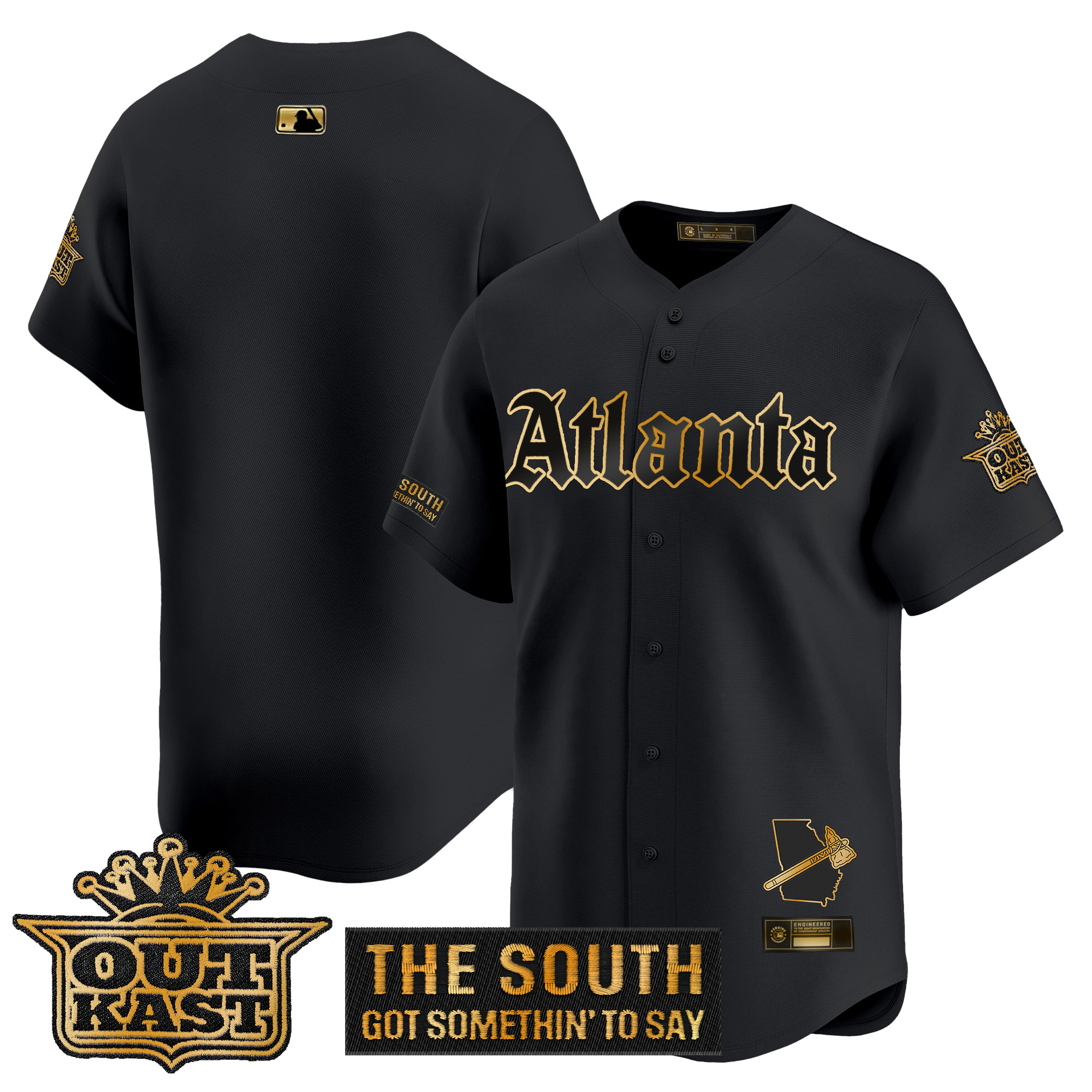 Mens Atlanta Braves Gothic South x Outkast Edition Gold Vapor Premier Limited Jersey All Stitched