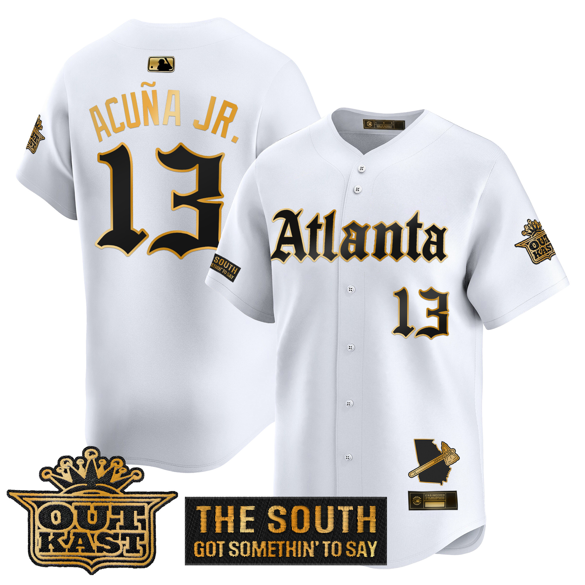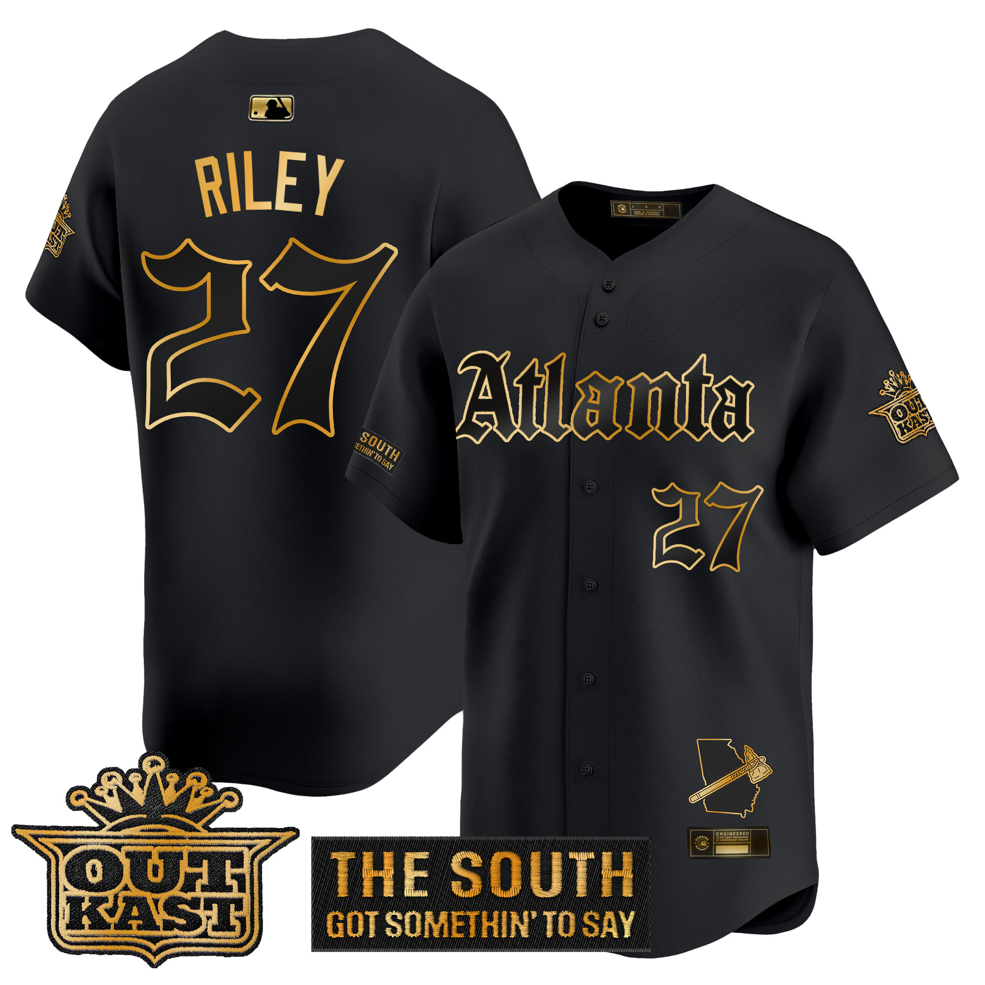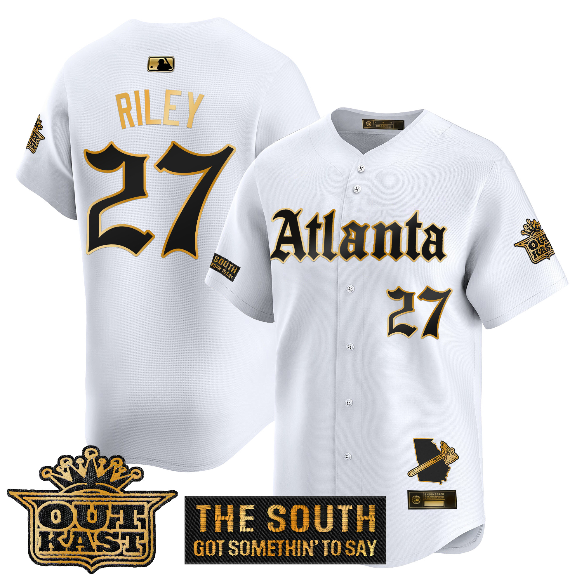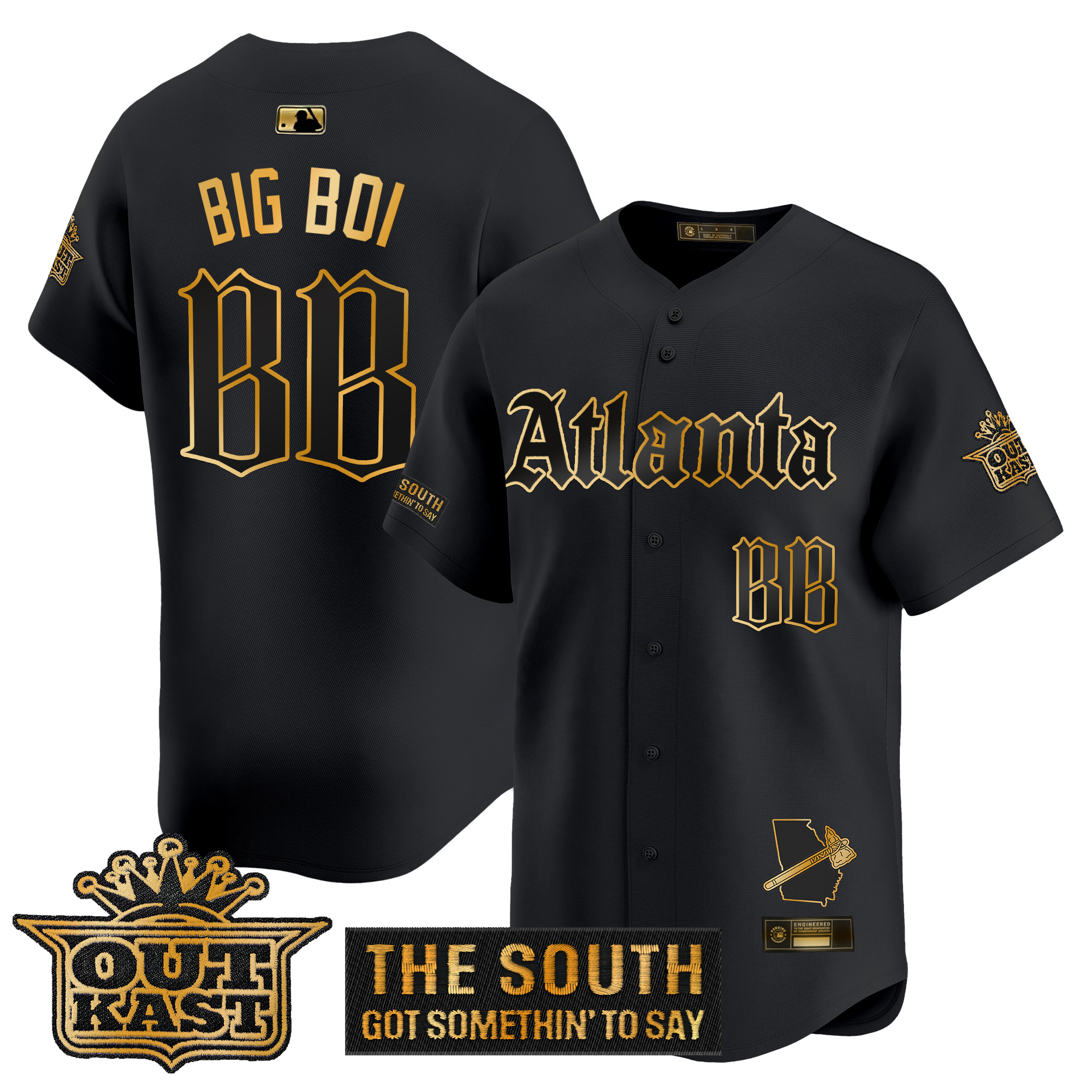 Mens Atlanta Braves Gothic South x Outkast Edition Gold Vapor Premier Limited Jersey All Stitched