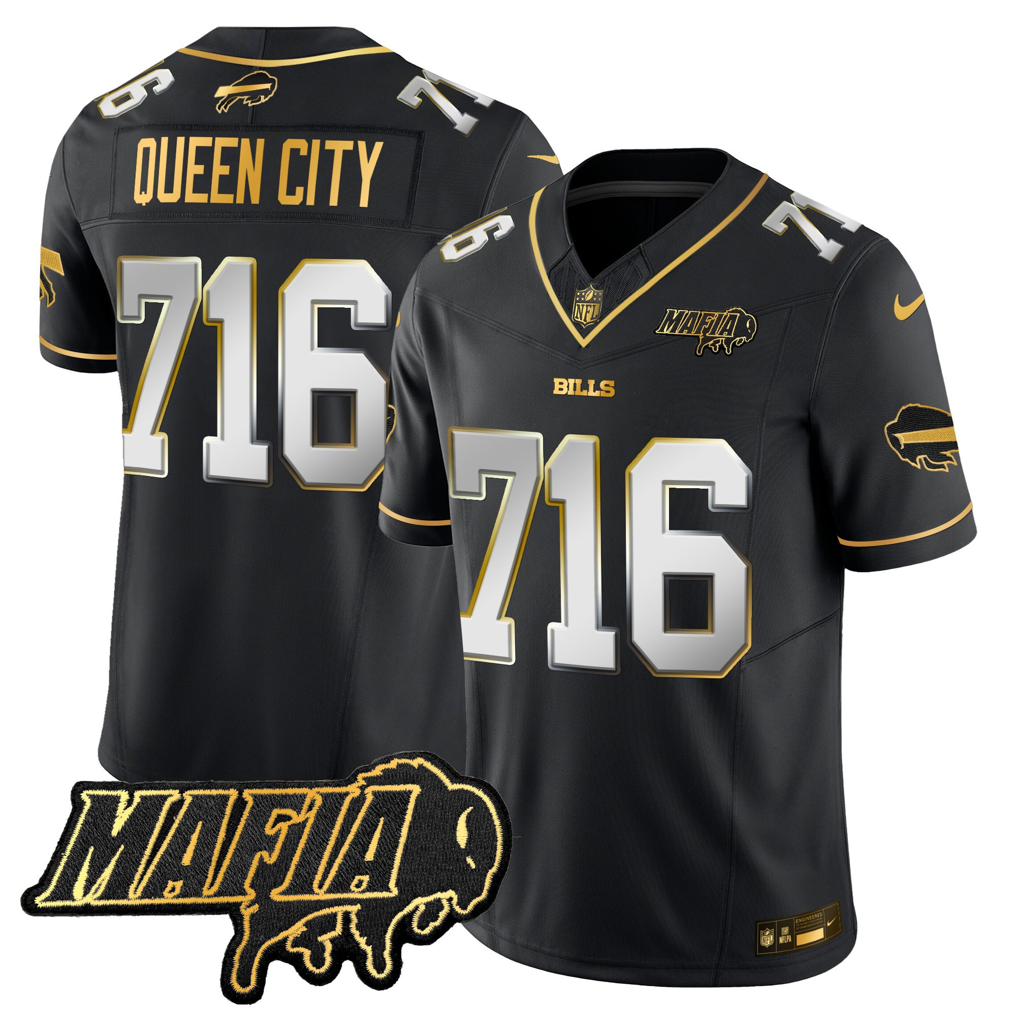 Mens Buffalo Bills 2025 Bills Mafia Patch Gold Vapor Limited Jersey All Stitched