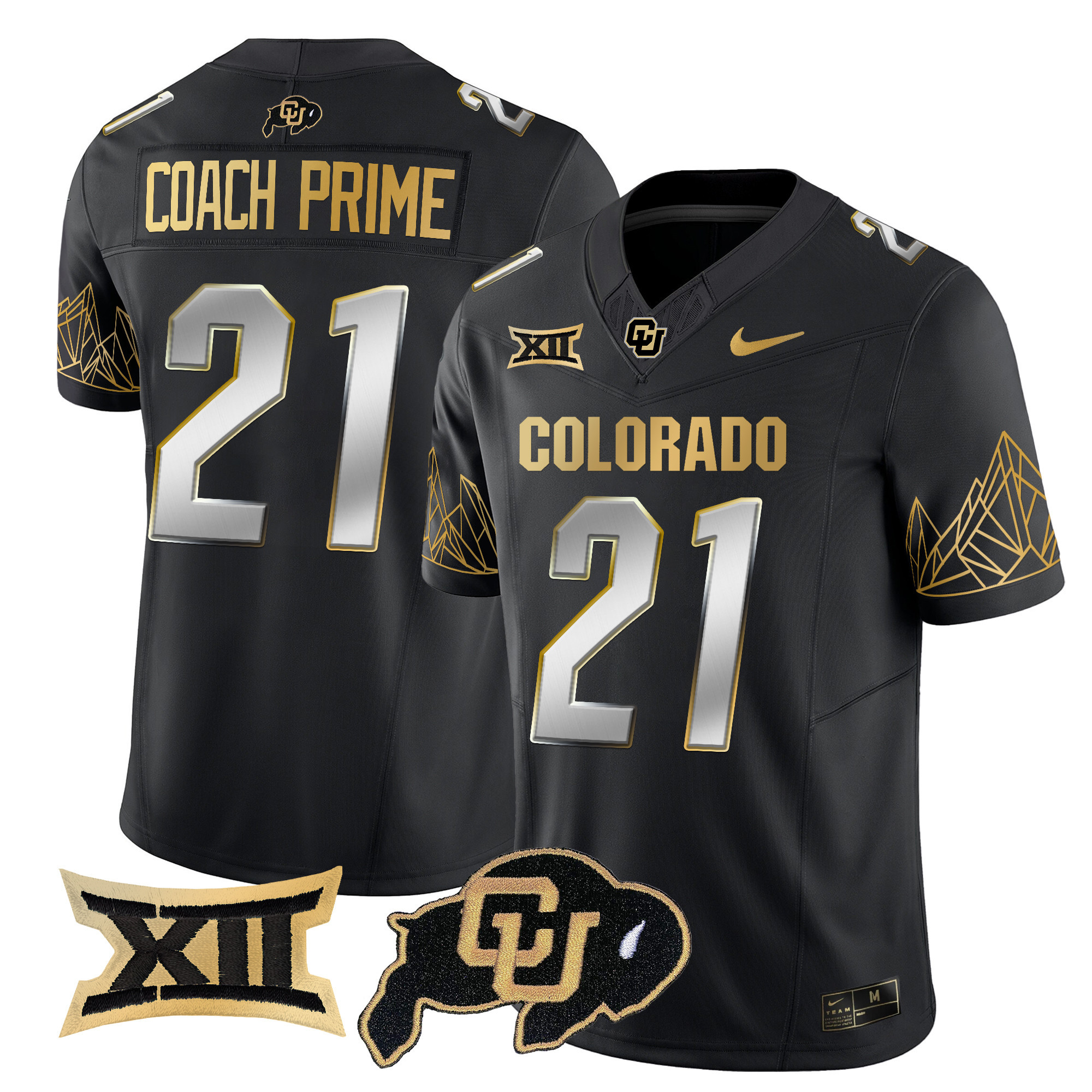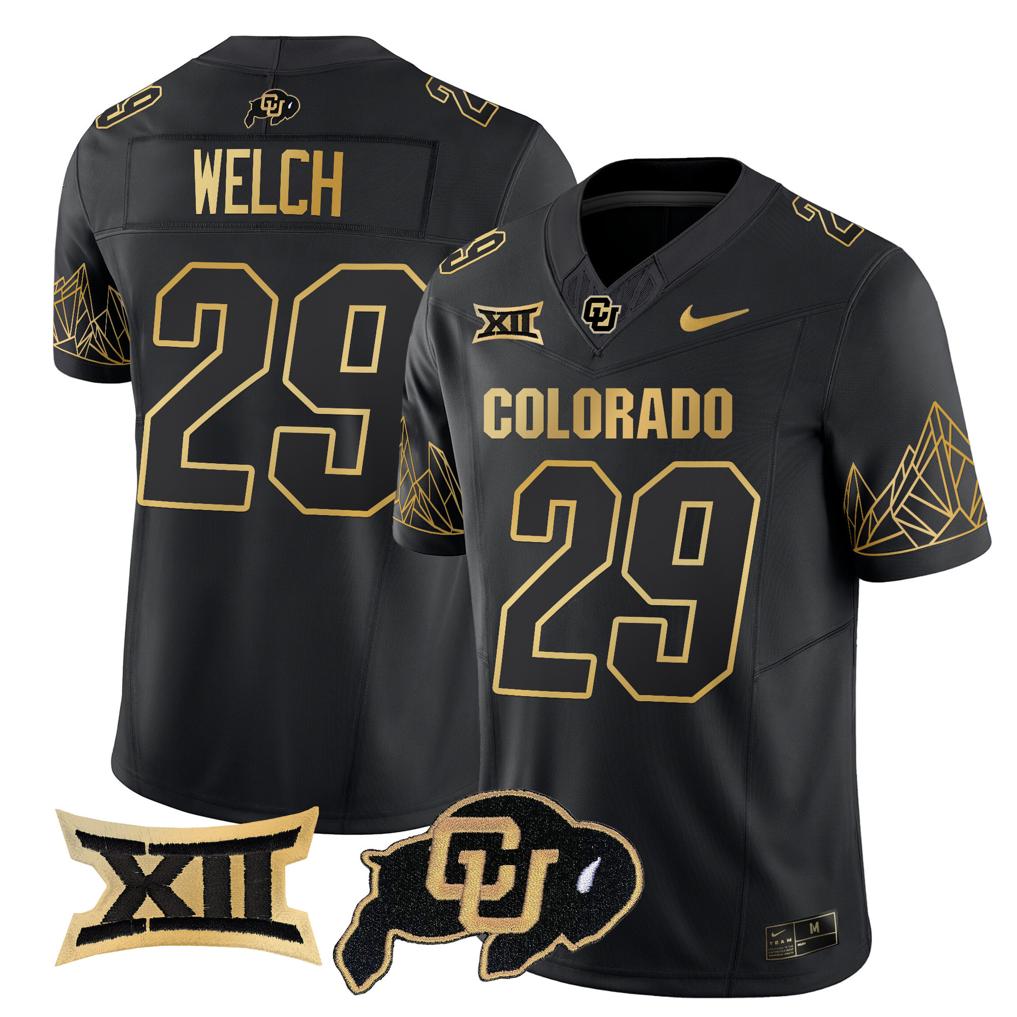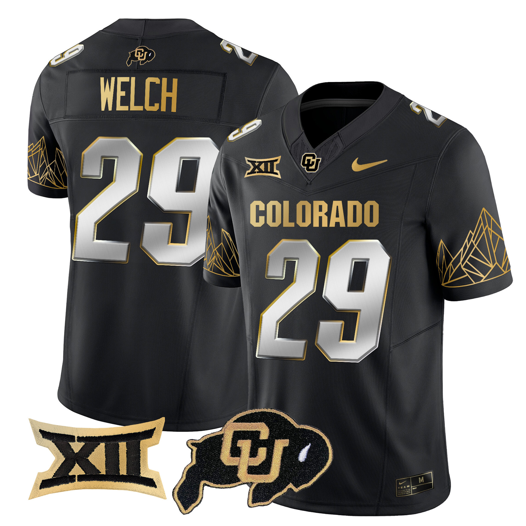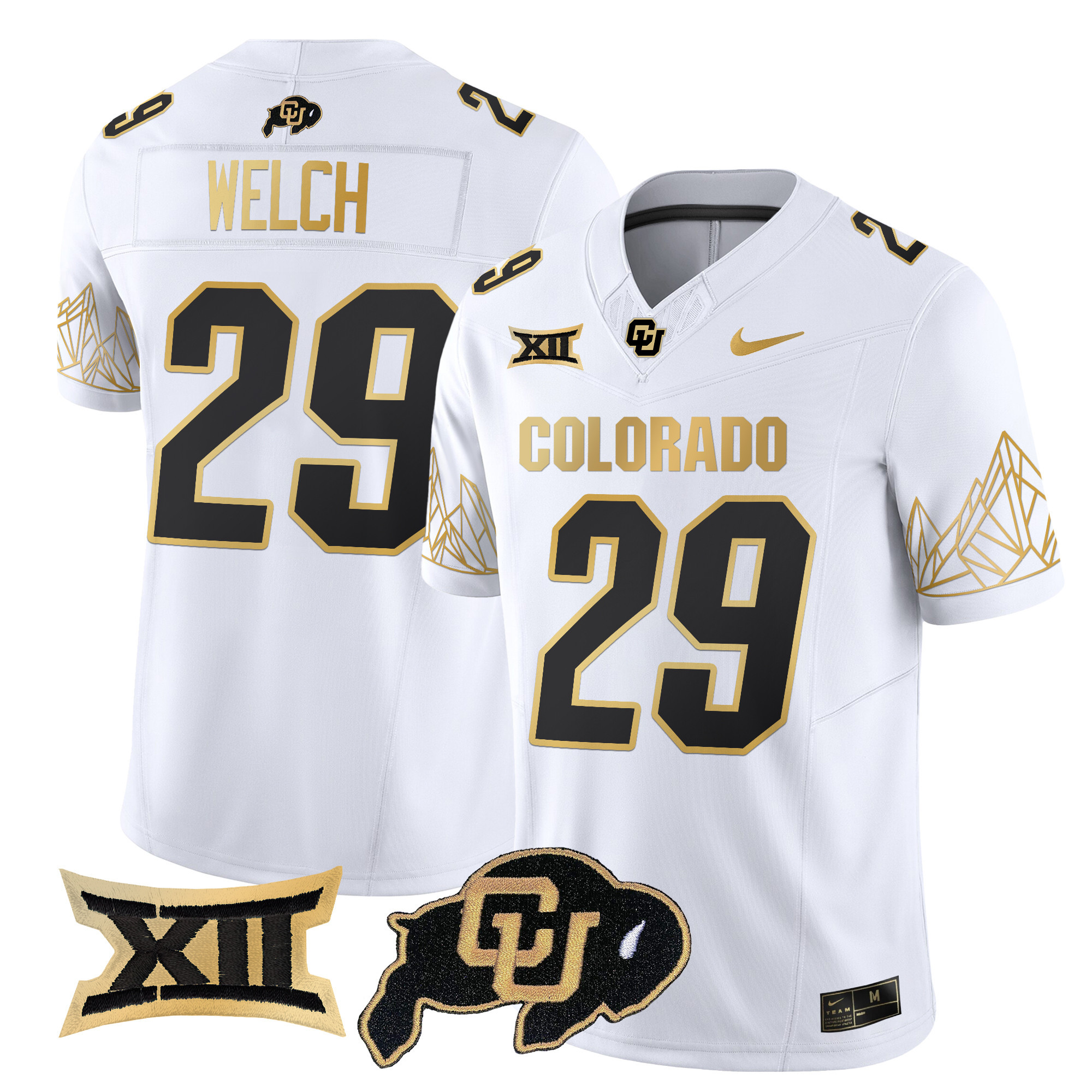 Men’s Colorado Buffaloes Big 12 XII Patch Gold Vapor Limited Jersey All Stitched