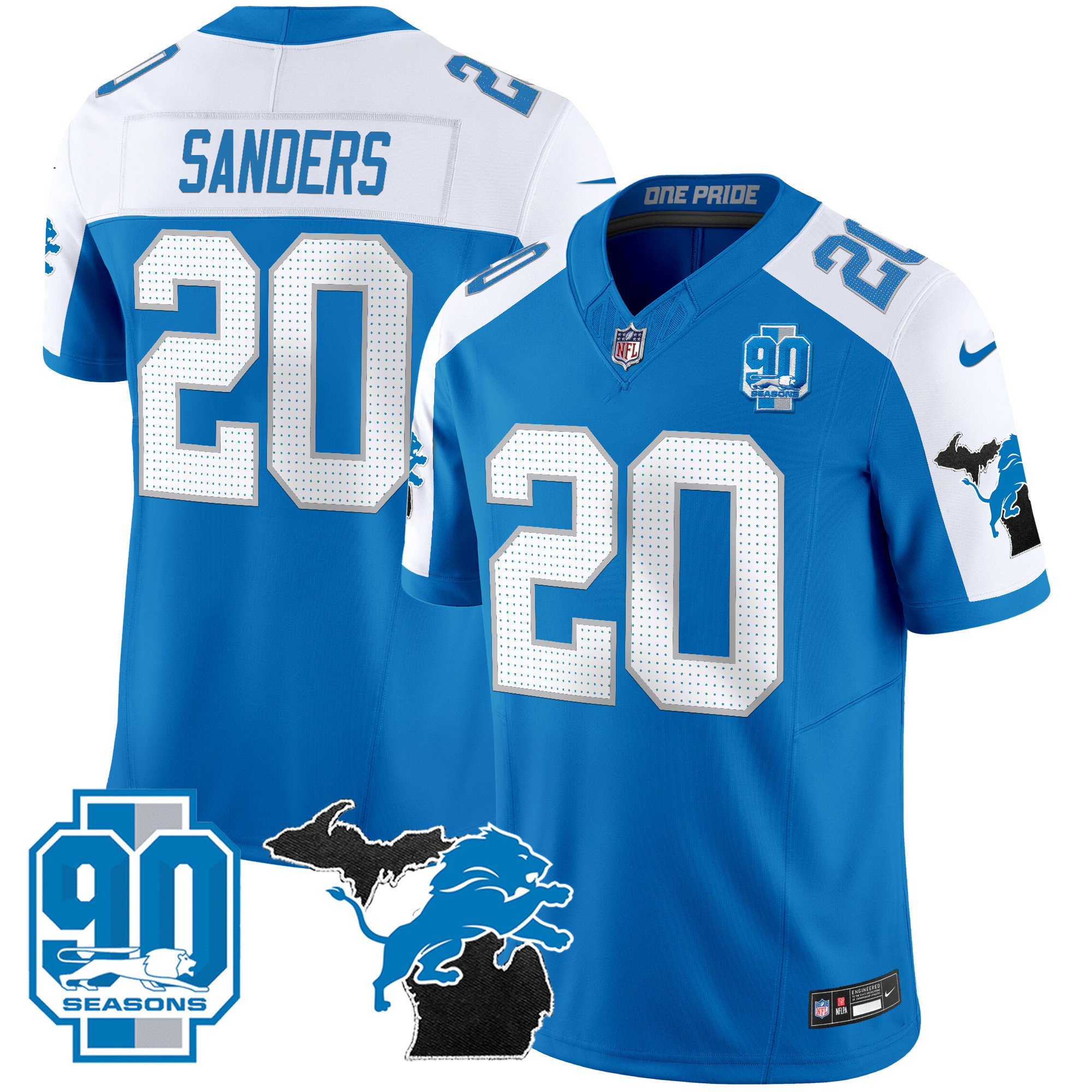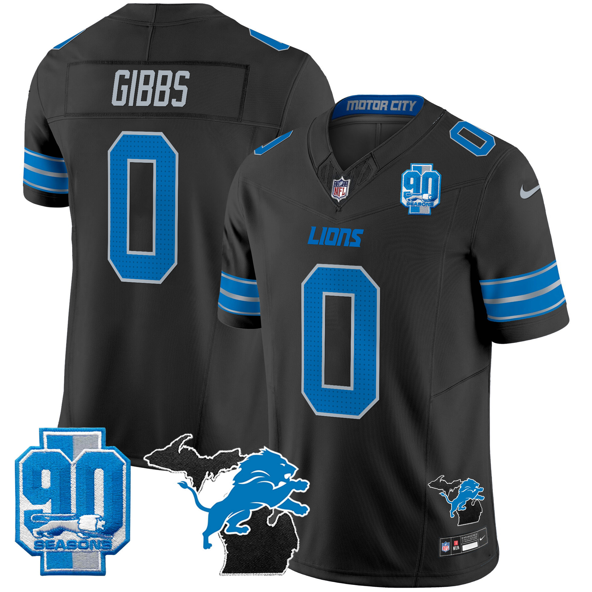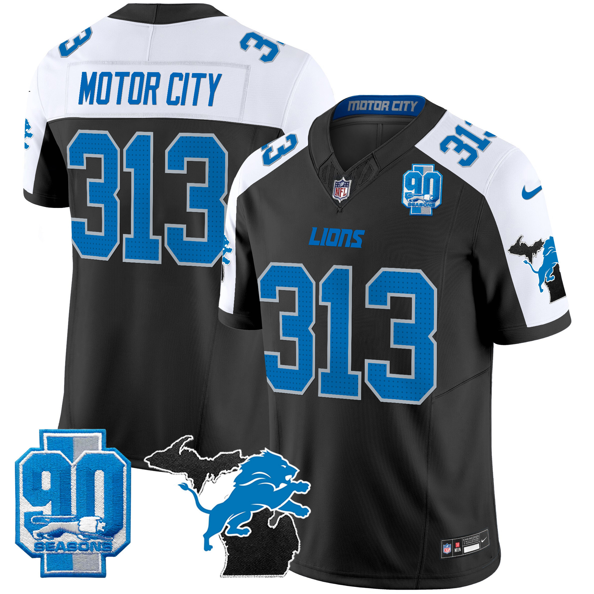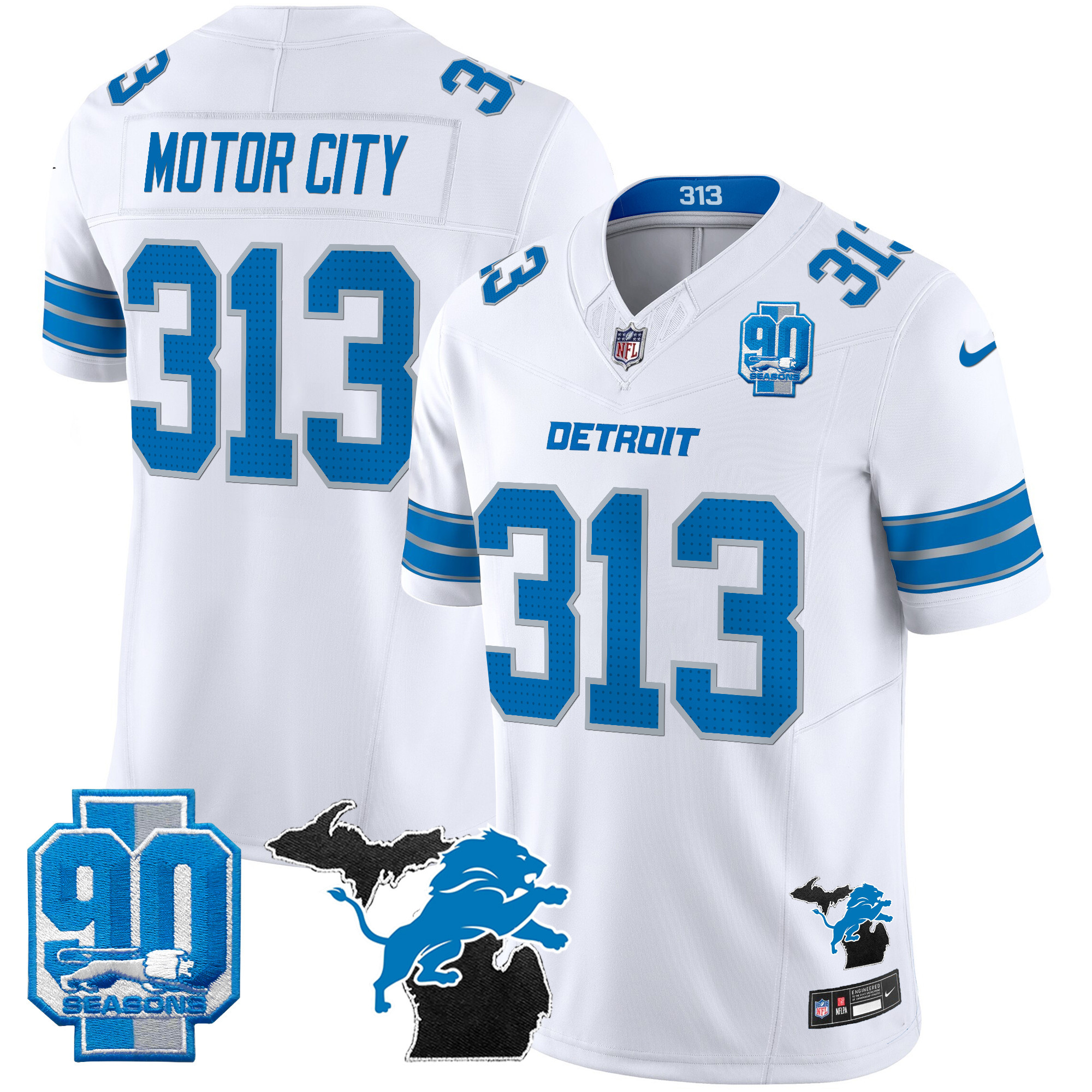 Mens Detroit Lions 2025 Michigan & 90th Year Patch Vapor Jersey All Stitched