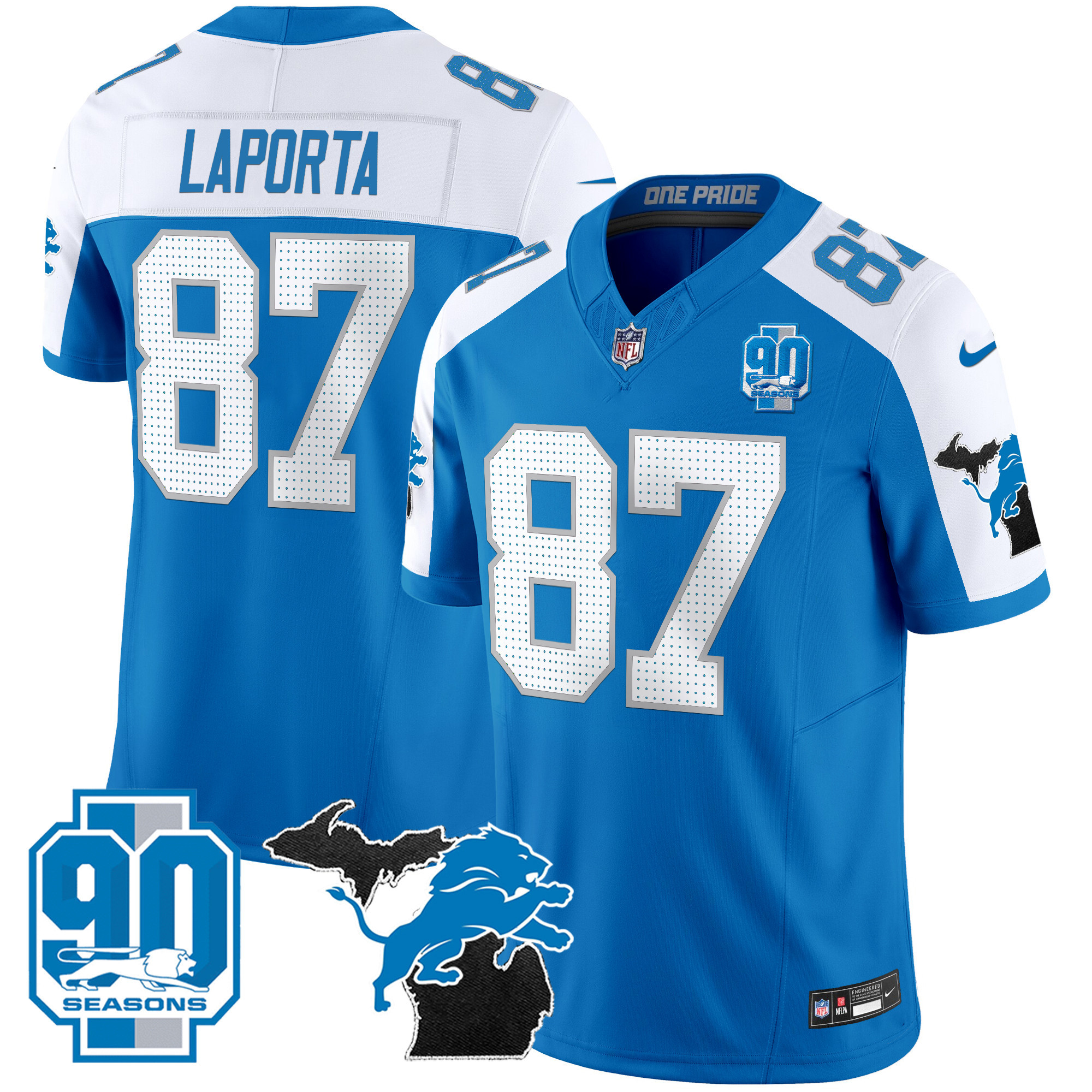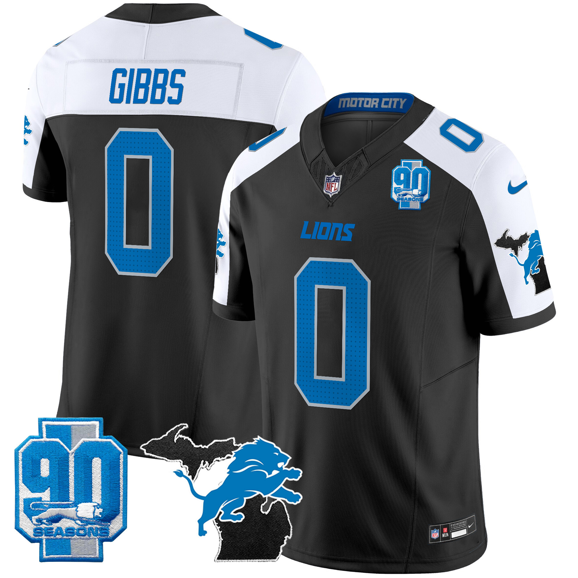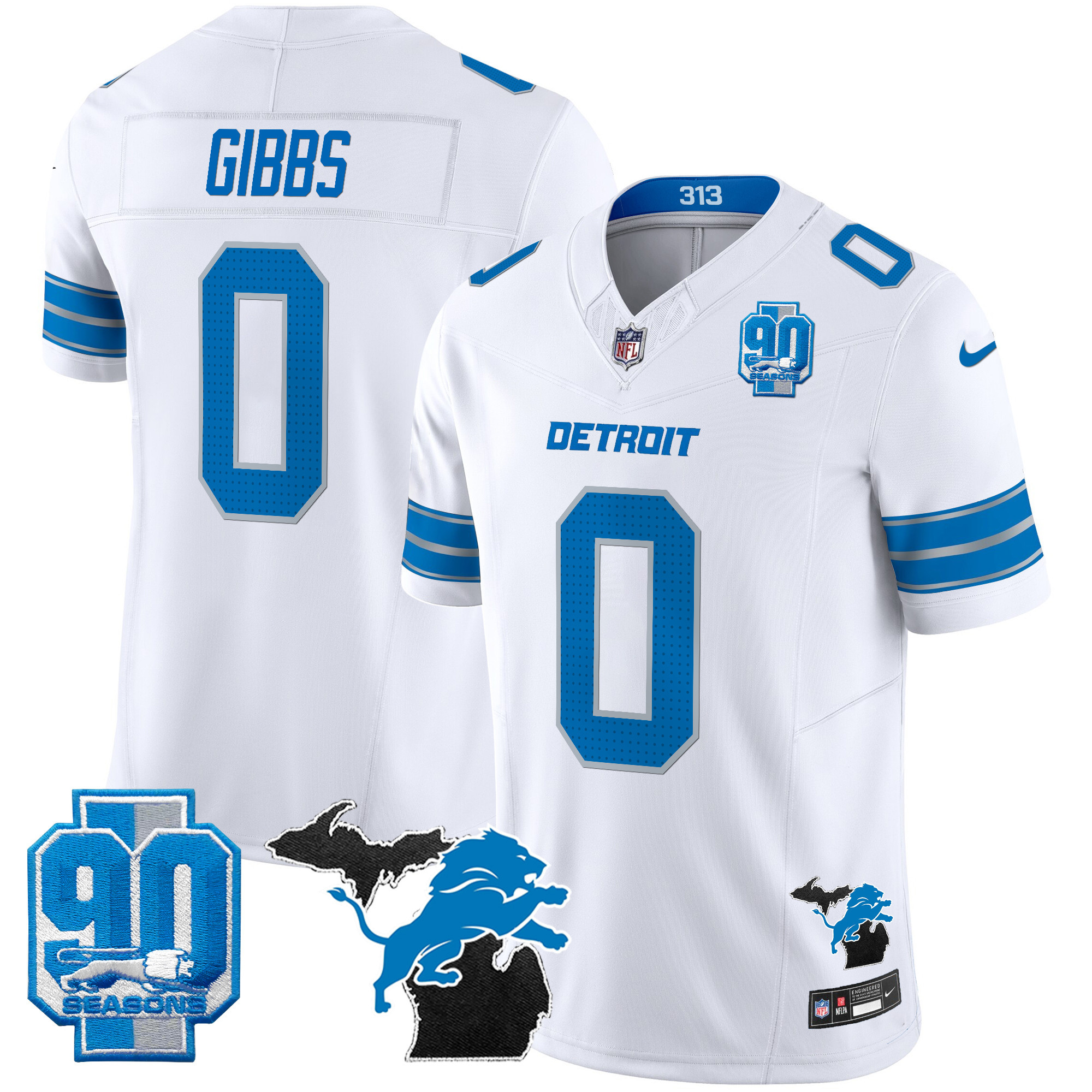 Mens Detroit Lions 2025 Michigan & 90th Year Patch Vapor Jersey All Stitched