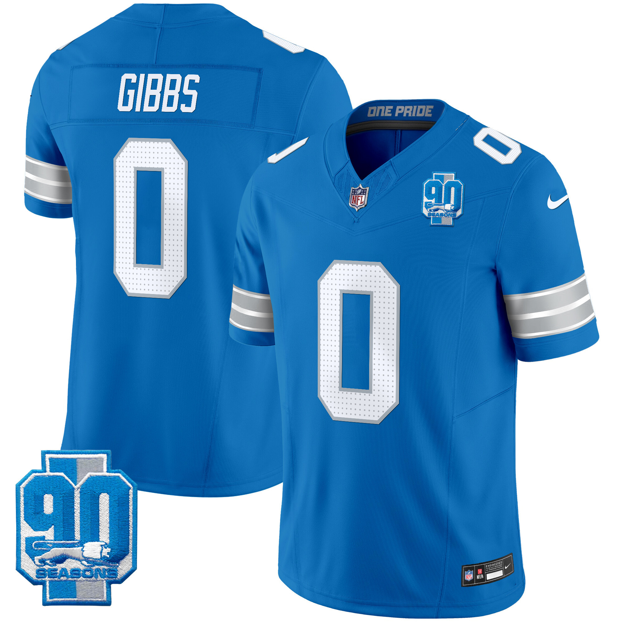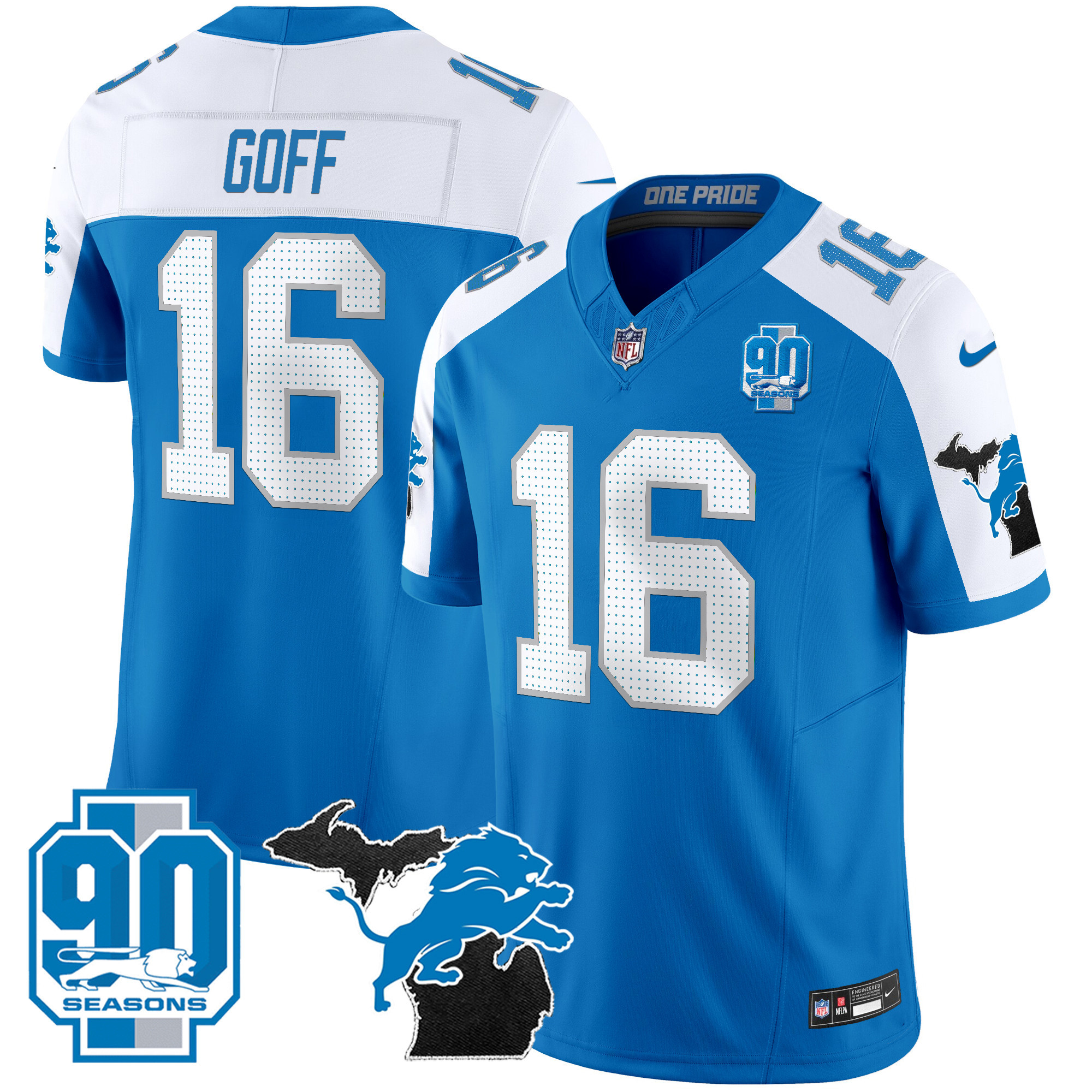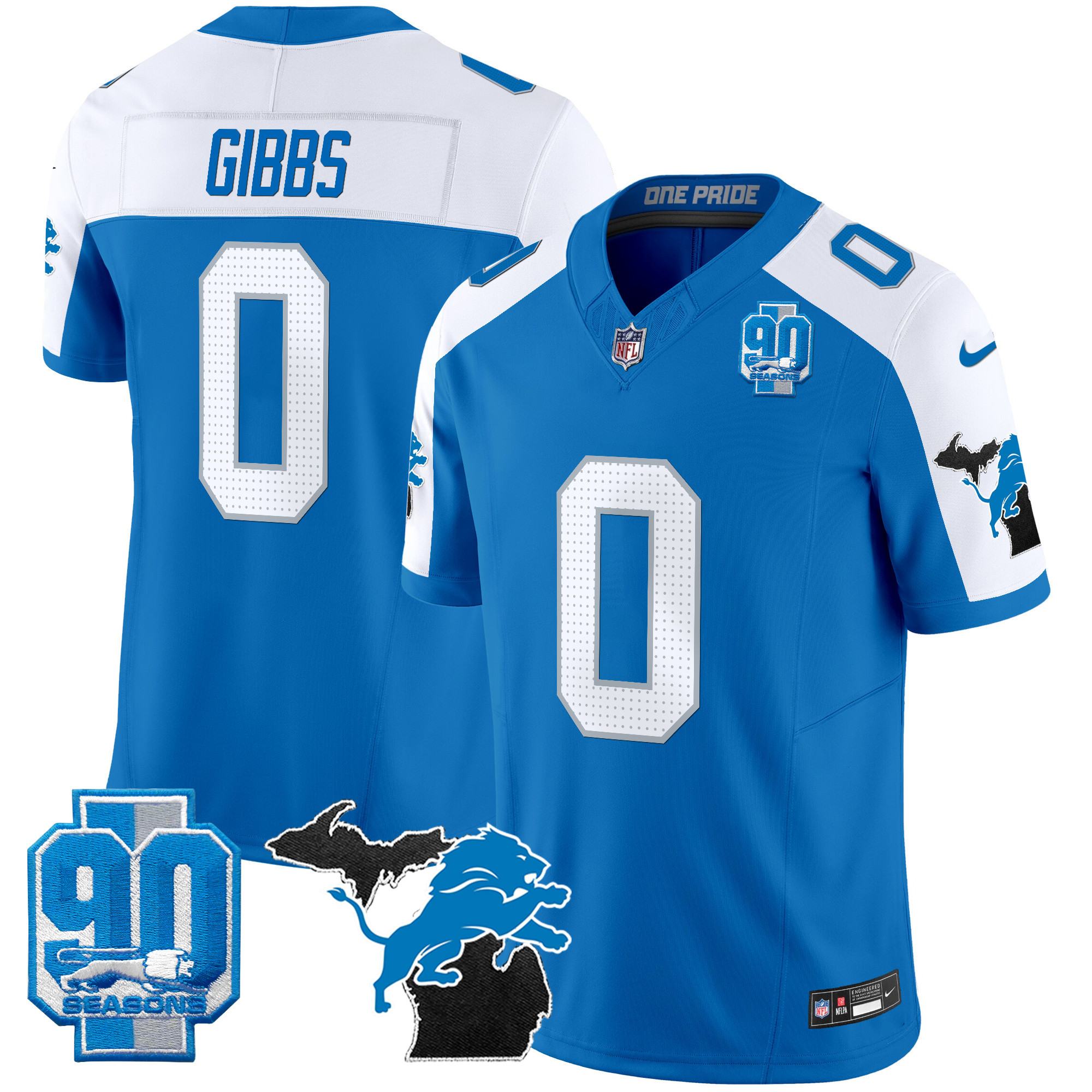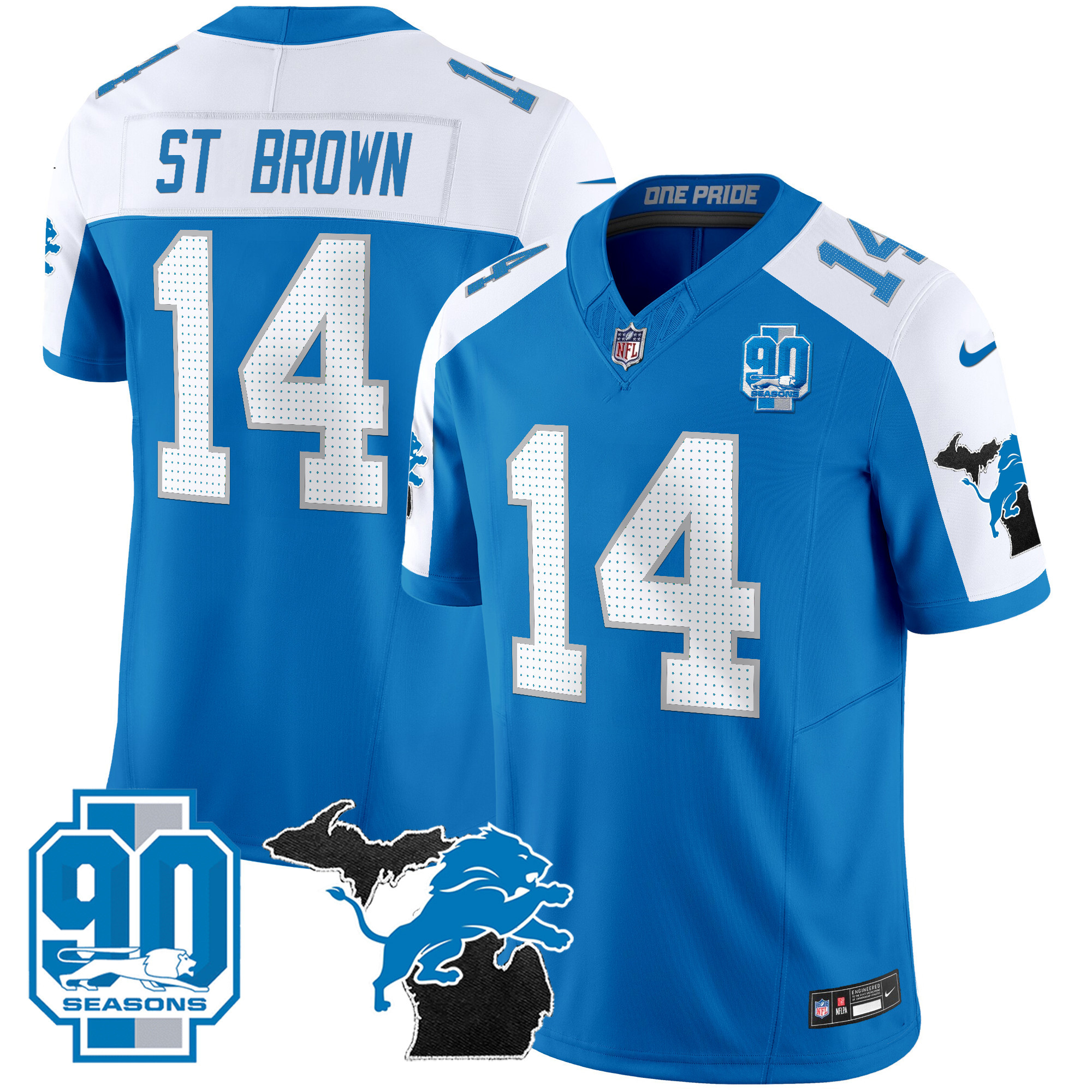 Mens Detroit Lions 2025 Michigan & 90th Year Patch Vapor Jersey All Stitched