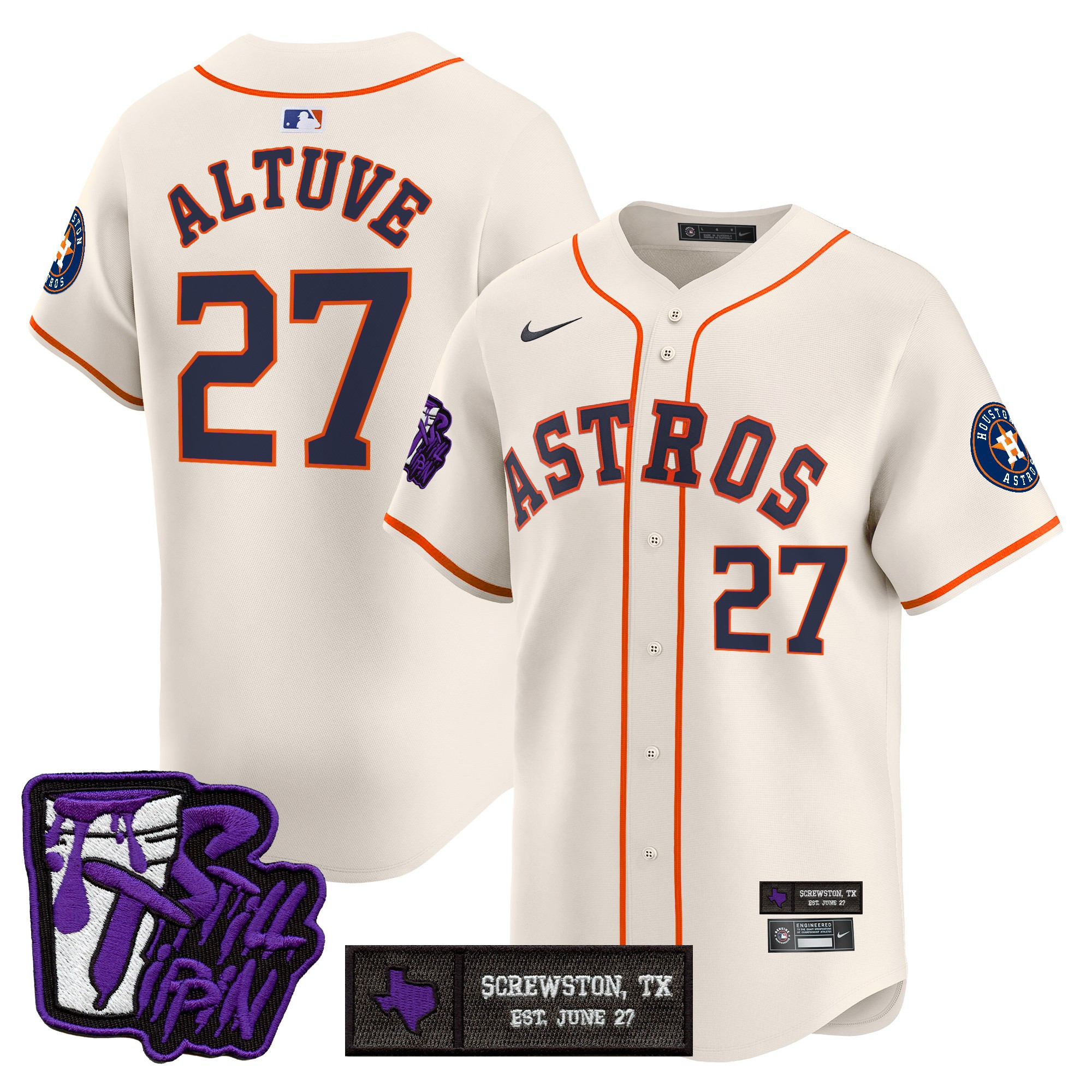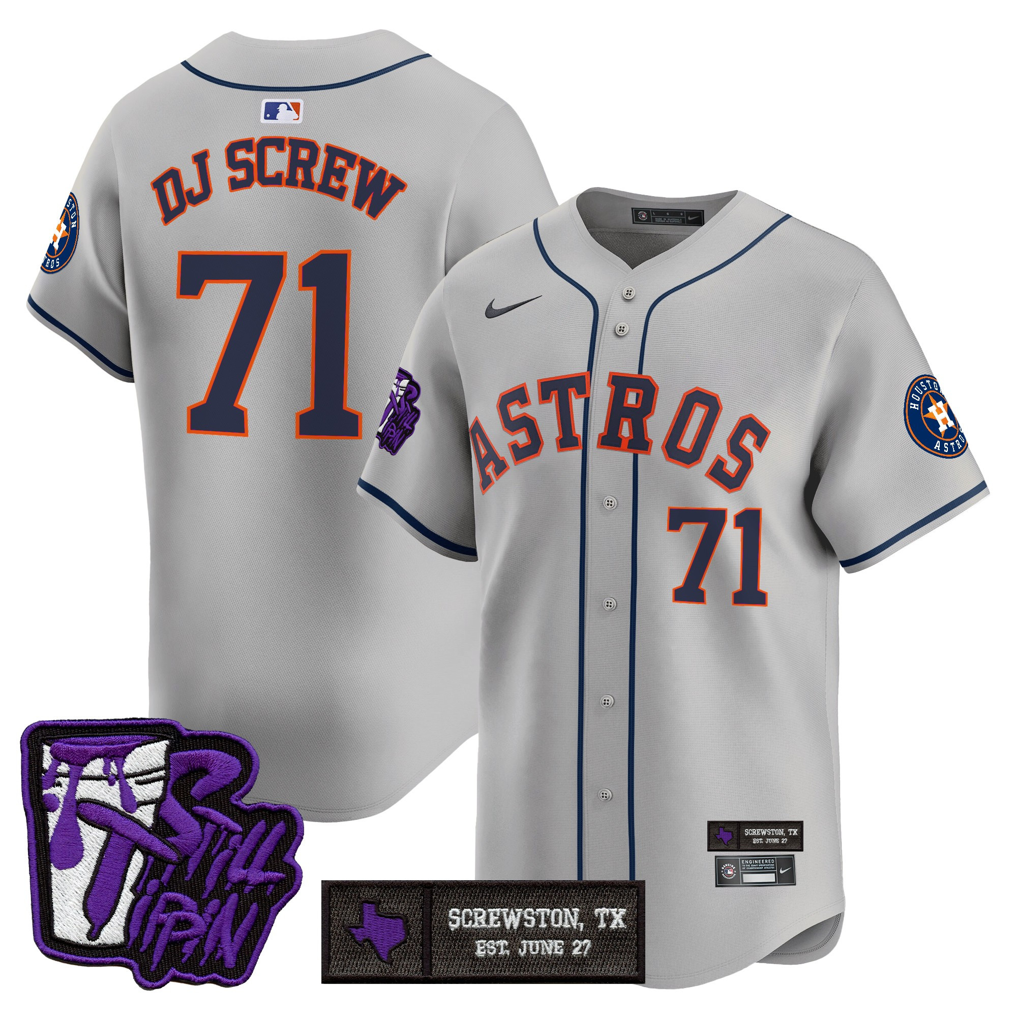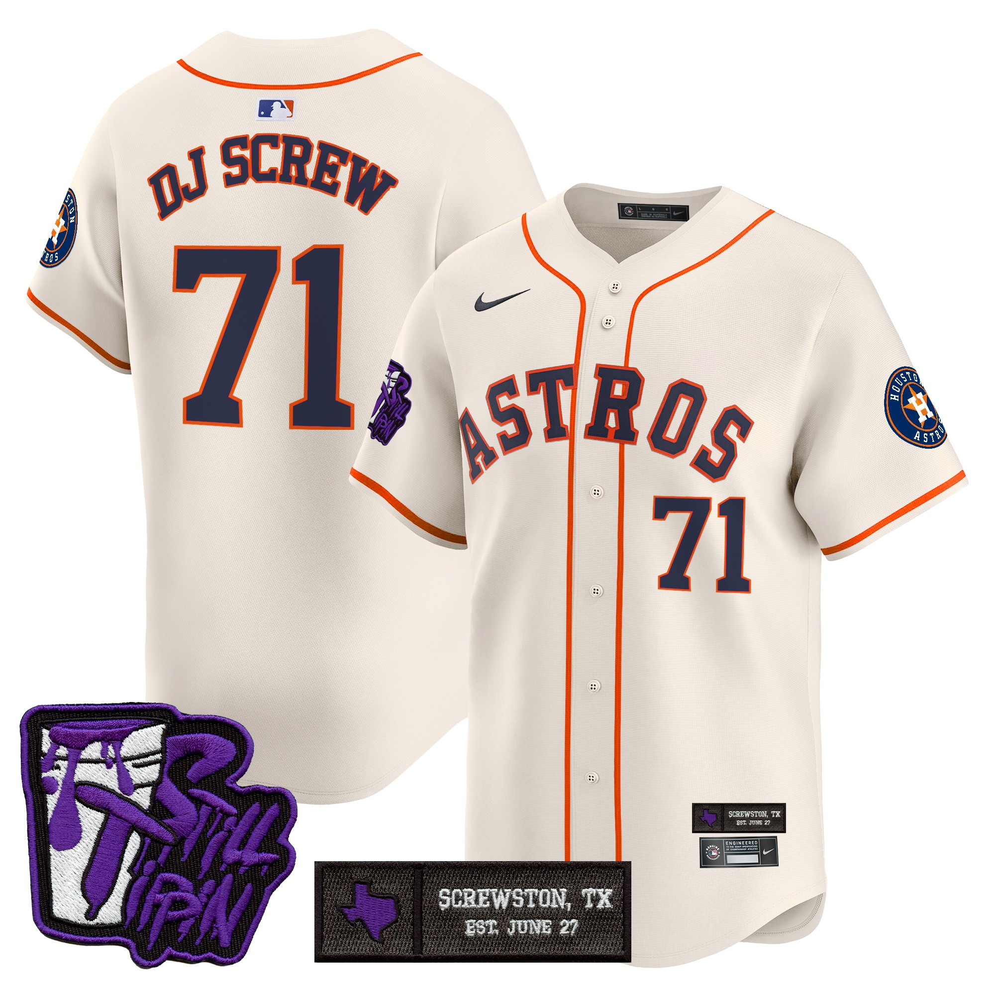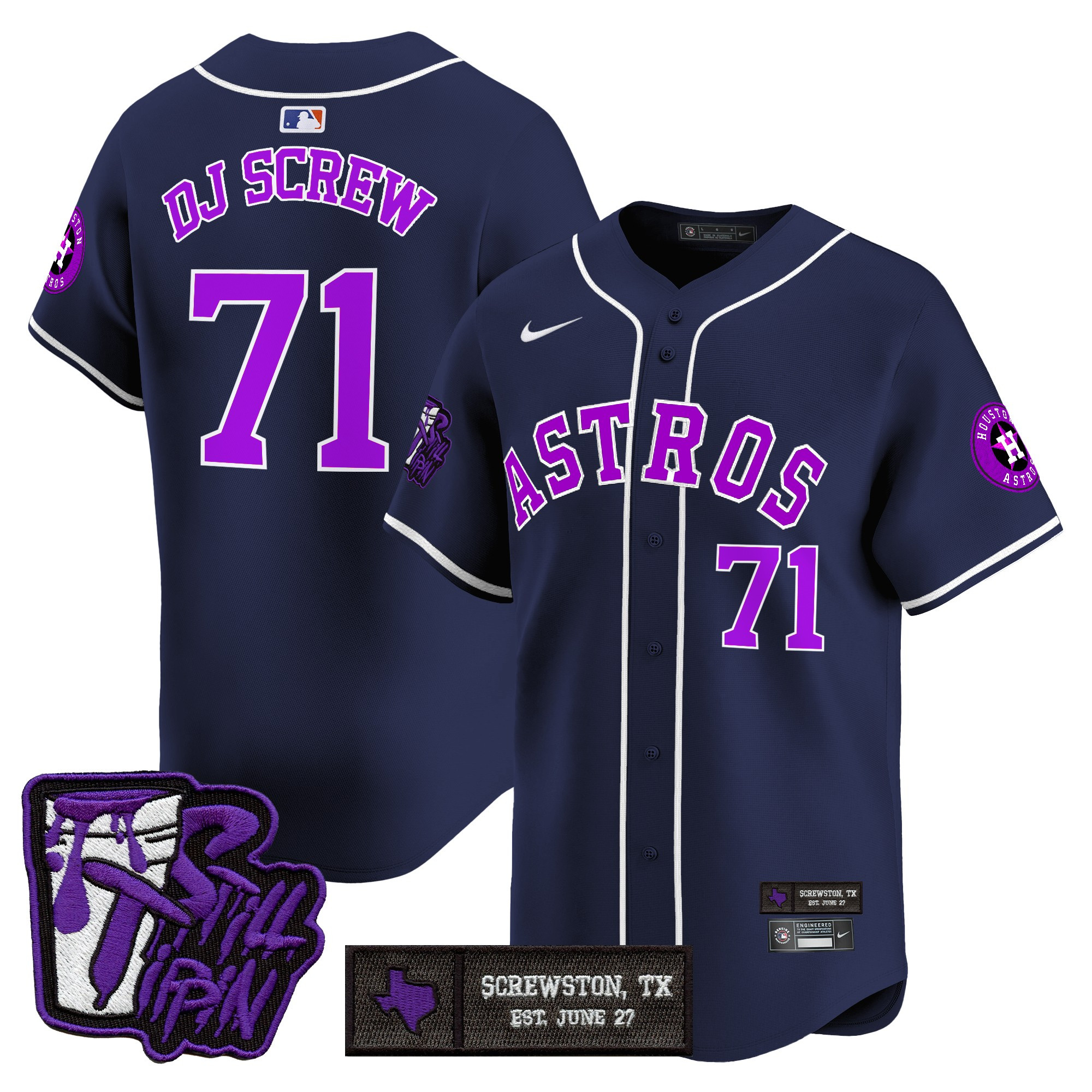 Mens Houston Astros DJ Screw Still Tippin Purple Patch Vapor Premier Limited Jersey All Stitched