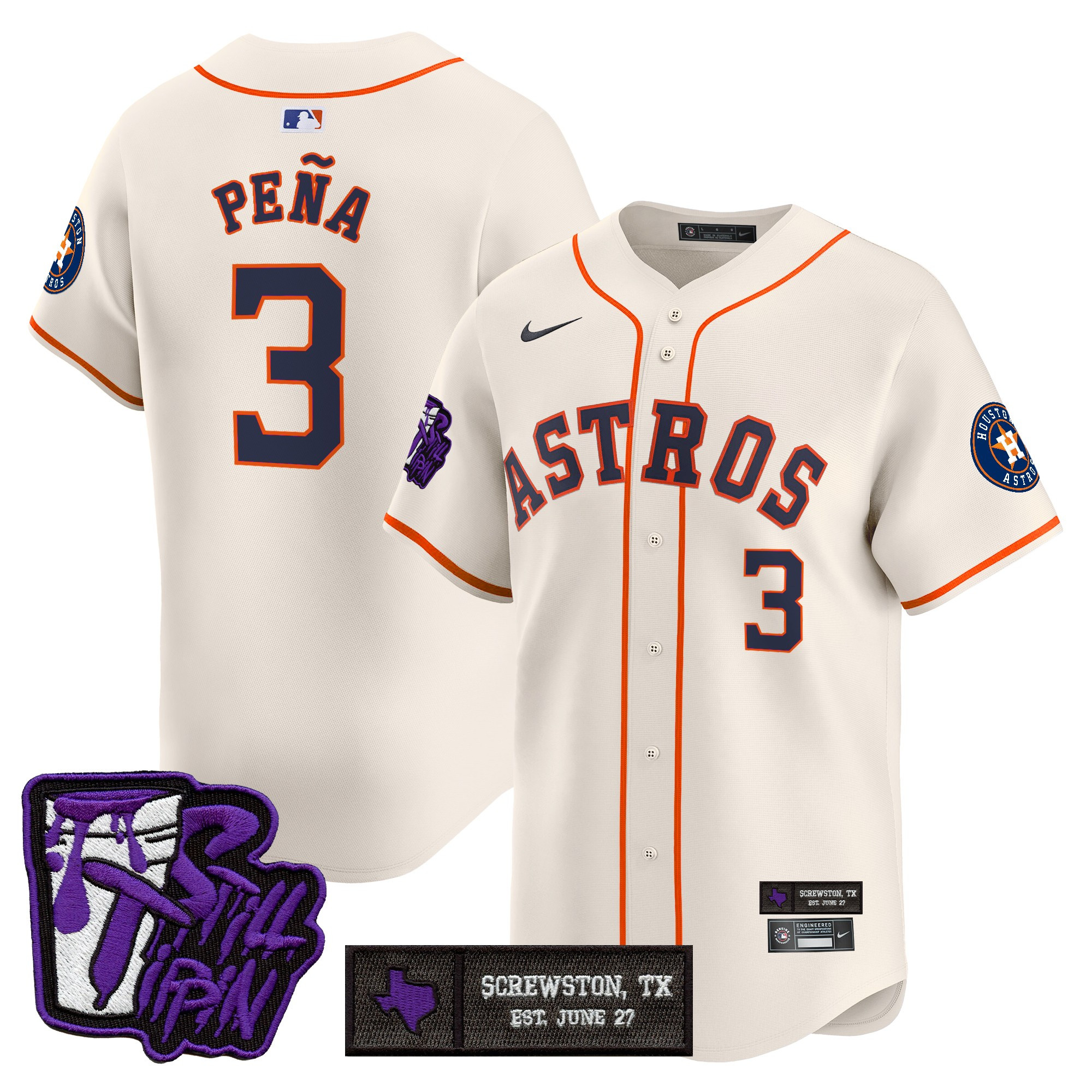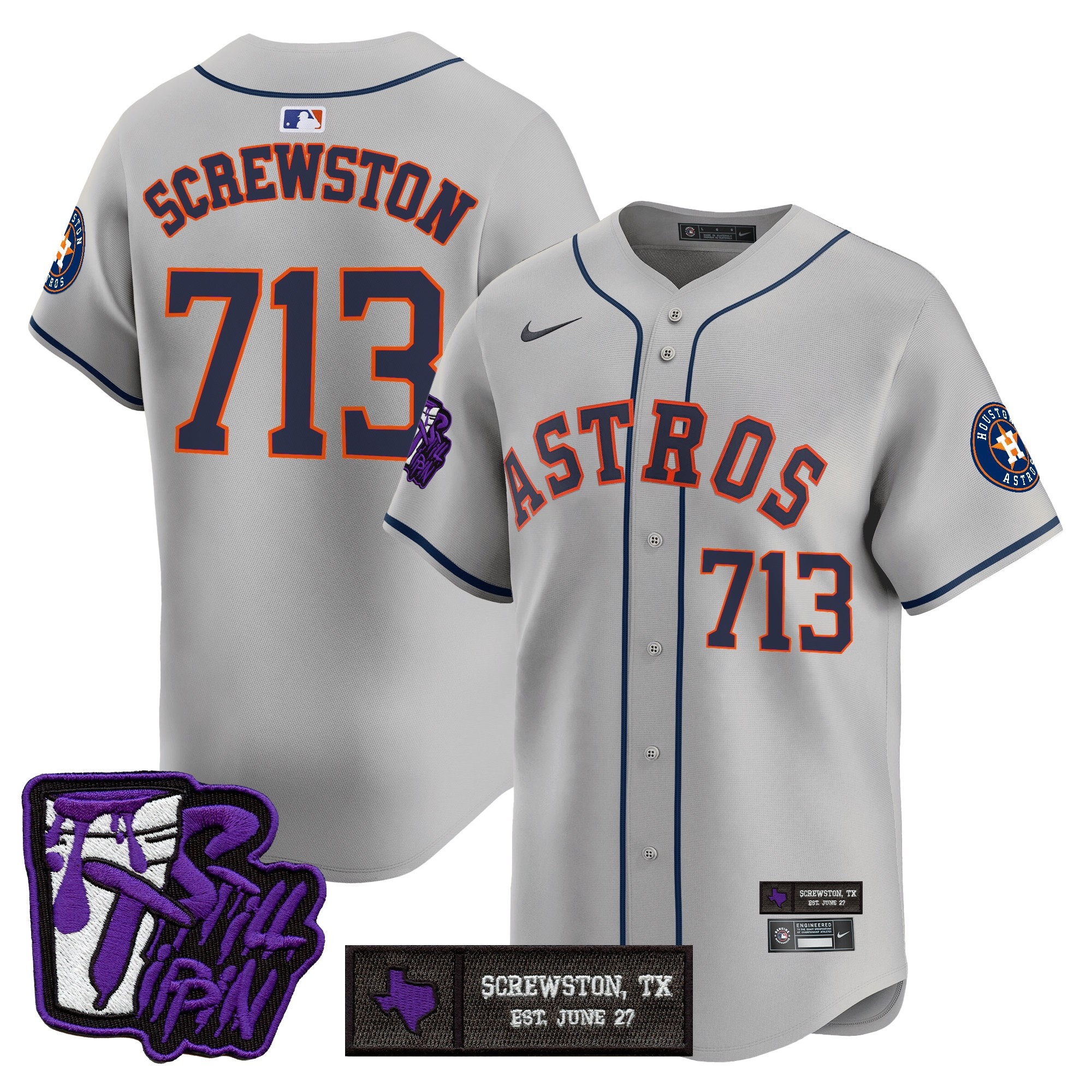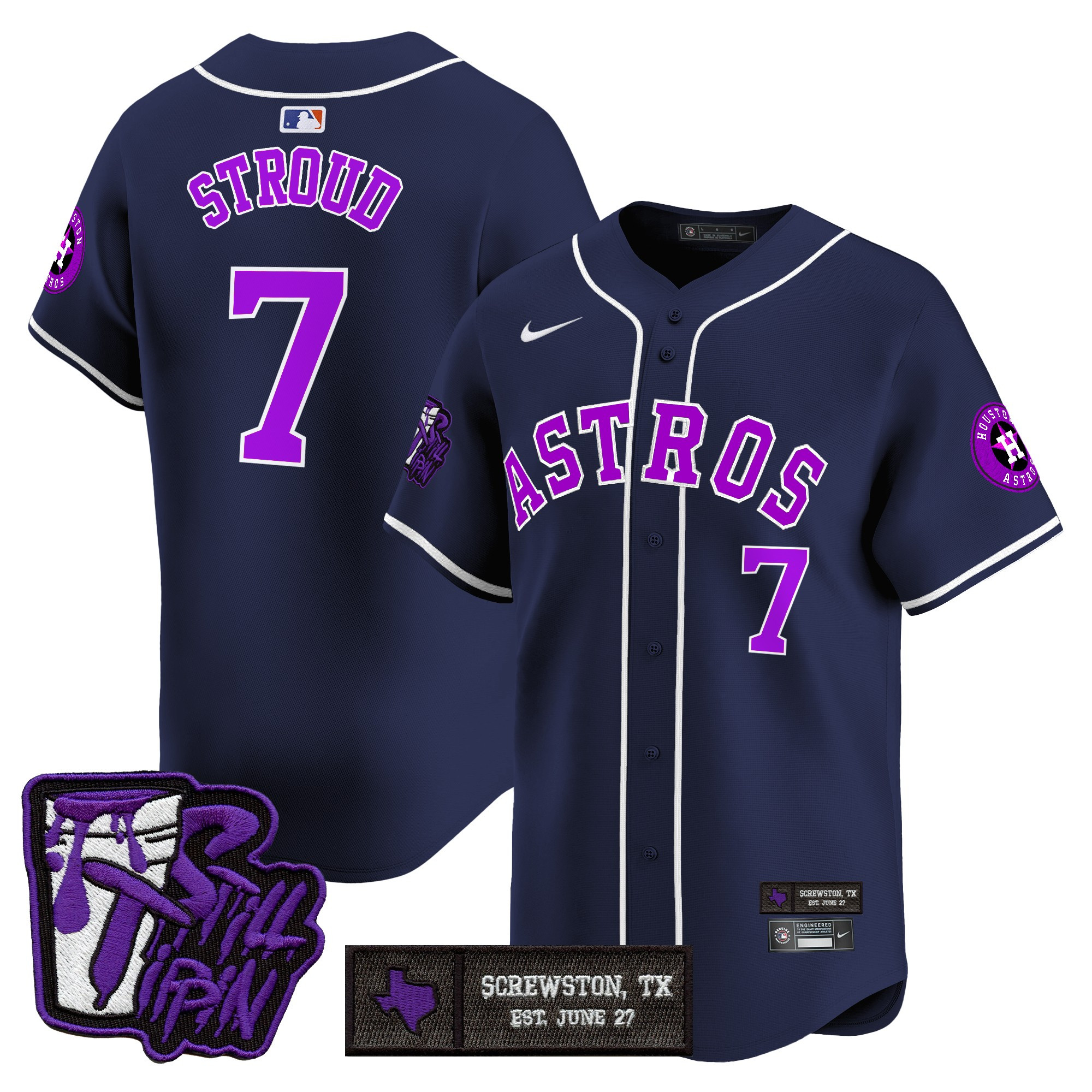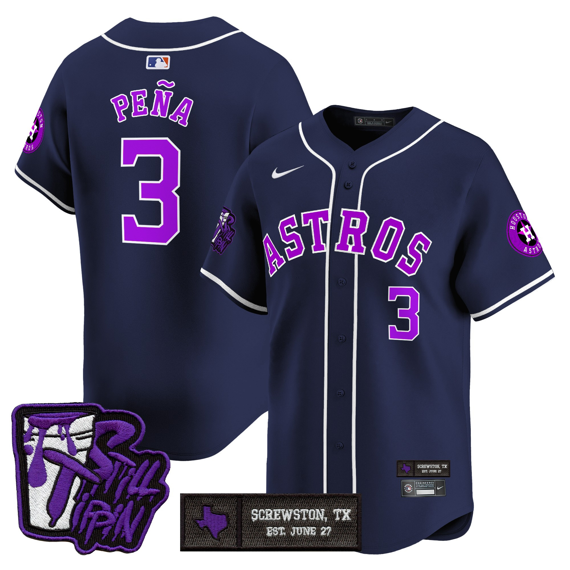 Mens Houston Astros DJ Screw Still Tippin Purple Patch Vapor Premier Limited Jersey All Stitched