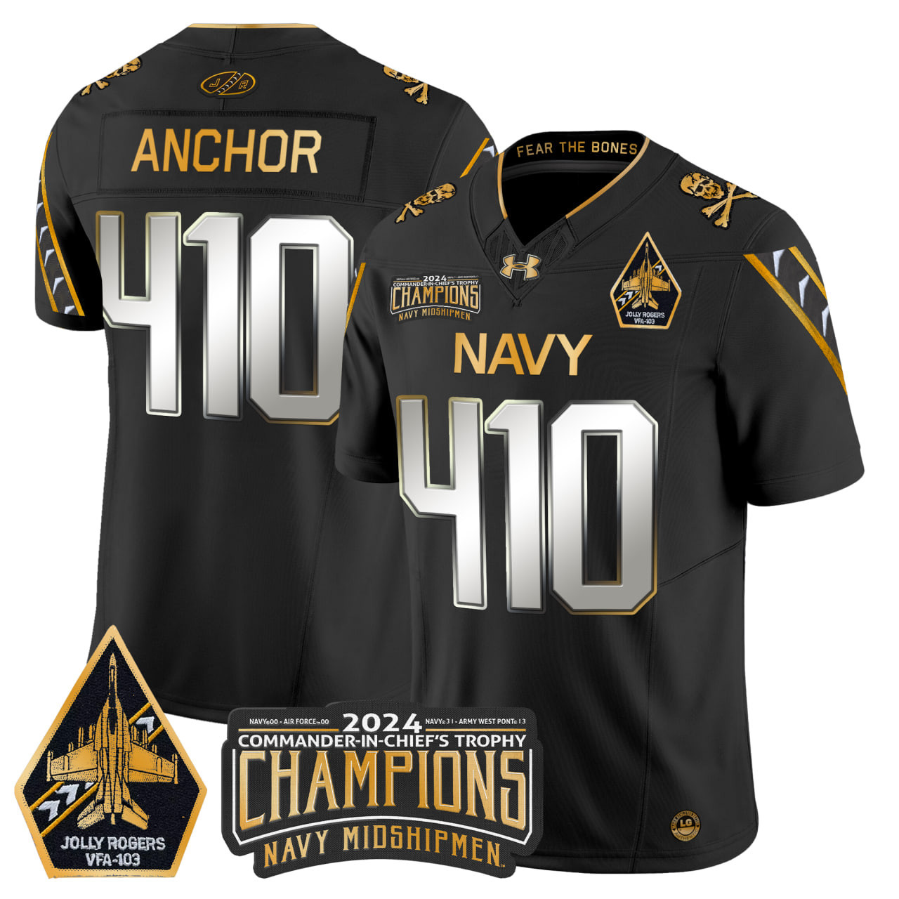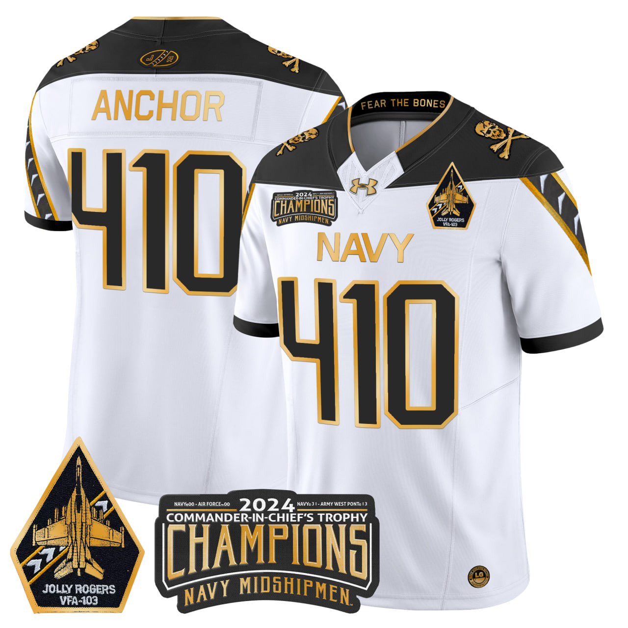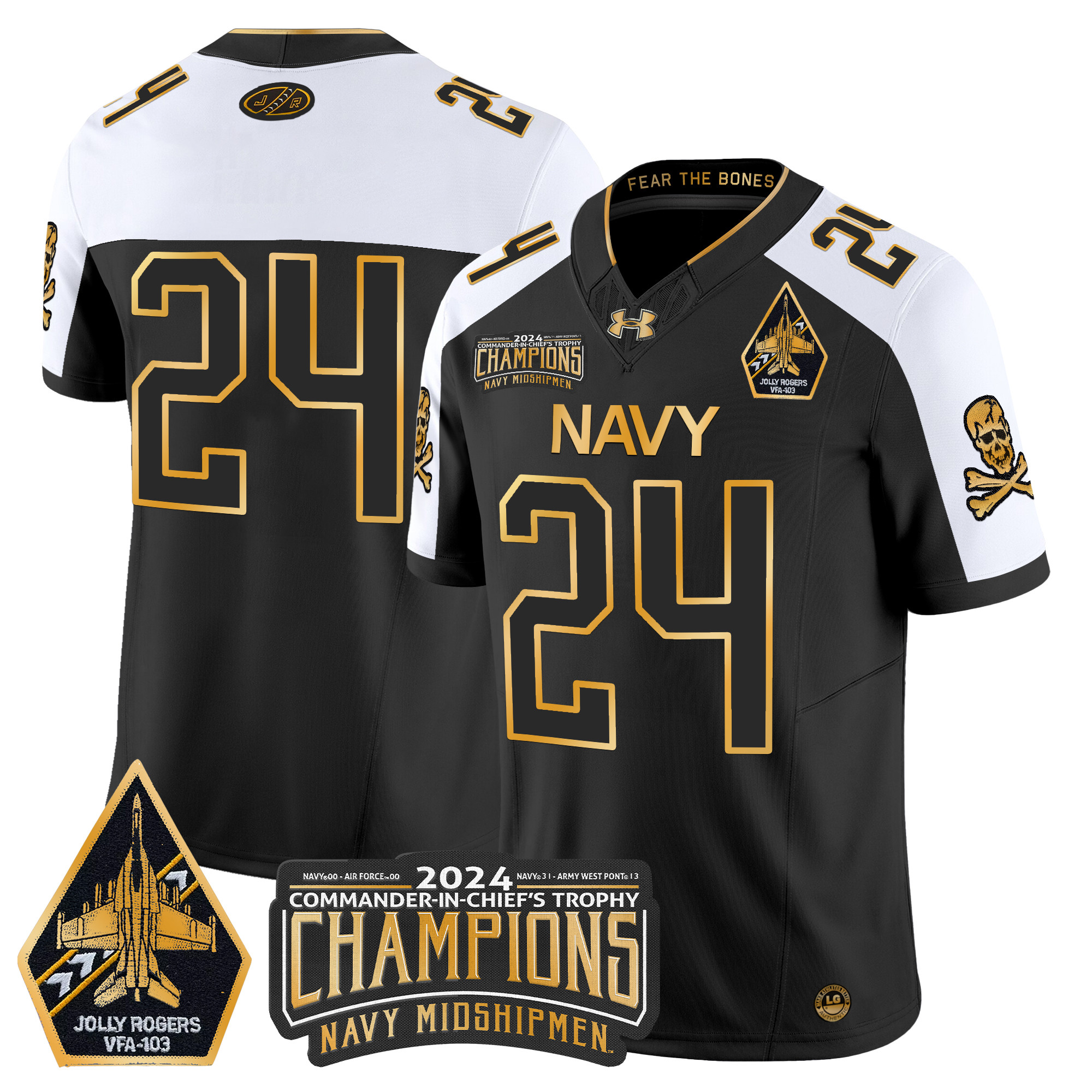 Mens Navy Midshipmen 2024 CommanderInChiefs Trophy Champions Patch Gold Vapor Limited Jersey All Stitched