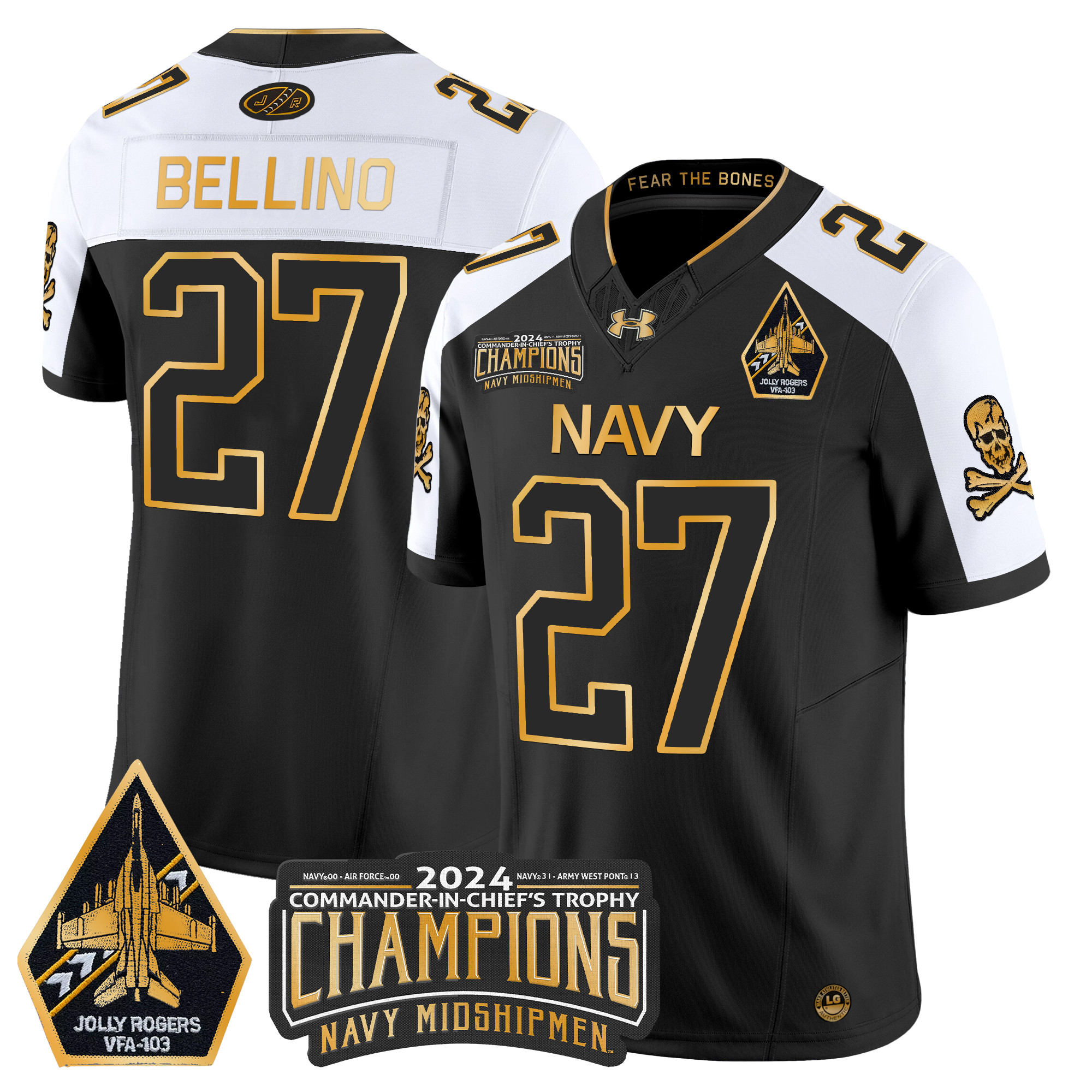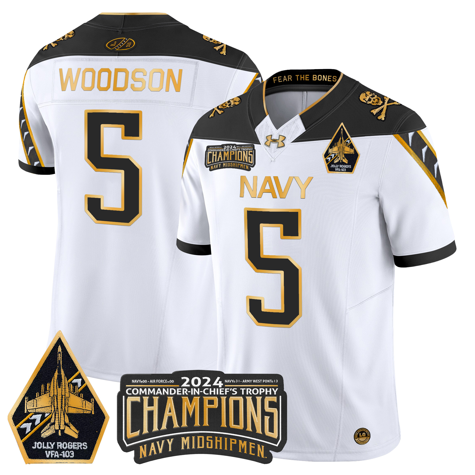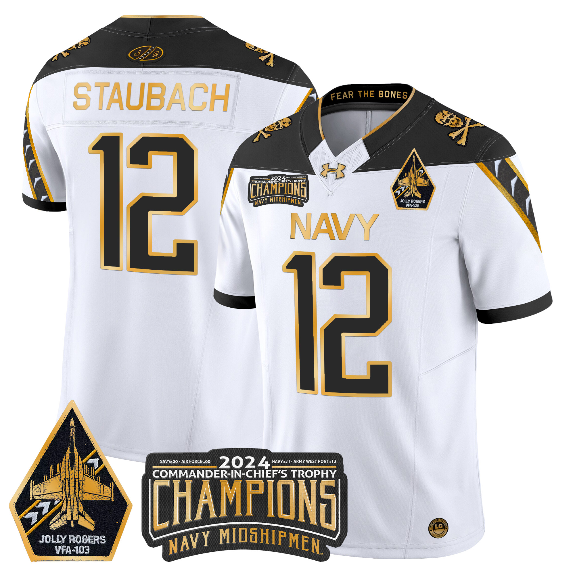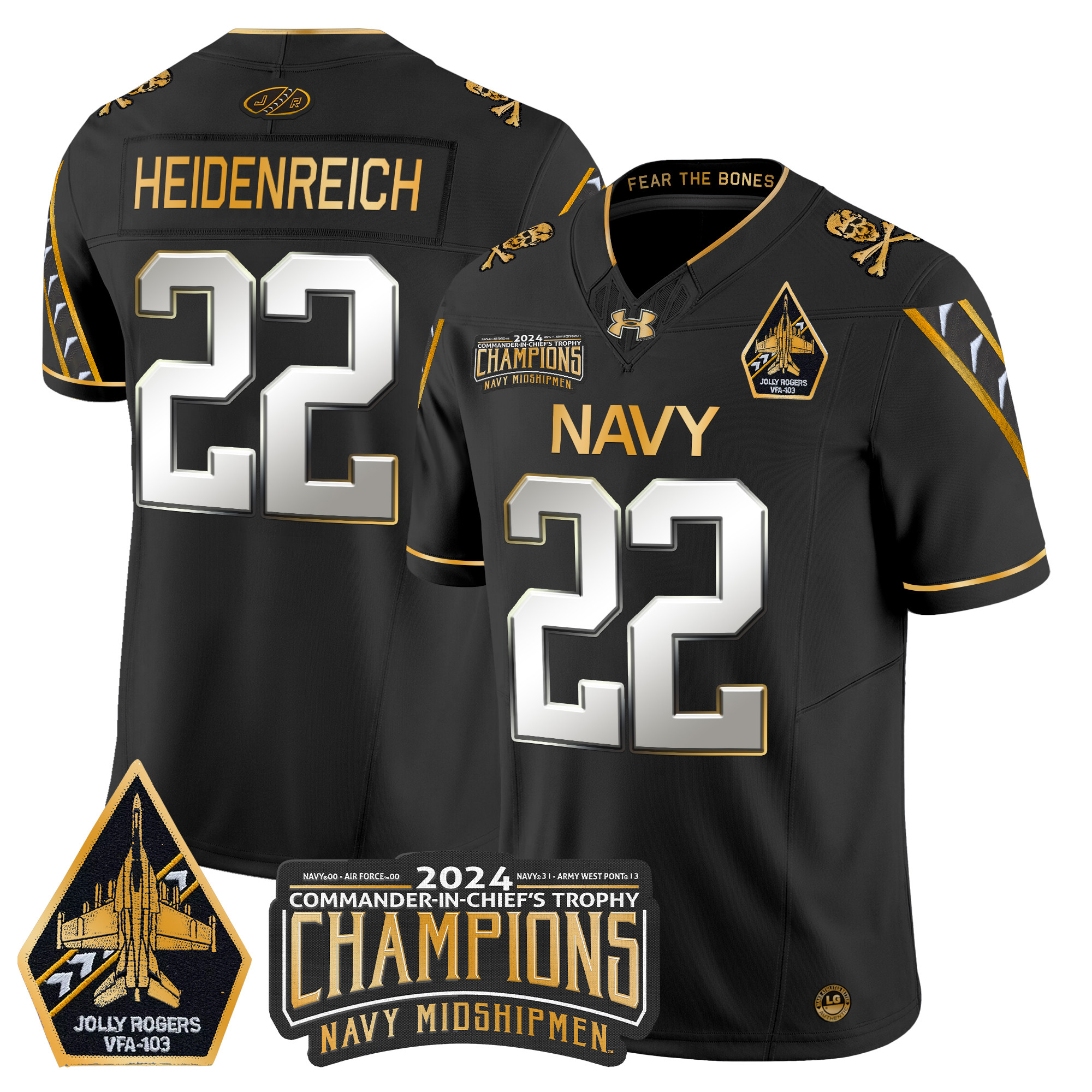 Mens Navy Midshipmen 2024 CommanderInChiefs Trophy Champions Patch Gold Vapor Limited Jersey All Stitched