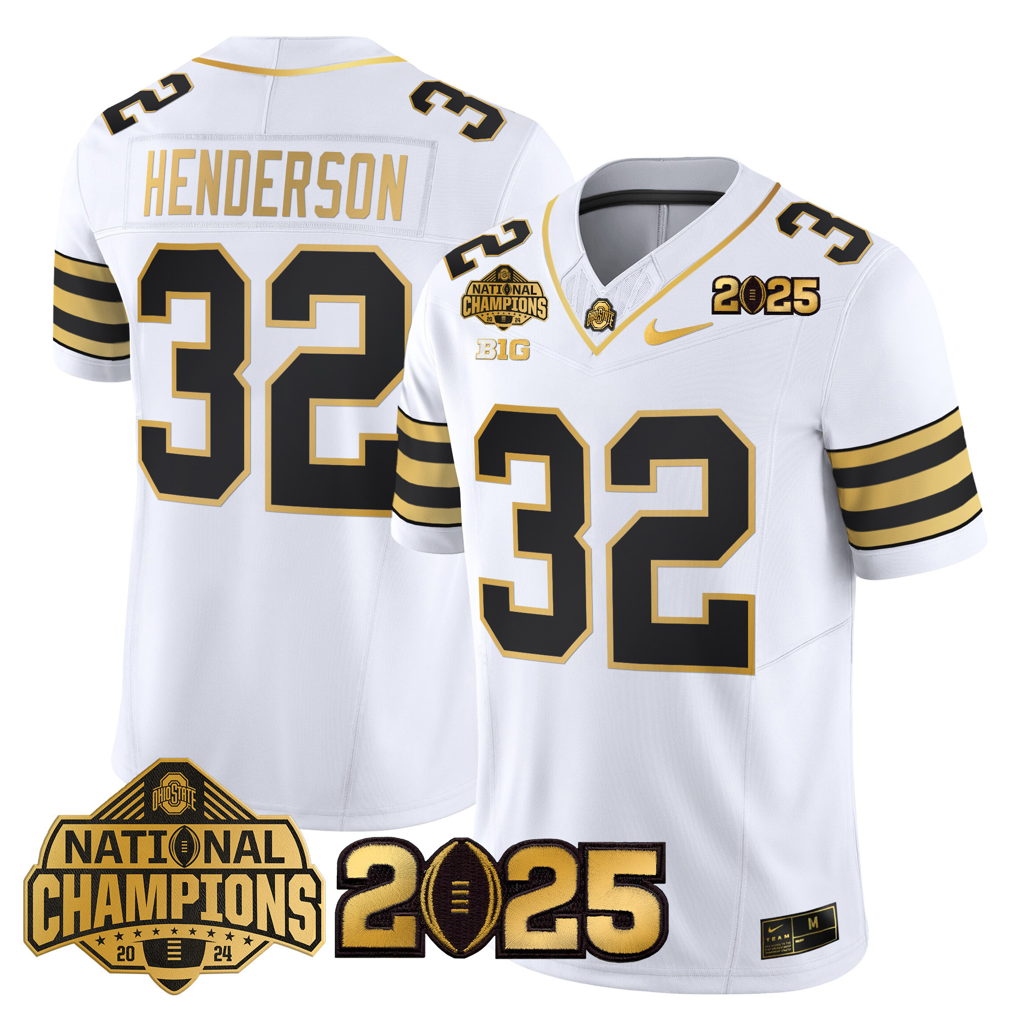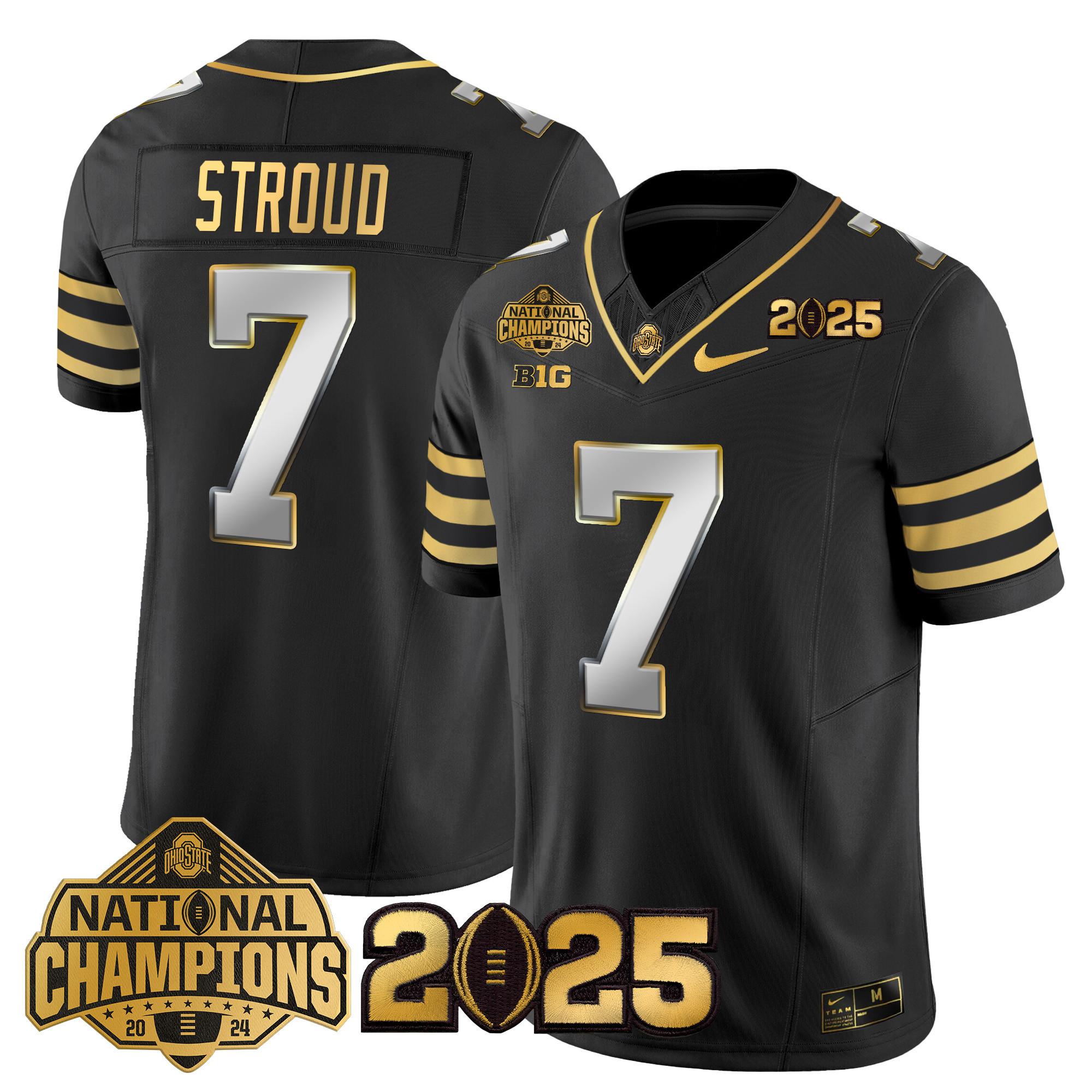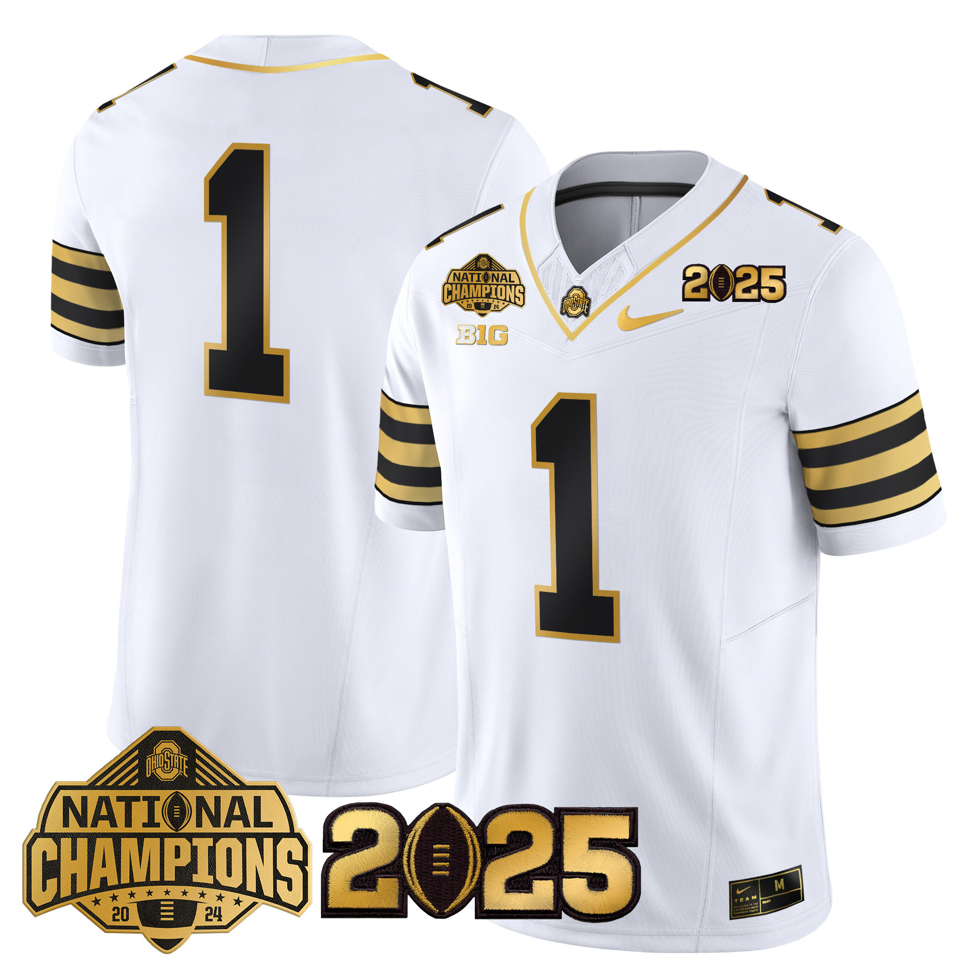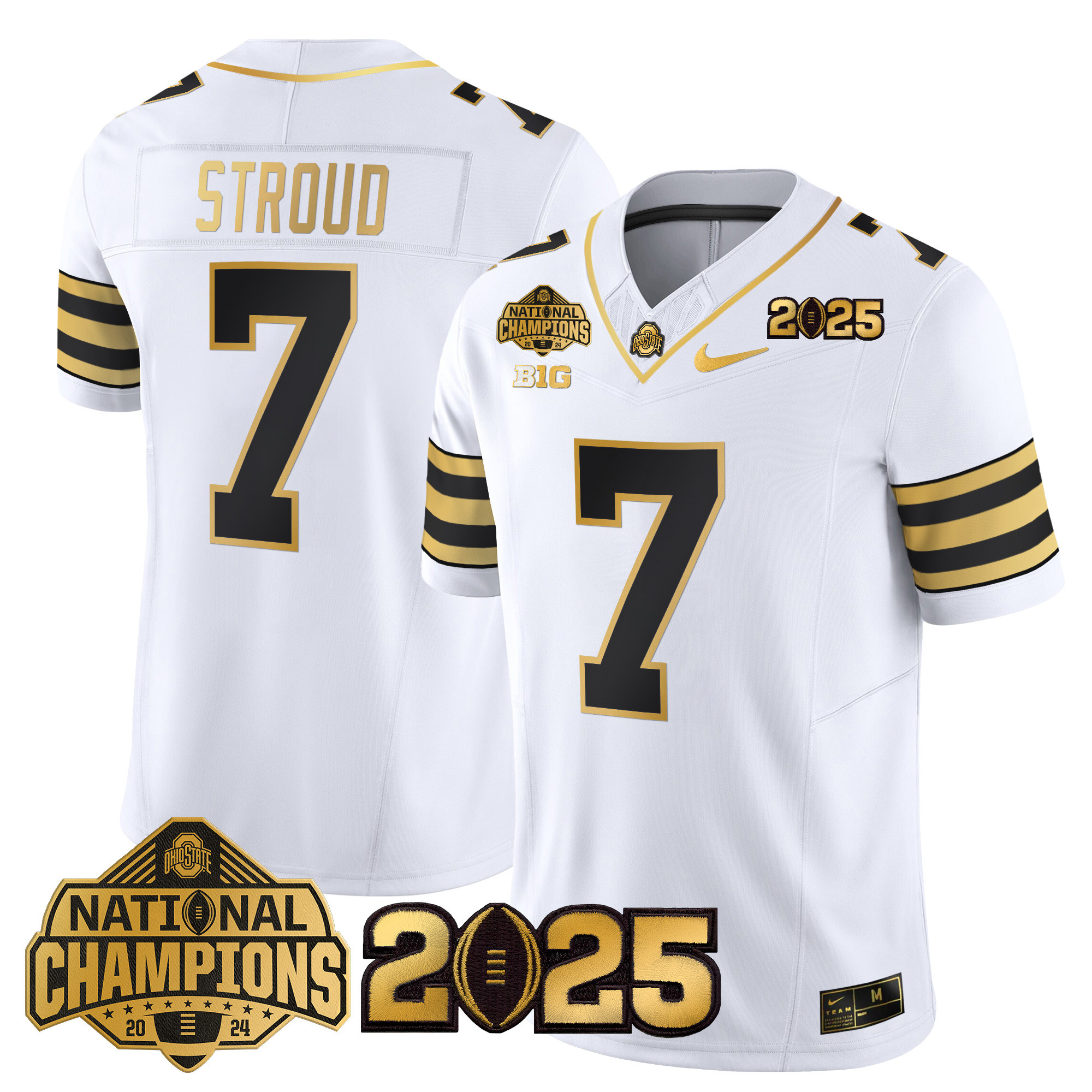 Mens Ohio State Buckeyes Heritage Stripe National Champions Patch Gold Vapor Limited Jersey All Stitched