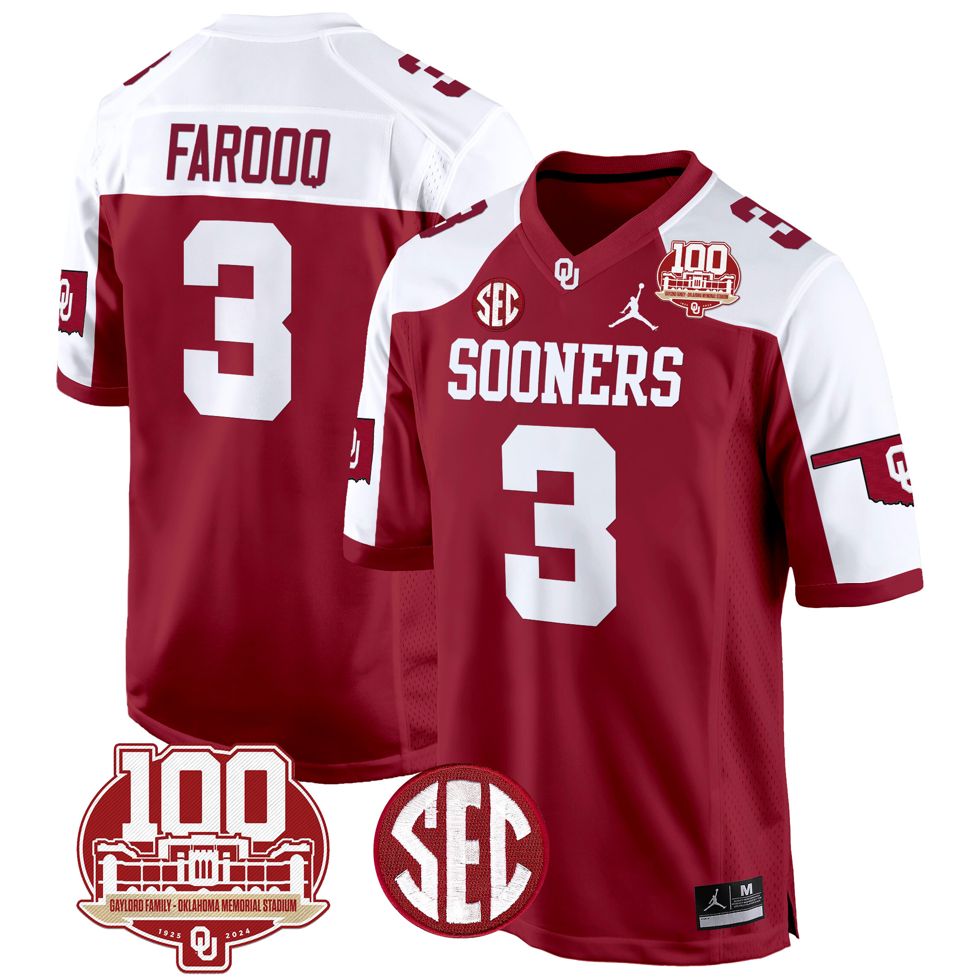 Men’s Oklahoma Sooners 100th Anniversary Patch Game Jersey All Stitched