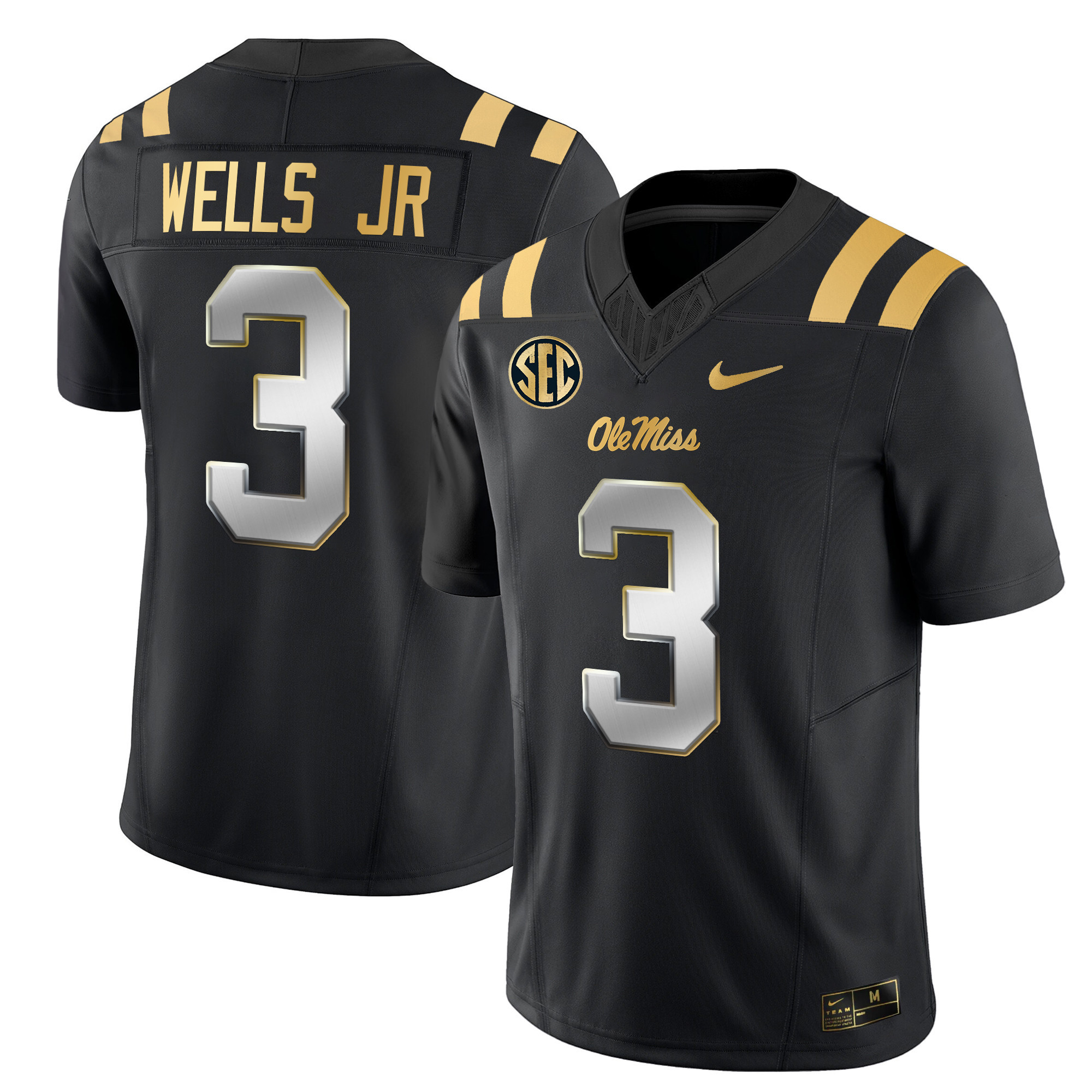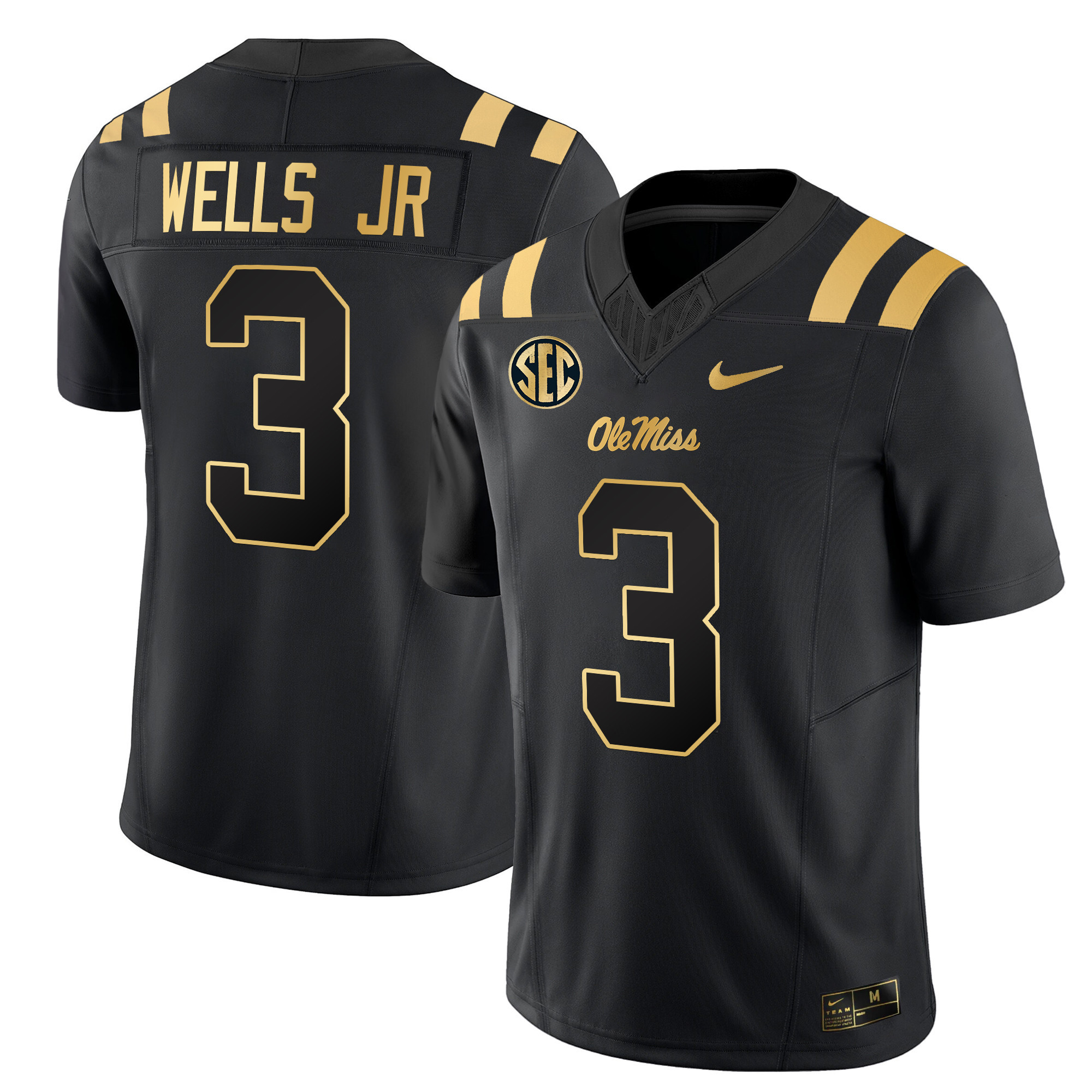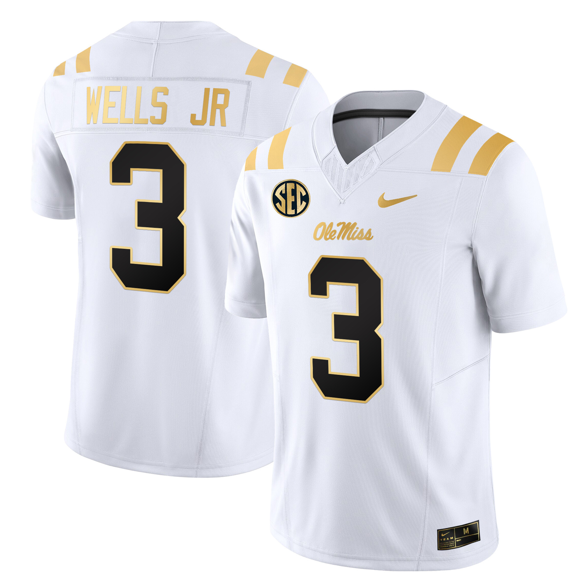Men’s Ole Miss Rebels 2024 Gold Vapor Limited Jersey All Stitched