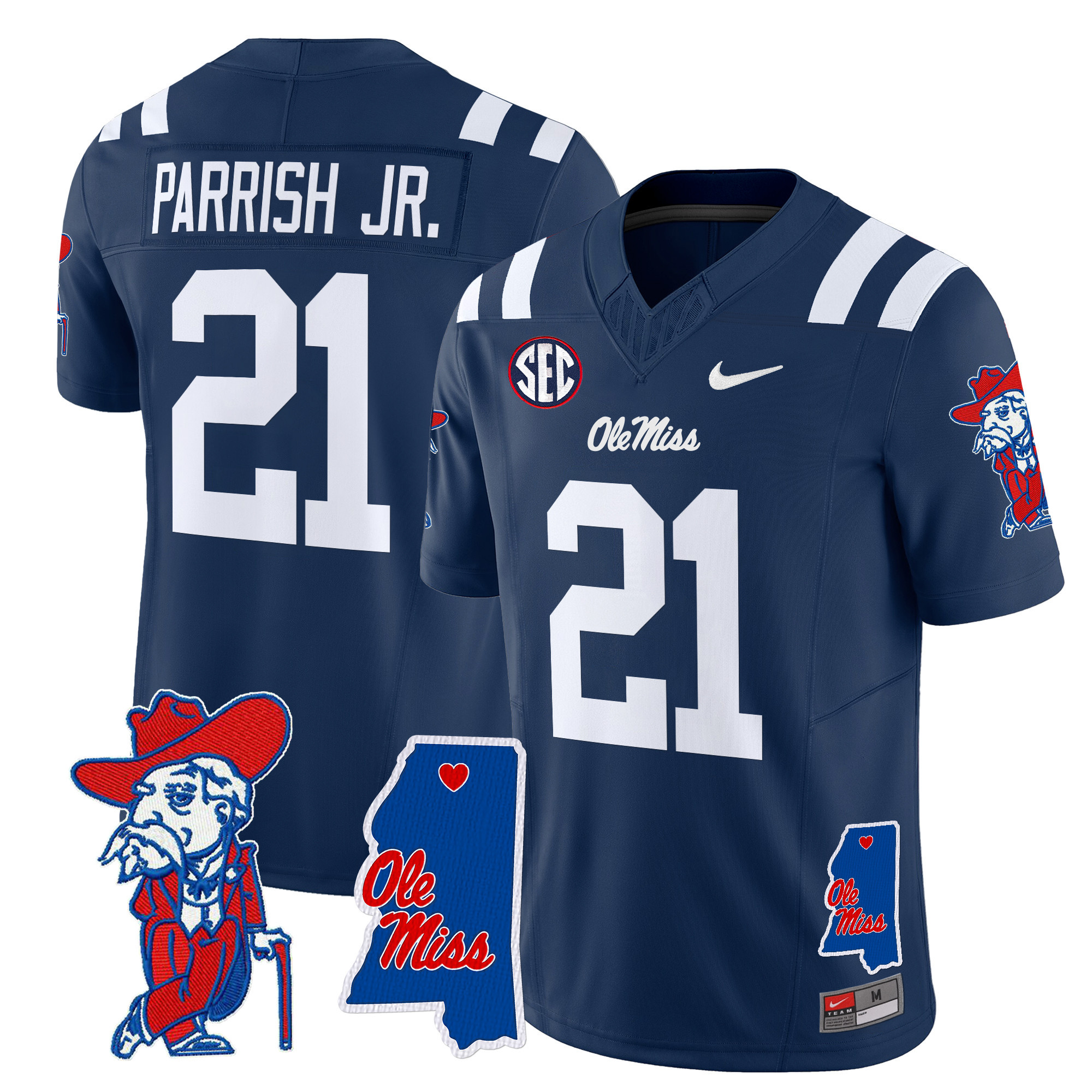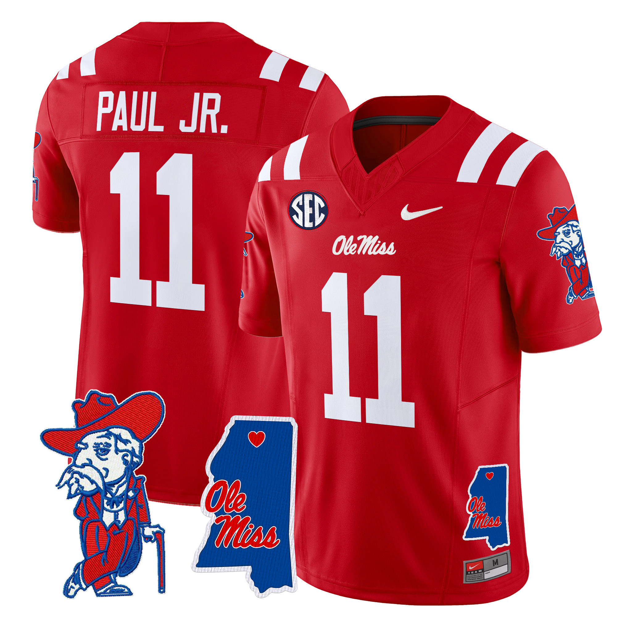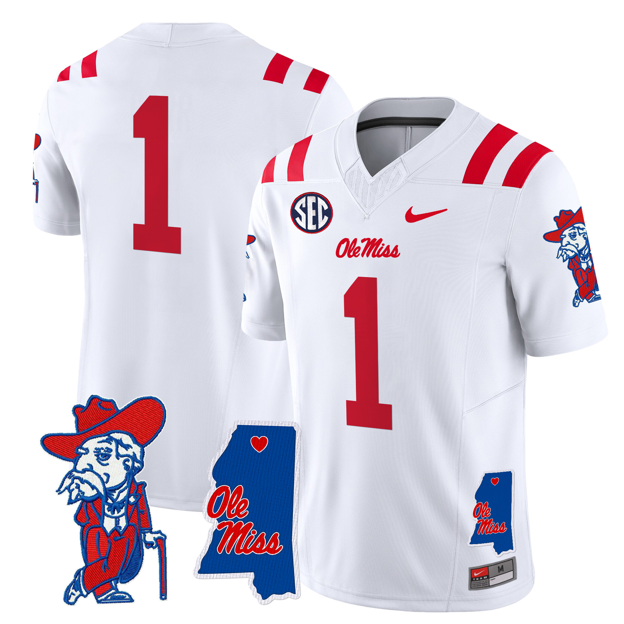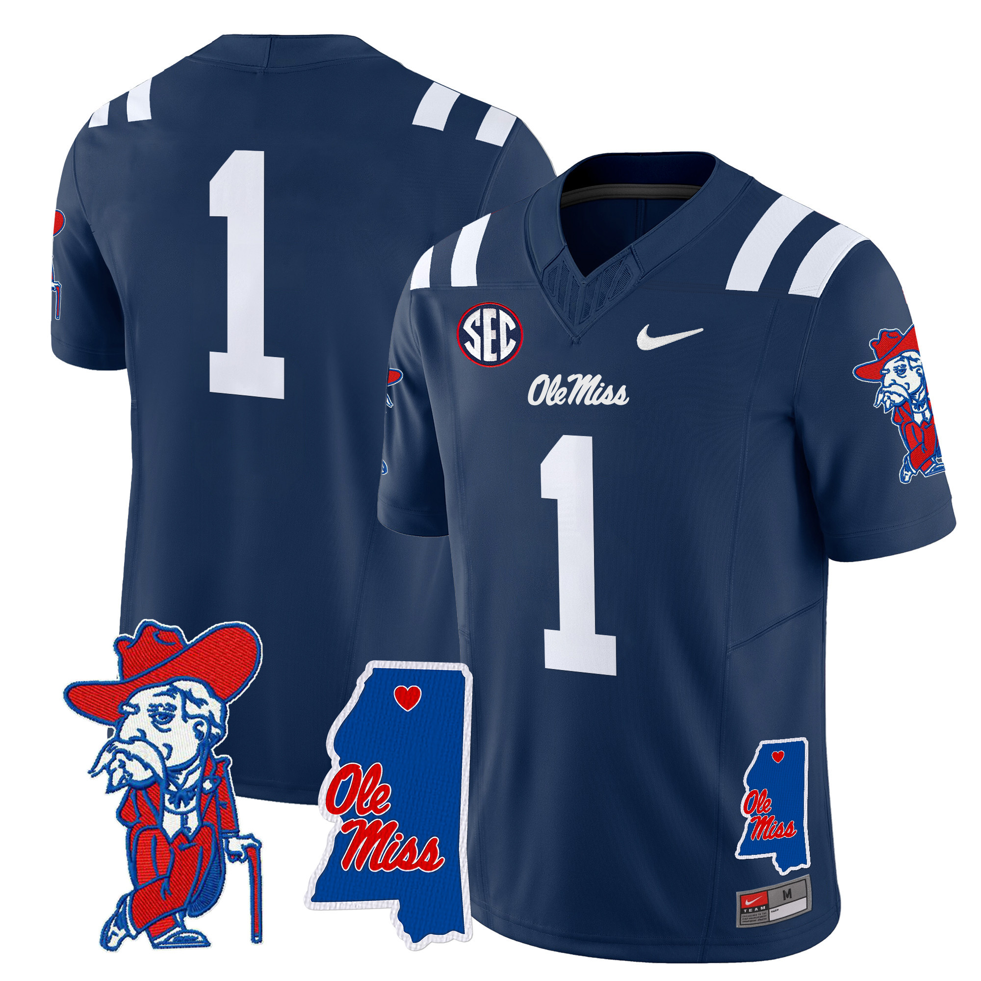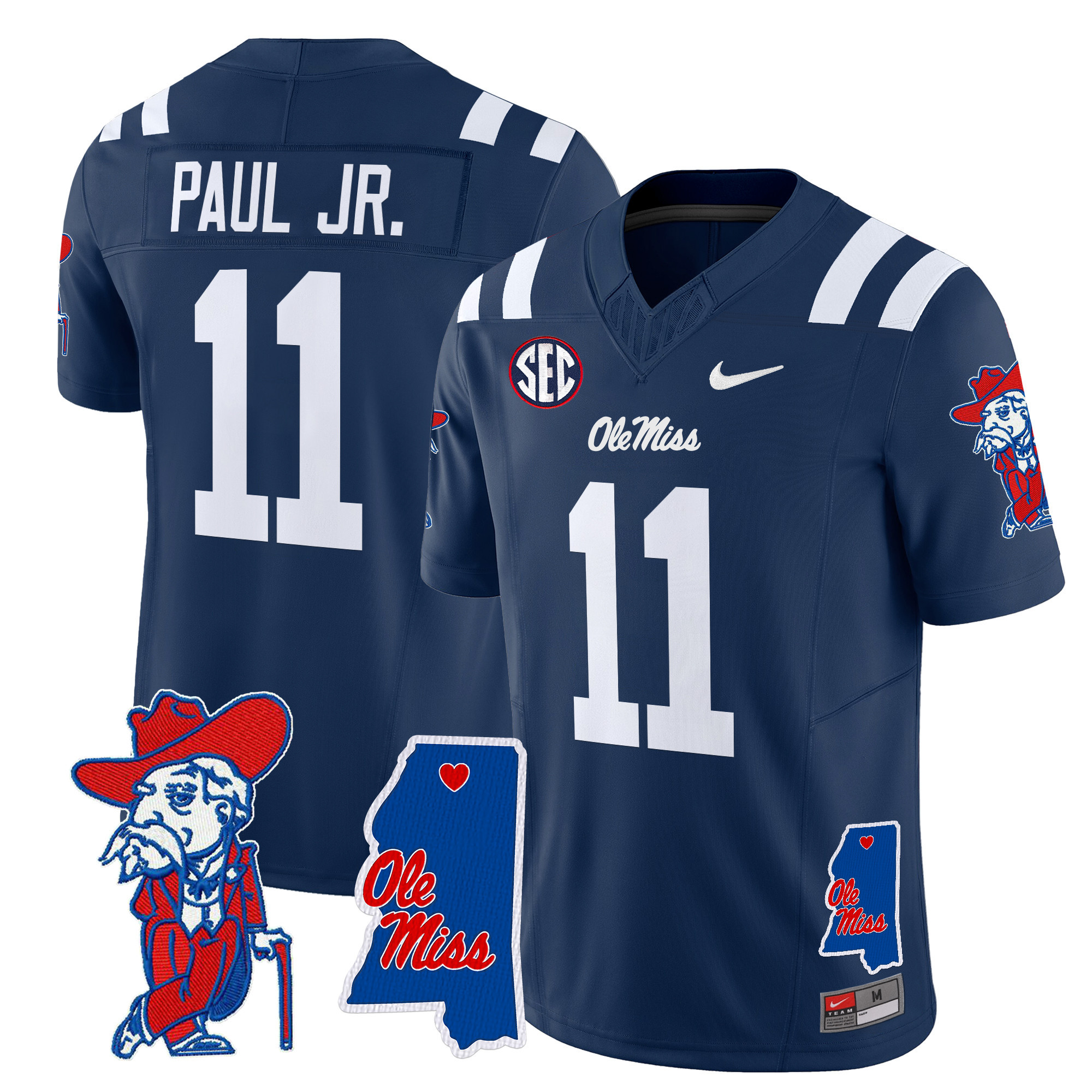Men’s Ole Miss Rebels 2024 Mississippi Map Patch Vapor Limited Jersey All Stitched