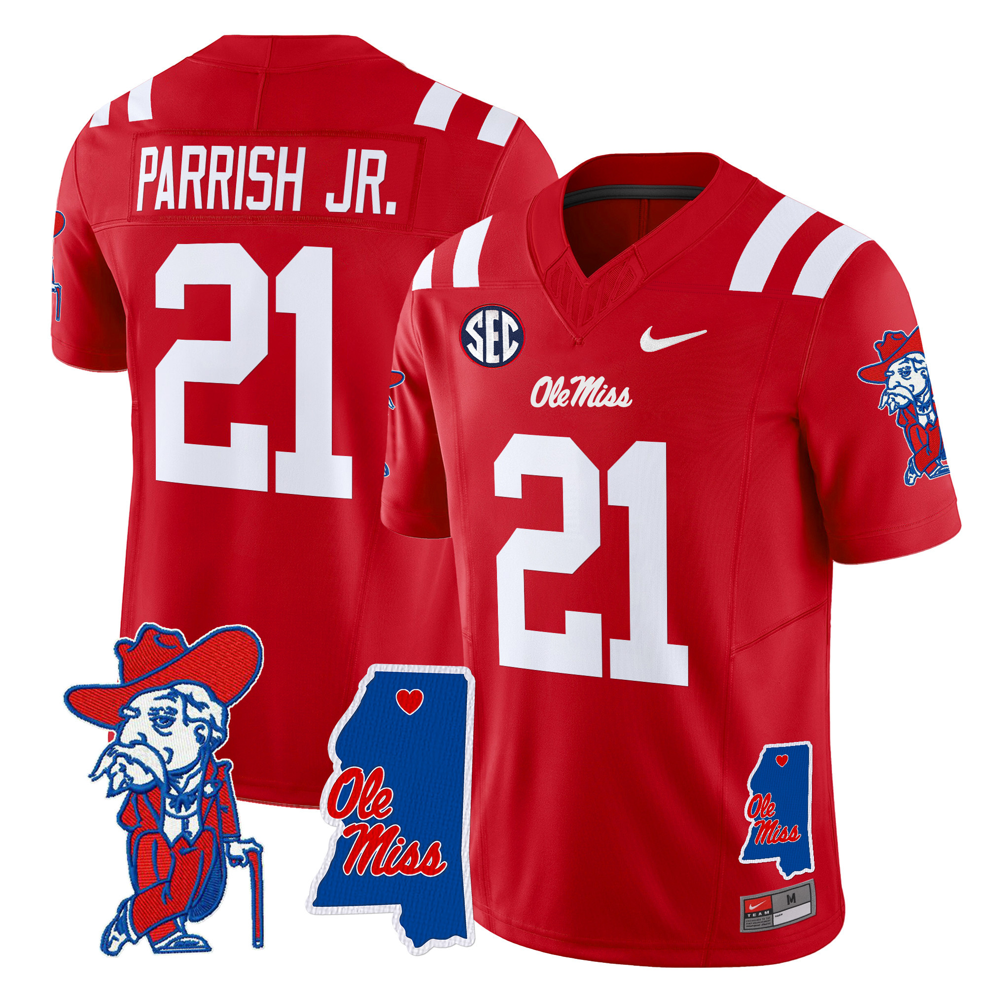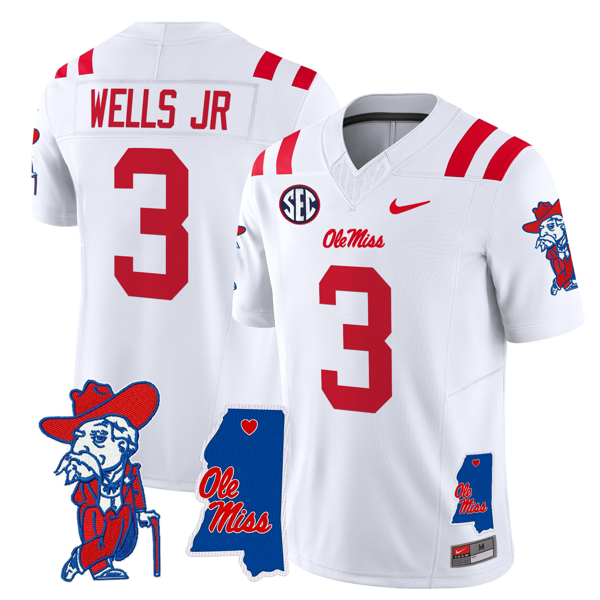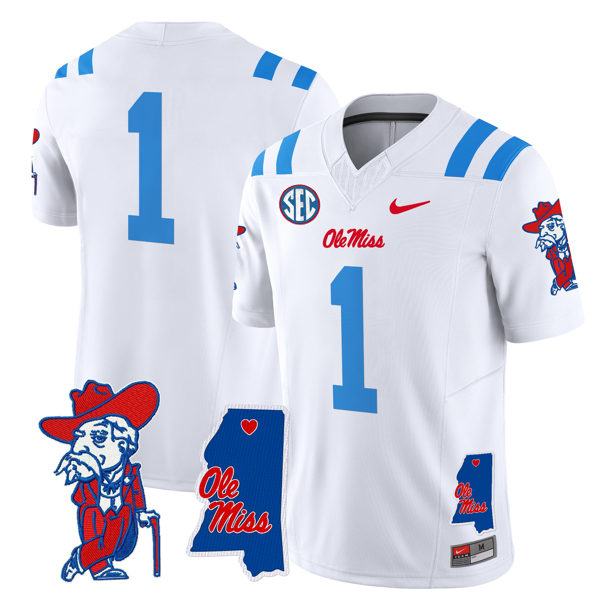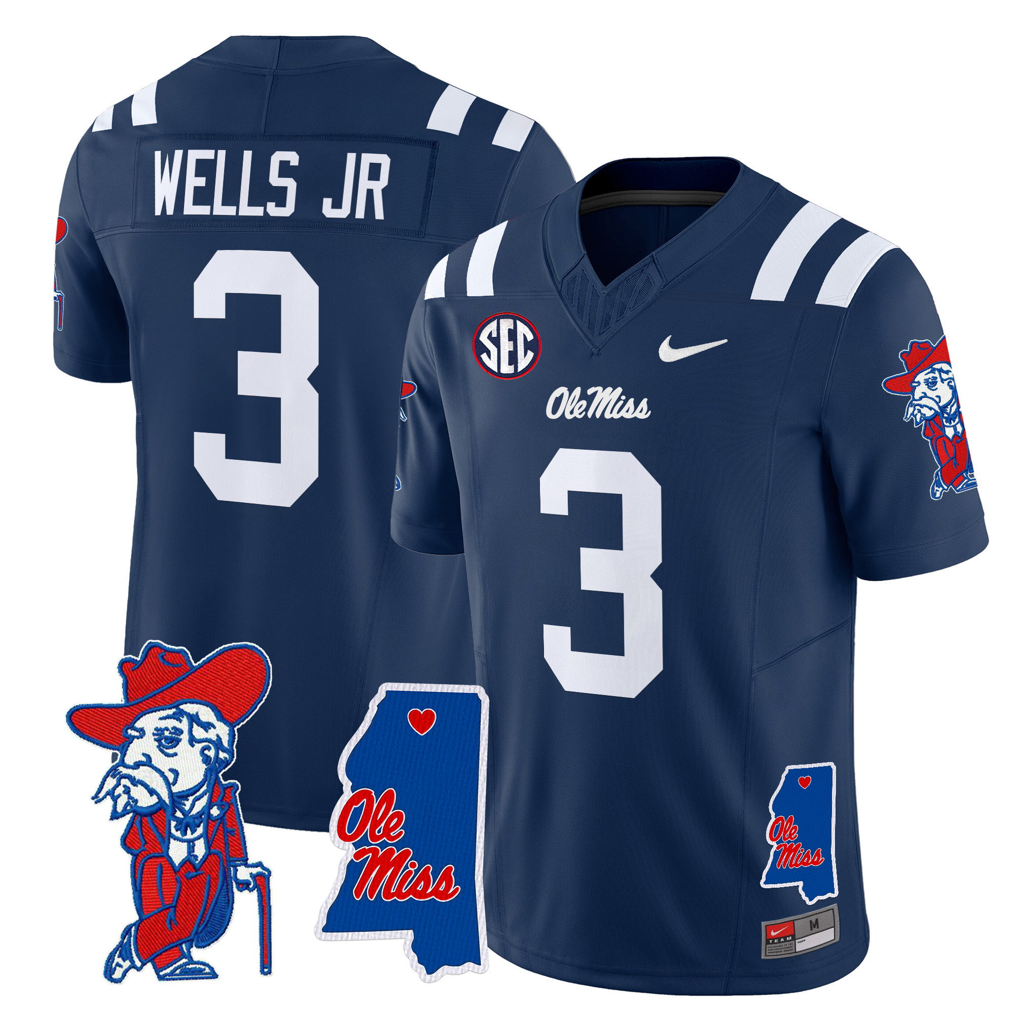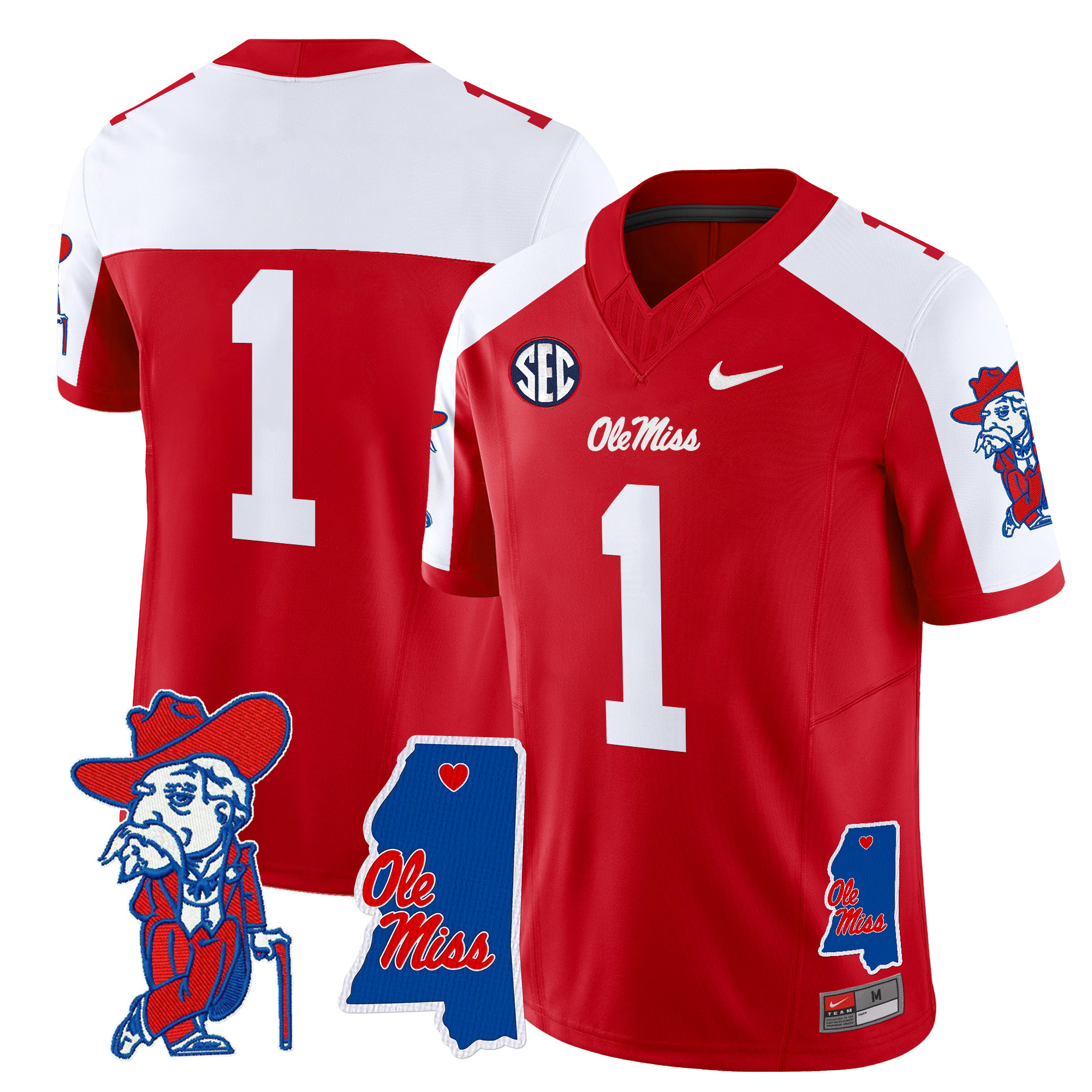 Men’s Ole Miss Rebels 2024 Mississippi Map Patch Vapor Limited Jersey All Stitched