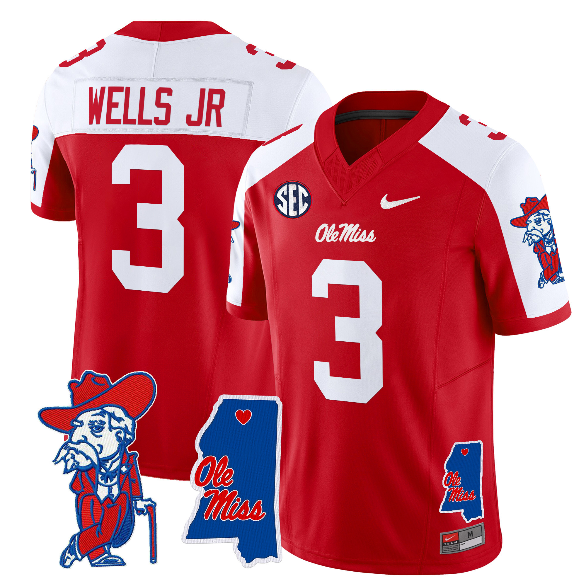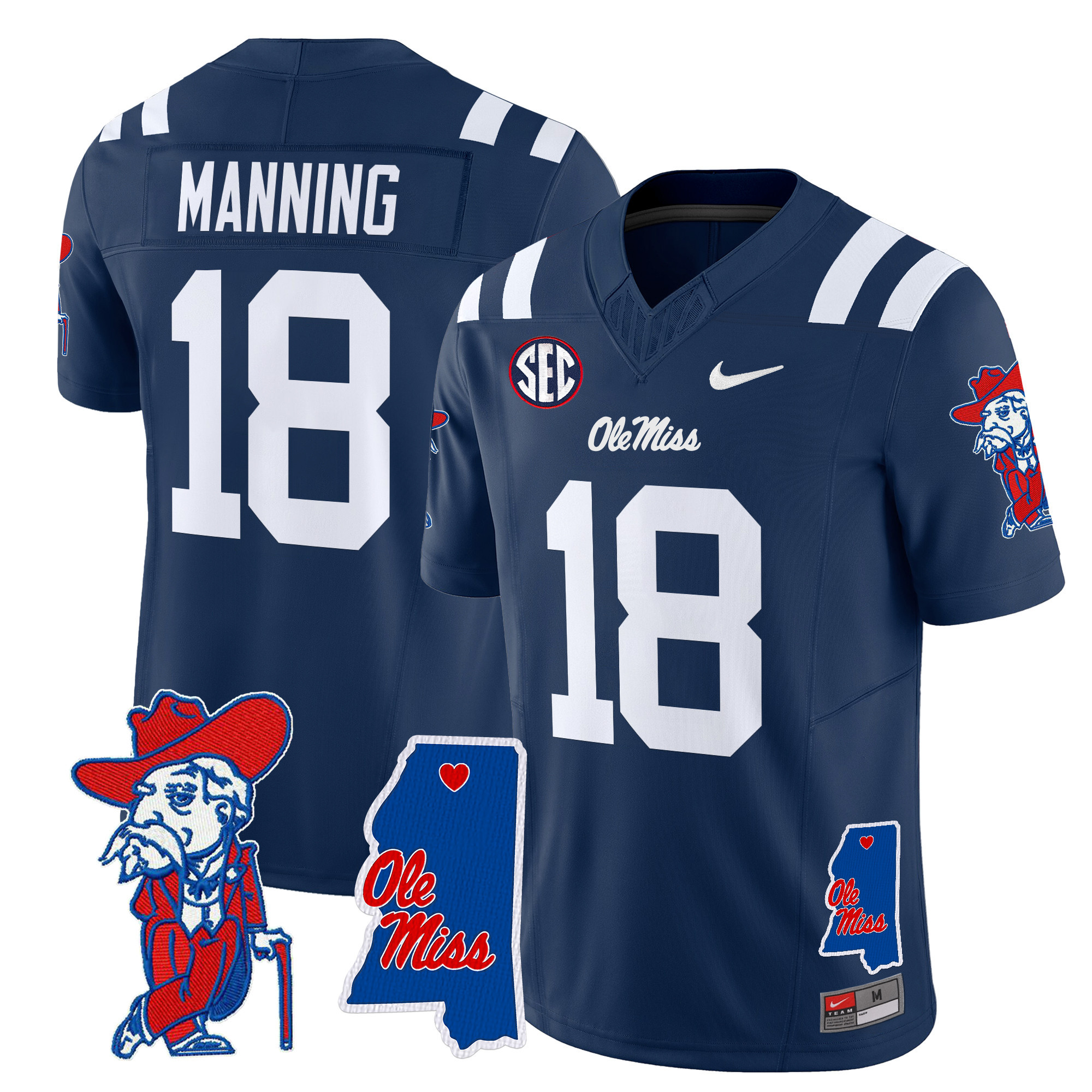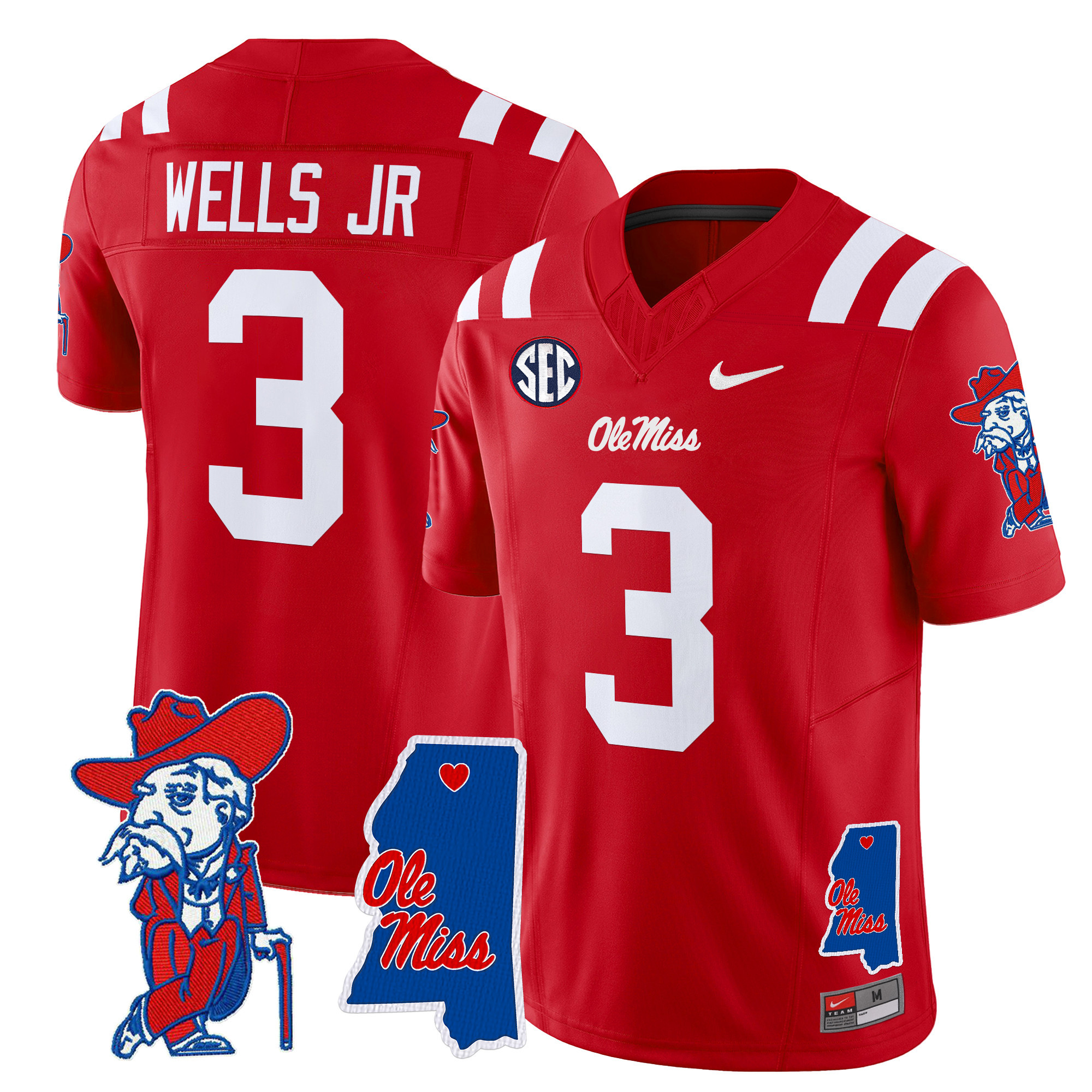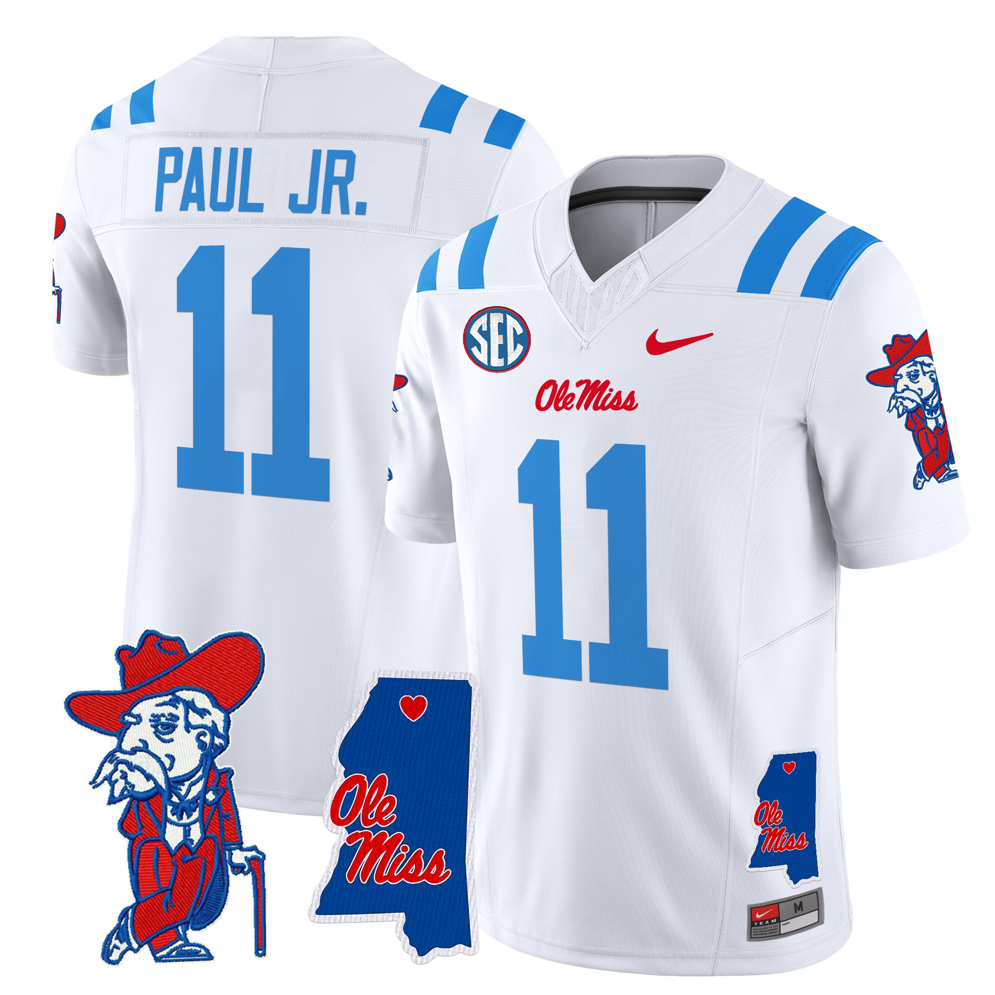 Men’s Ole Miss Rebels 2024 Mississippi Map Patch Vapor Limited Jersey All Stitched