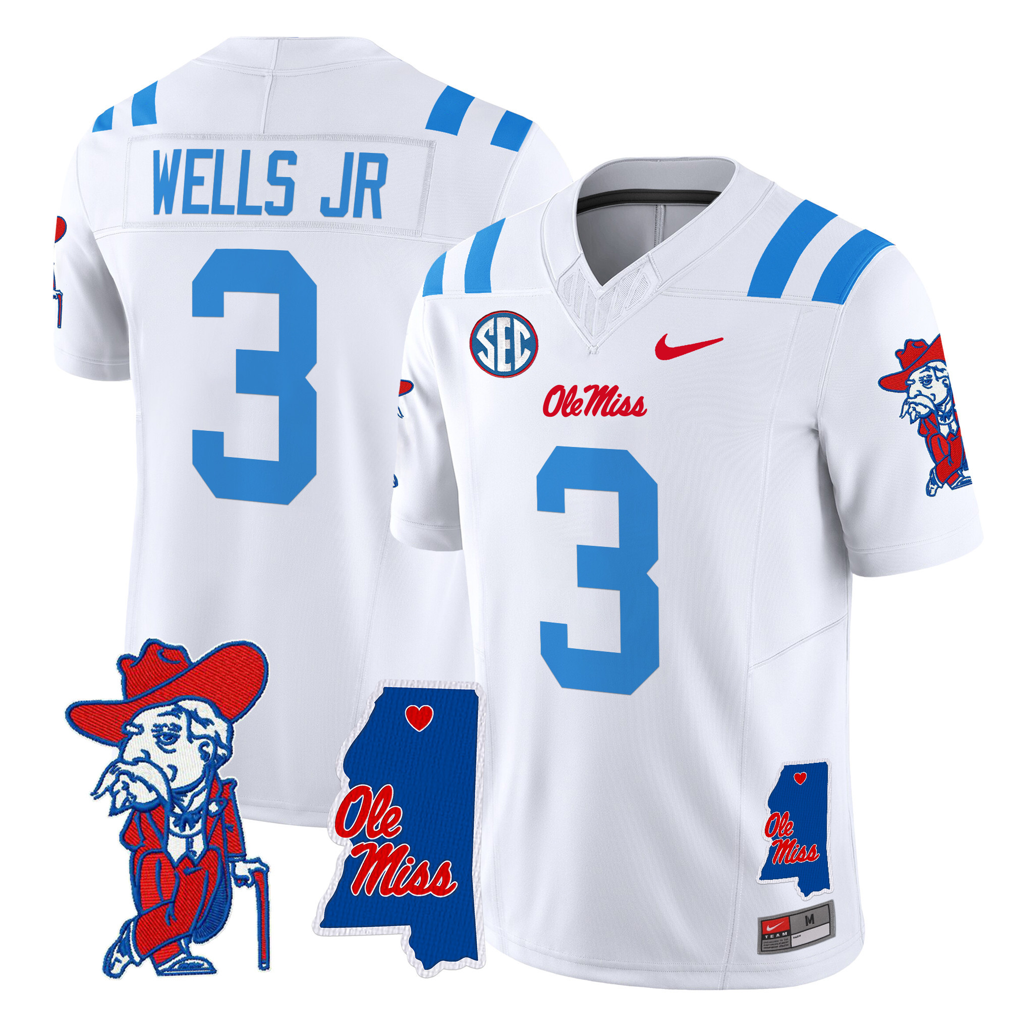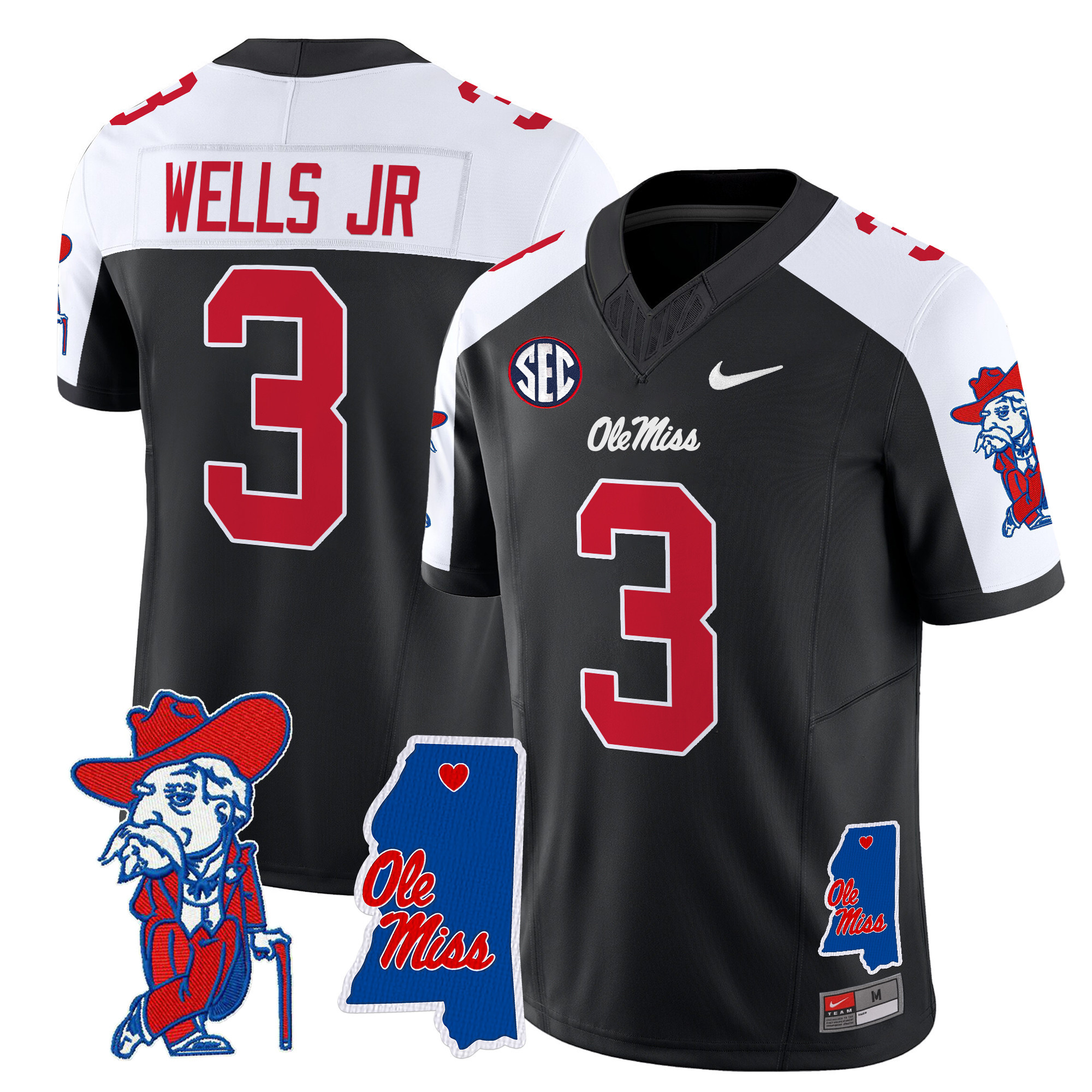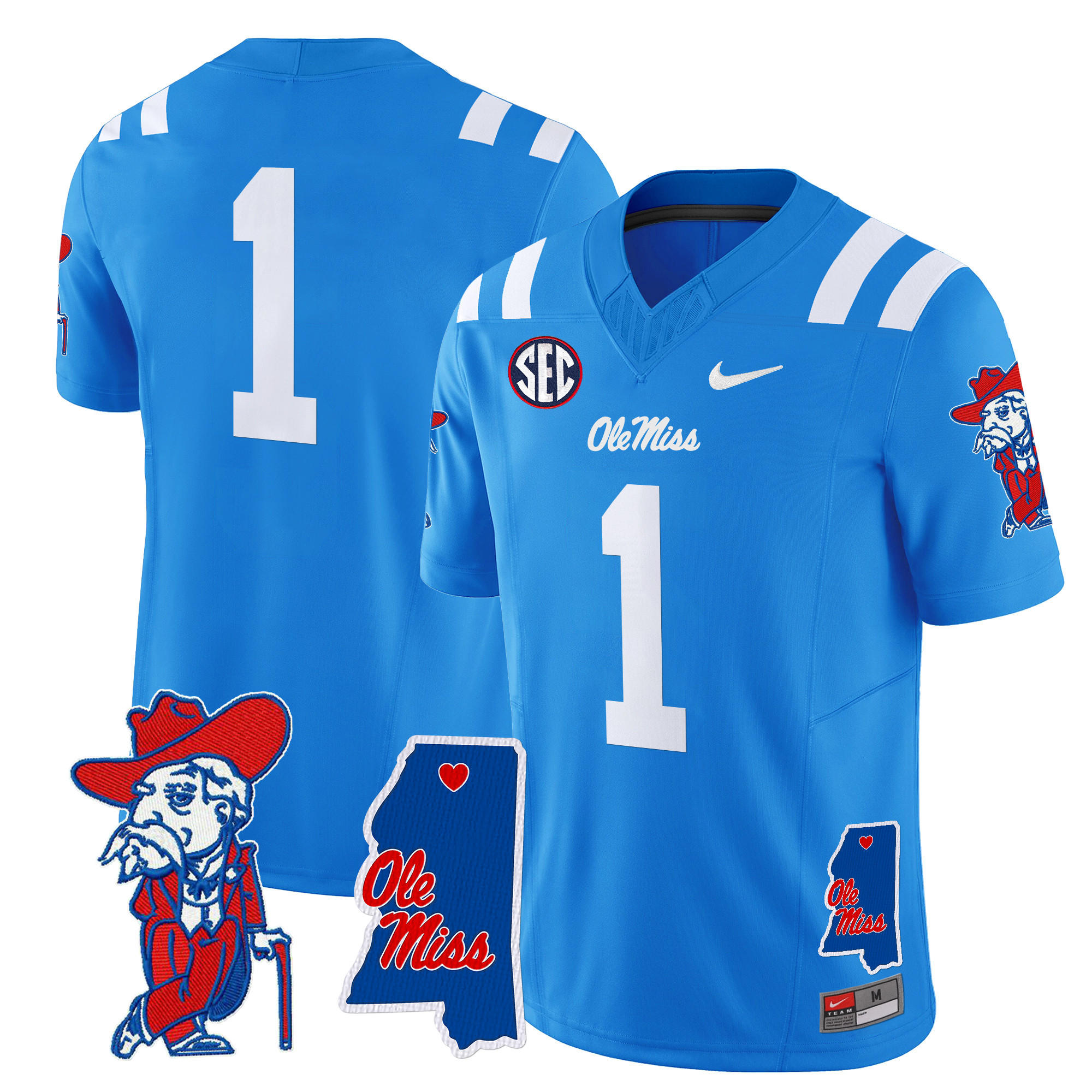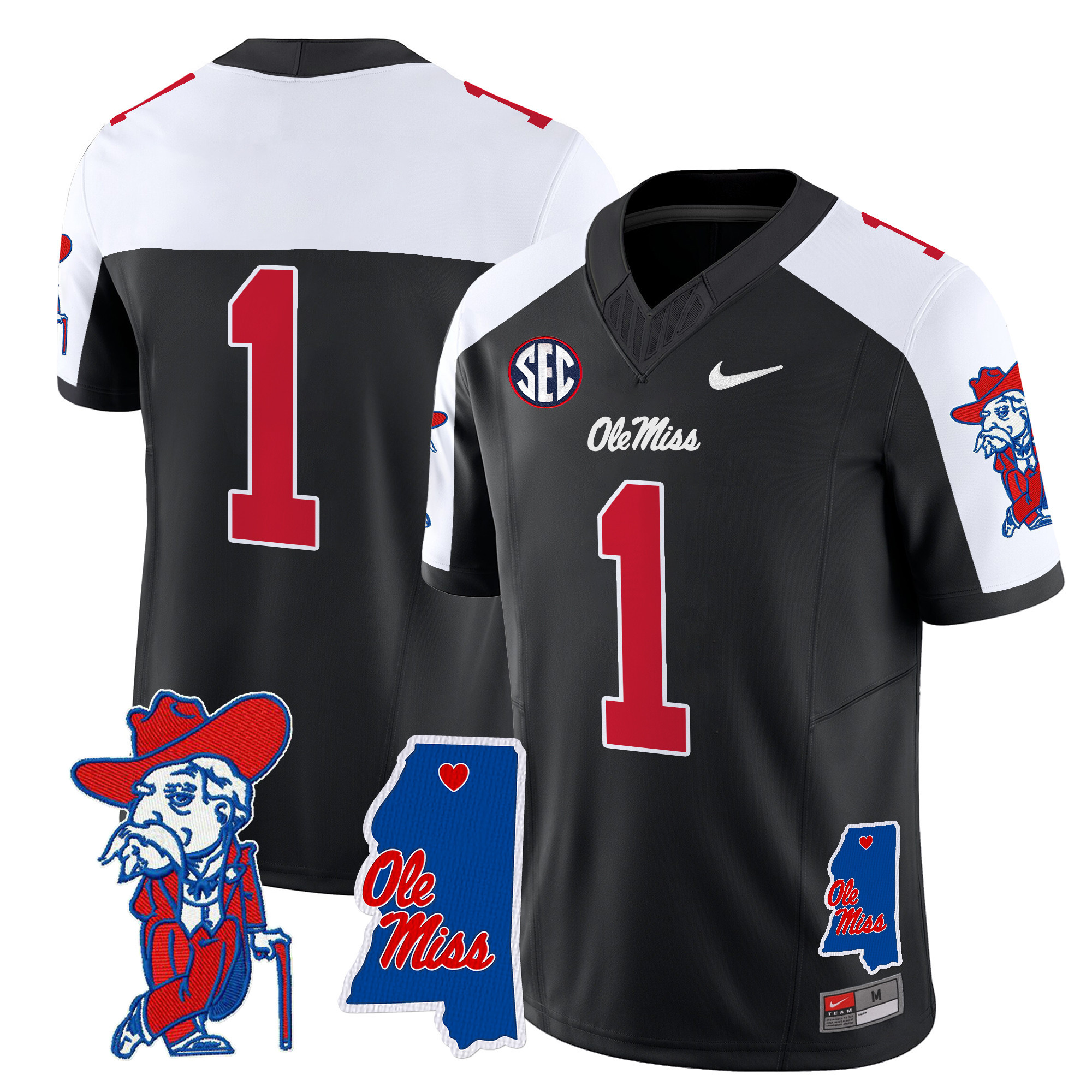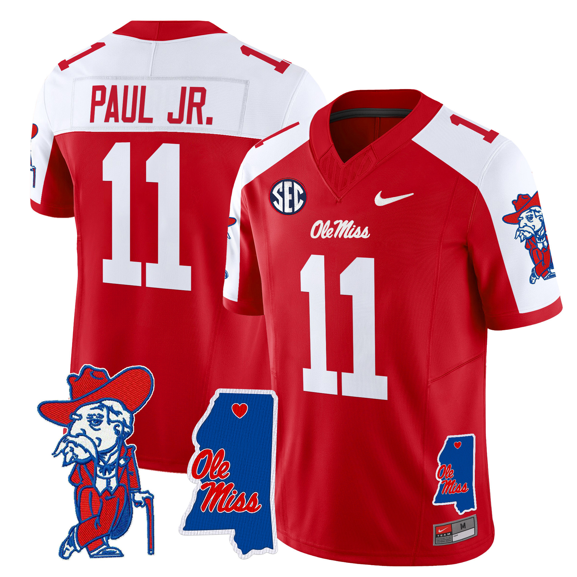 Men’s Ole Miss Rebels 2024 Mississippi Map Patch Vapor Limited Jersey All Stitched