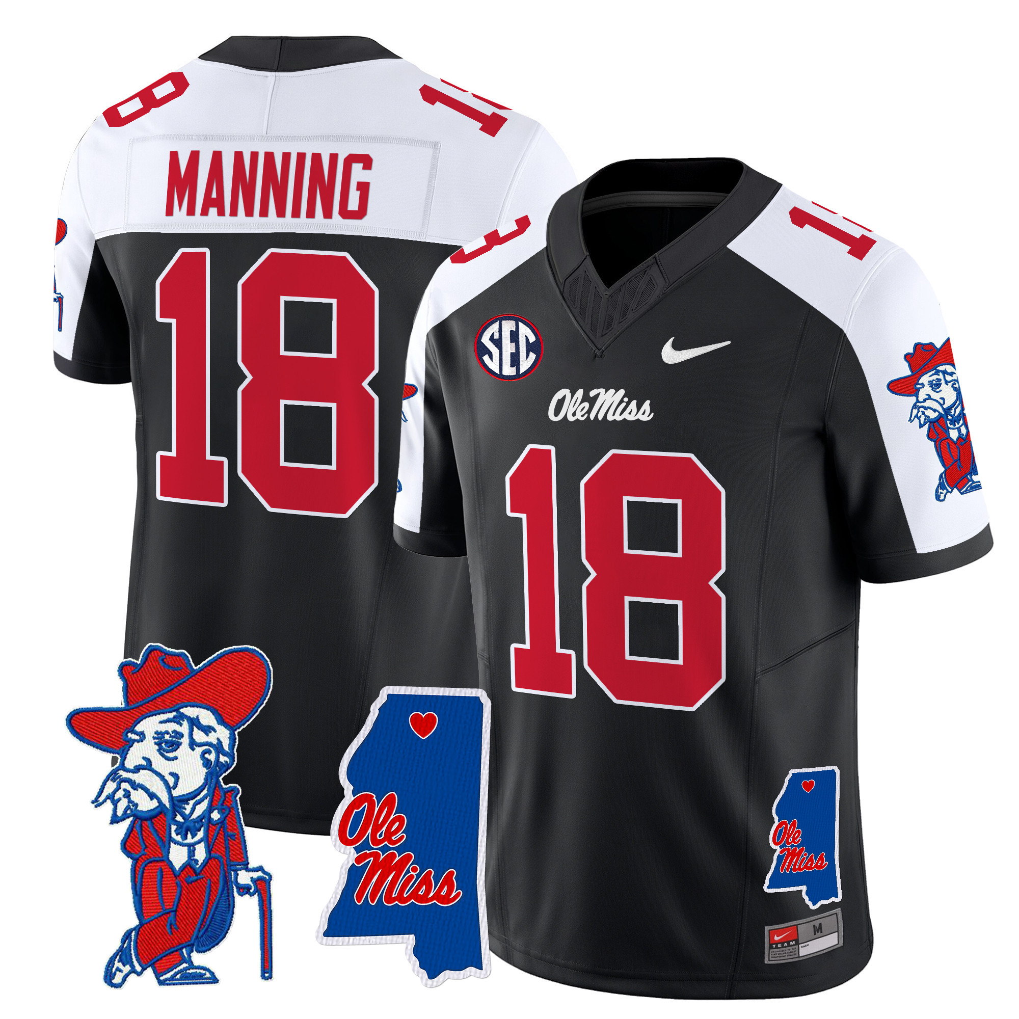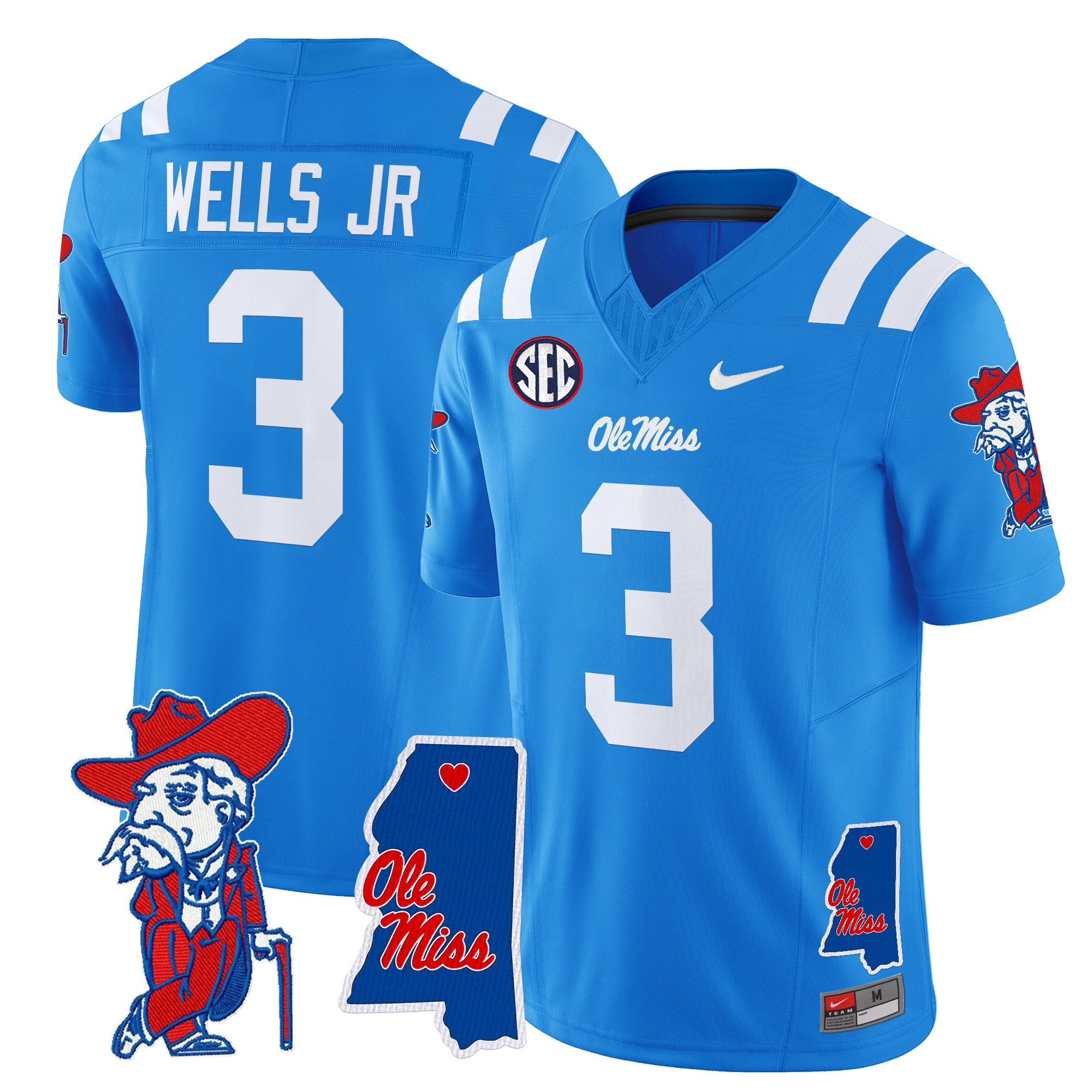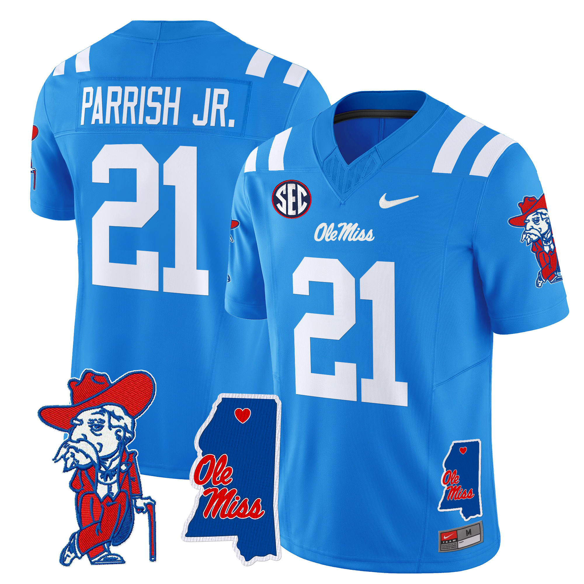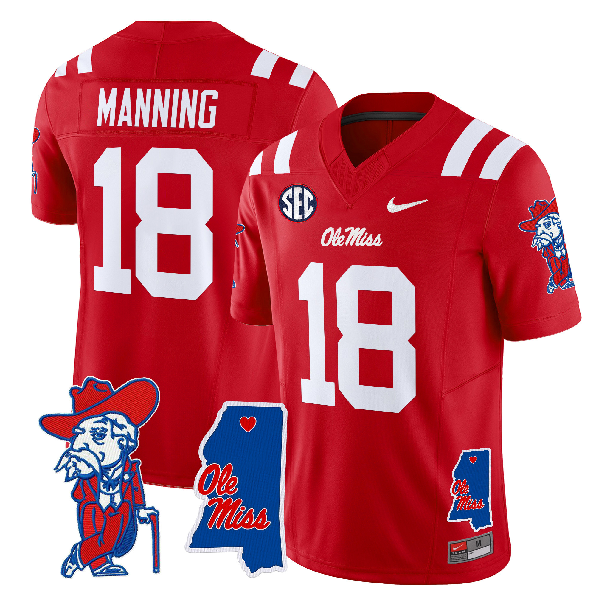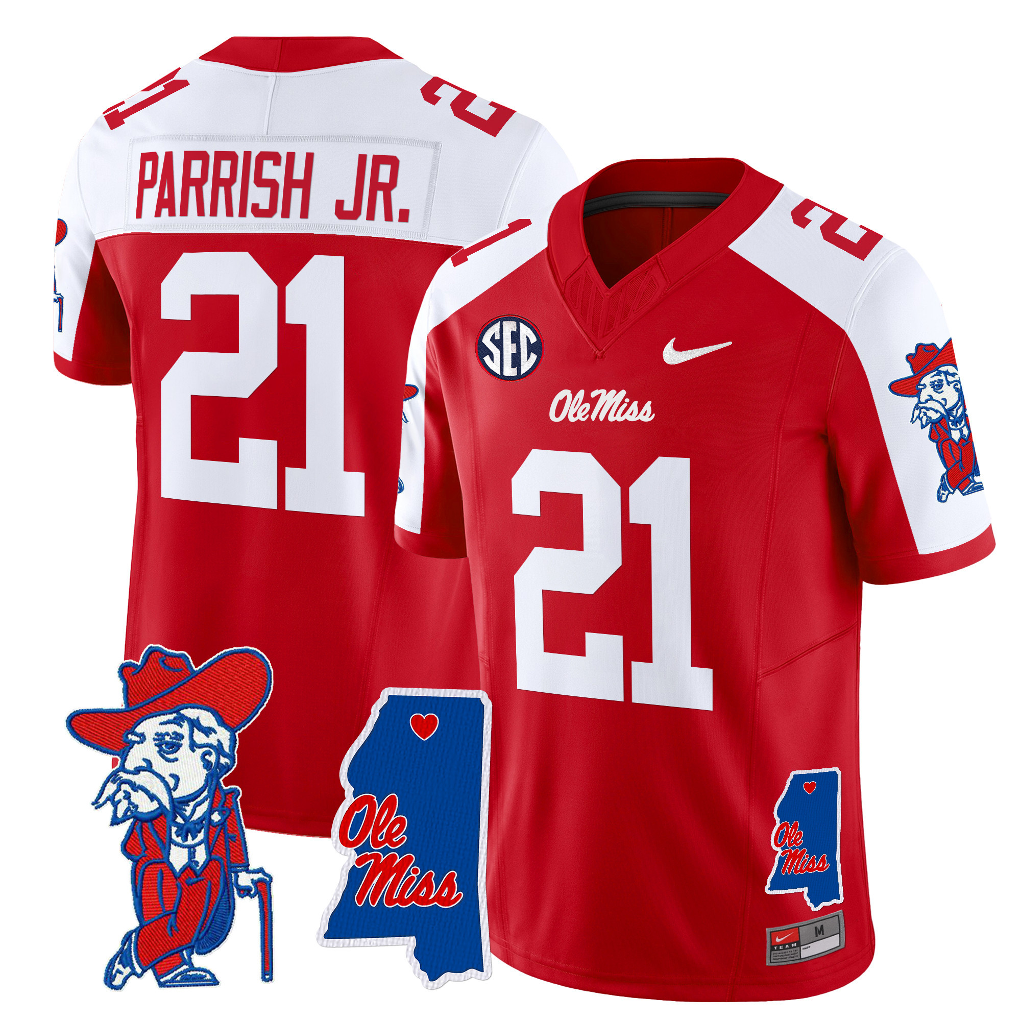 Men’s Ole Miss Rebels 2024 Mississippi Map Patch Vapor Limited Jersey All Stitched