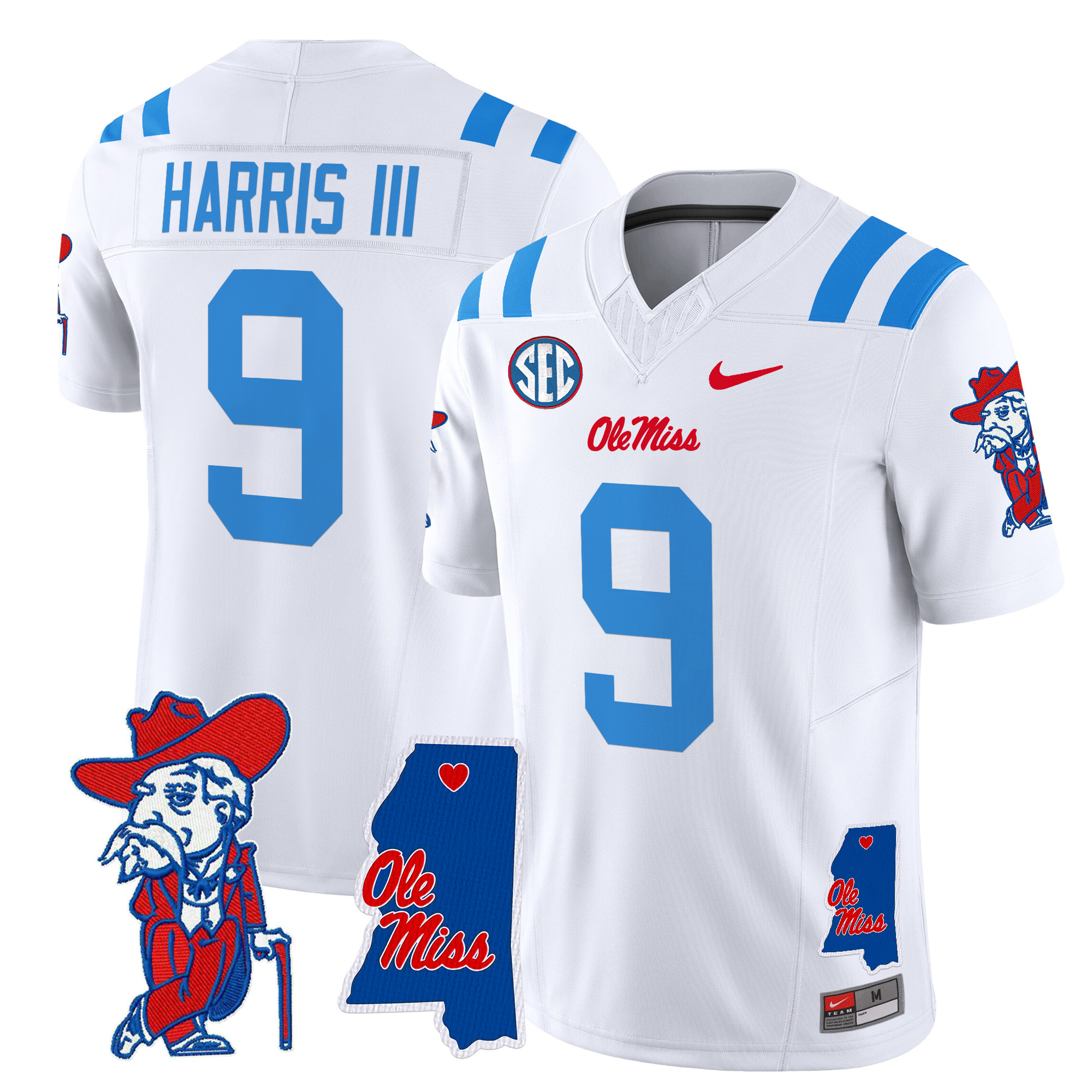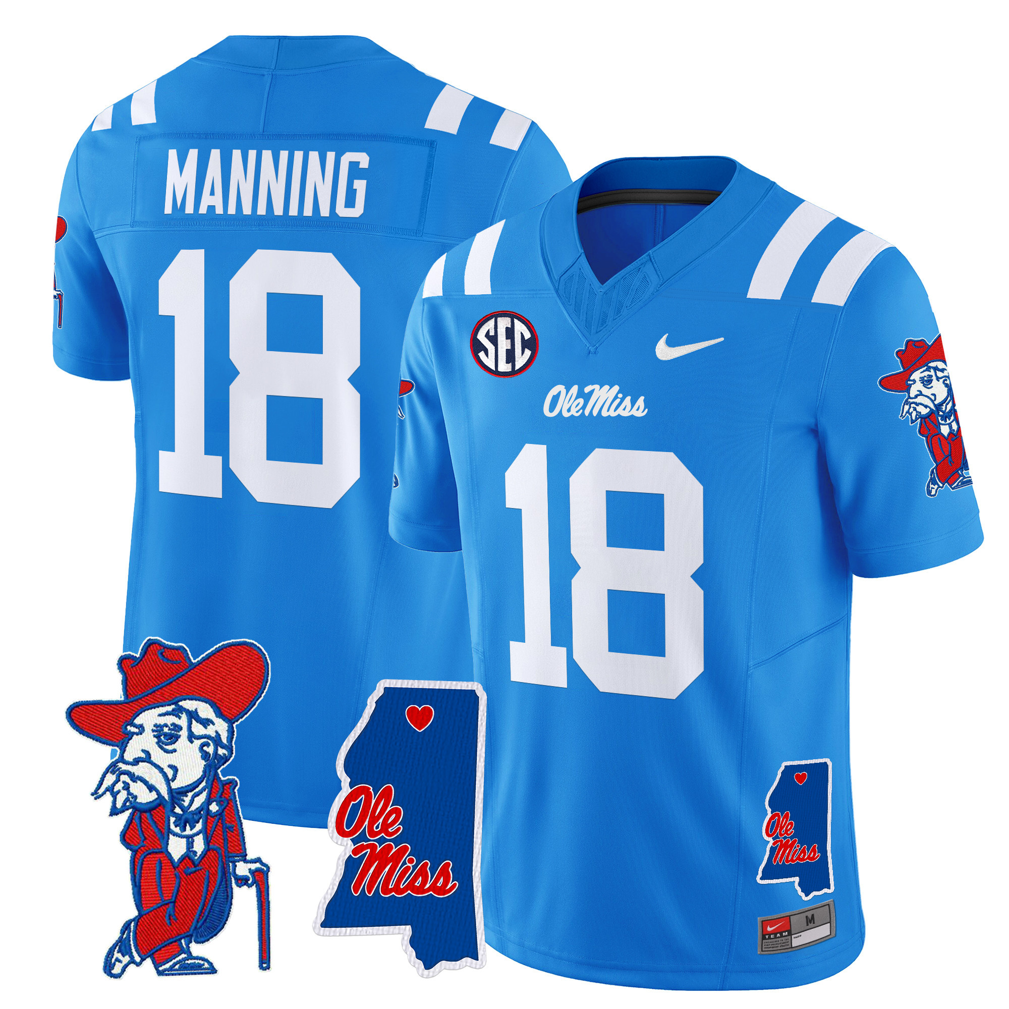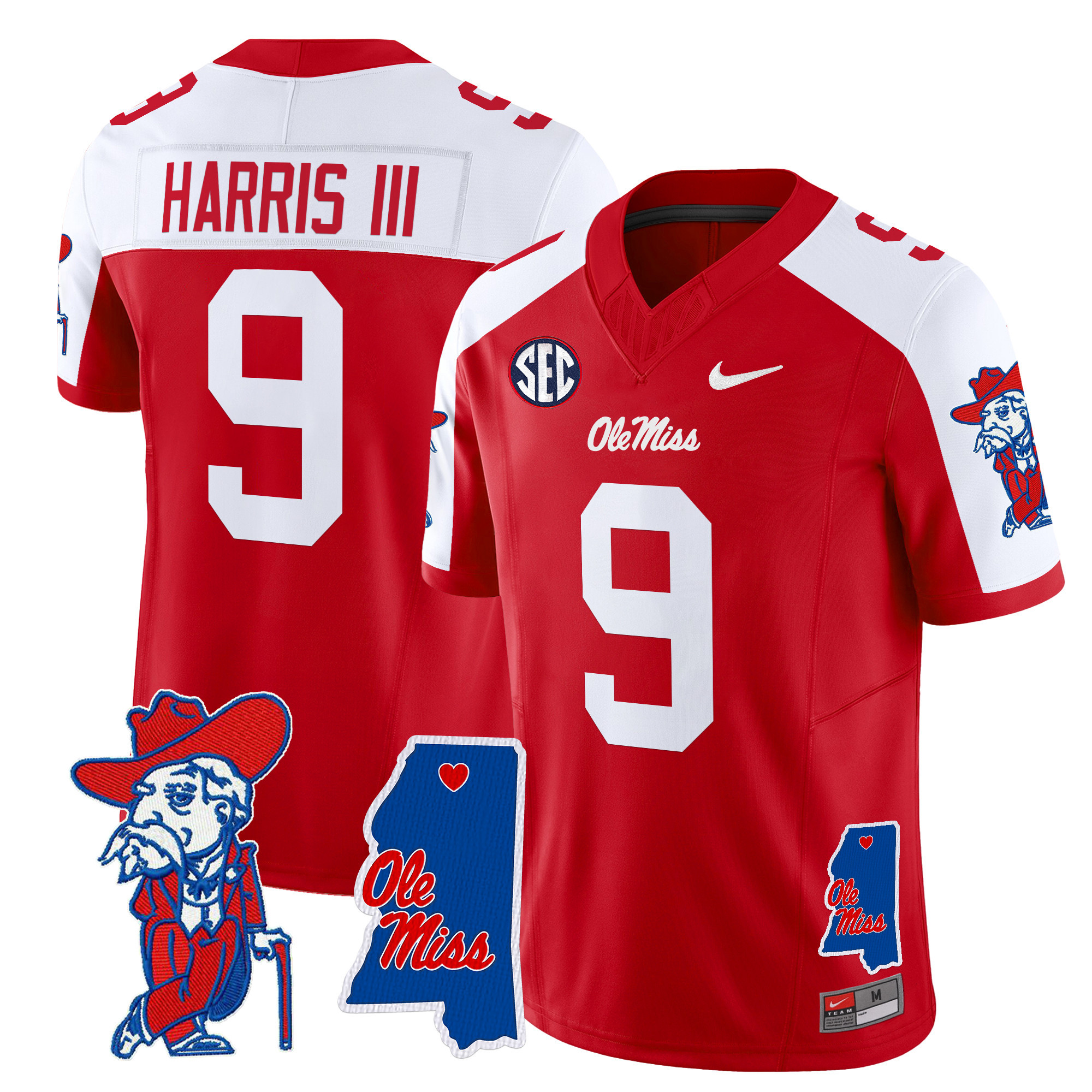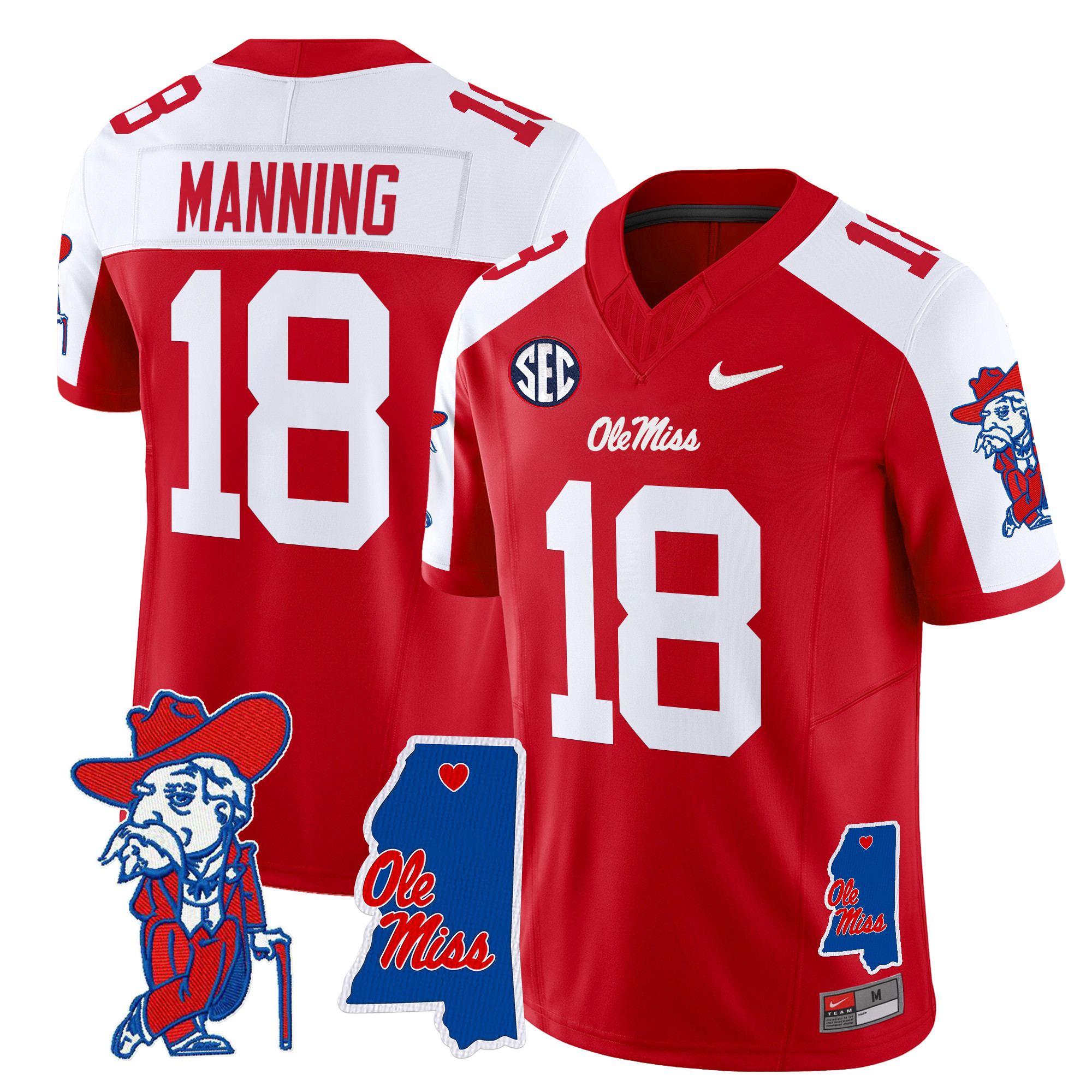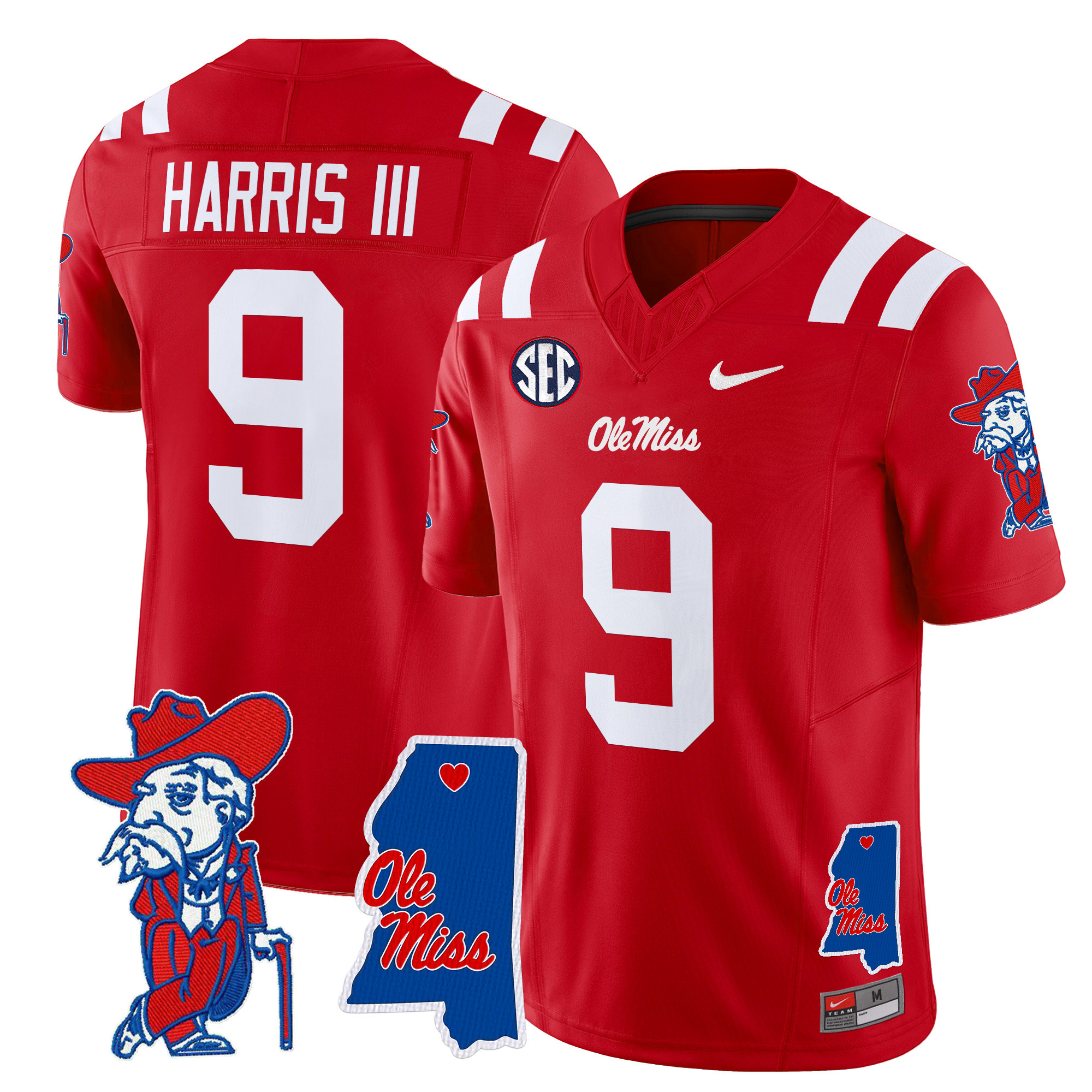 Men’s Ole Miss Rebels 2024 Mississippi Map Patch Vapor Limited Jersey All Stitched