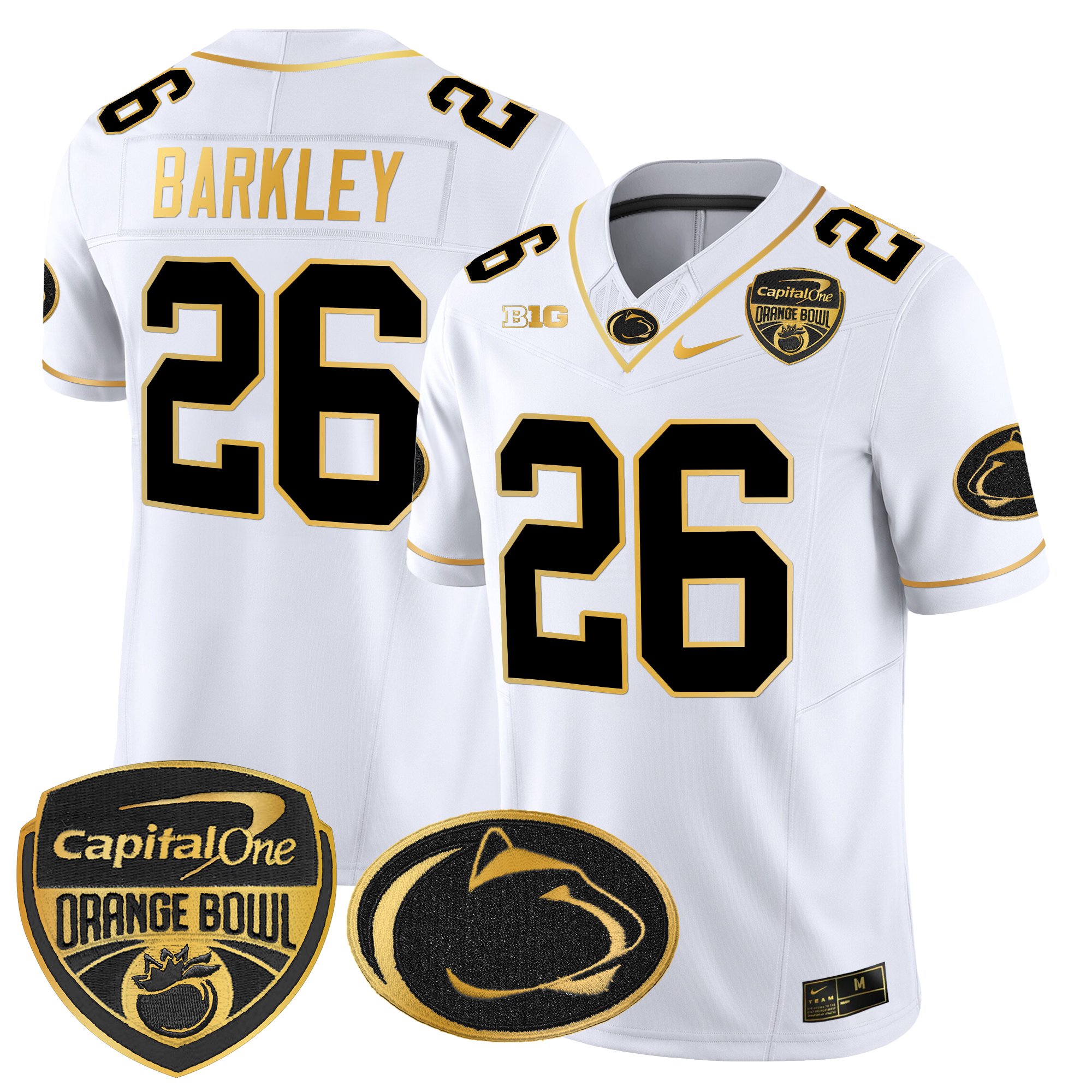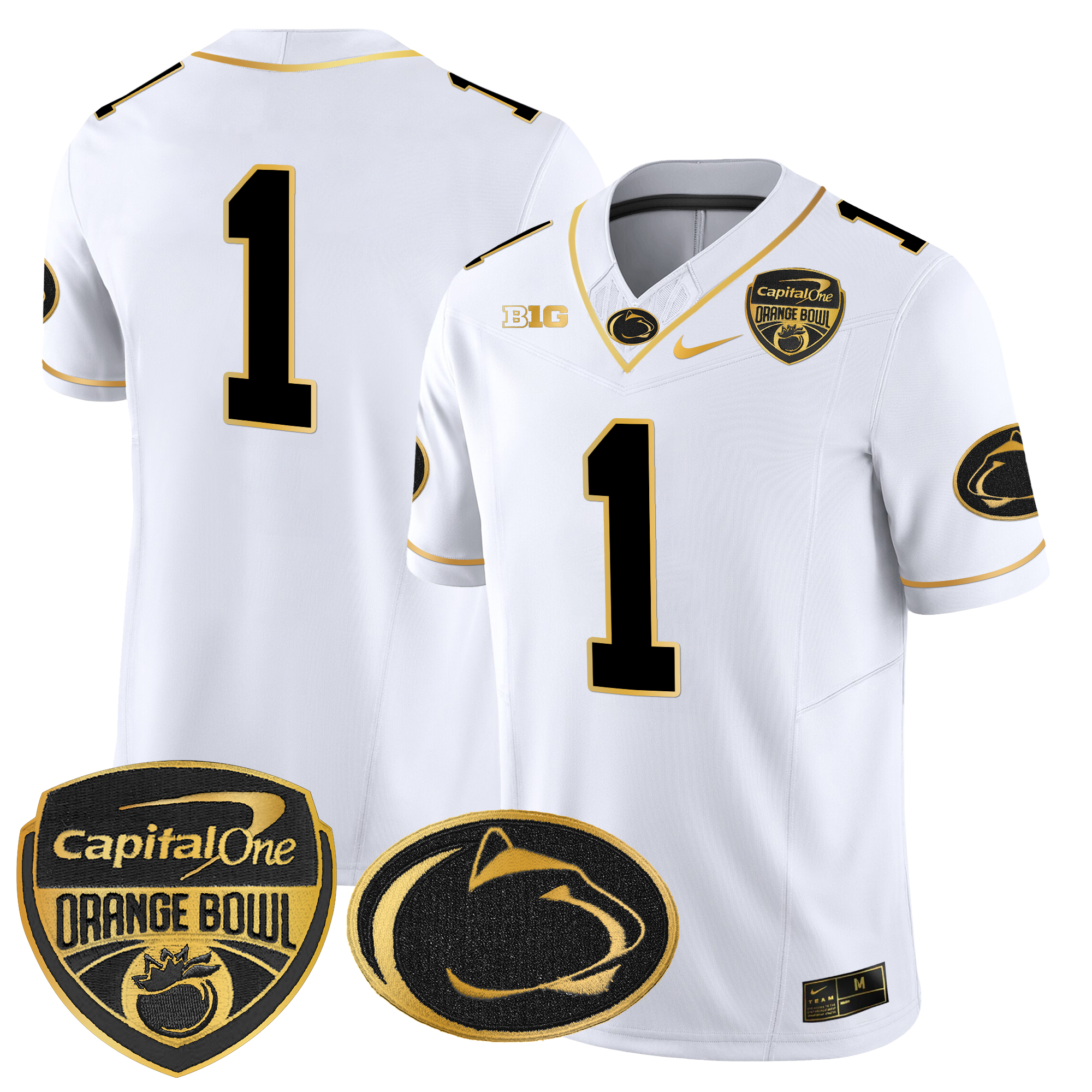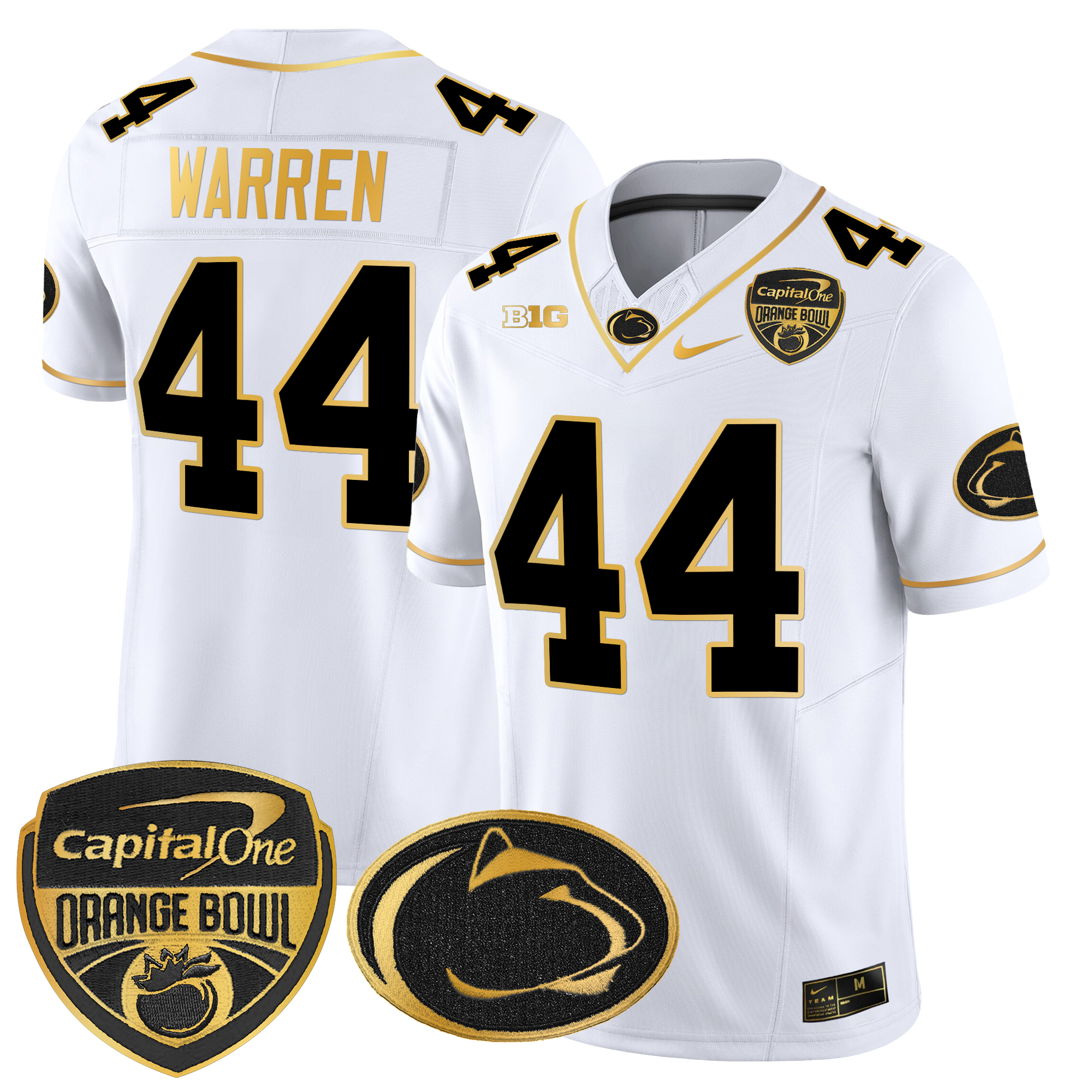 Men’s Penn State Nittany Lions Orange Bowl Patch Gold Vapor Limited Jersey All Stitched