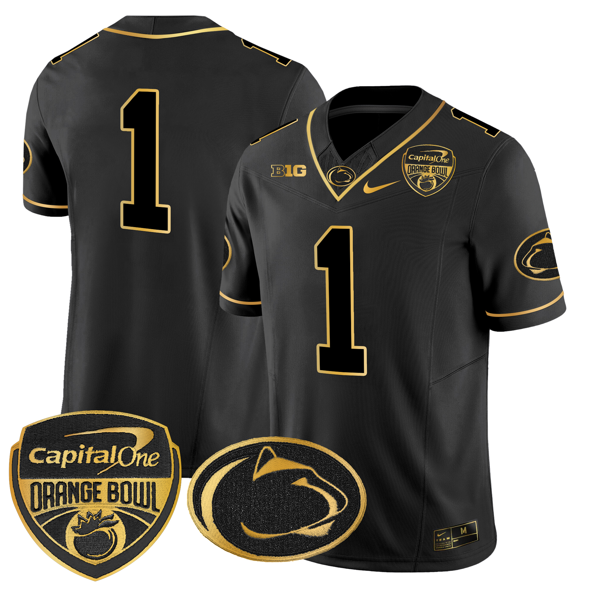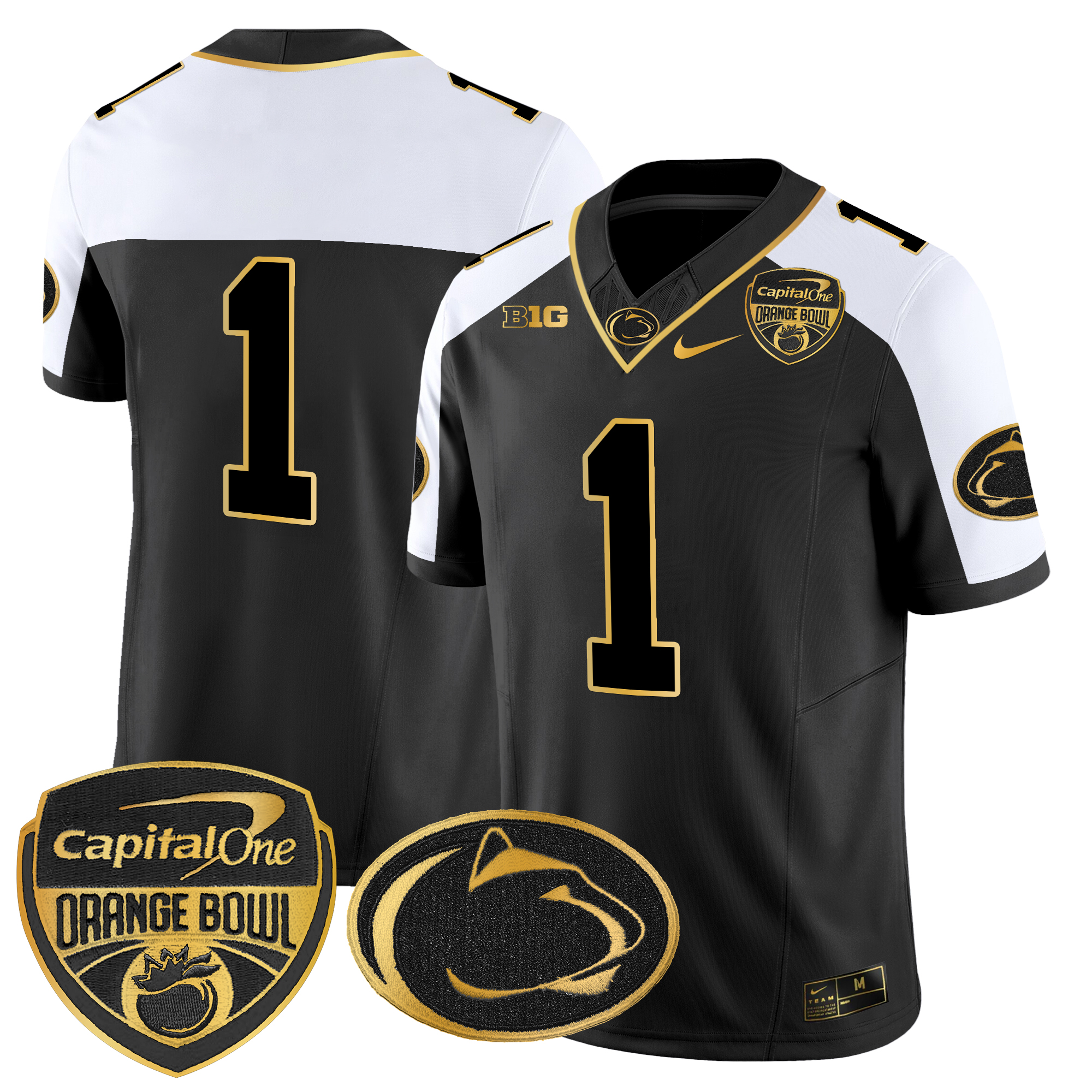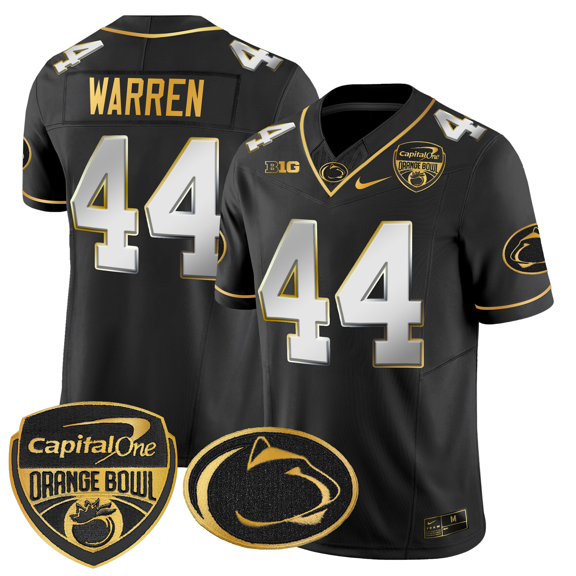 Men’s Penn State Nittany Lions Orange Bowl Patch Gold Vapor Limited Jersey All Stitched