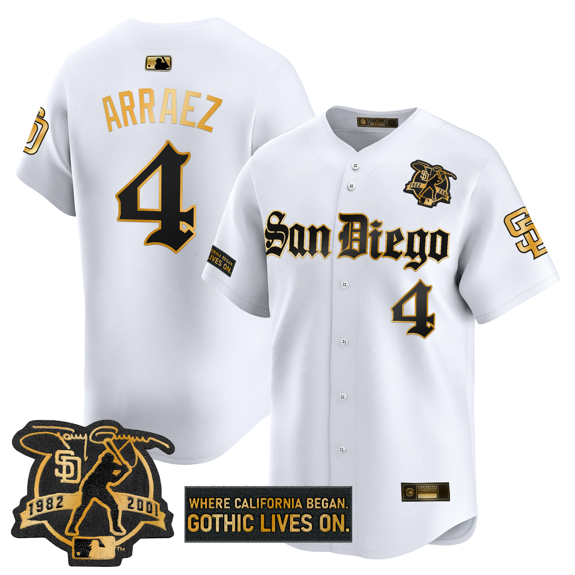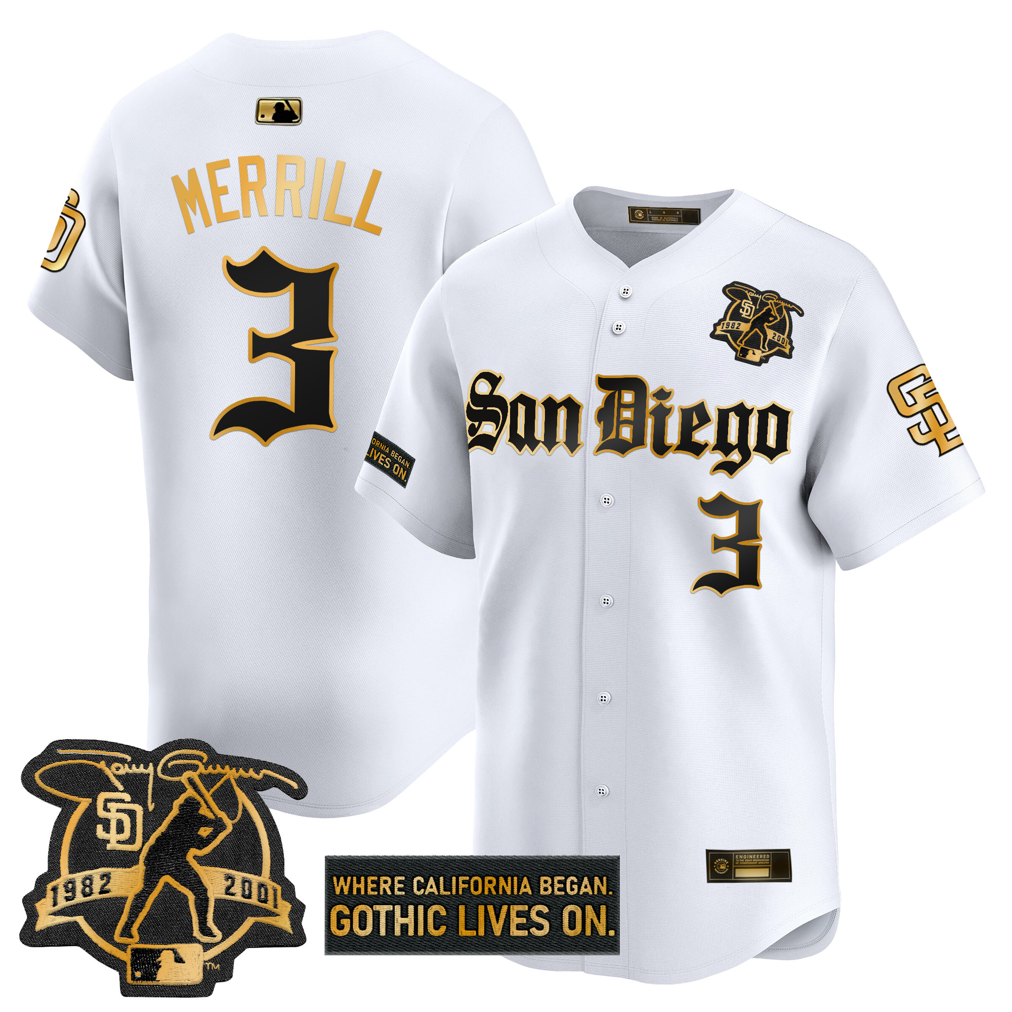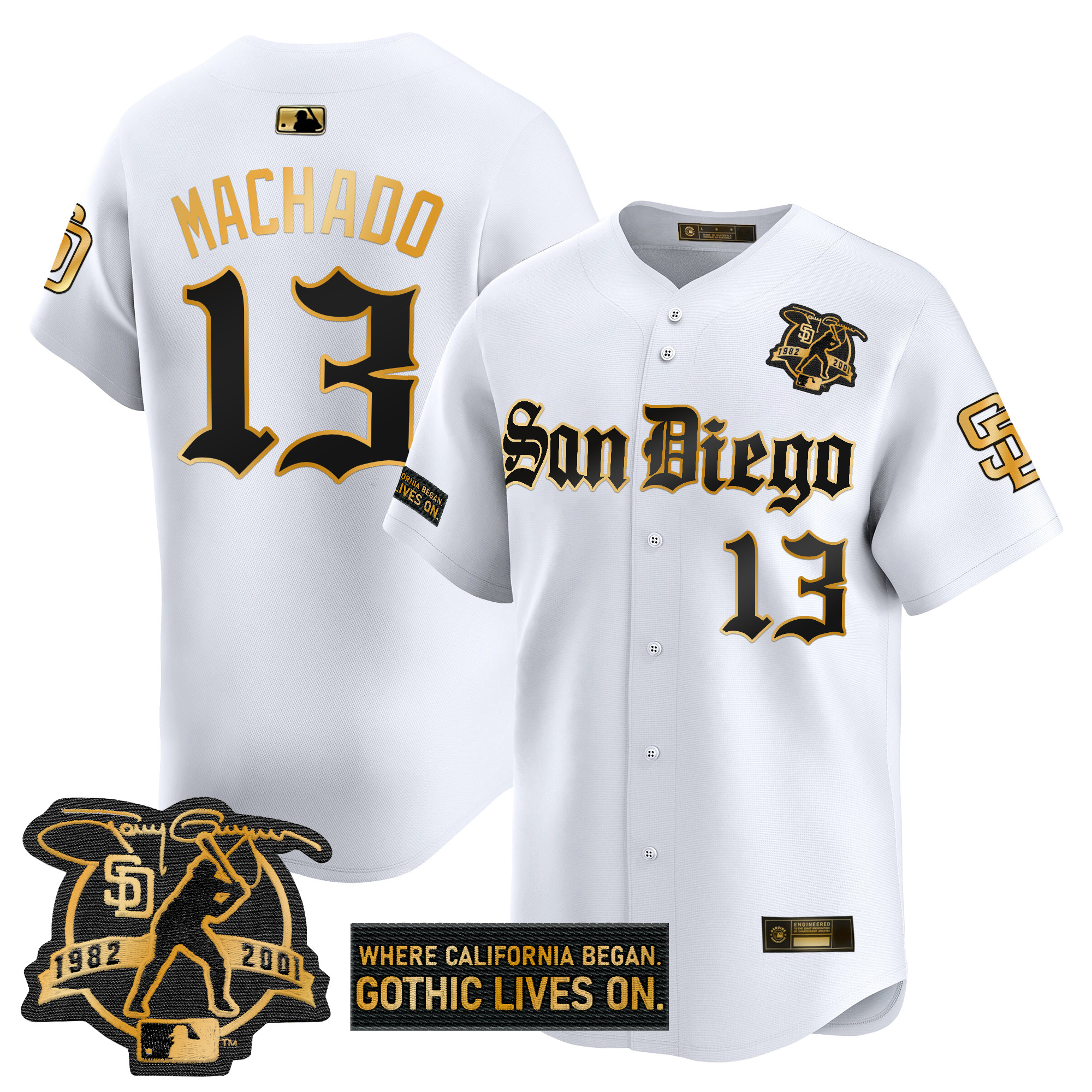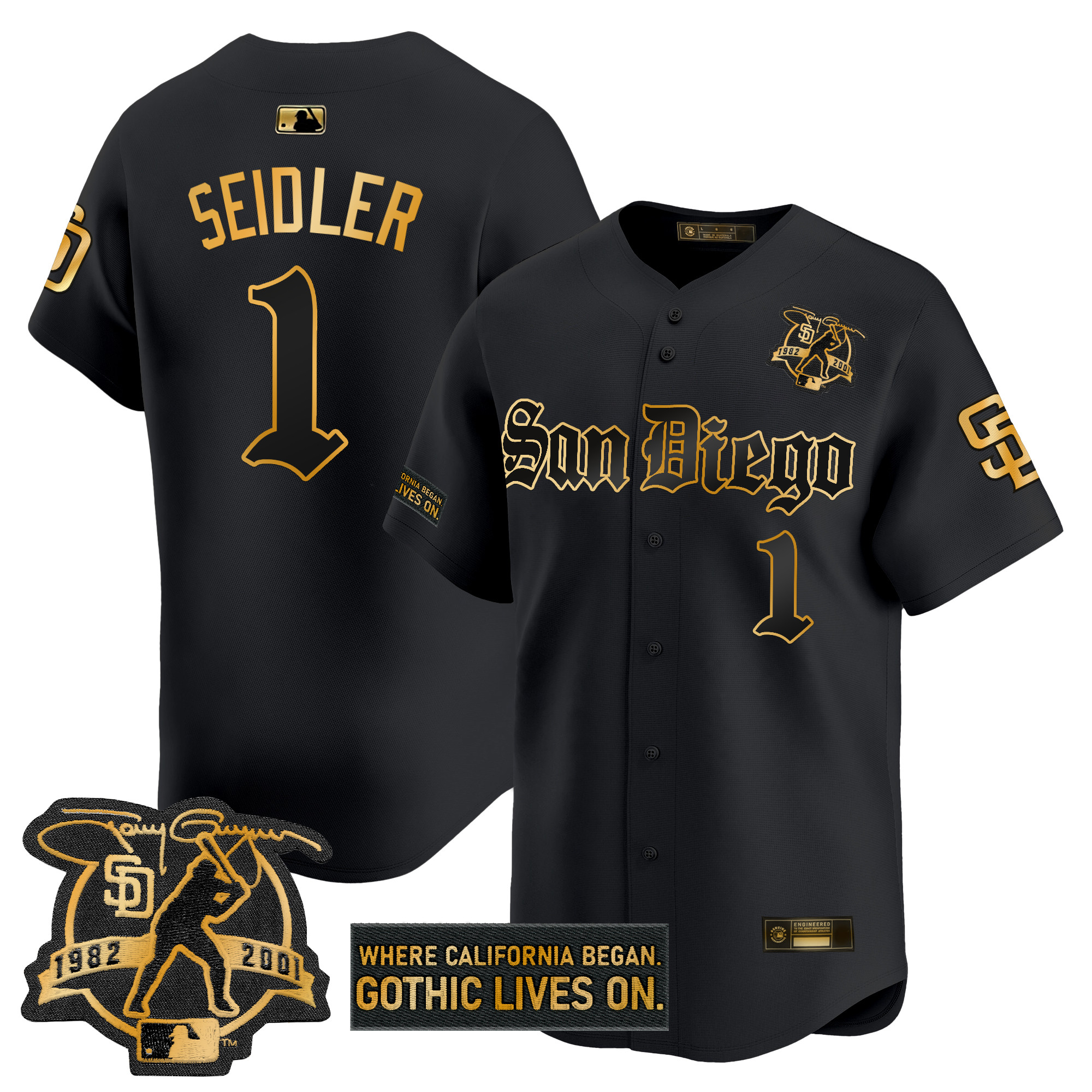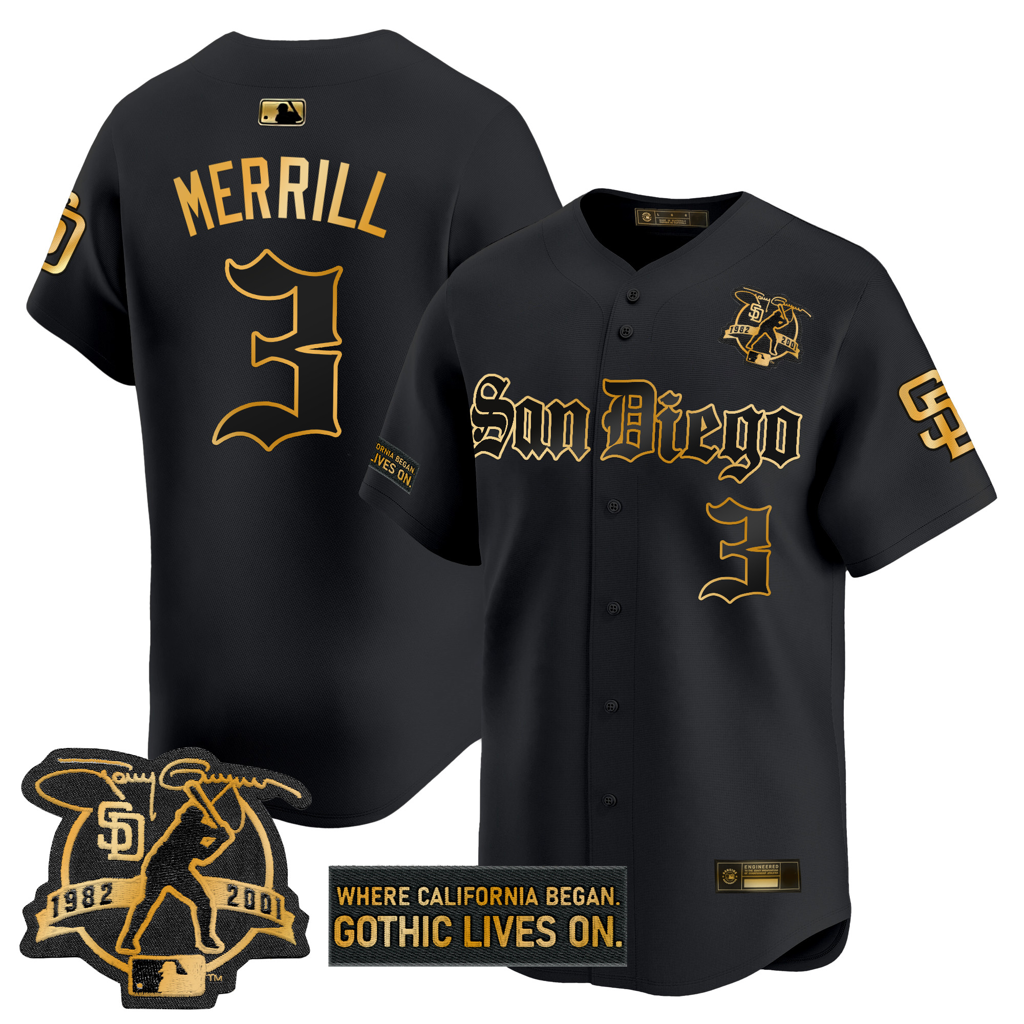 Mens San Diego Padres Gothic Edition Gold Vapor Premier Limited Jersey All Stitched