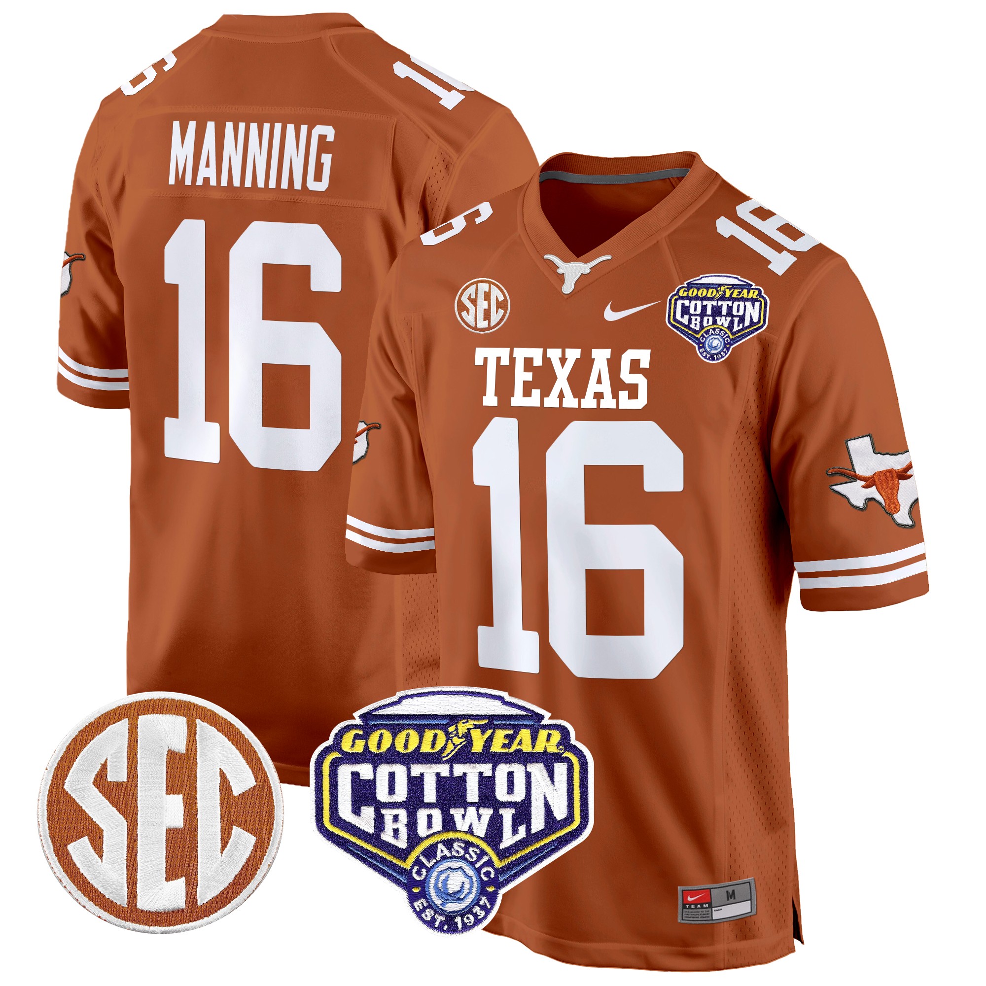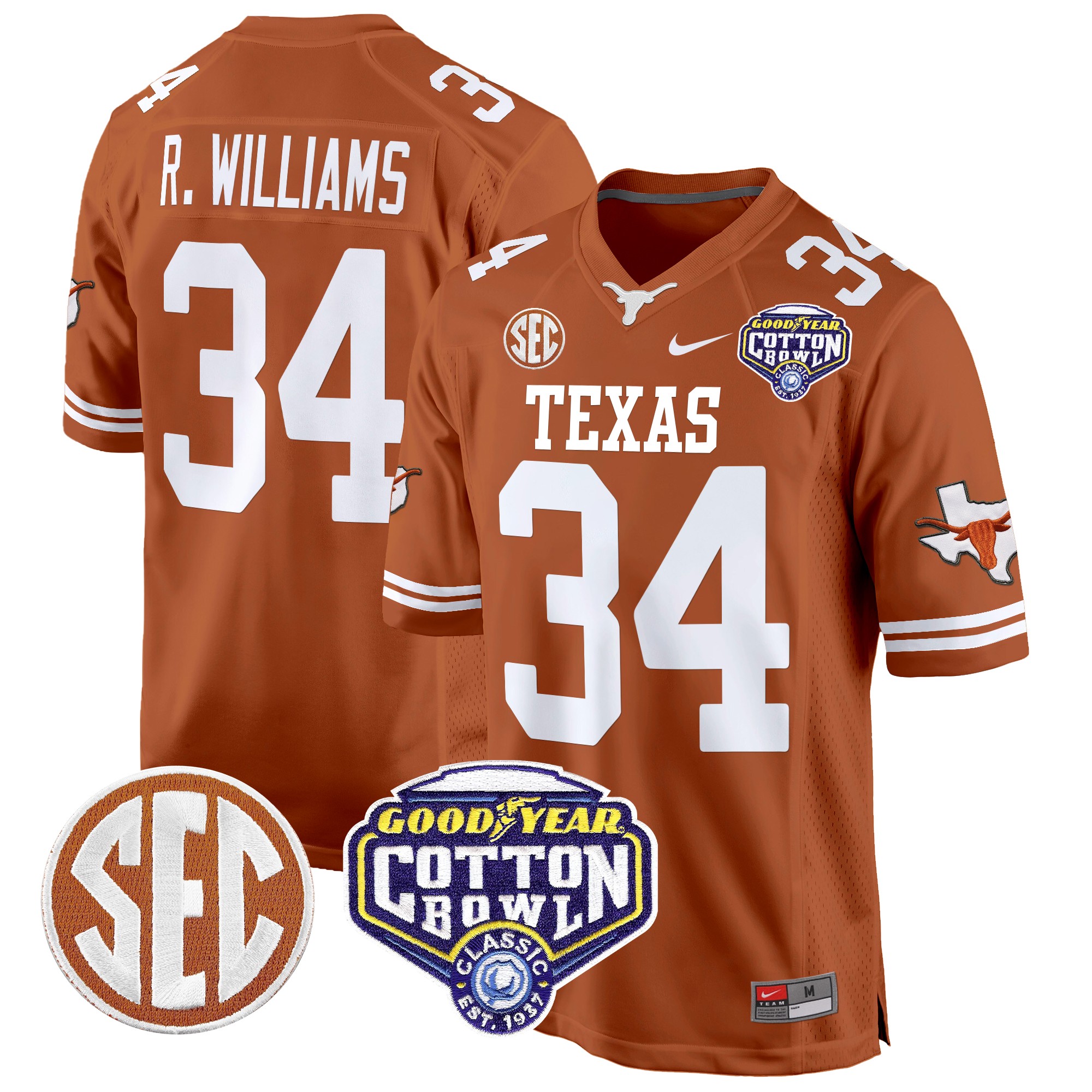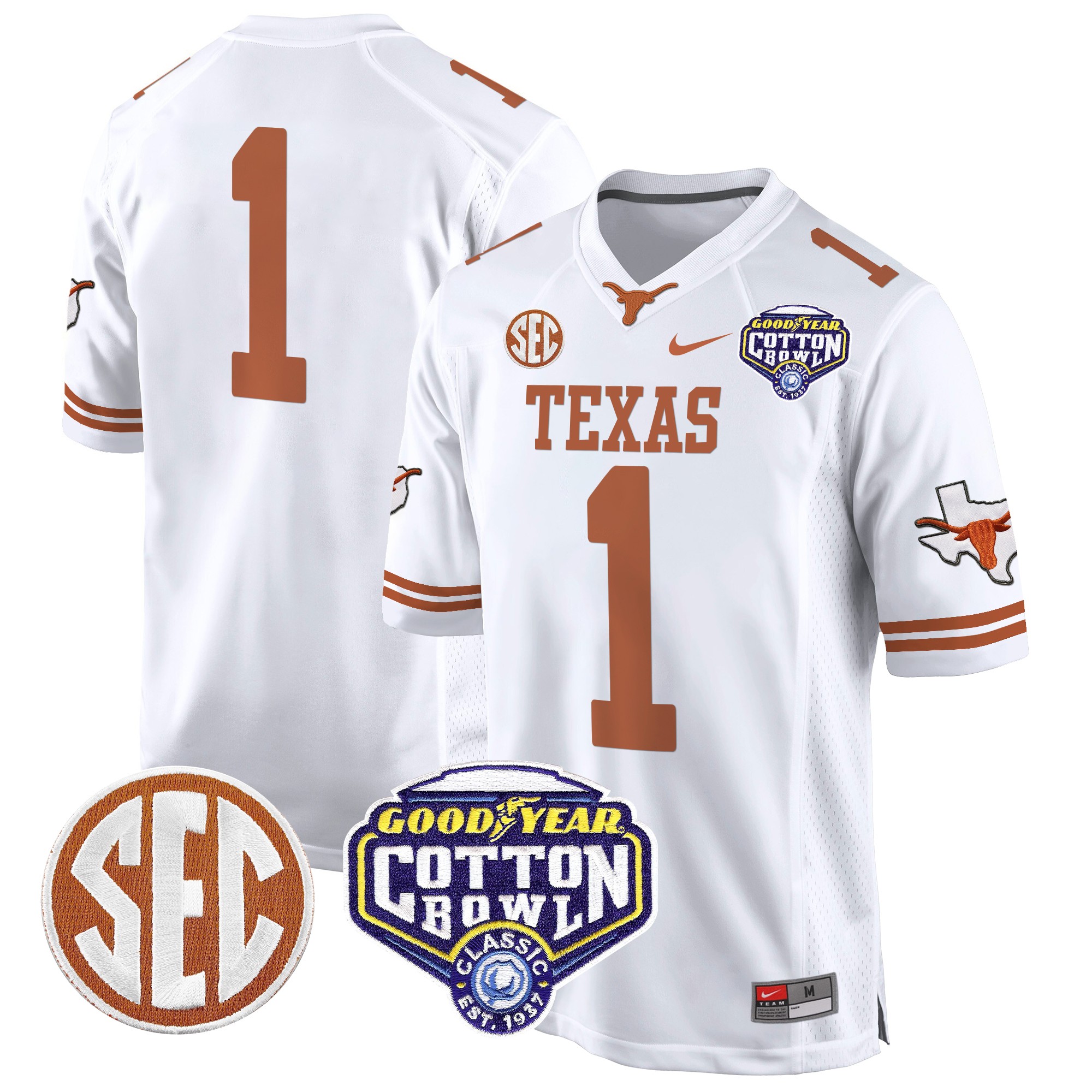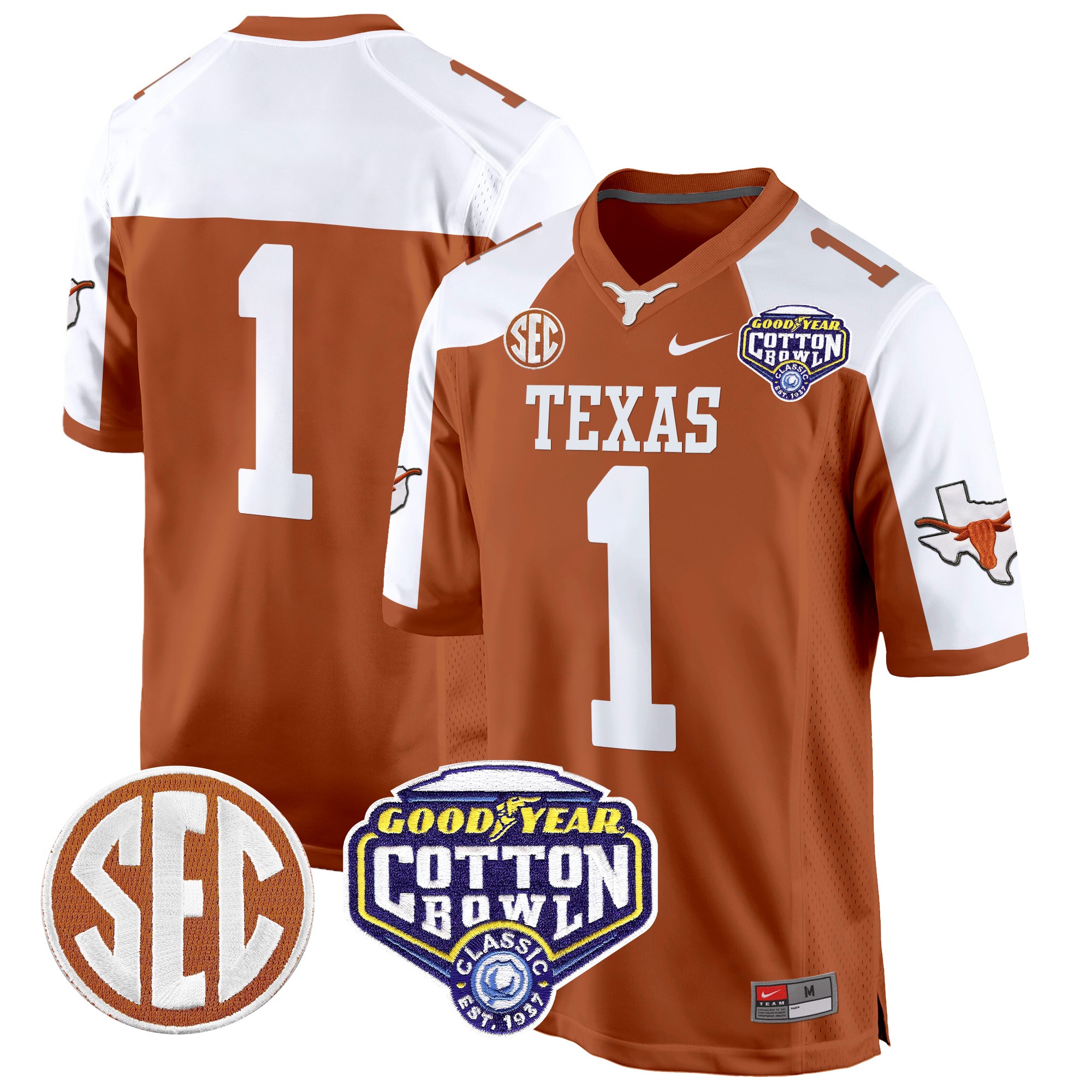 Men’s Texas Longhorns Cotton Bowl Patch Game Jersey All Stitched