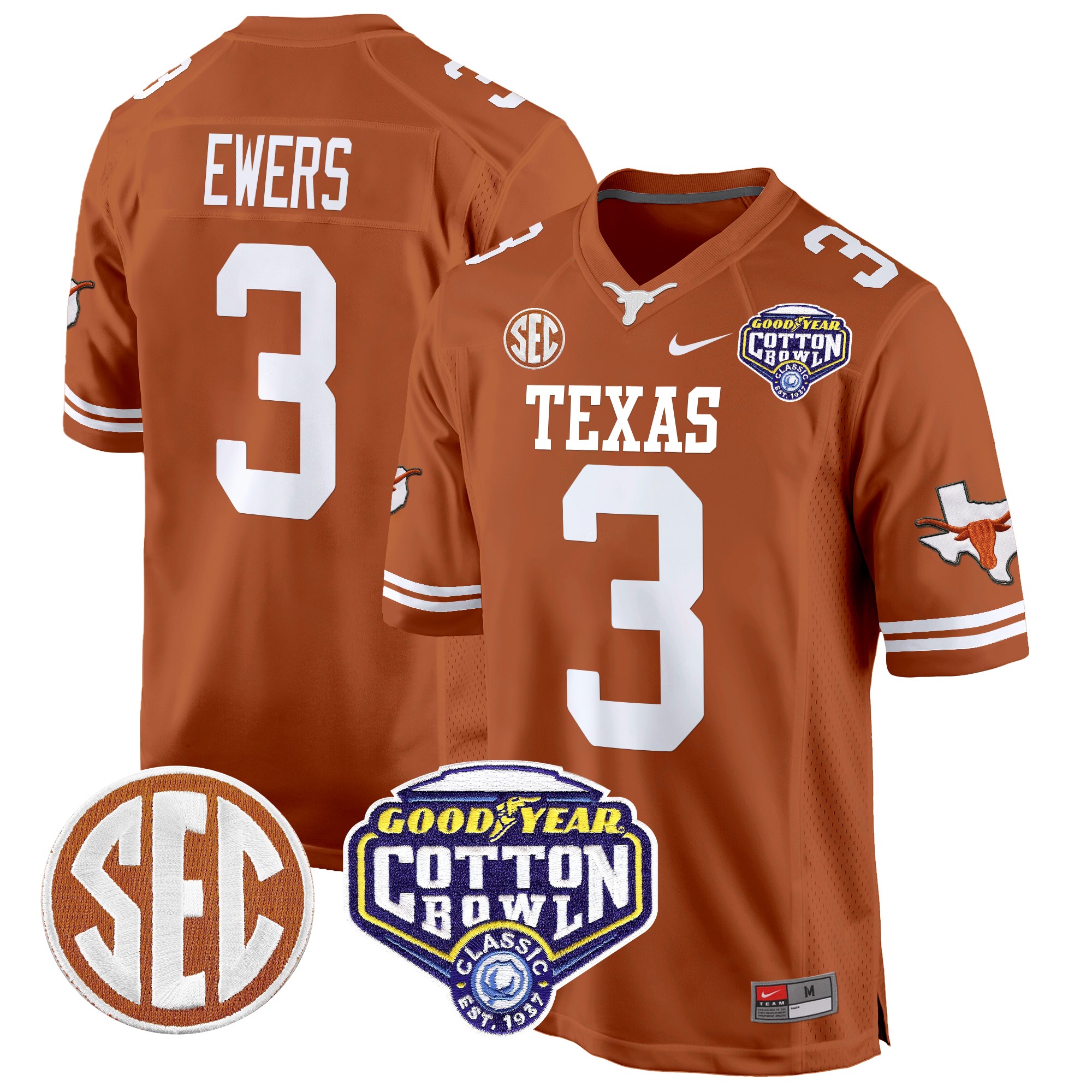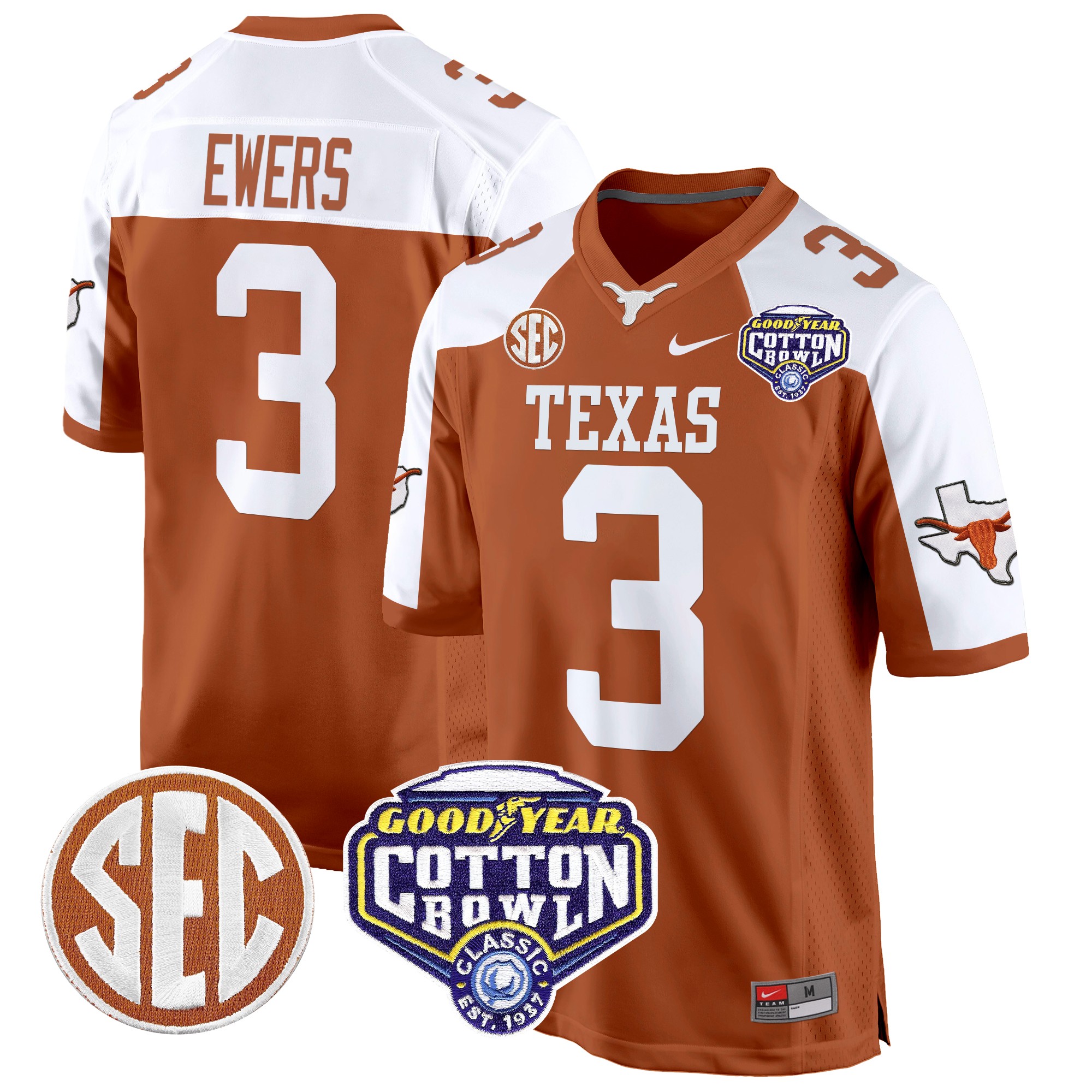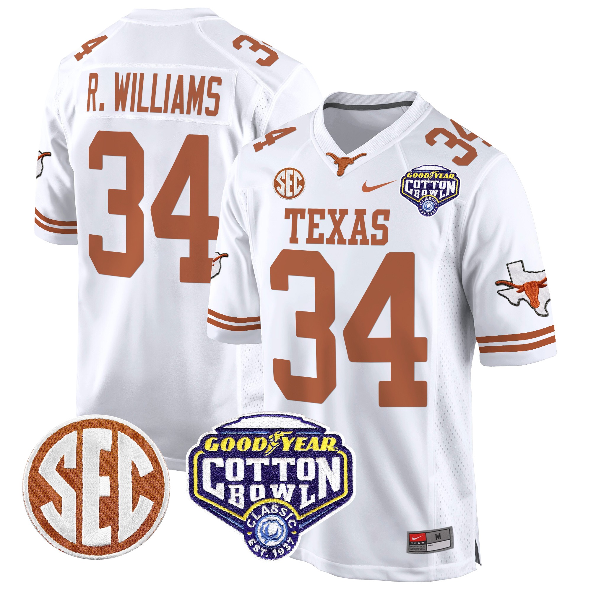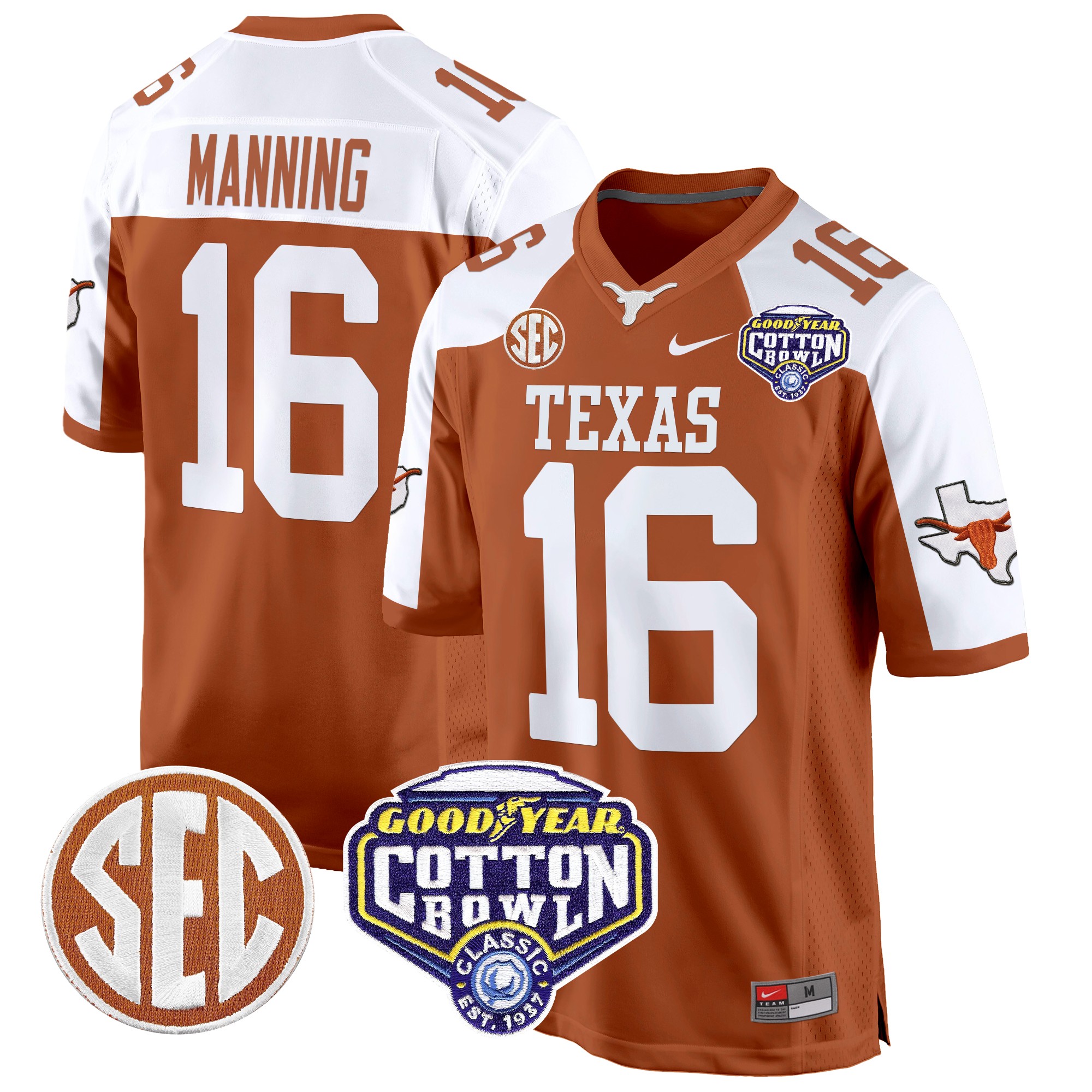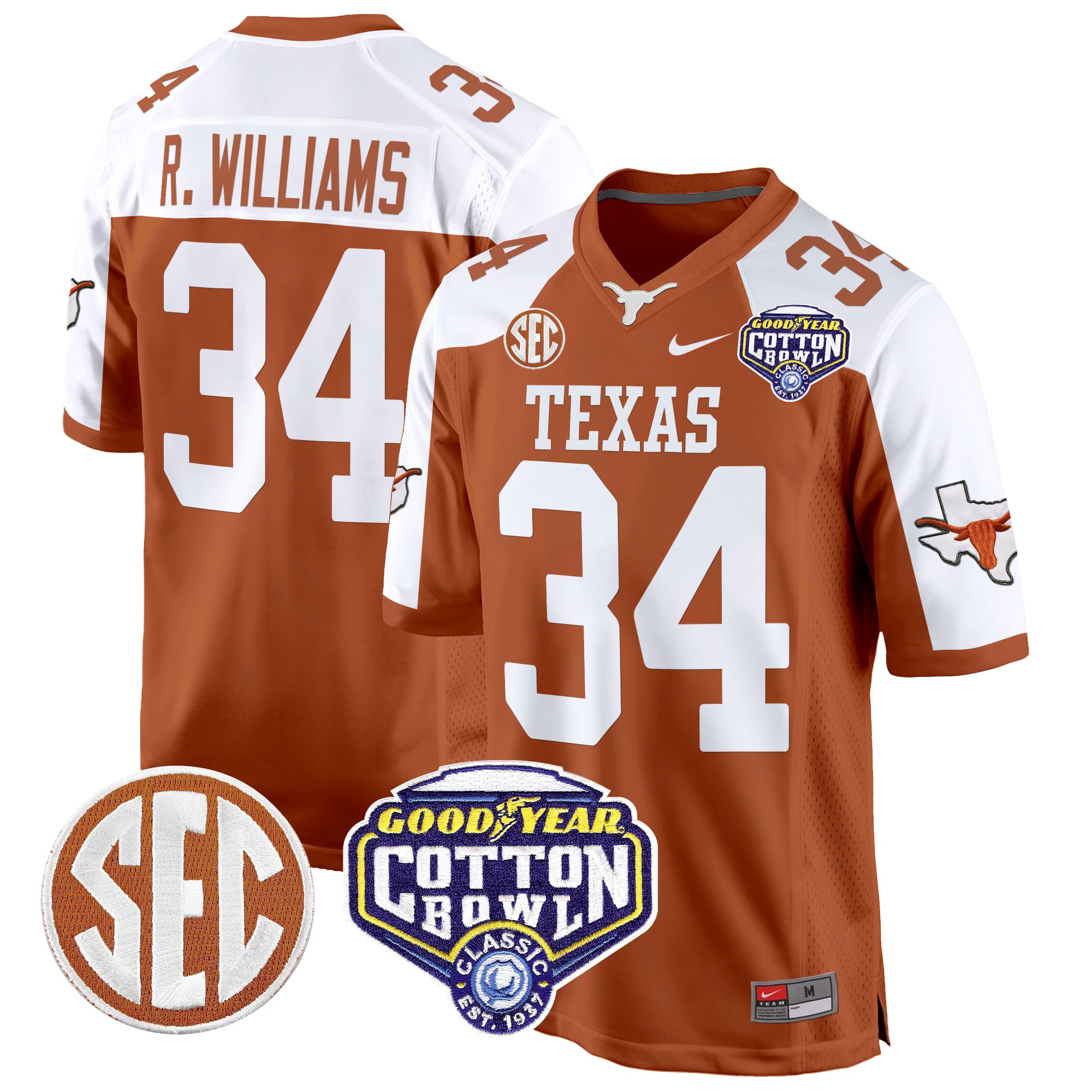 Men’s Texas Longhorns Cotton Bowl Patch Game Jersey All Stitched
