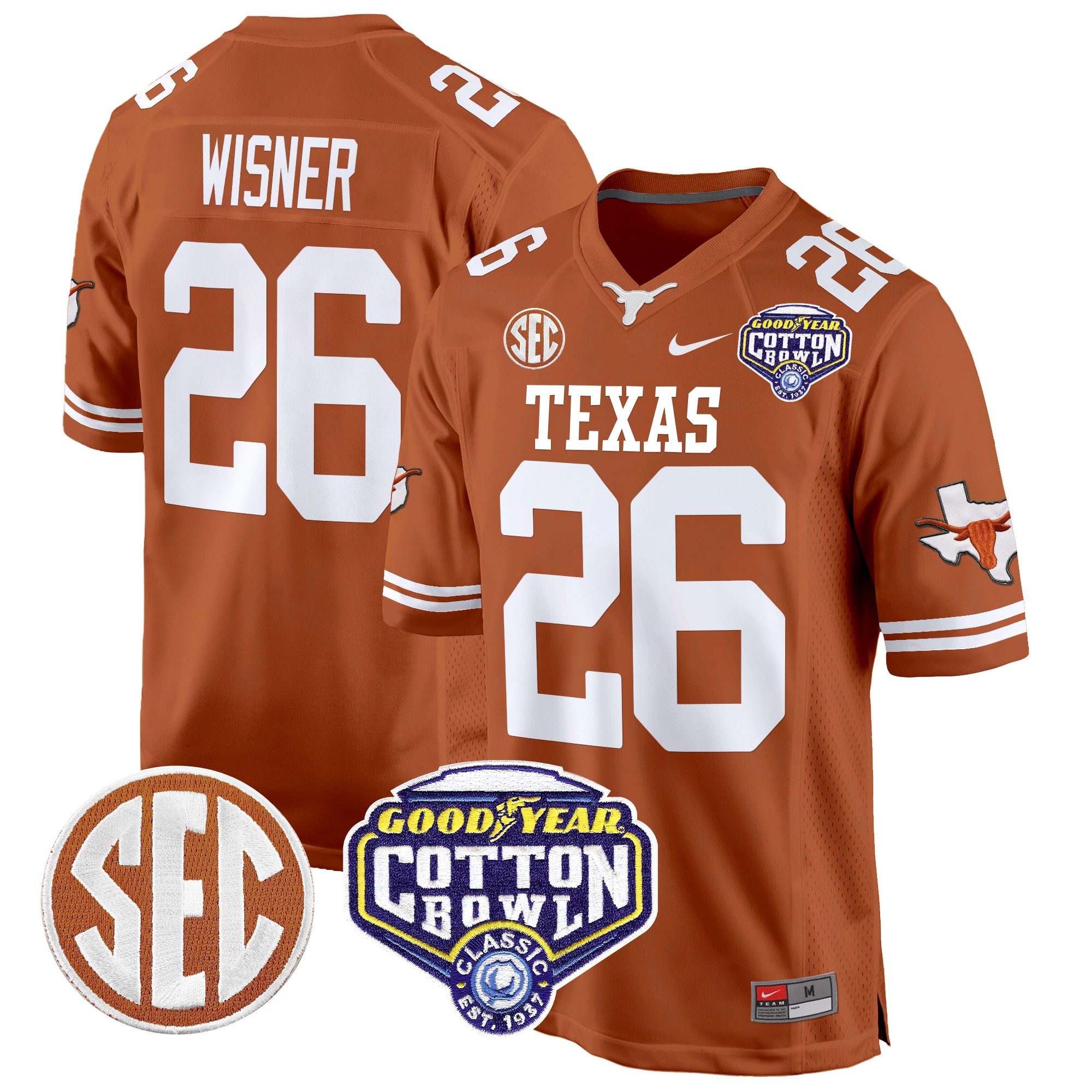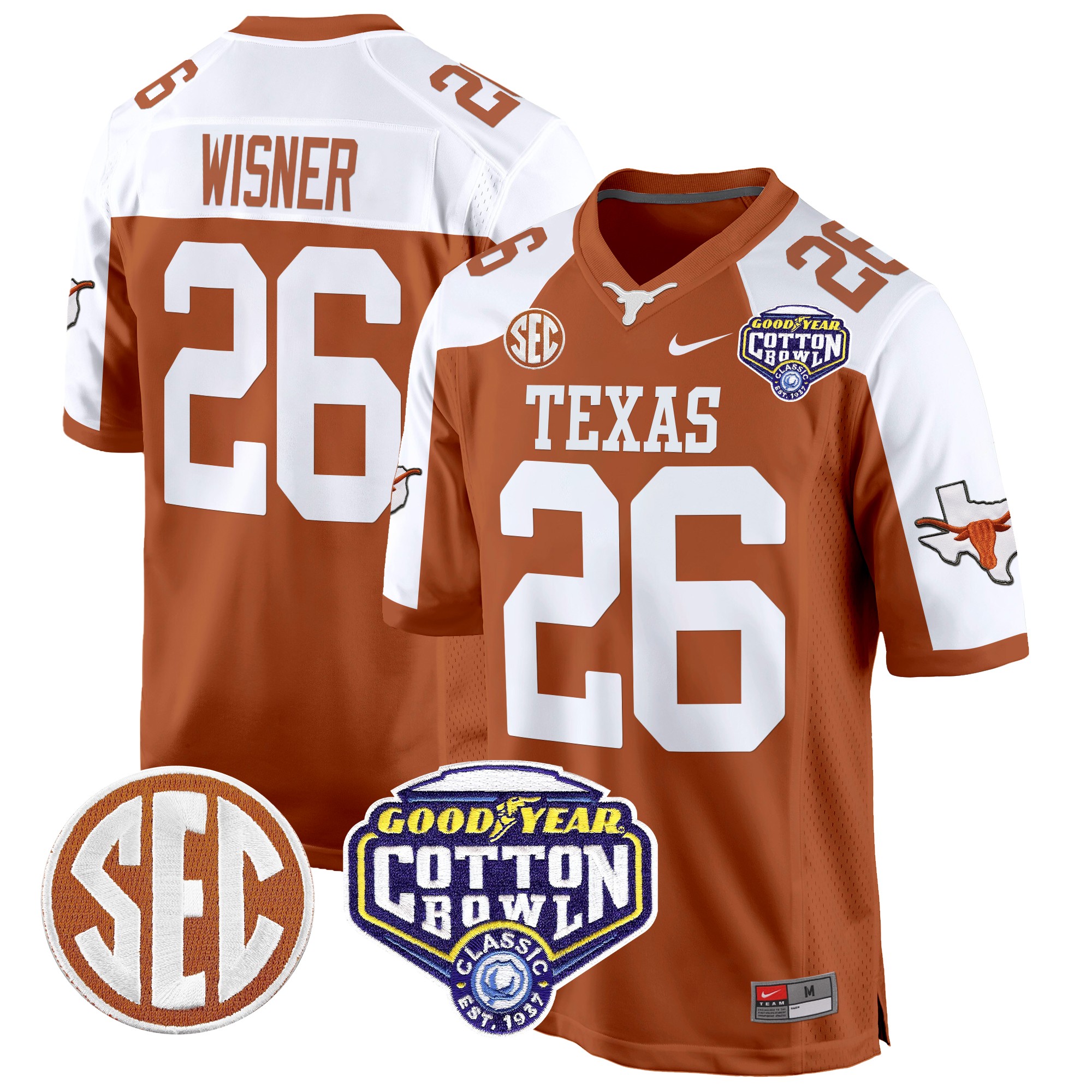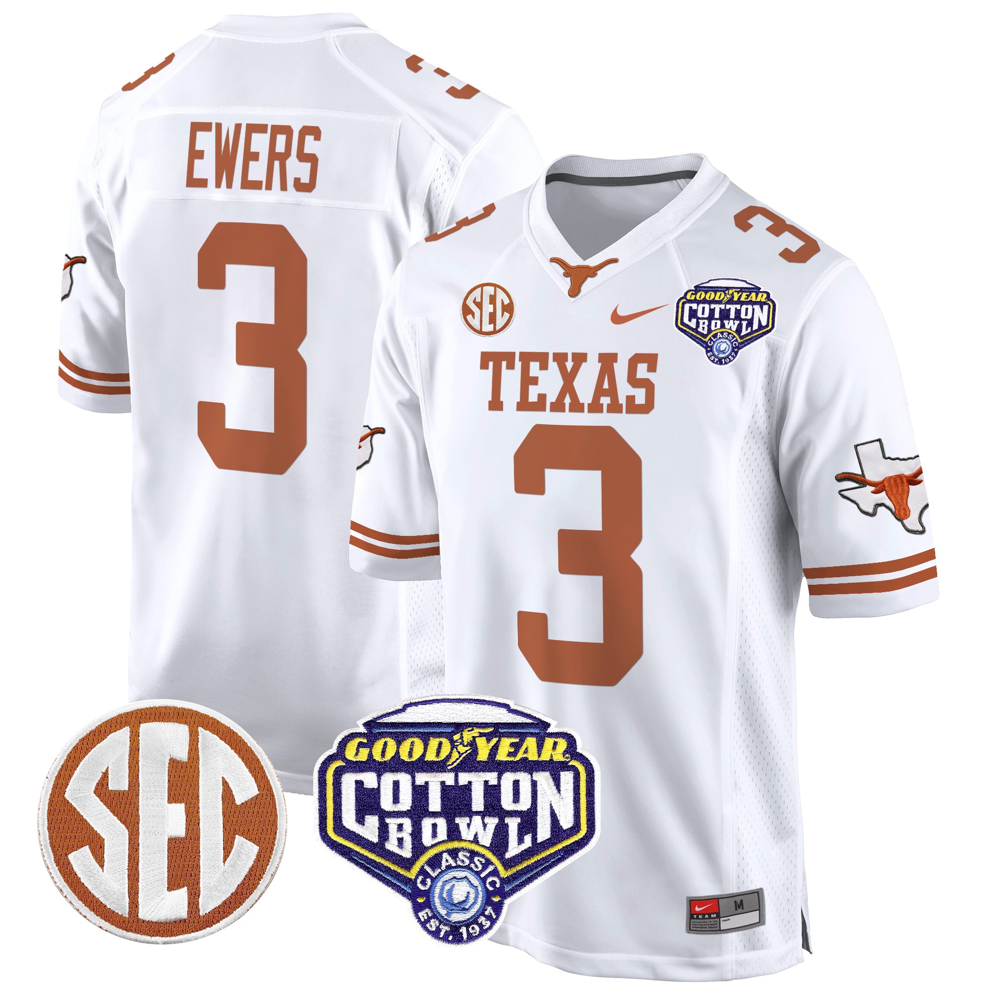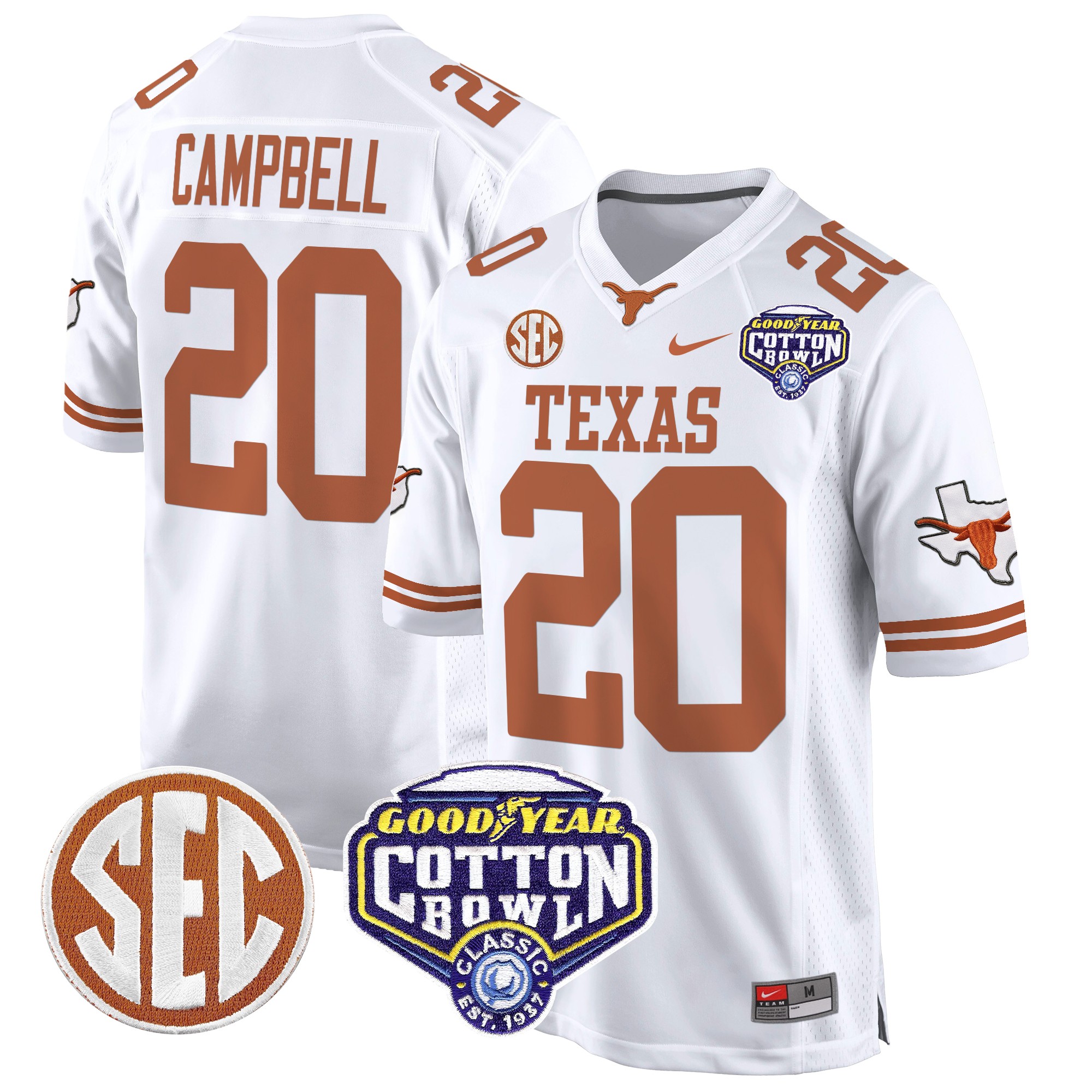 Men’s Texas Longhorns Cotton Bowl Patch Game Jersey All Stitched