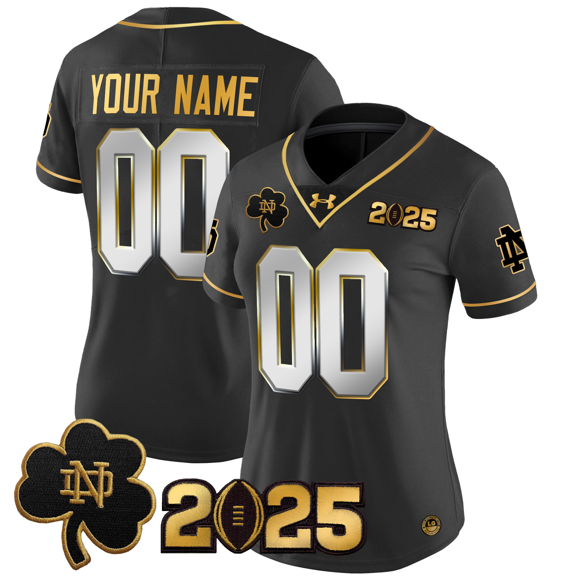 Notre Dame Fighting Irish 2025 CFP Final Patch Gold Vapor Limited Custom Jersey All Stitched