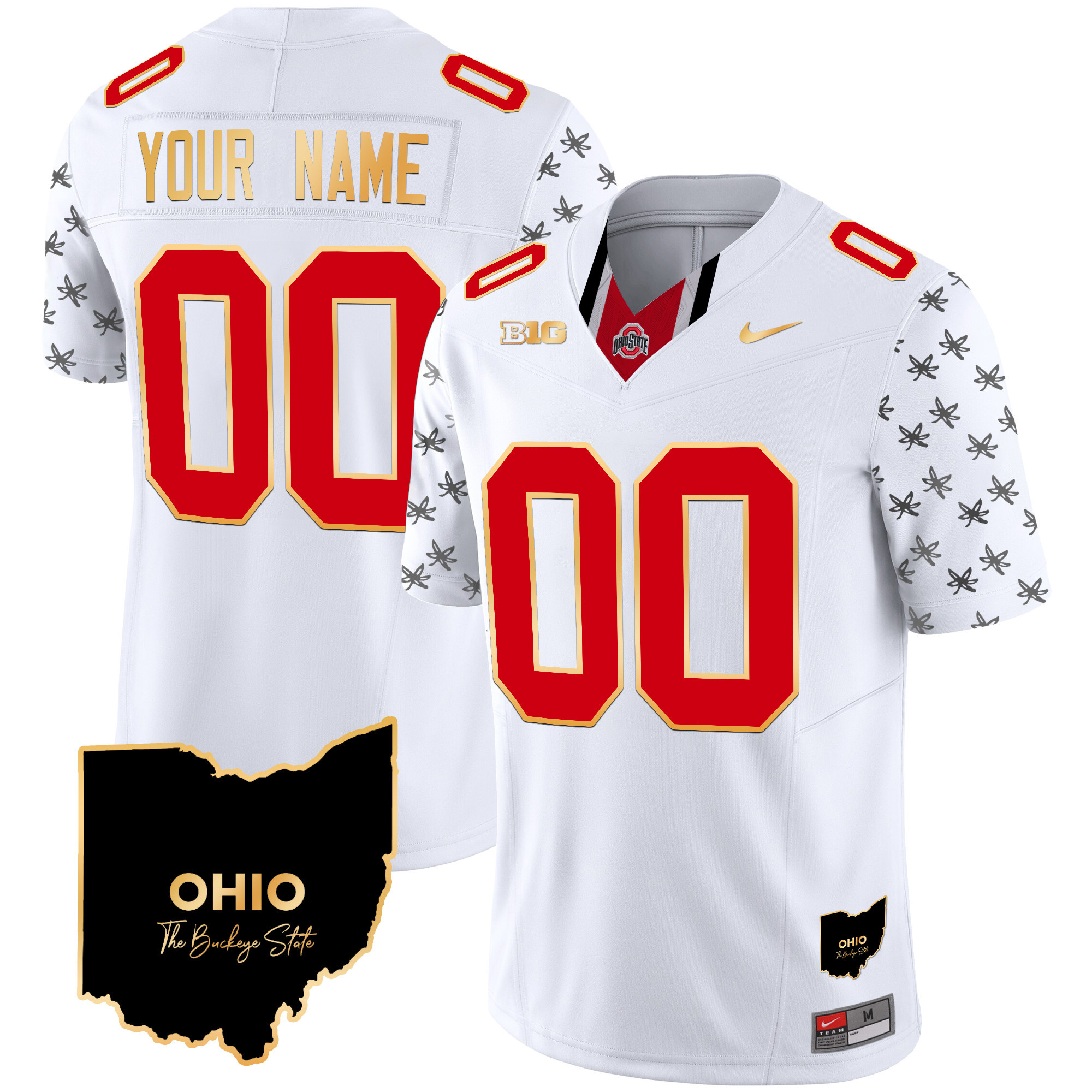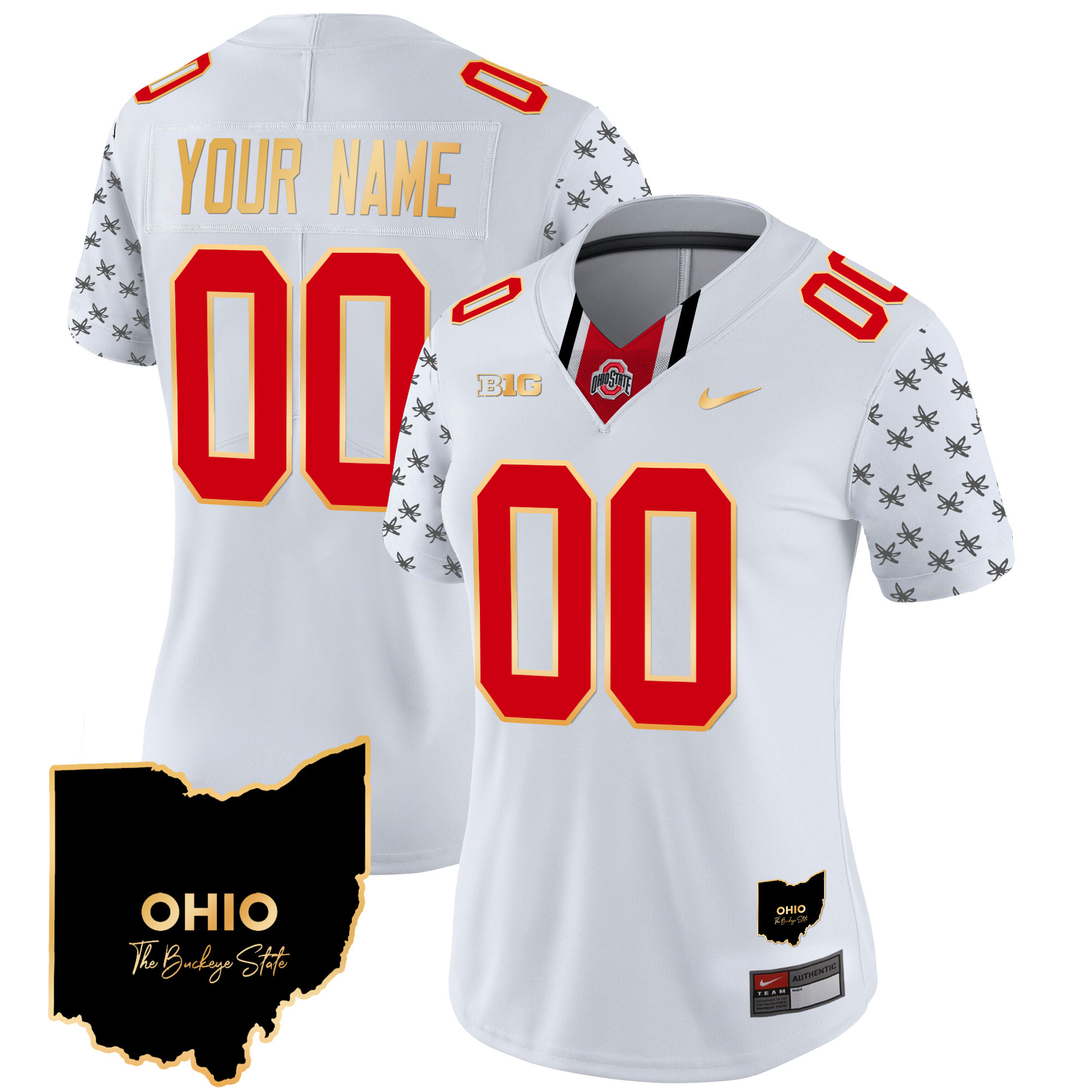 Ohio State Buckeyes 2024 Home Patch Gold Trim Vapor Limited Custom Jersey V2 All Stitched