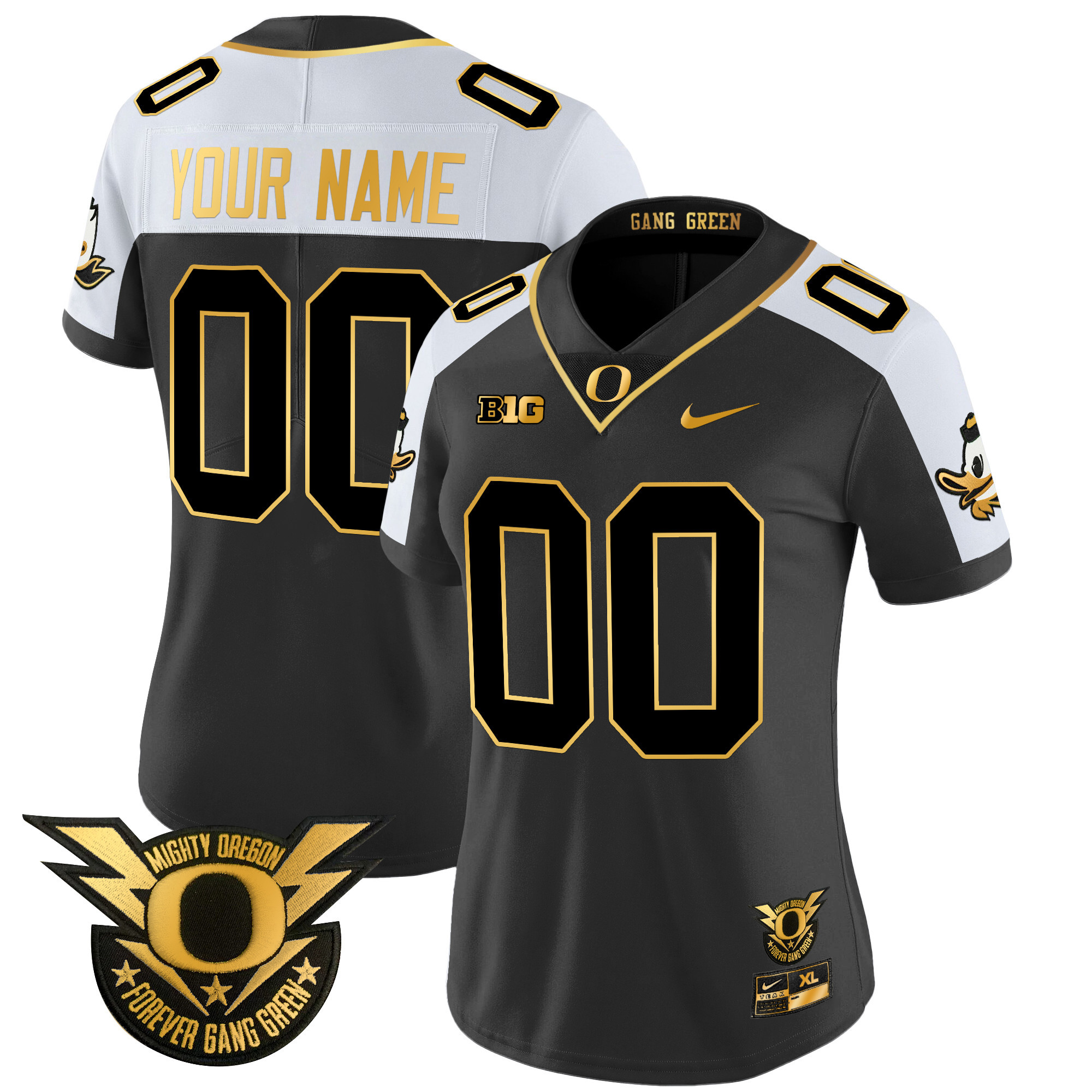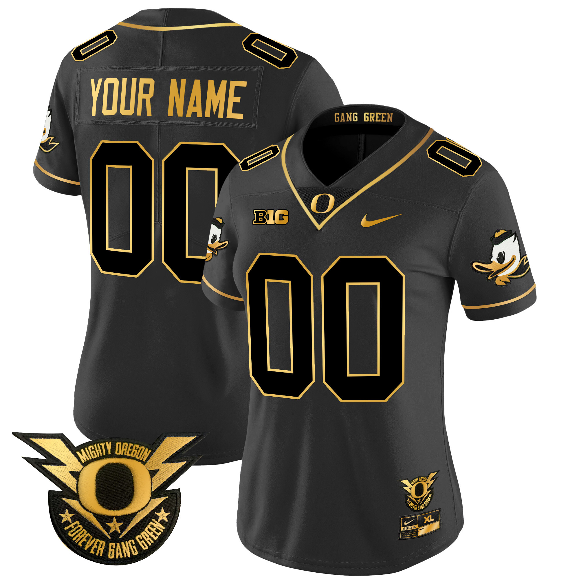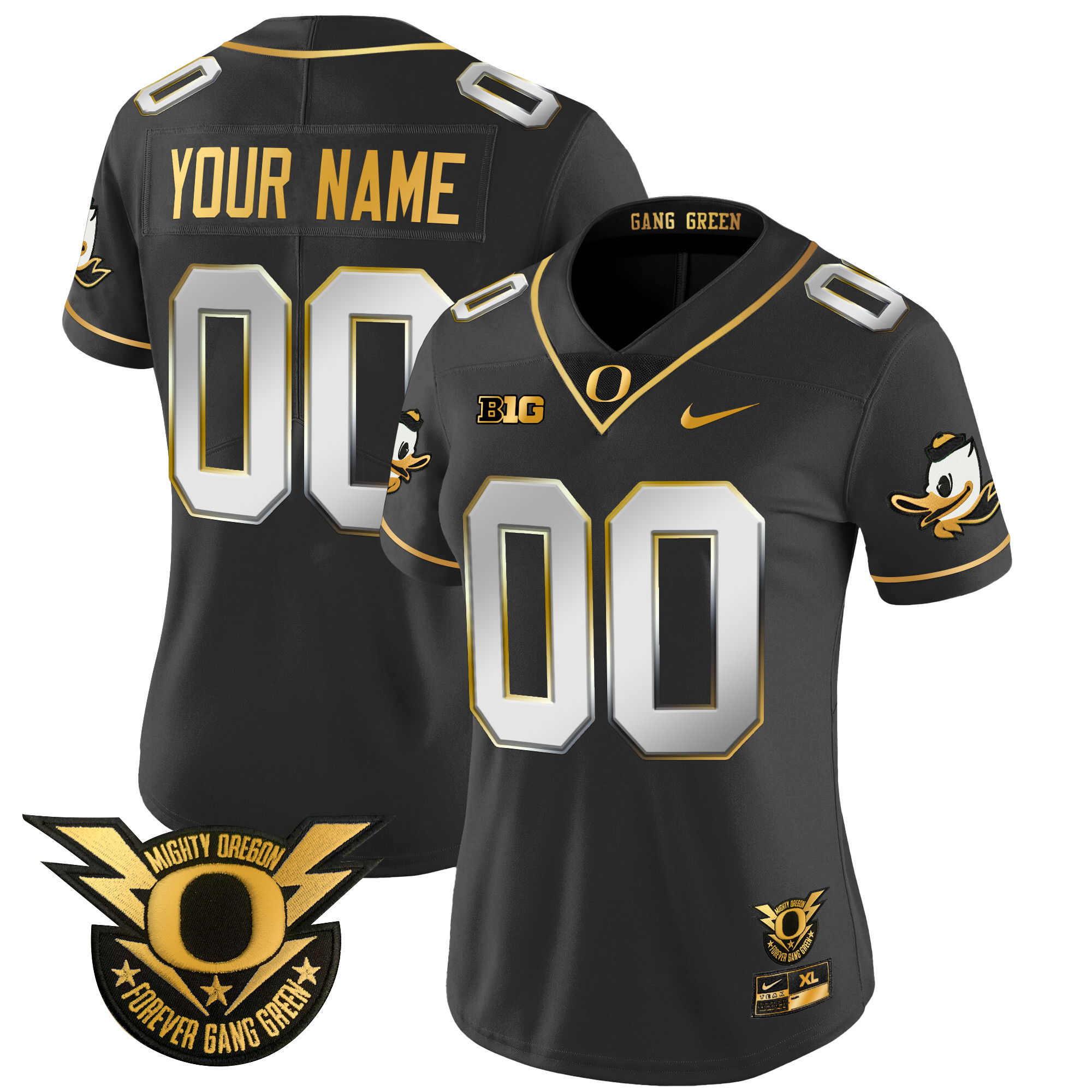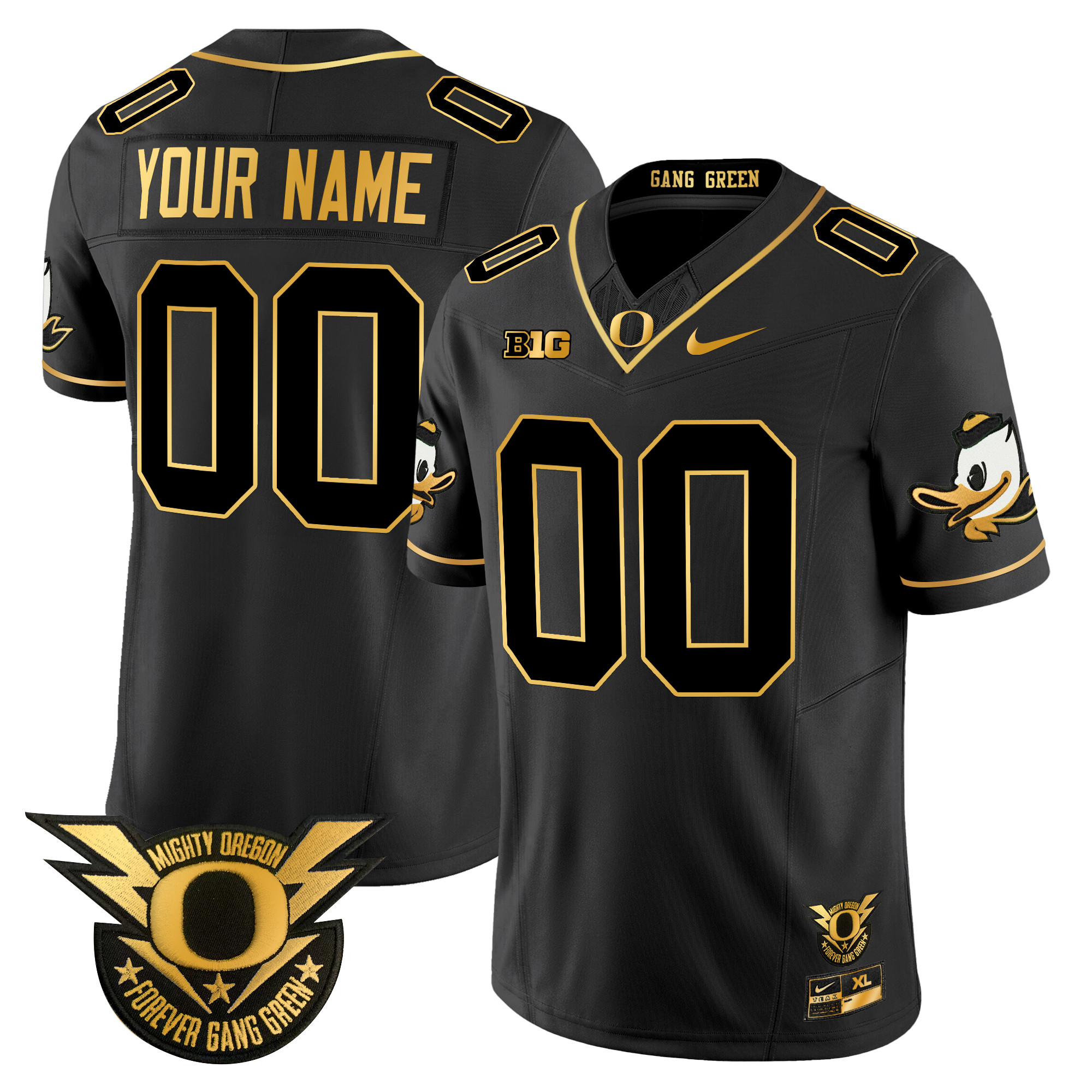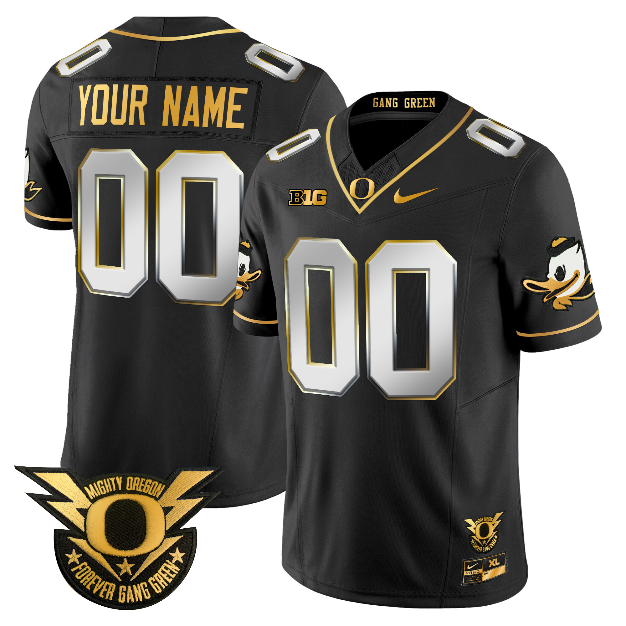 Oregon Ducks 2024 Forever Gang Green & BIG Patch Gold Vapor Limited Custom Jersey All Stitched