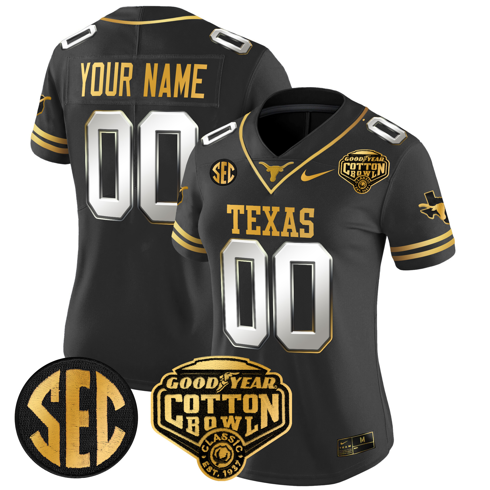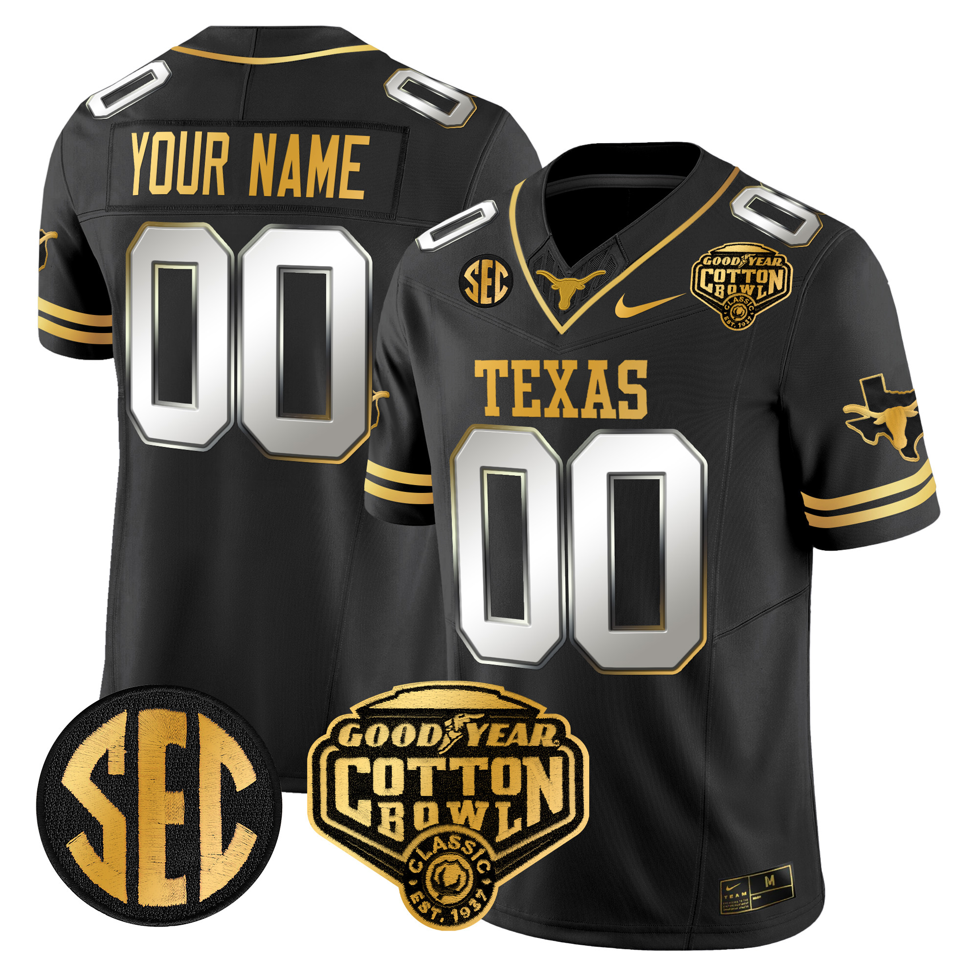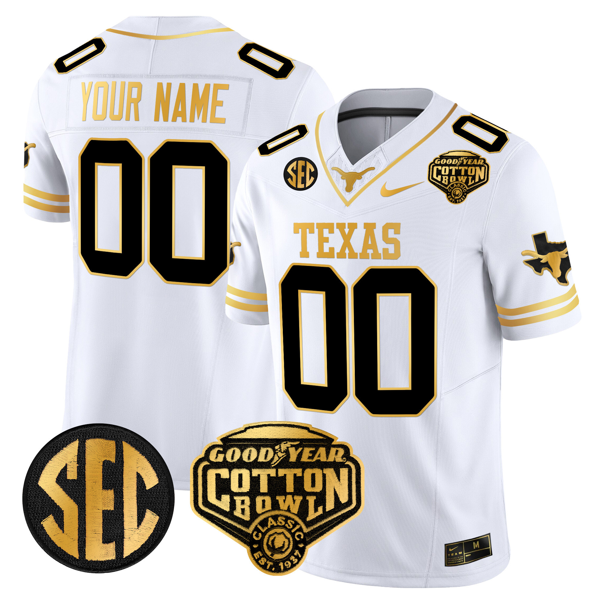 Texas Longhorns Cotton Bowl Patch Gold Vapor Limited Custom Jersey All Stitched