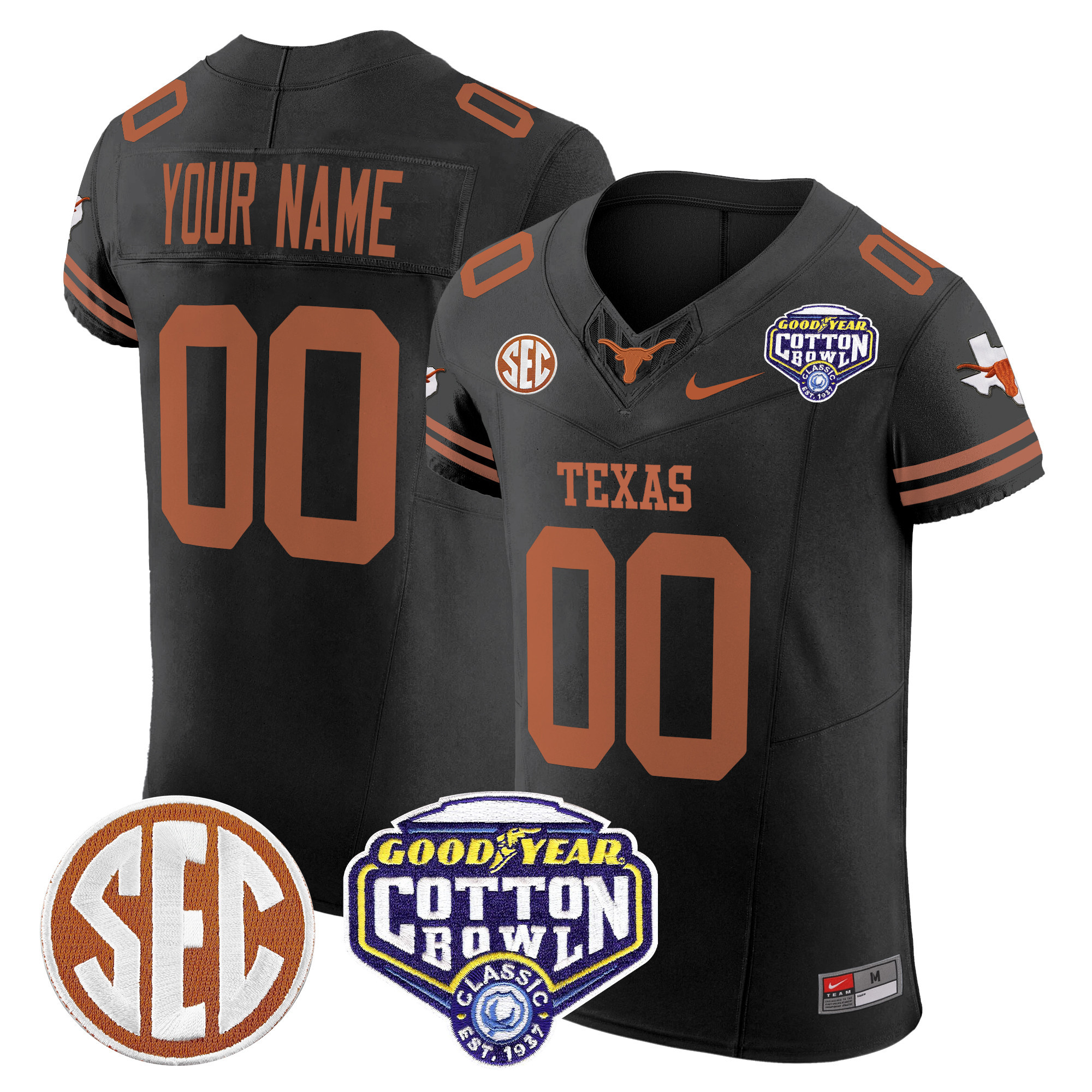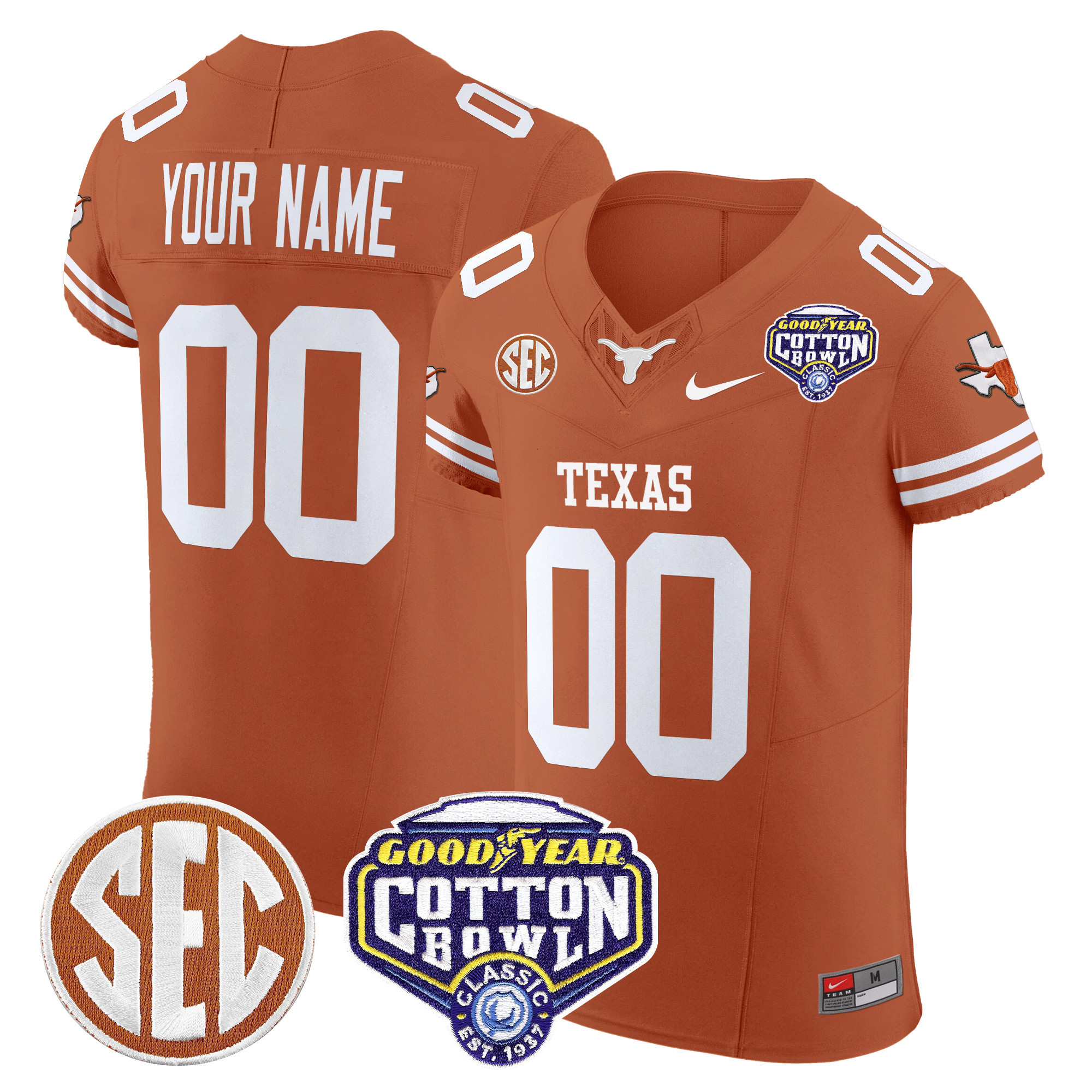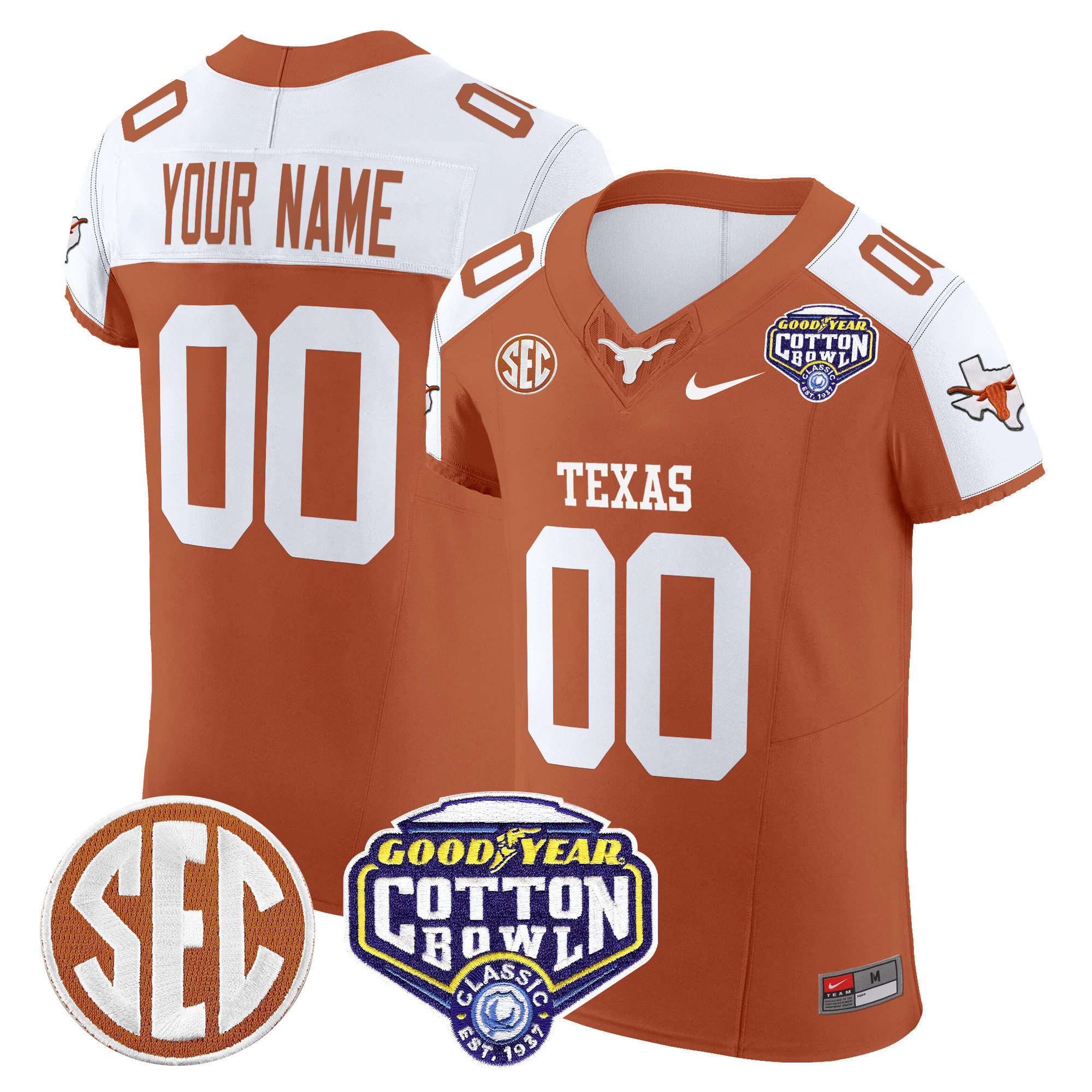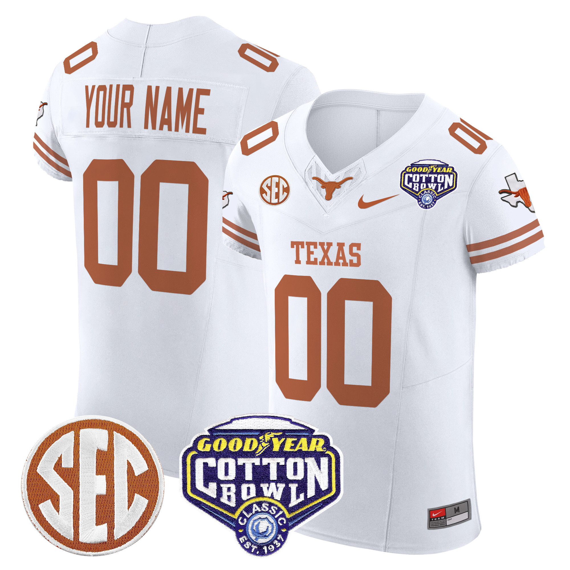 Texas Longhorns Cotton Bowl Patch Vapor Elite Custom Jersey All Stitched