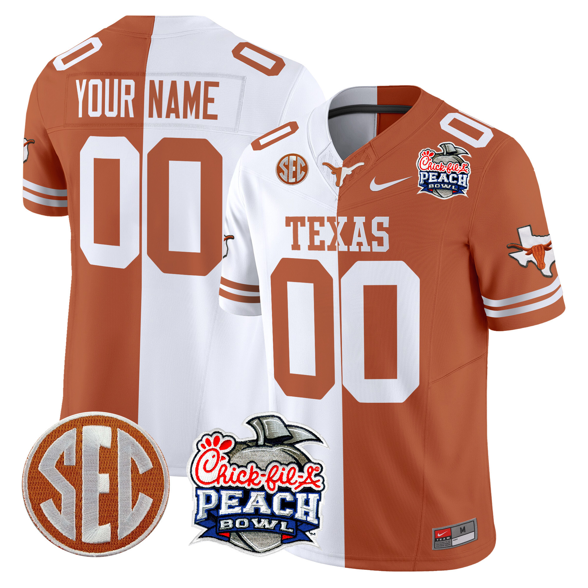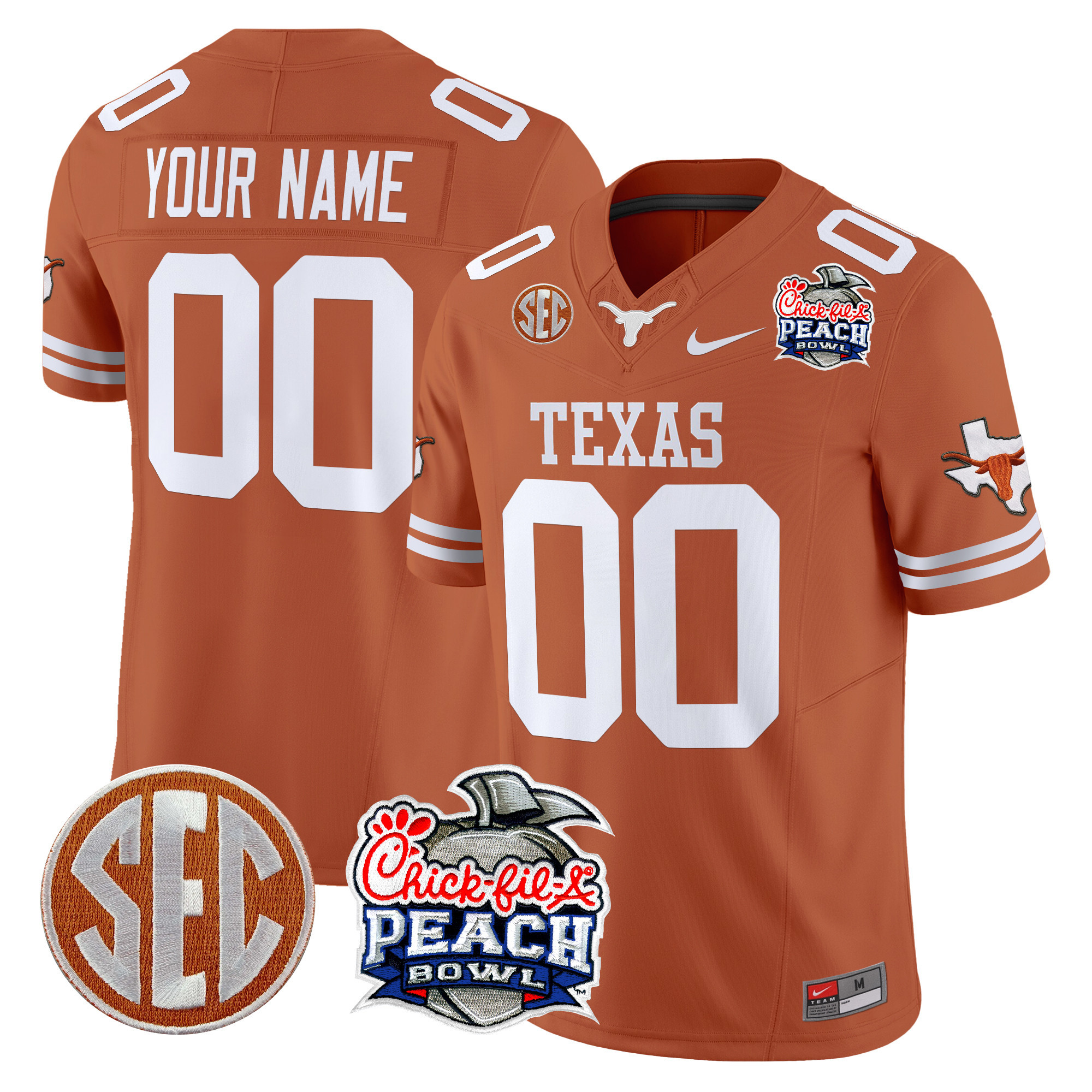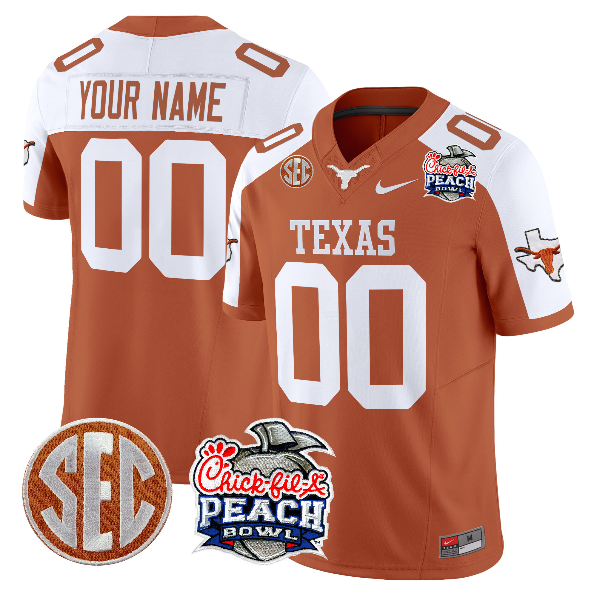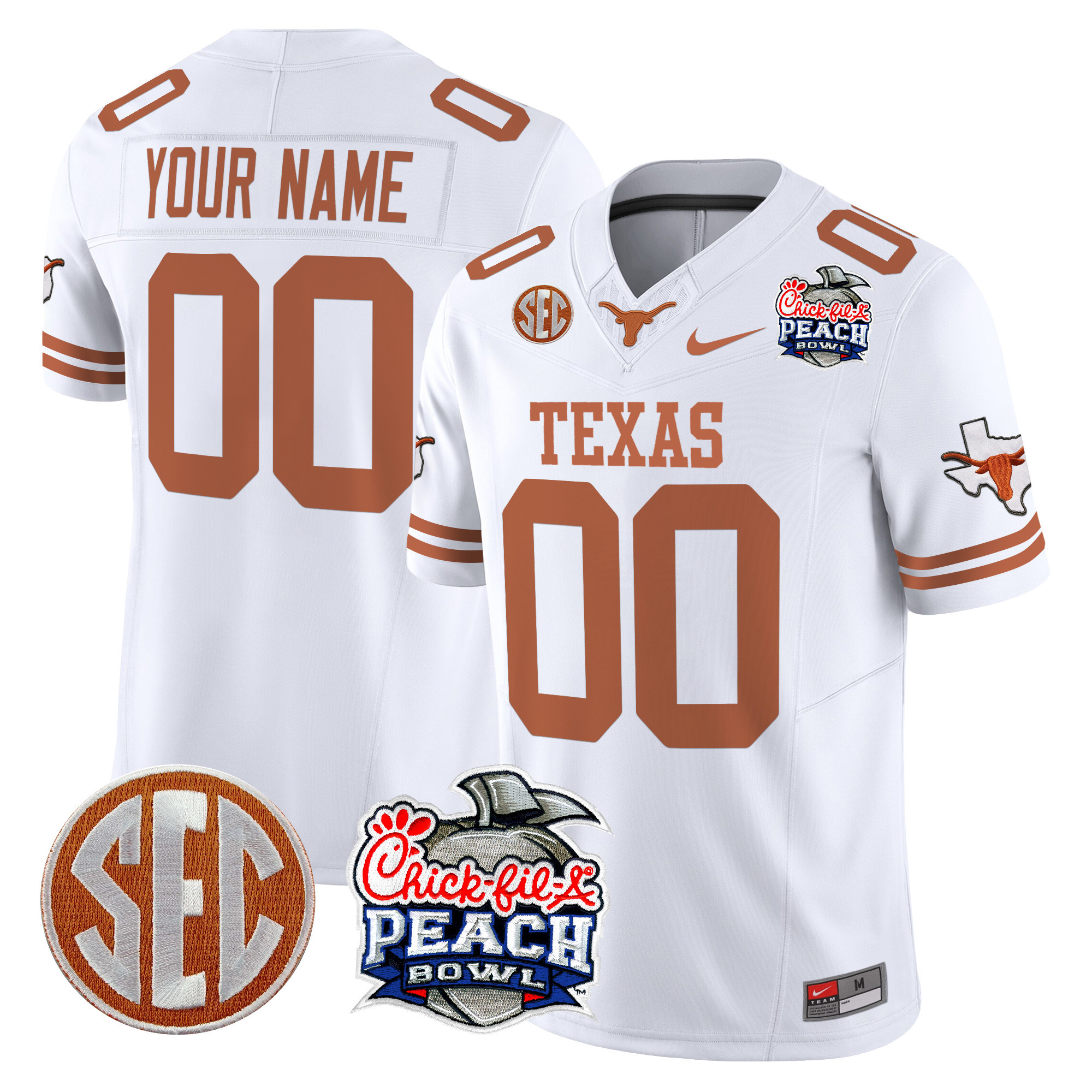 Texas Longhorns Peach Bowl Patch Vapor Limited Custom Jersey All Stitched