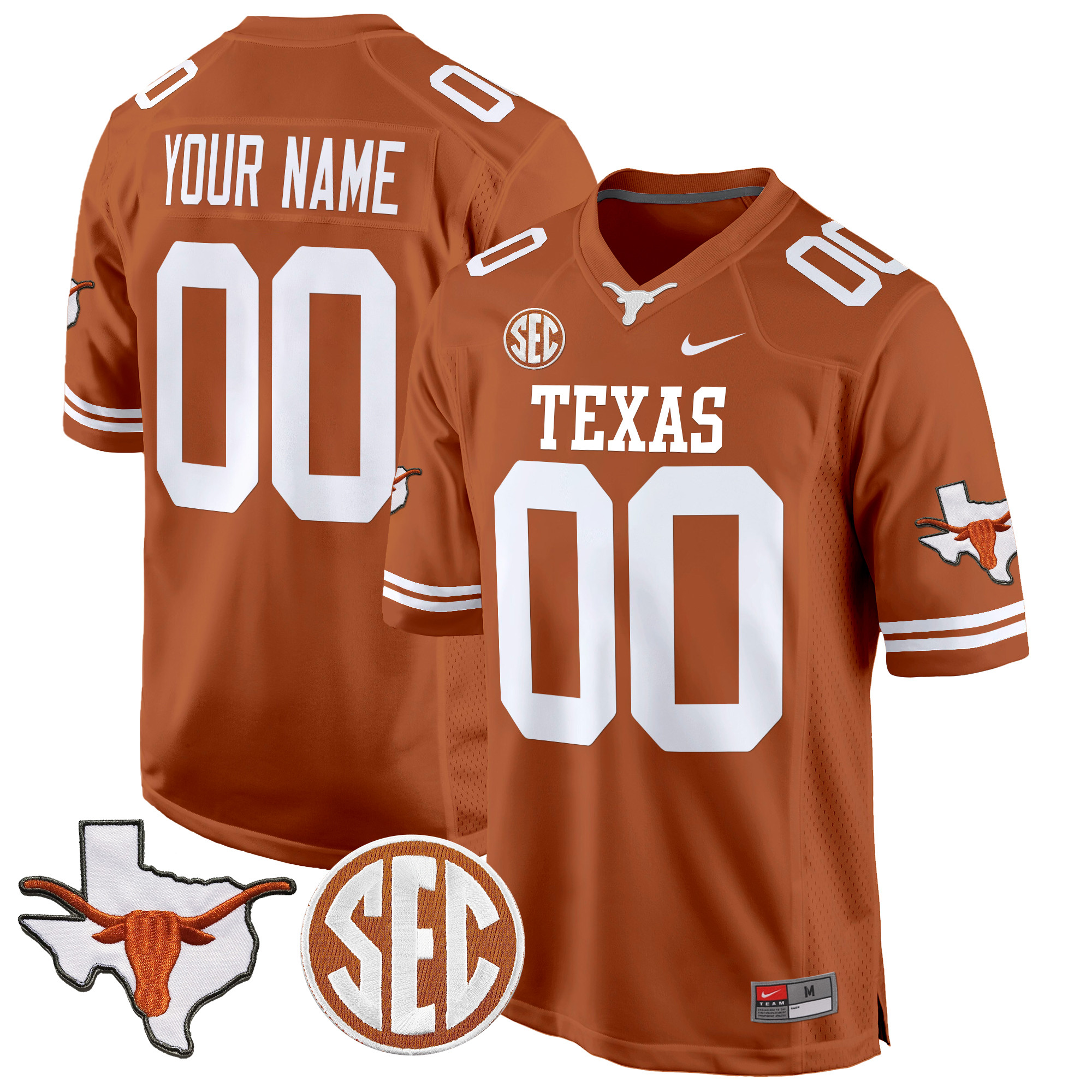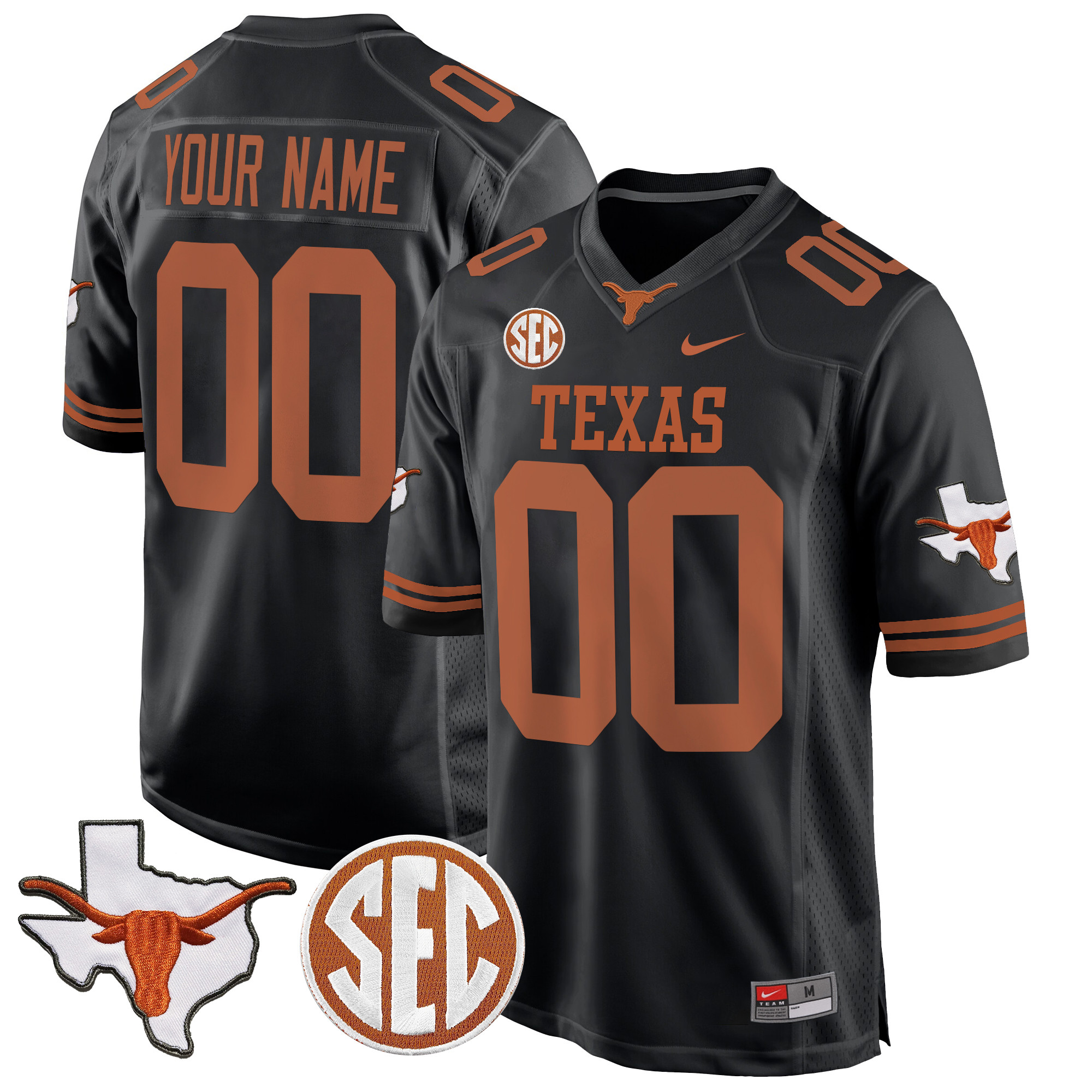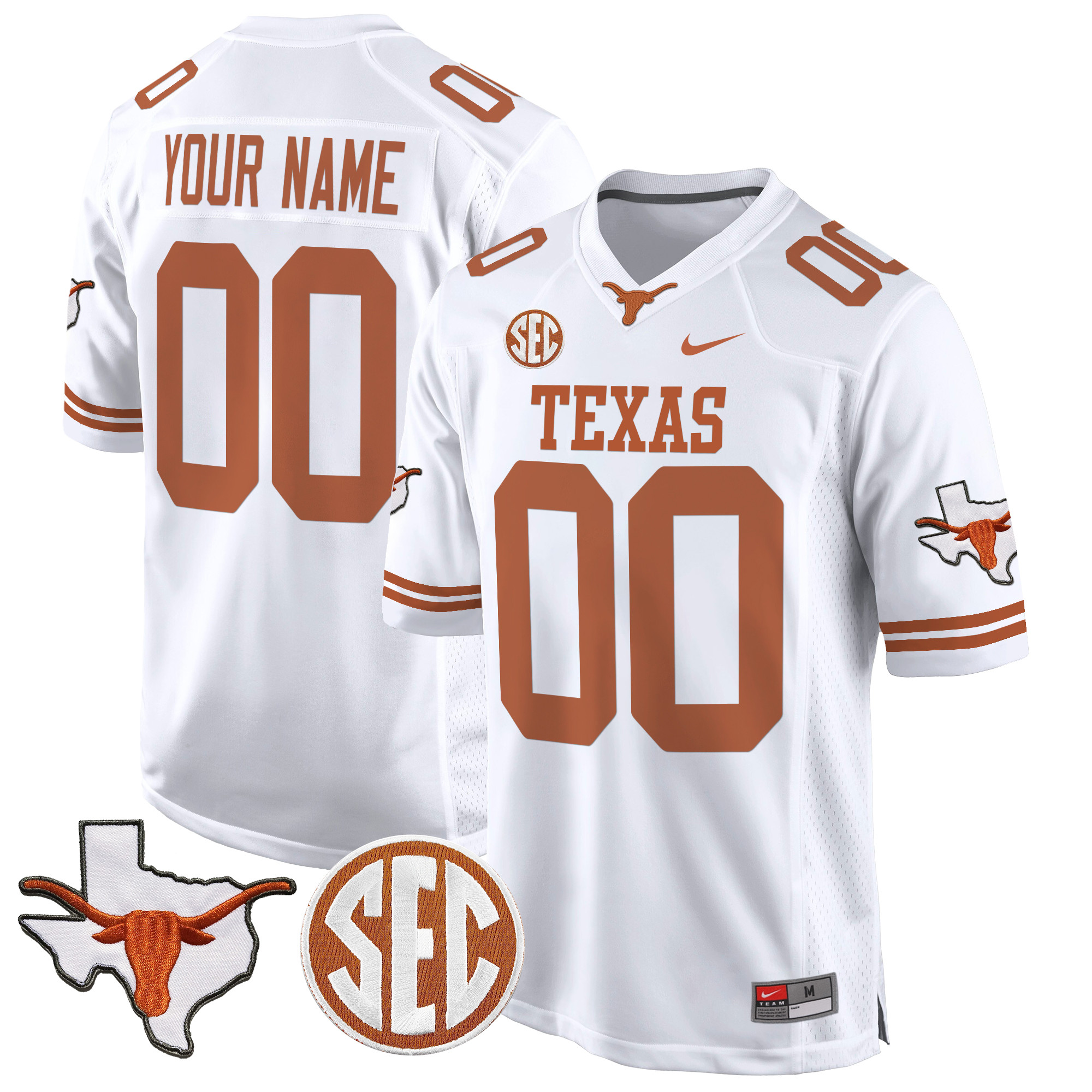 Texas Longhorns State Map & Sec Patch Game Custom Jersey All Stitched