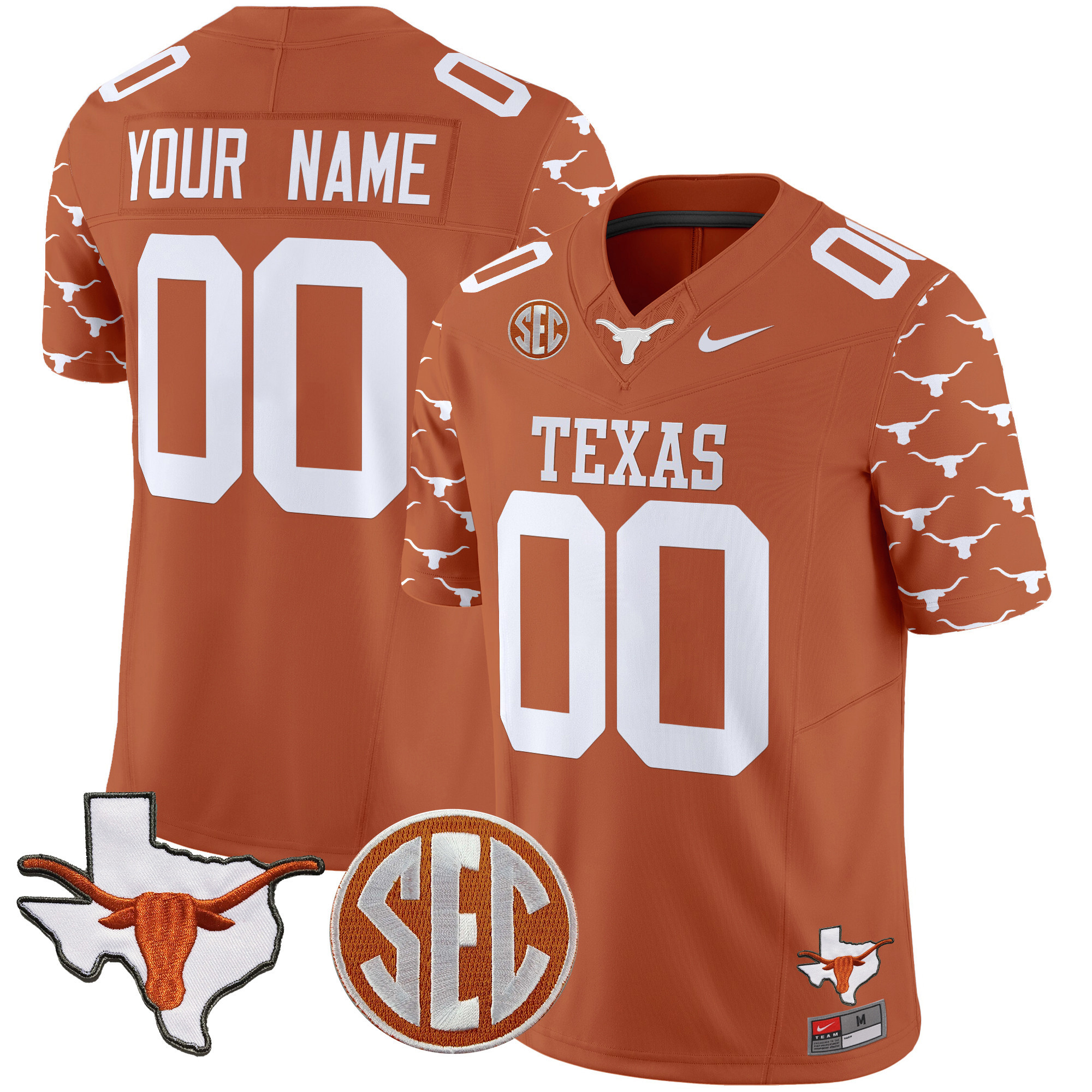 Texas Longhorns State Map & Sec Patch Vapor Limited Custom Jersey V5 All Stitched