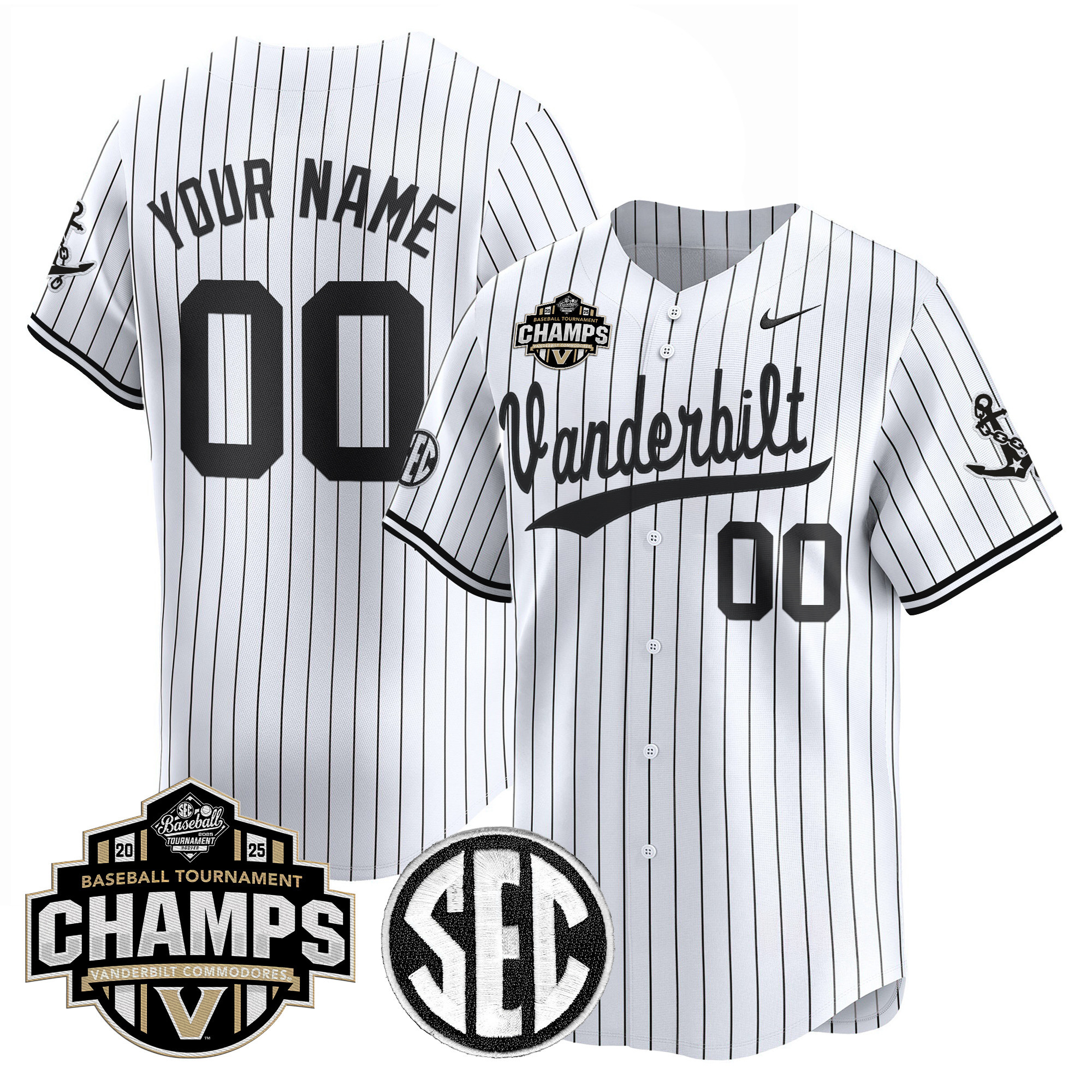 Vanderbilt Commodores 2025 SEC Conference Tournament Champions Vapor Premier Limited Custom Jersey All Stitched