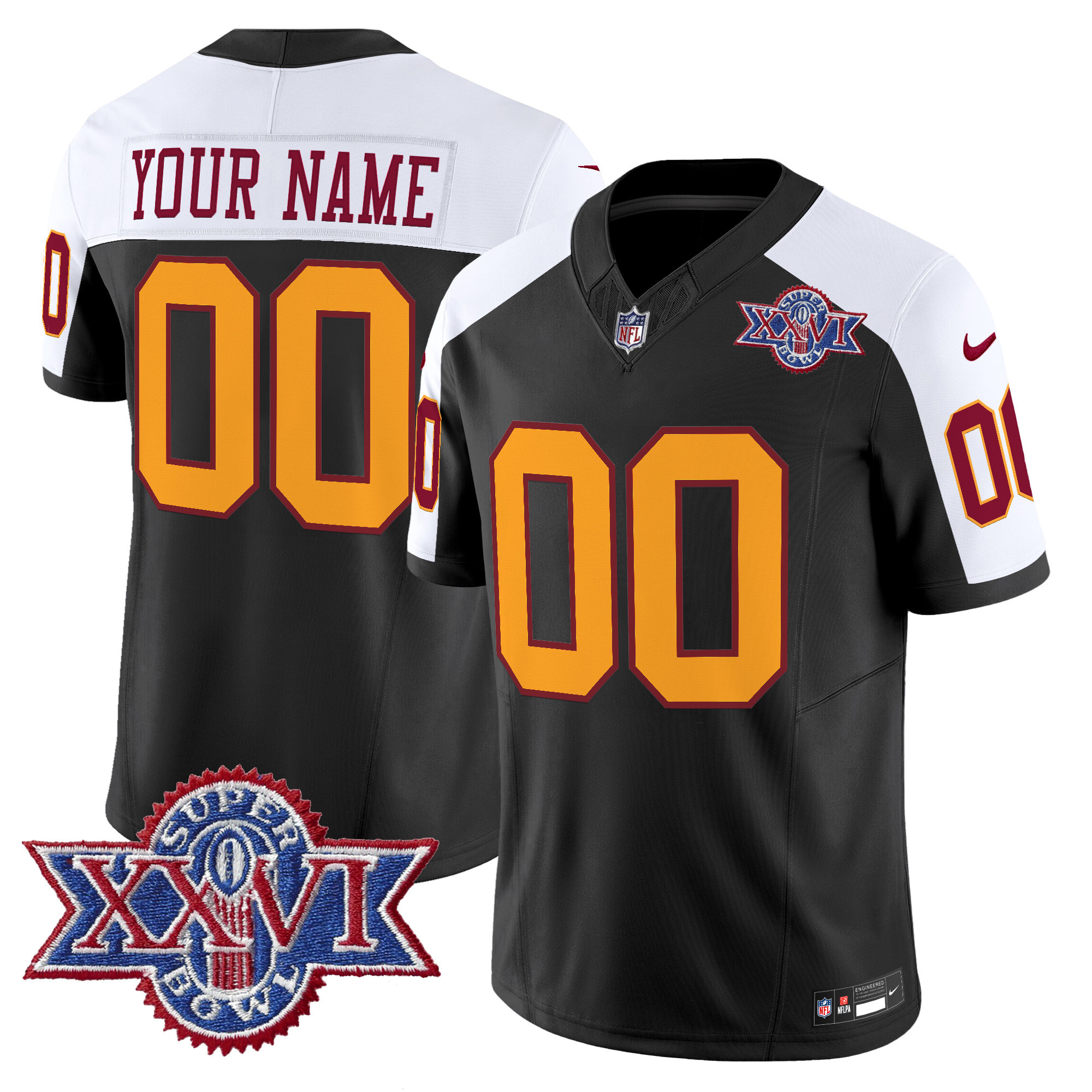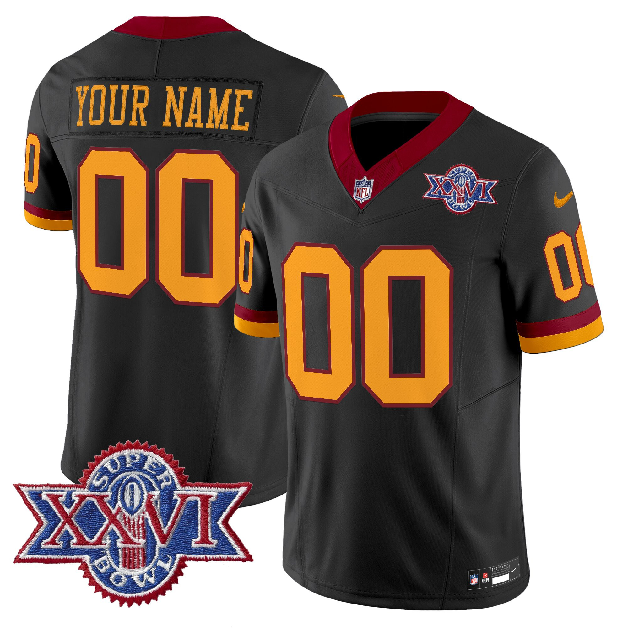 Washington Redskins Throwback 1992 Super Bowl XXVI Patch Vapor Limited Custom Jersey All Stitched