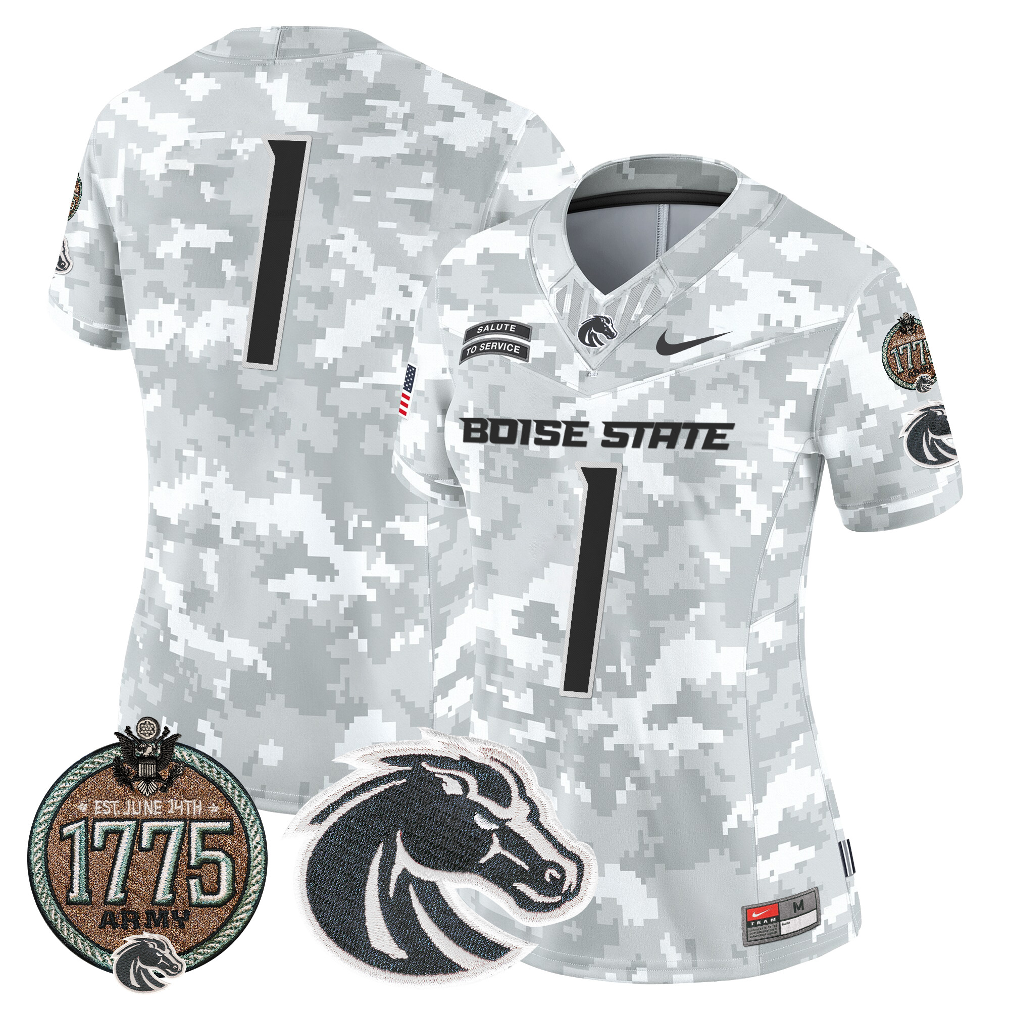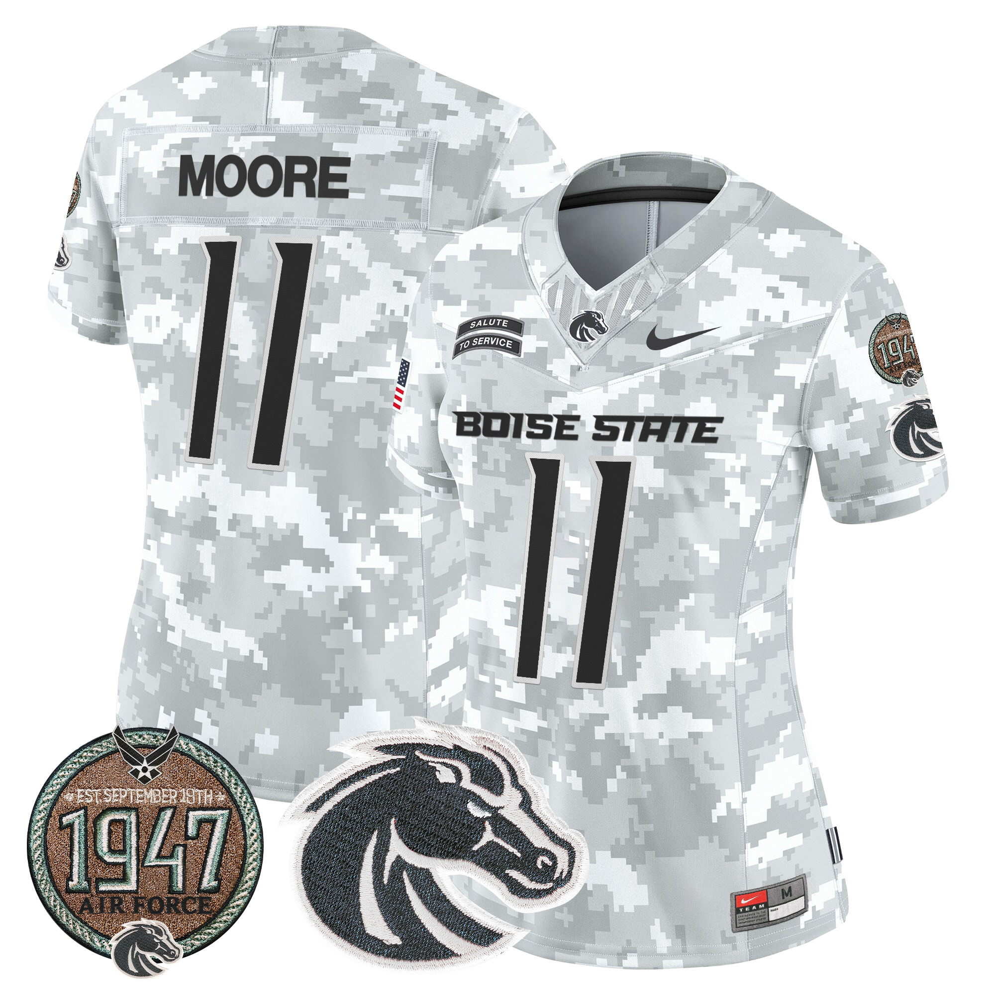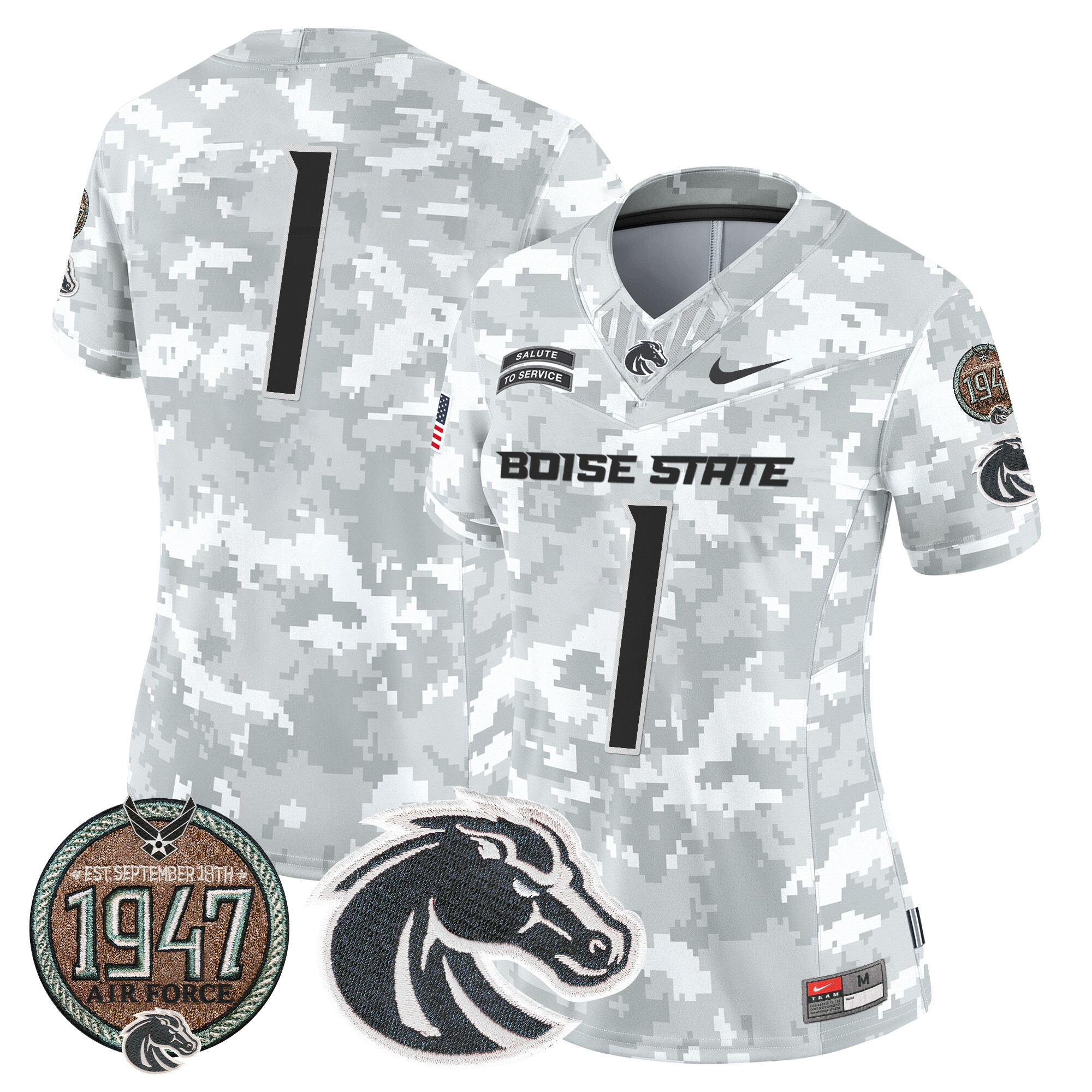 Women’s Boise State Broncos 2024 Salute to Service Establishment Year Patch Vapor Limited Jersey All Stitched