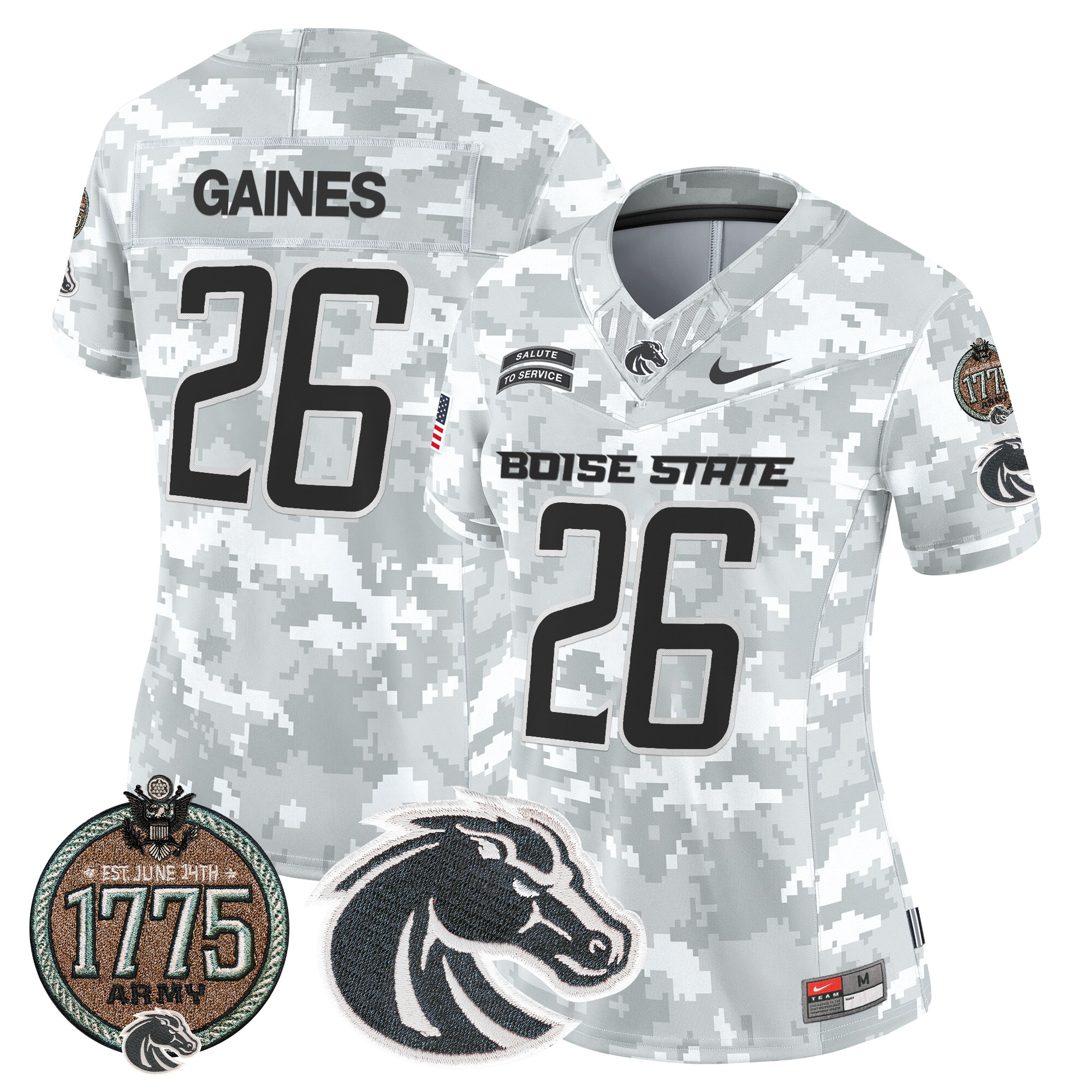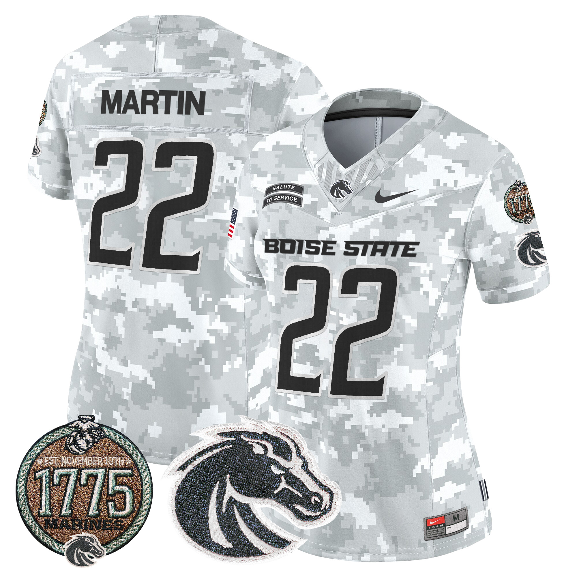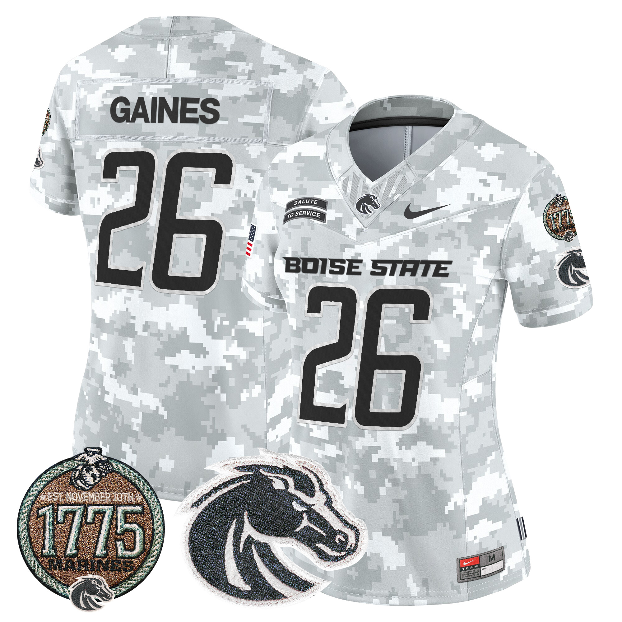 Women’s Boise State Broncos 2024 Salute to Service Establishment Year Patch Vapor Limited Jersey All Stitched