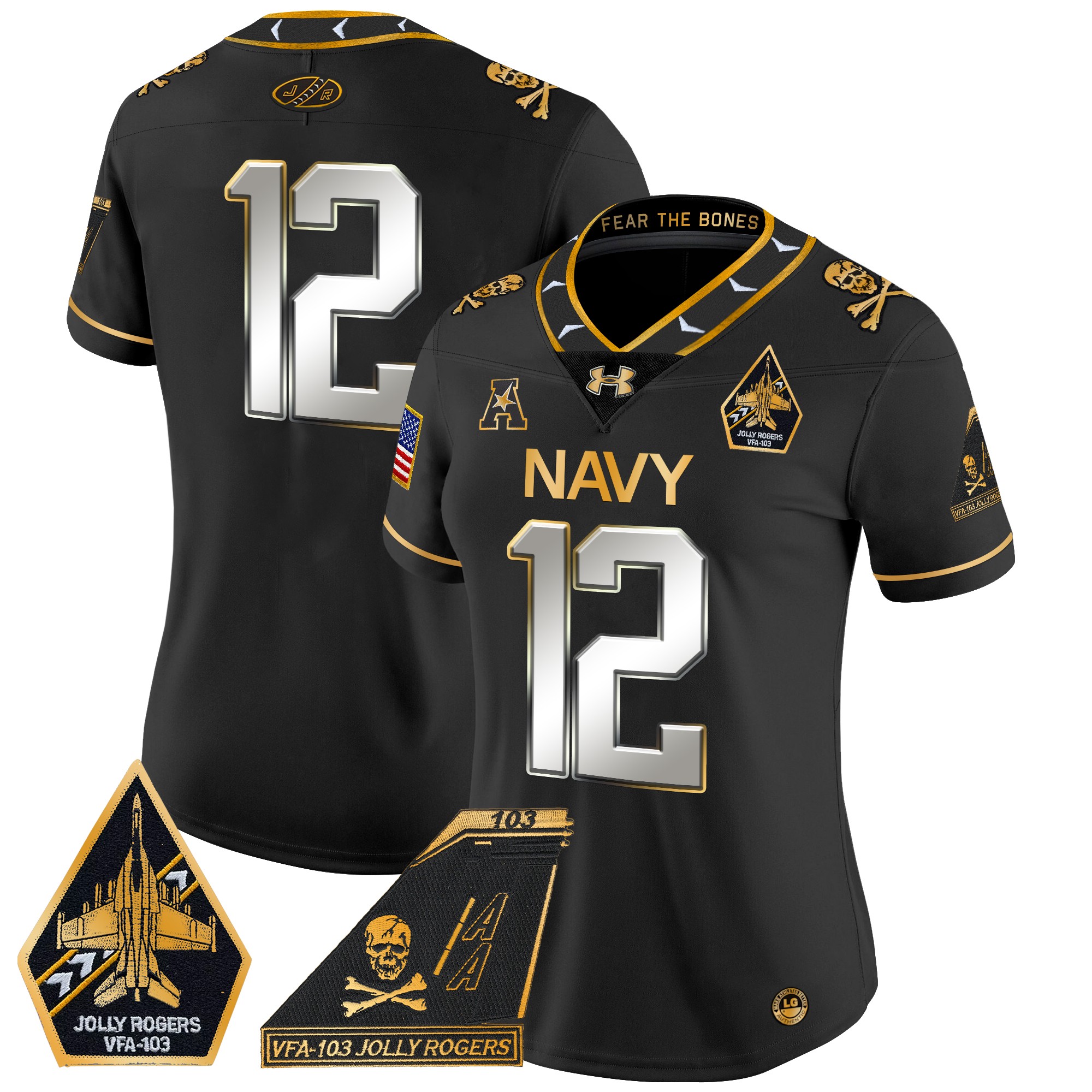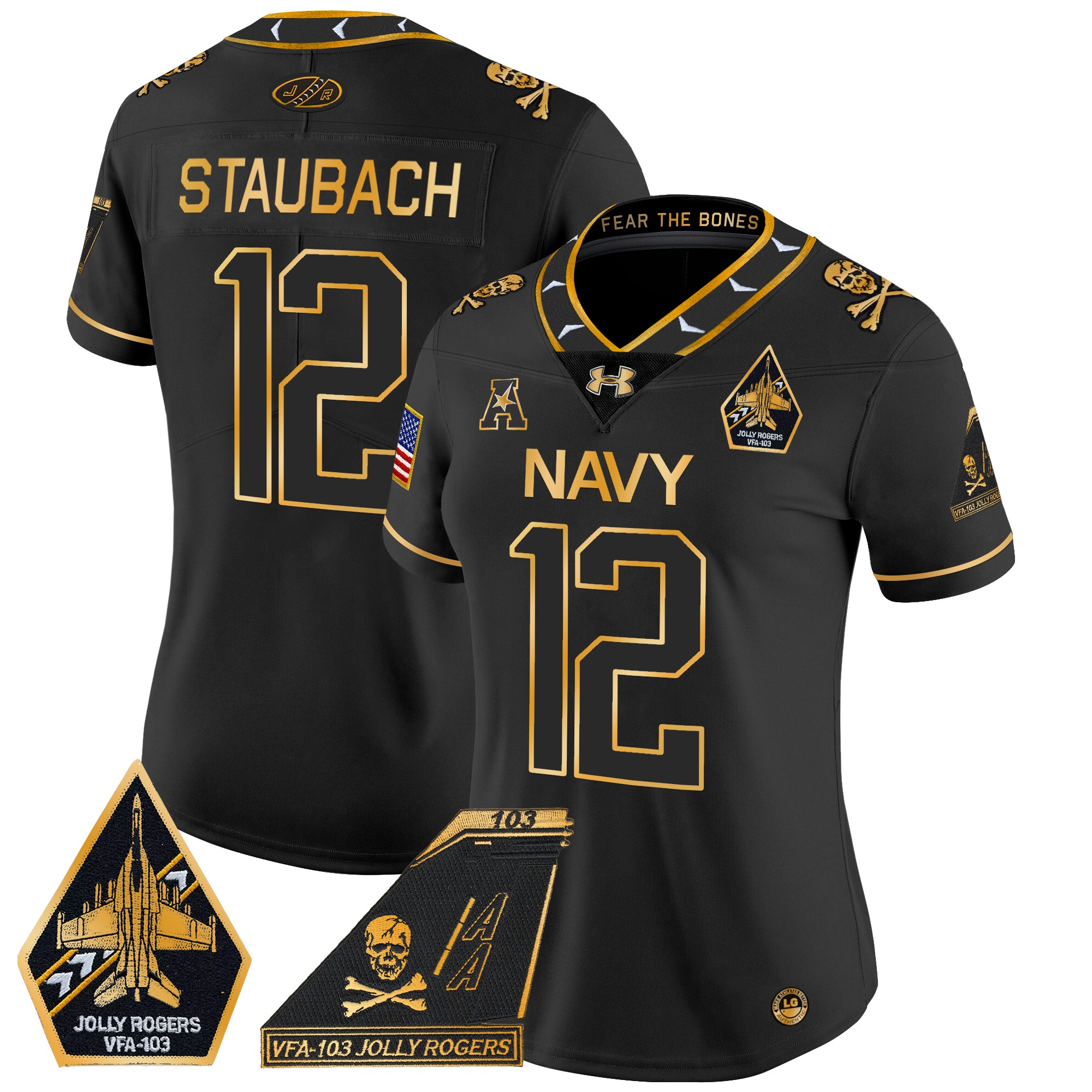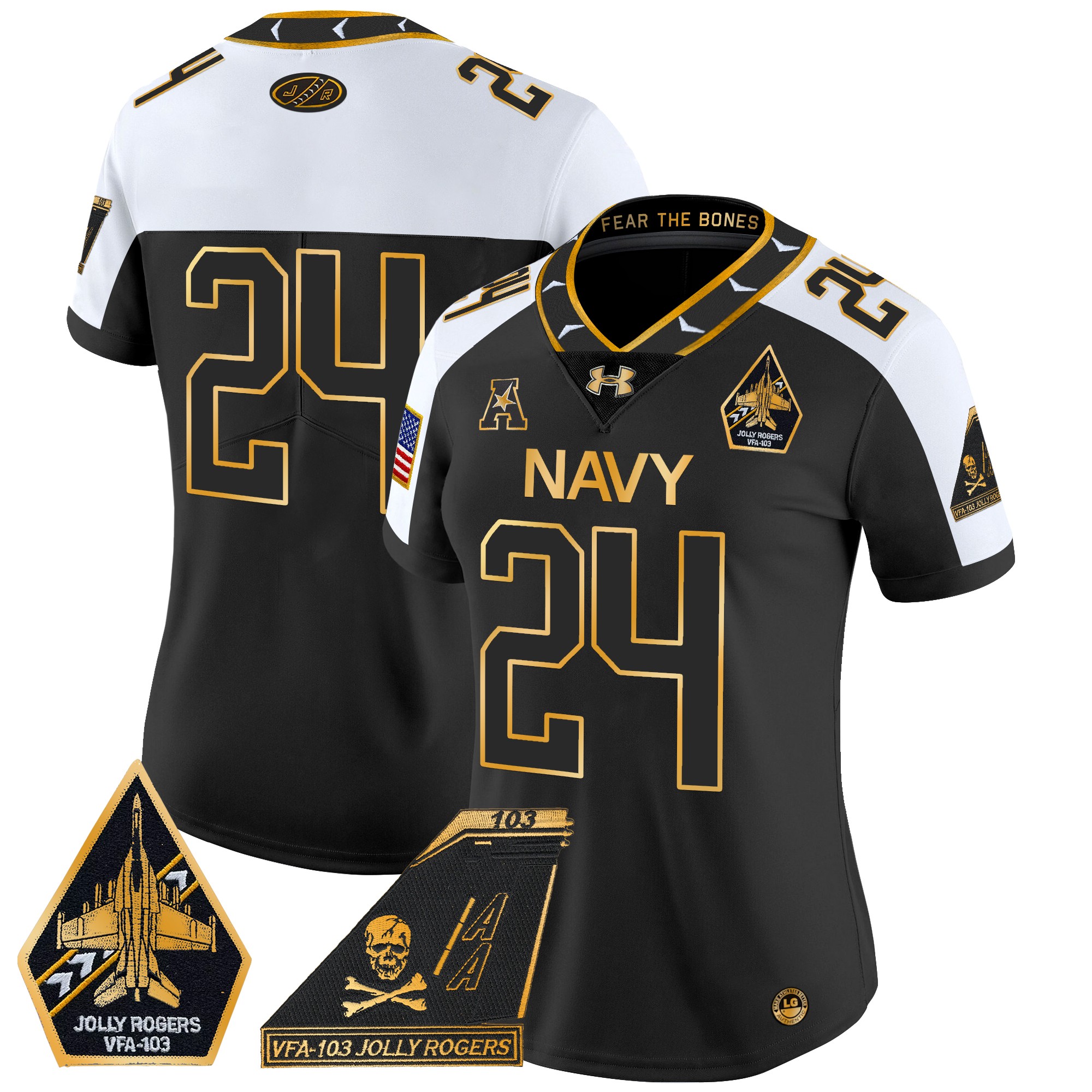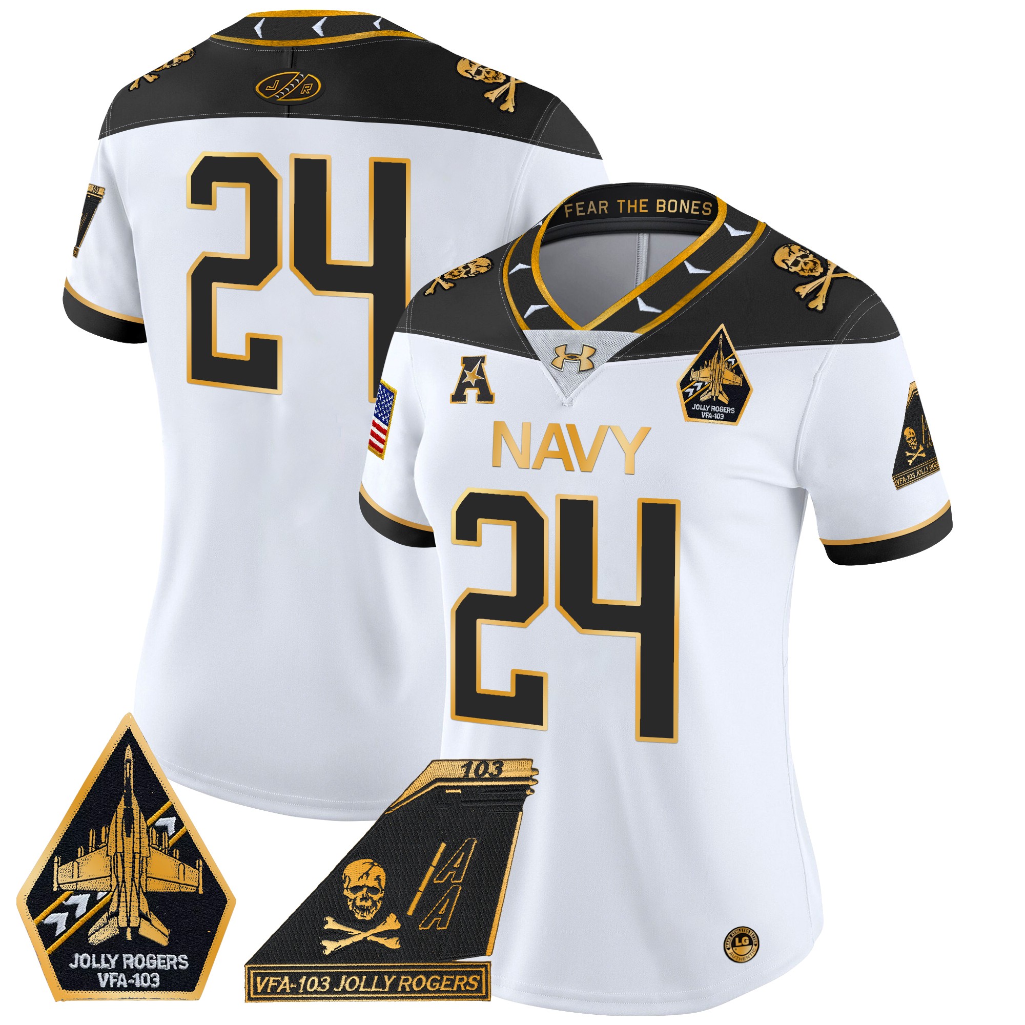 Women’s Navy Midshipmen 2024 Jolly Rogers Patch Gold Vapor Limited Jersey All Stitched
