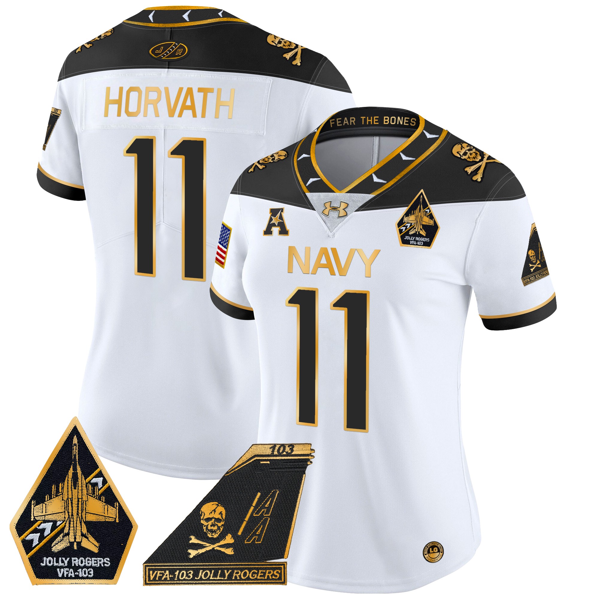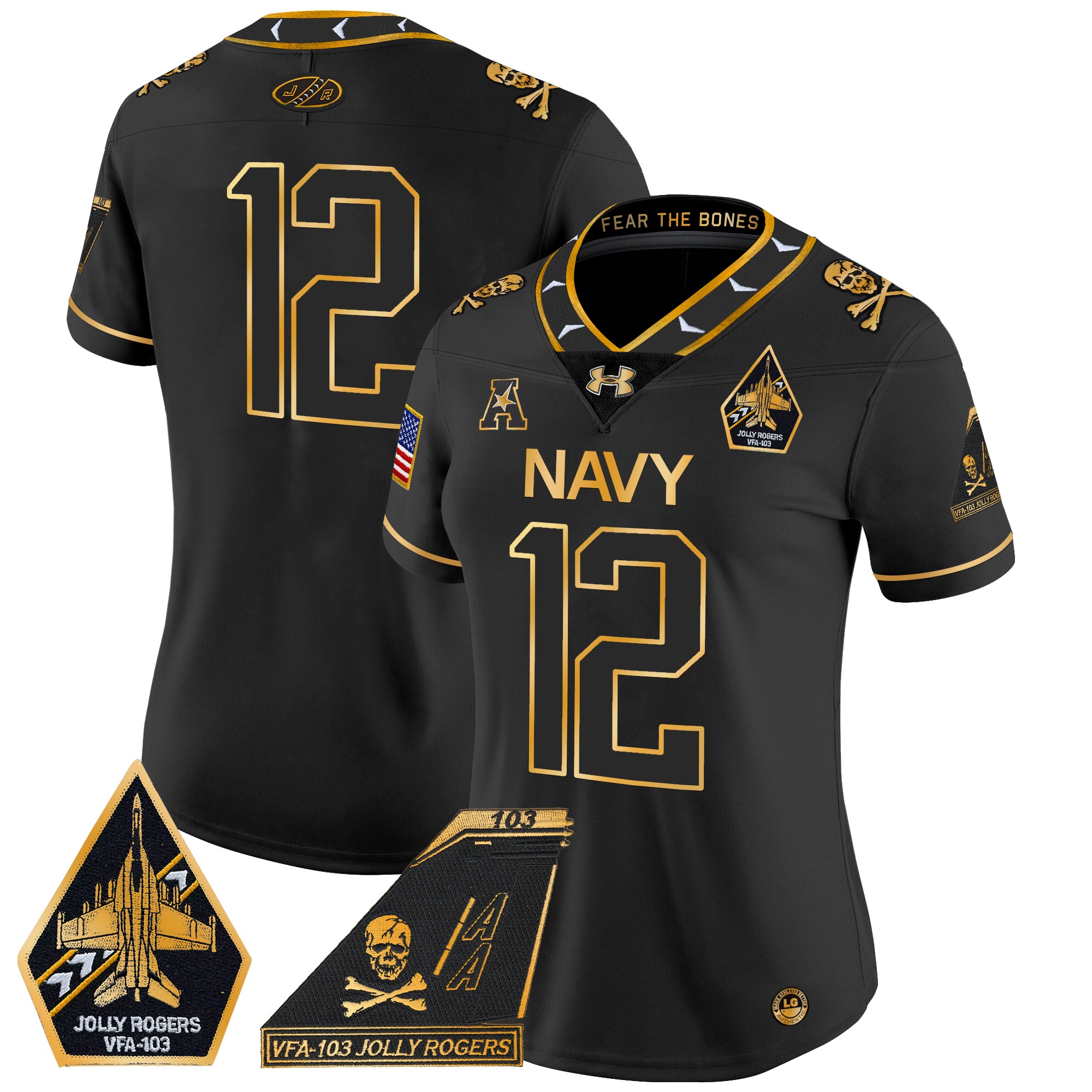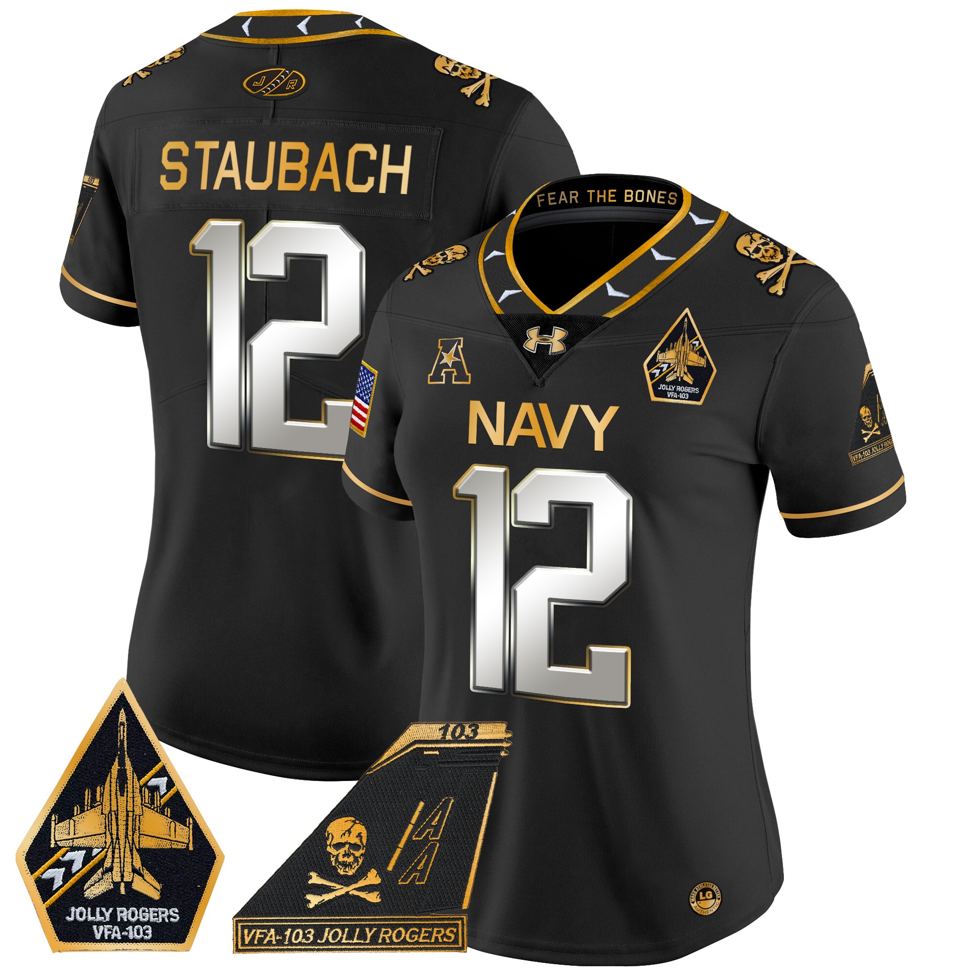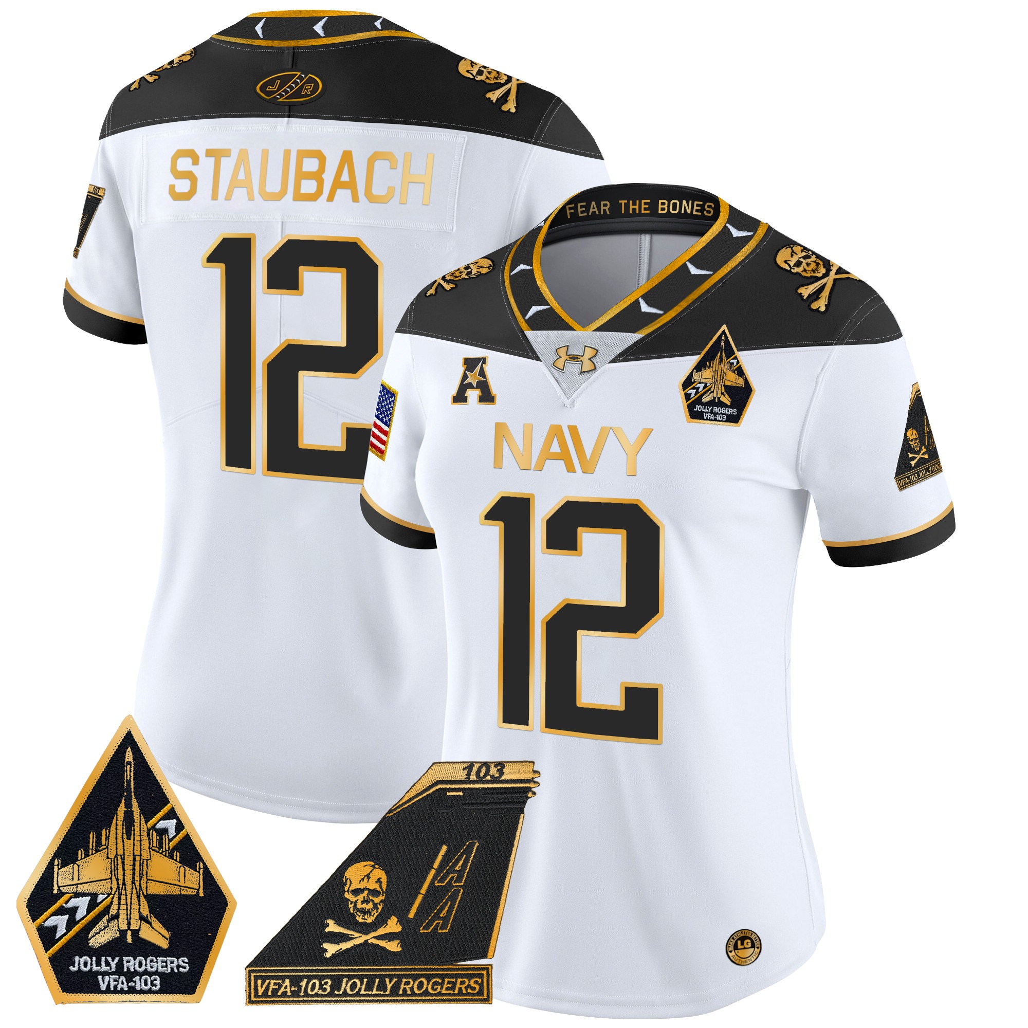 Women’s Navy Midshipmen 2024 Jolly Rogers Patch Gold Vapor Limited Jersey All Stitched