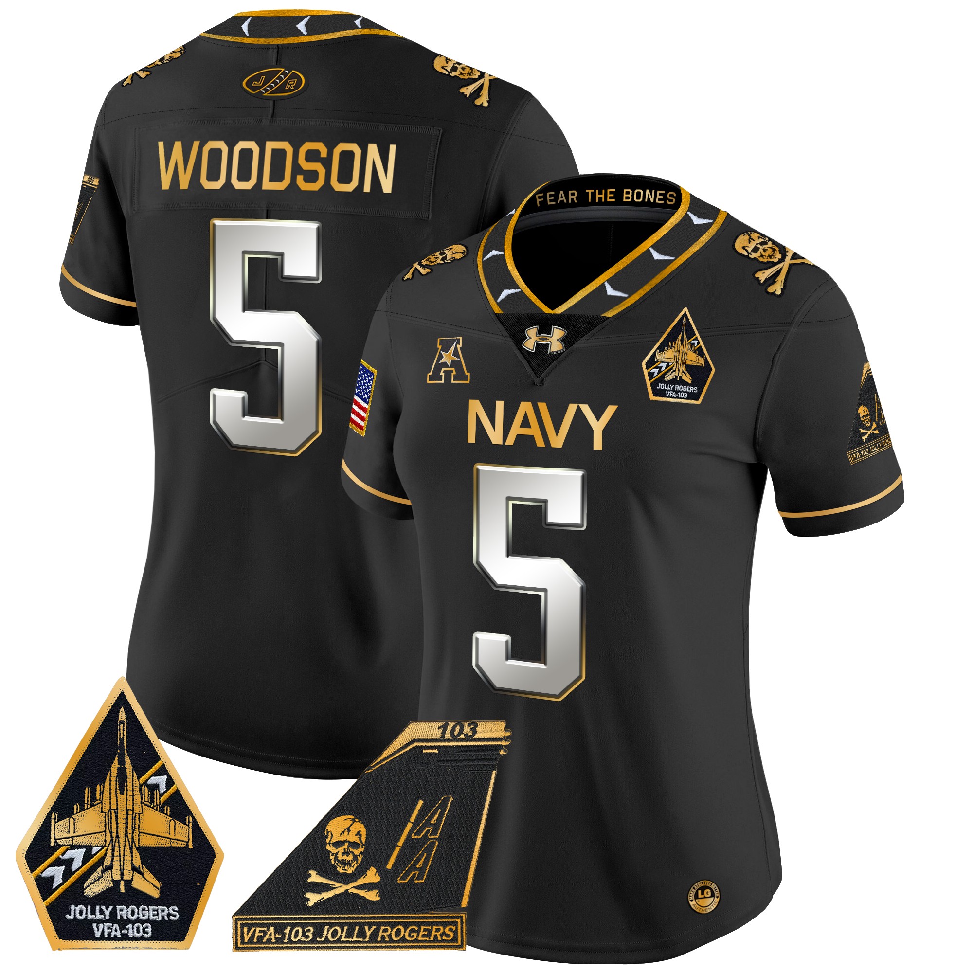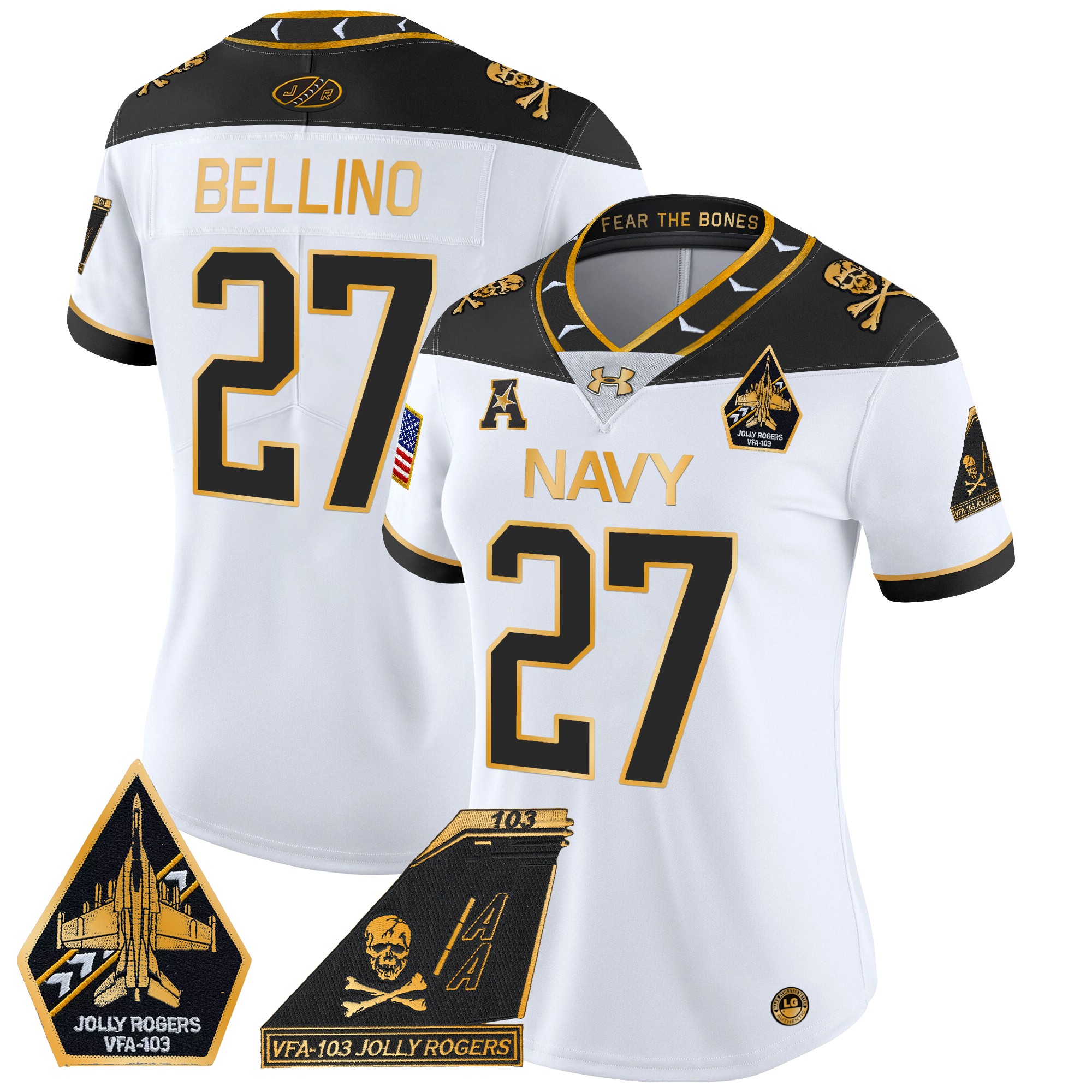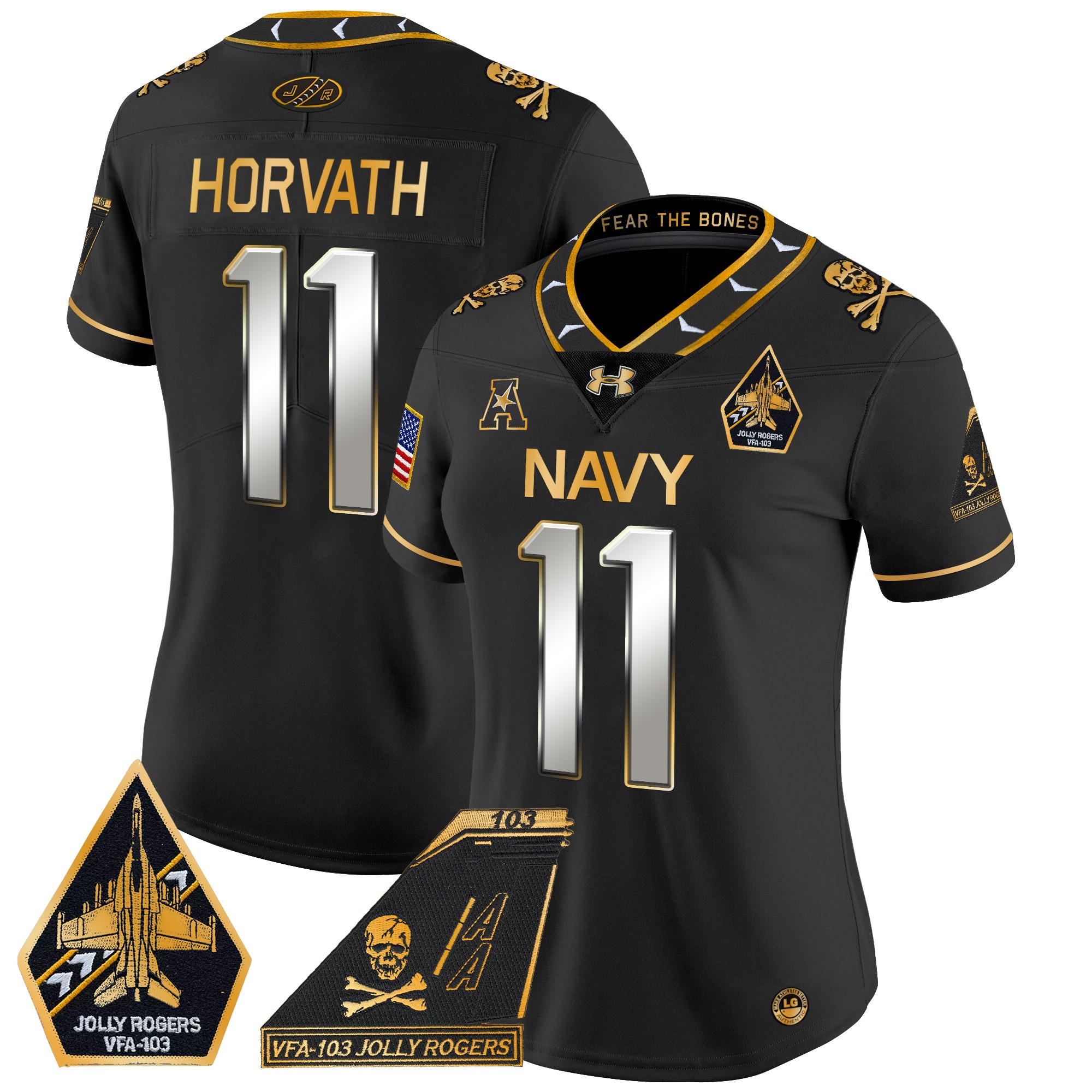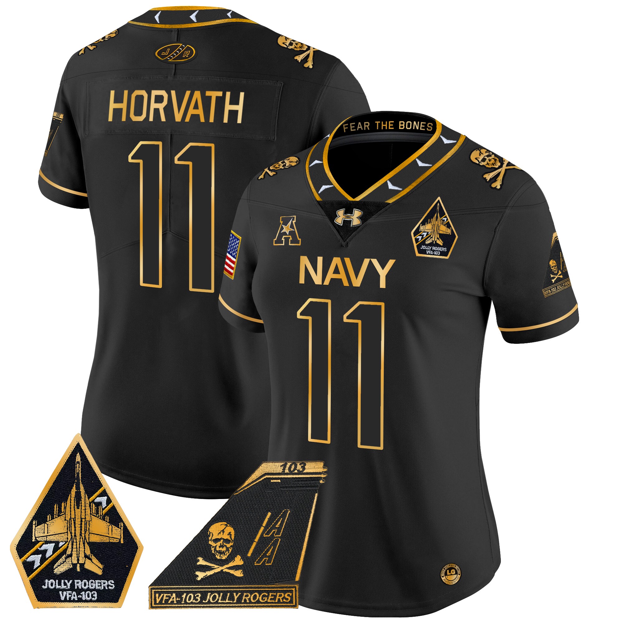Women’s Navy Midshipmen 2024 Jolly Rogers Patch Gold Vapor Limited Jersey All Stitched
