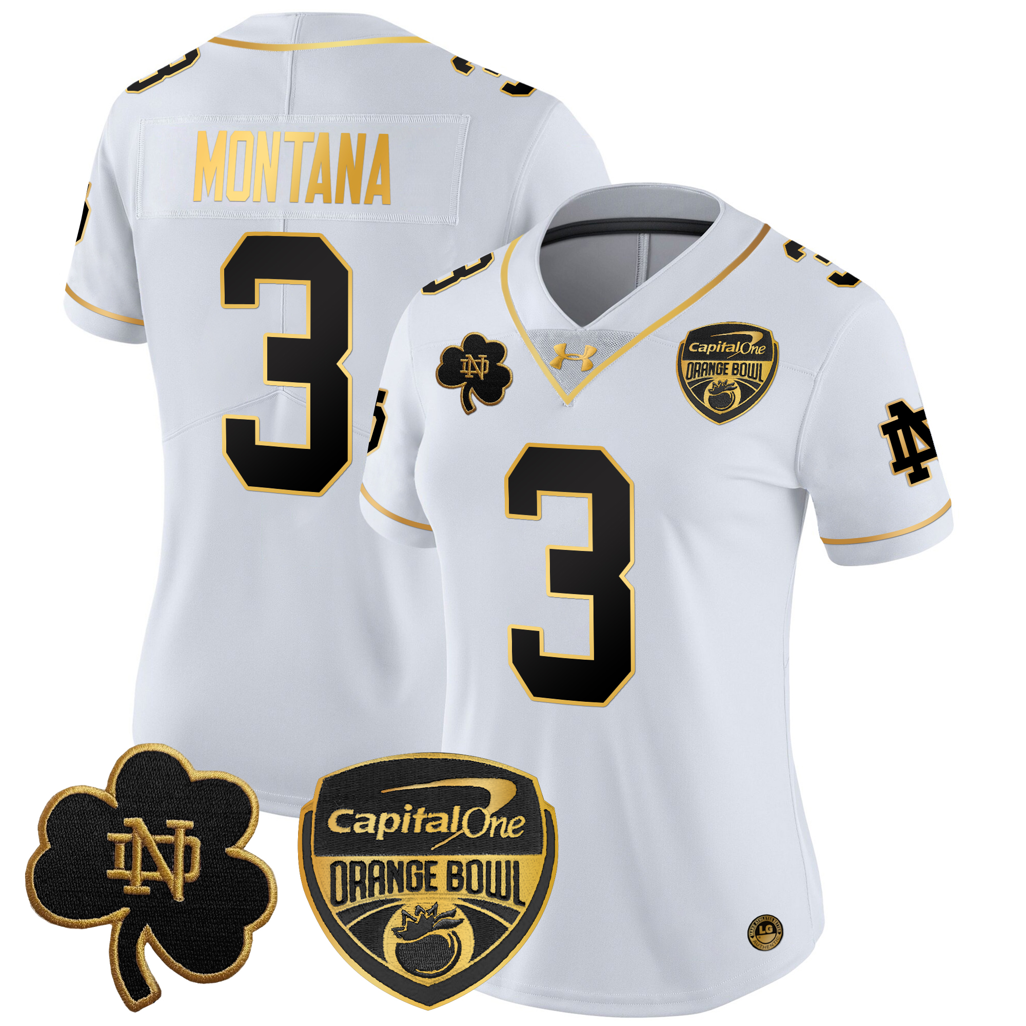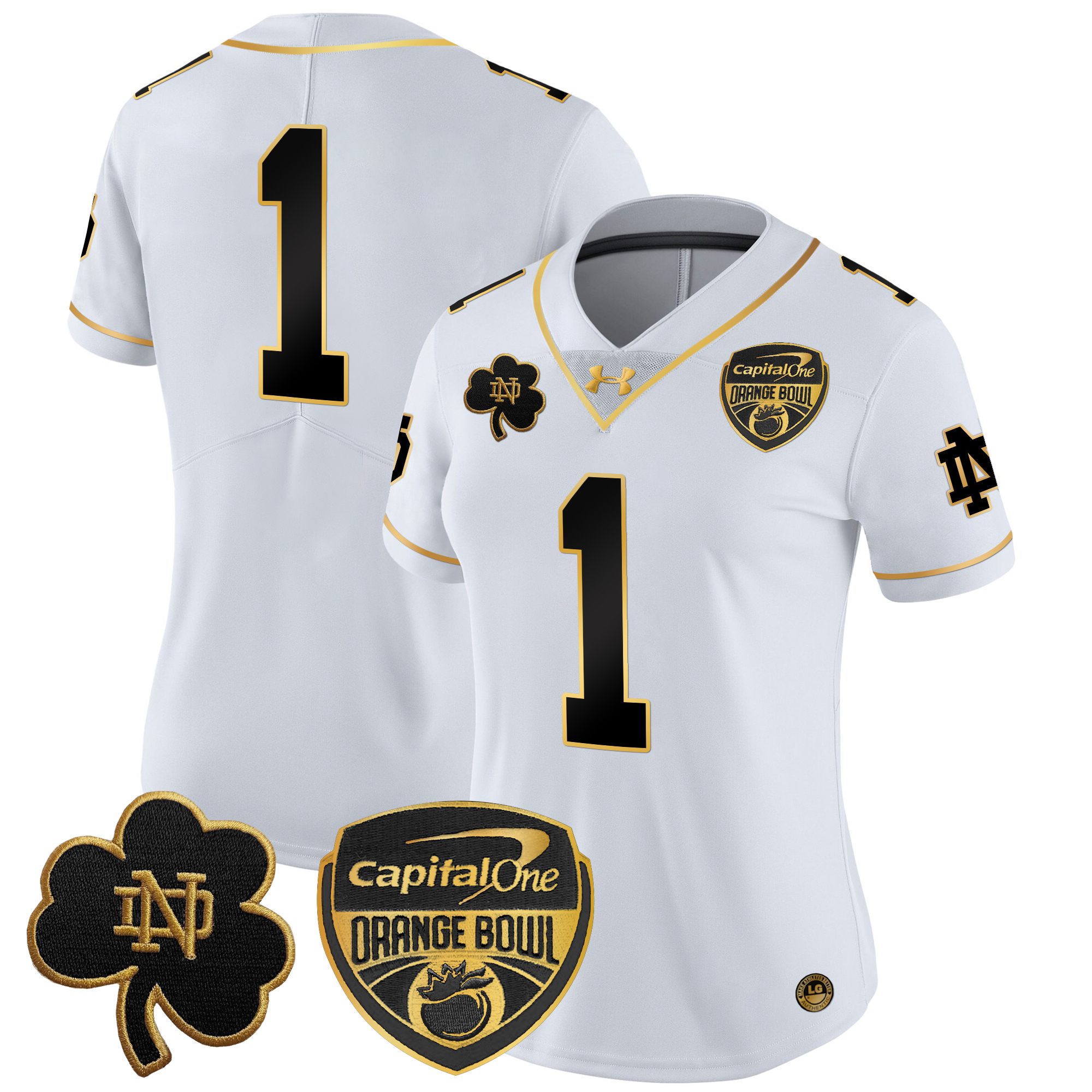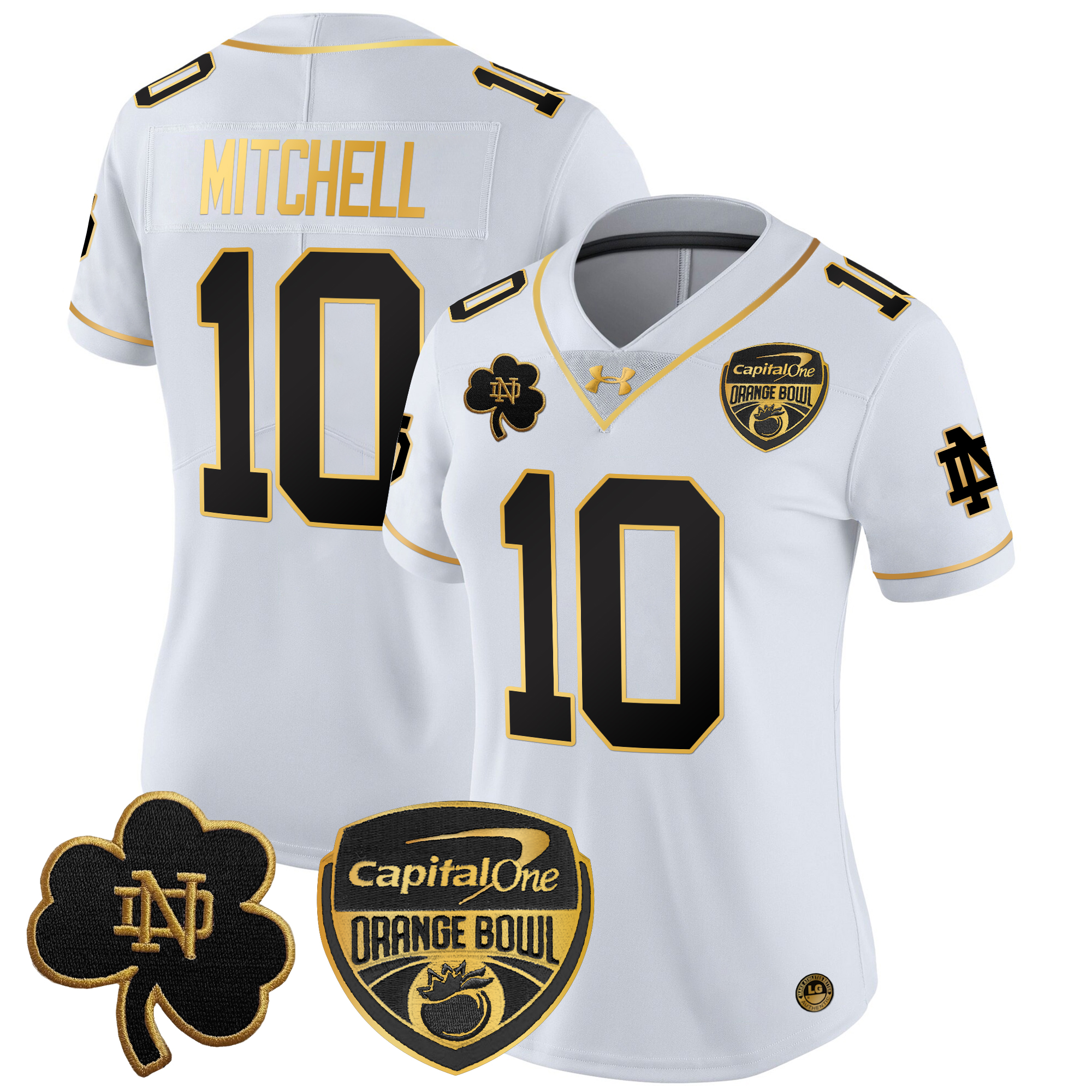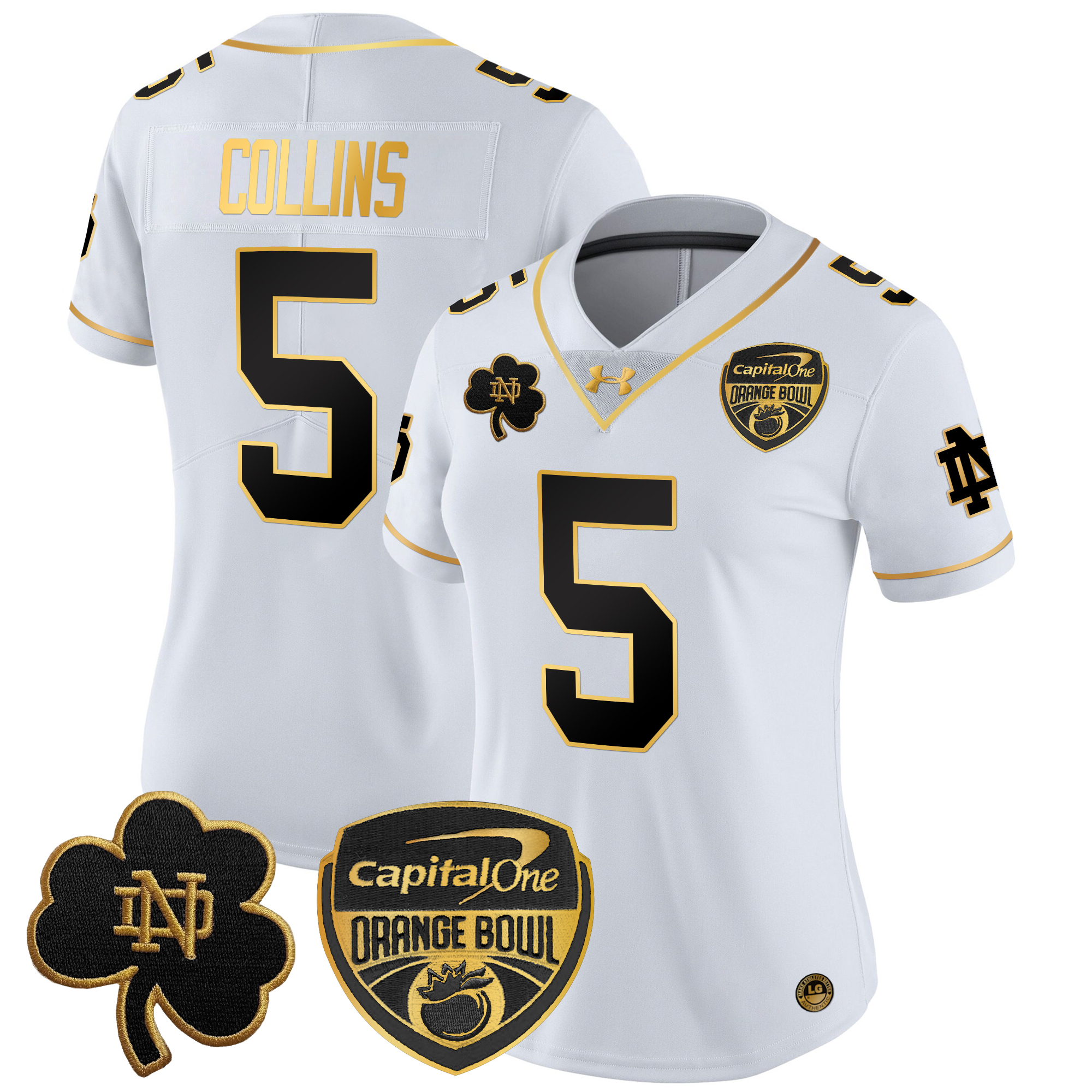 Women’s Notre Dame Fighting Irish 2024 Orange Bowl Gold Patch Vapor Limited Jersey All Stitched