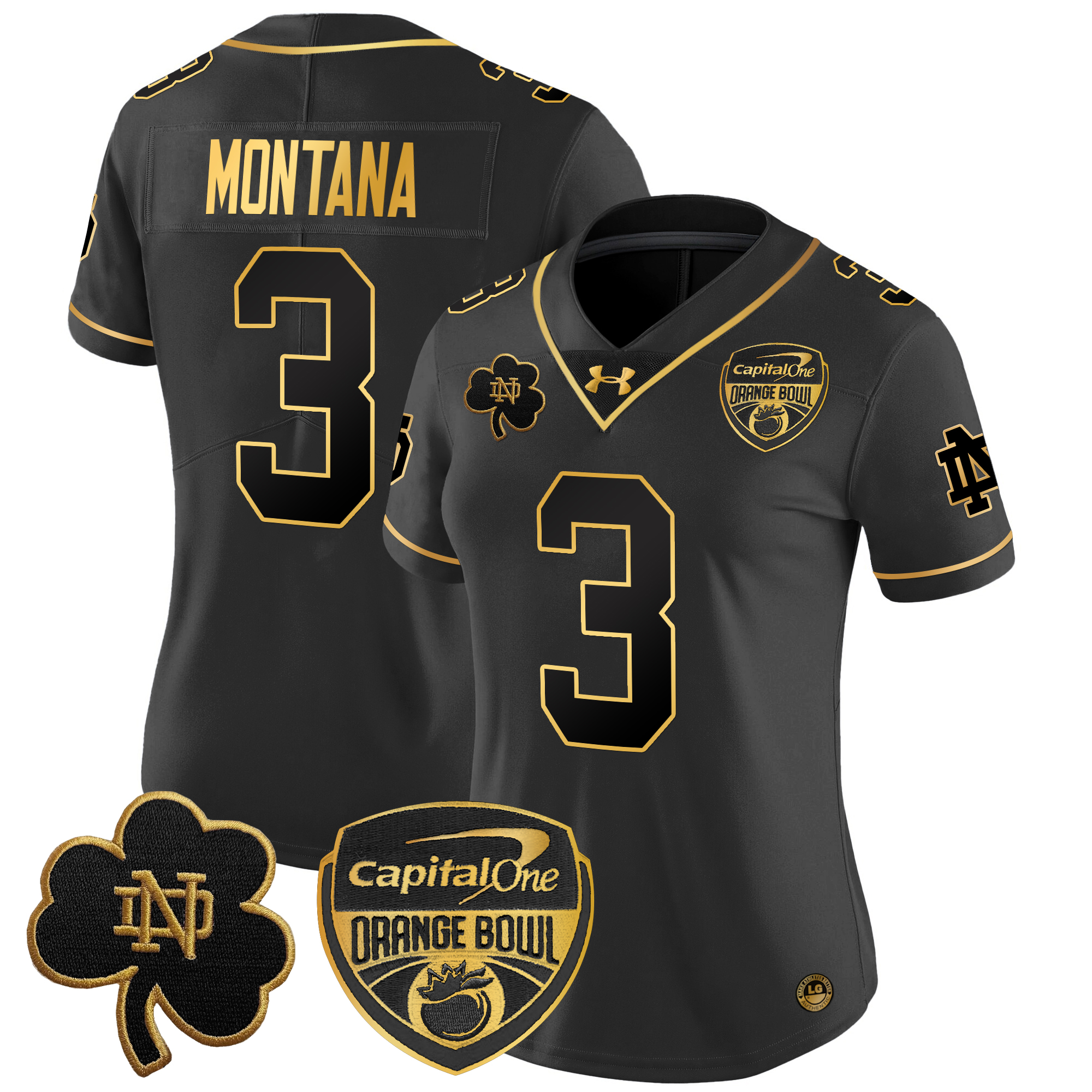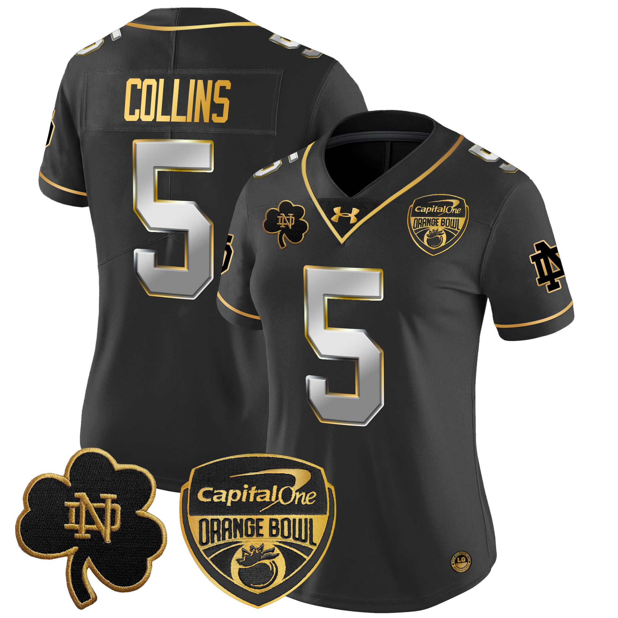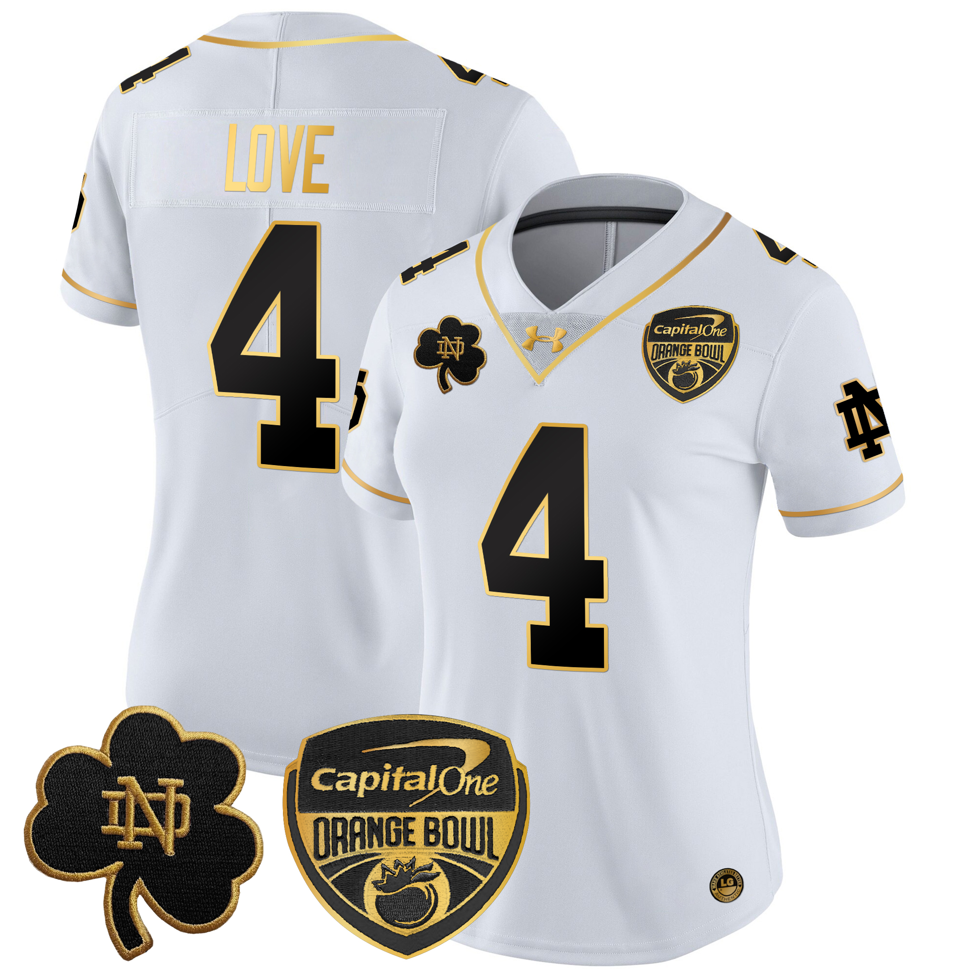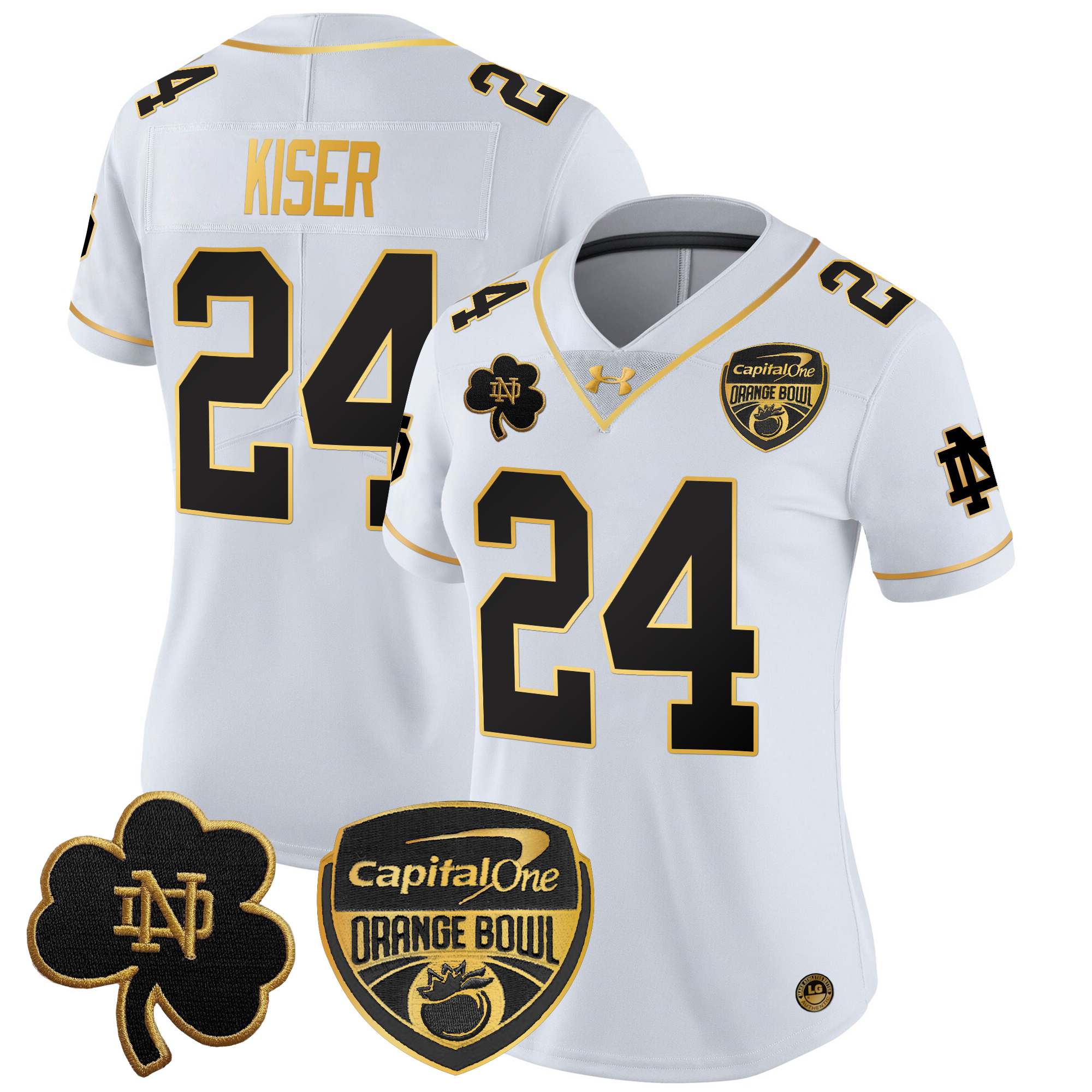 Women’s Notre Dame Fighting Irish 2024 Orange Bowl Gold Patch Vapor Limited Jersey All Stitched