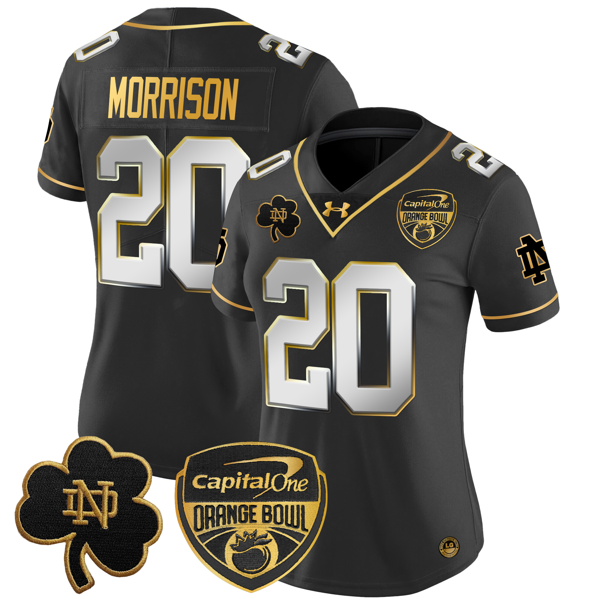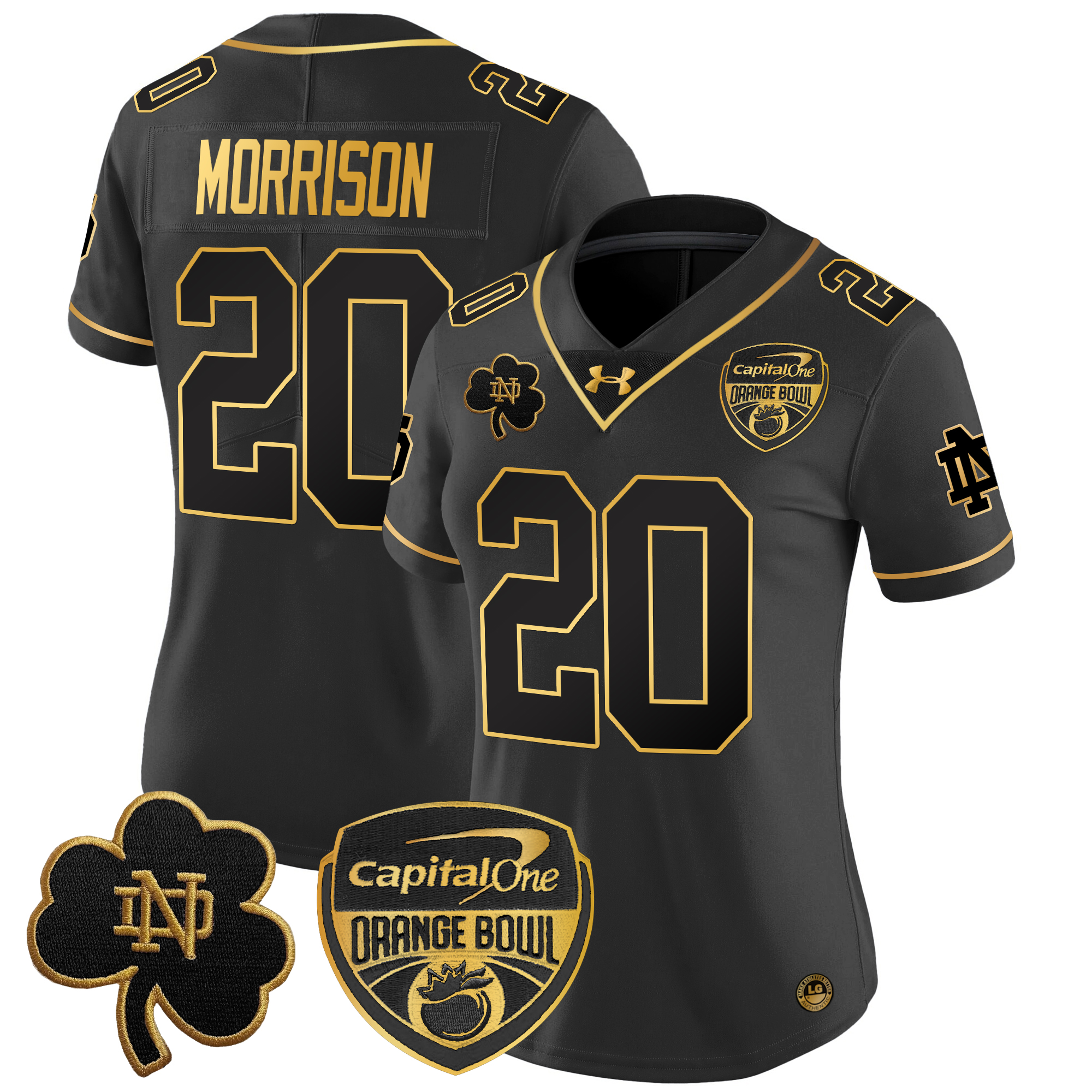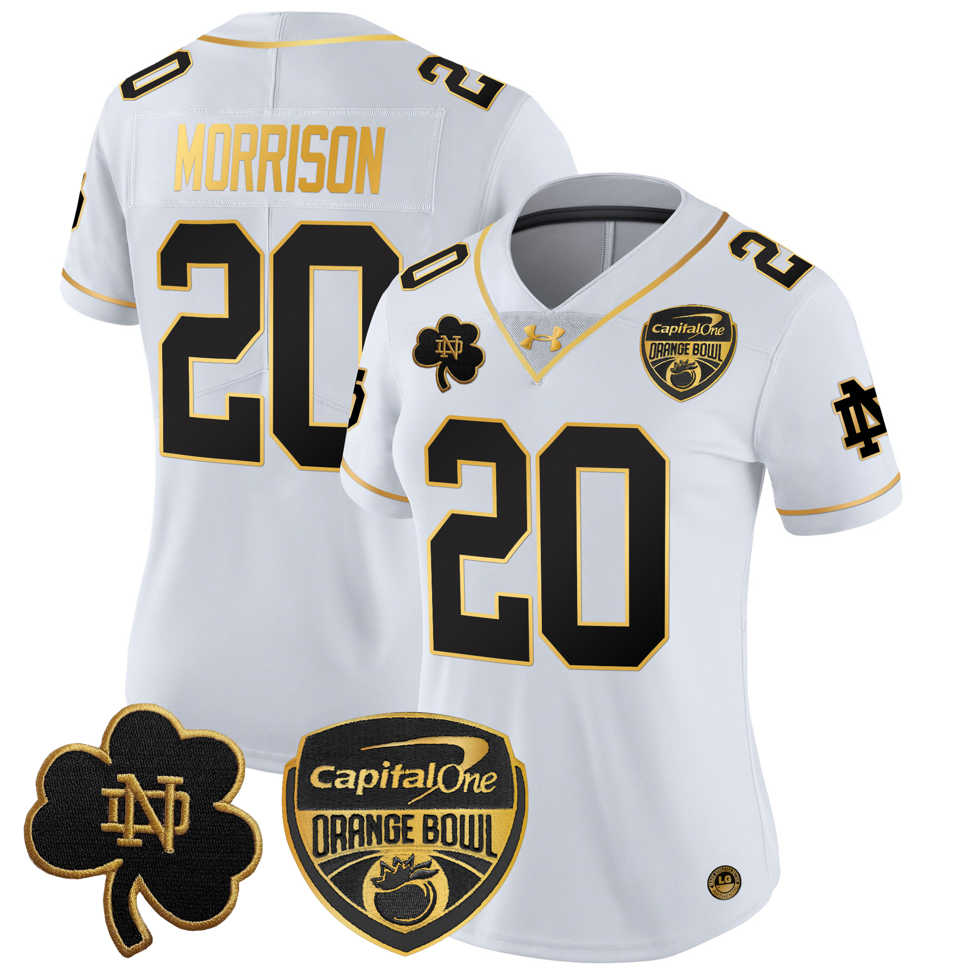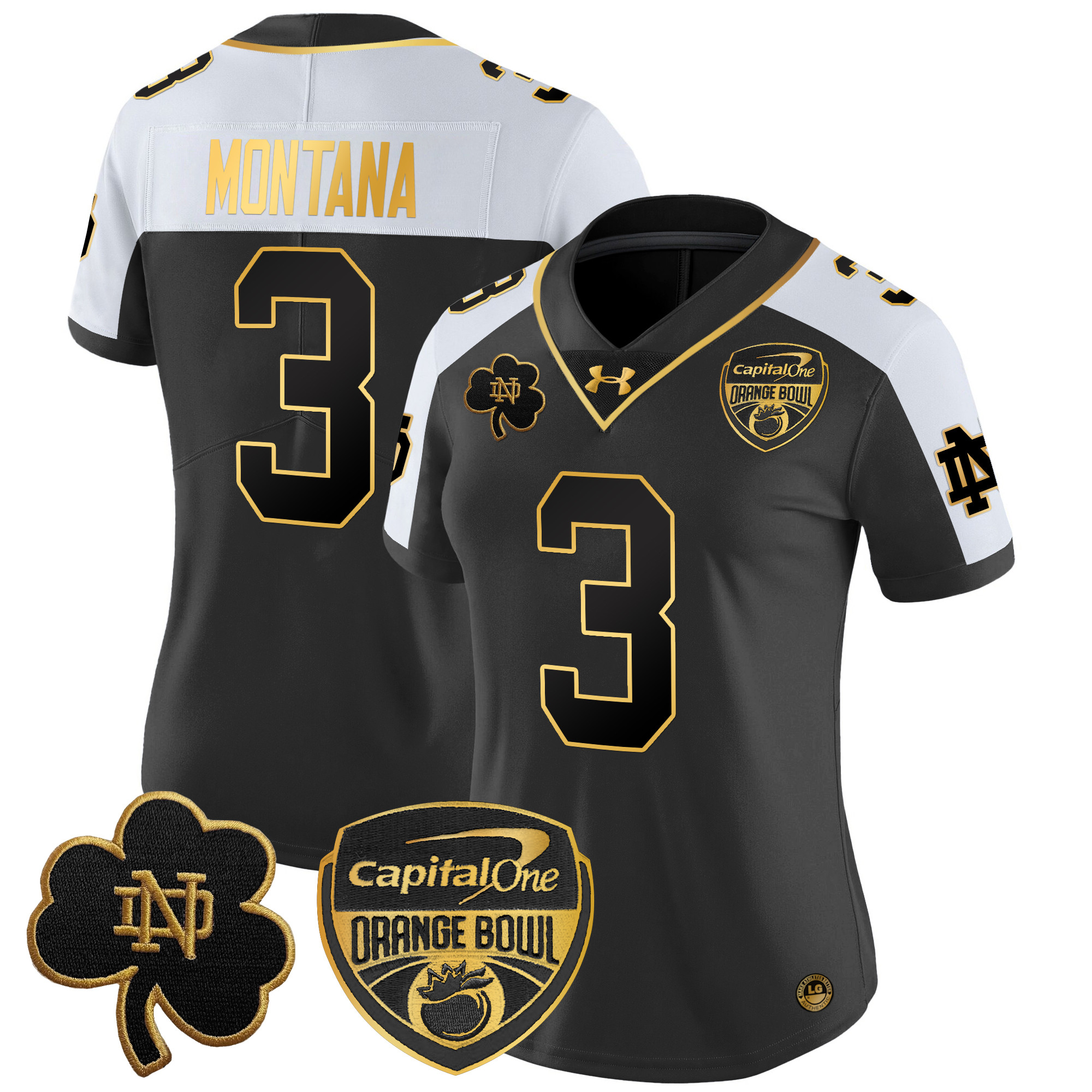 Women’s Notre Dame Fighting Irish 2024 Orange Bowl Gold Patch Vapor Limited Jersey All Stitched